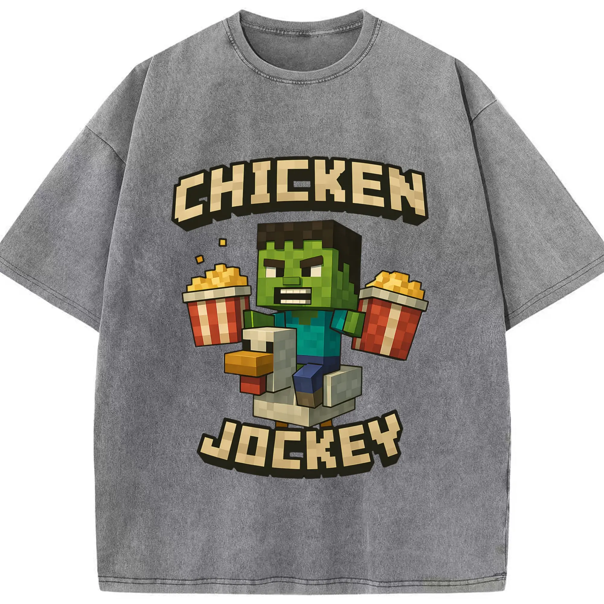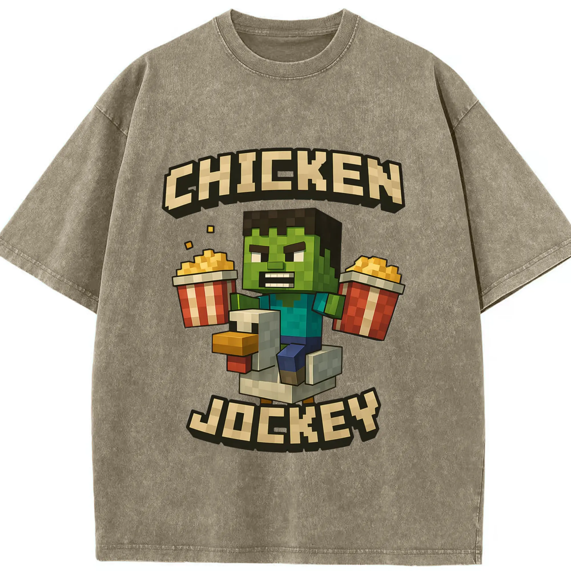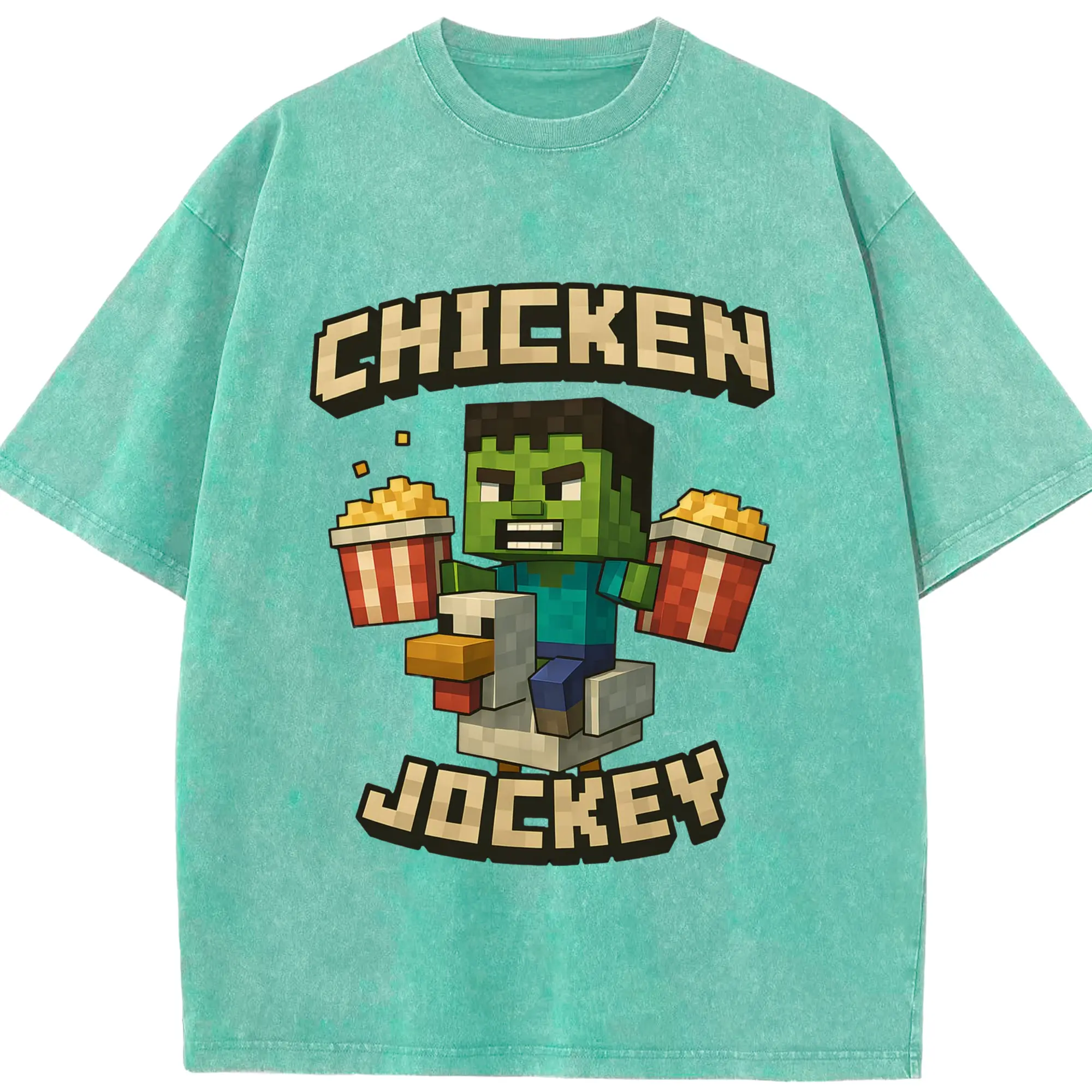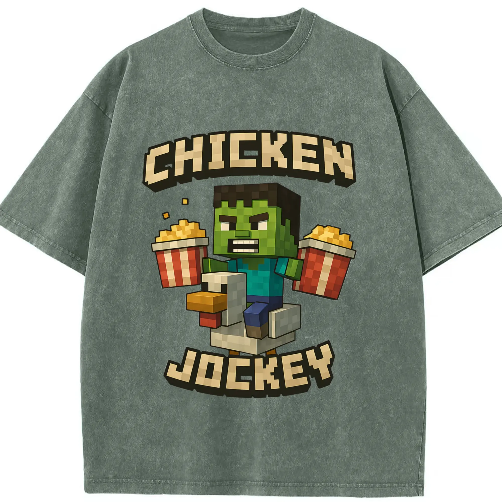 Adult minecraft zombie shirt​ - Washed Vintage Look 230g Cotton Oversized T-Shirt With Front Heat Transfer Print – Soft, Lightweight, Stylish Fit – Comfortable Casual Wear For Sports & Everyday Use