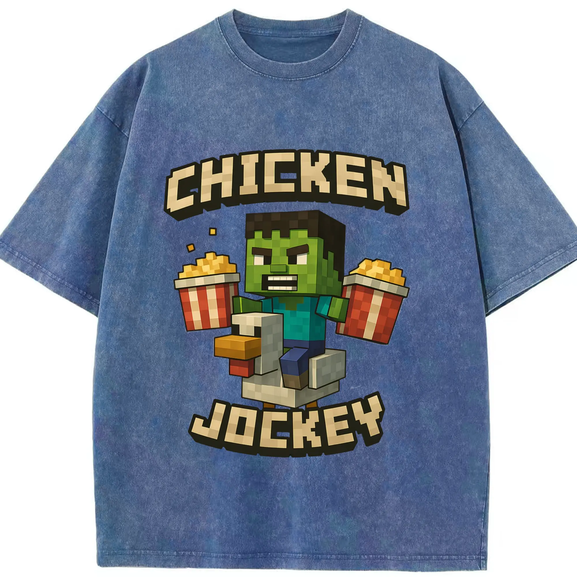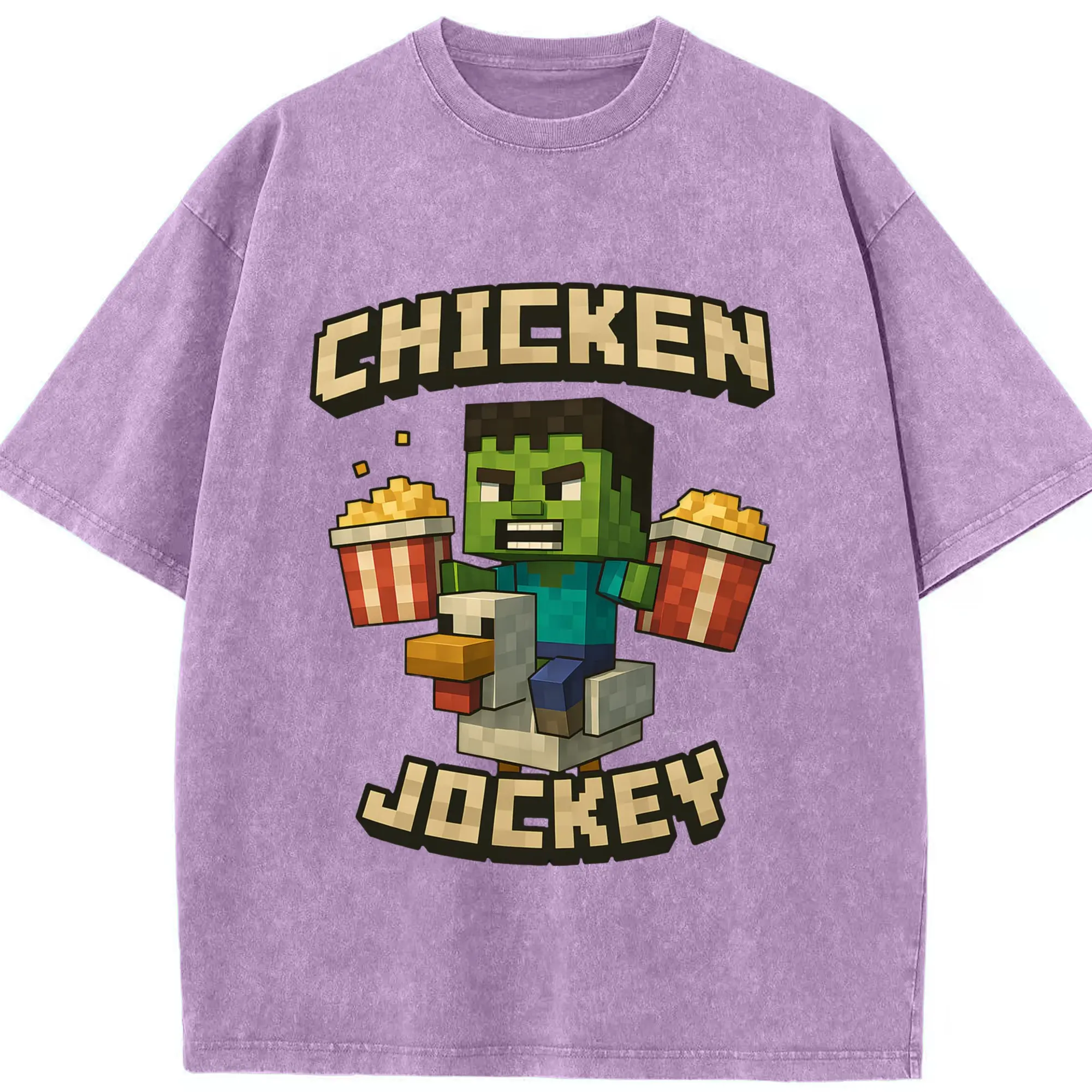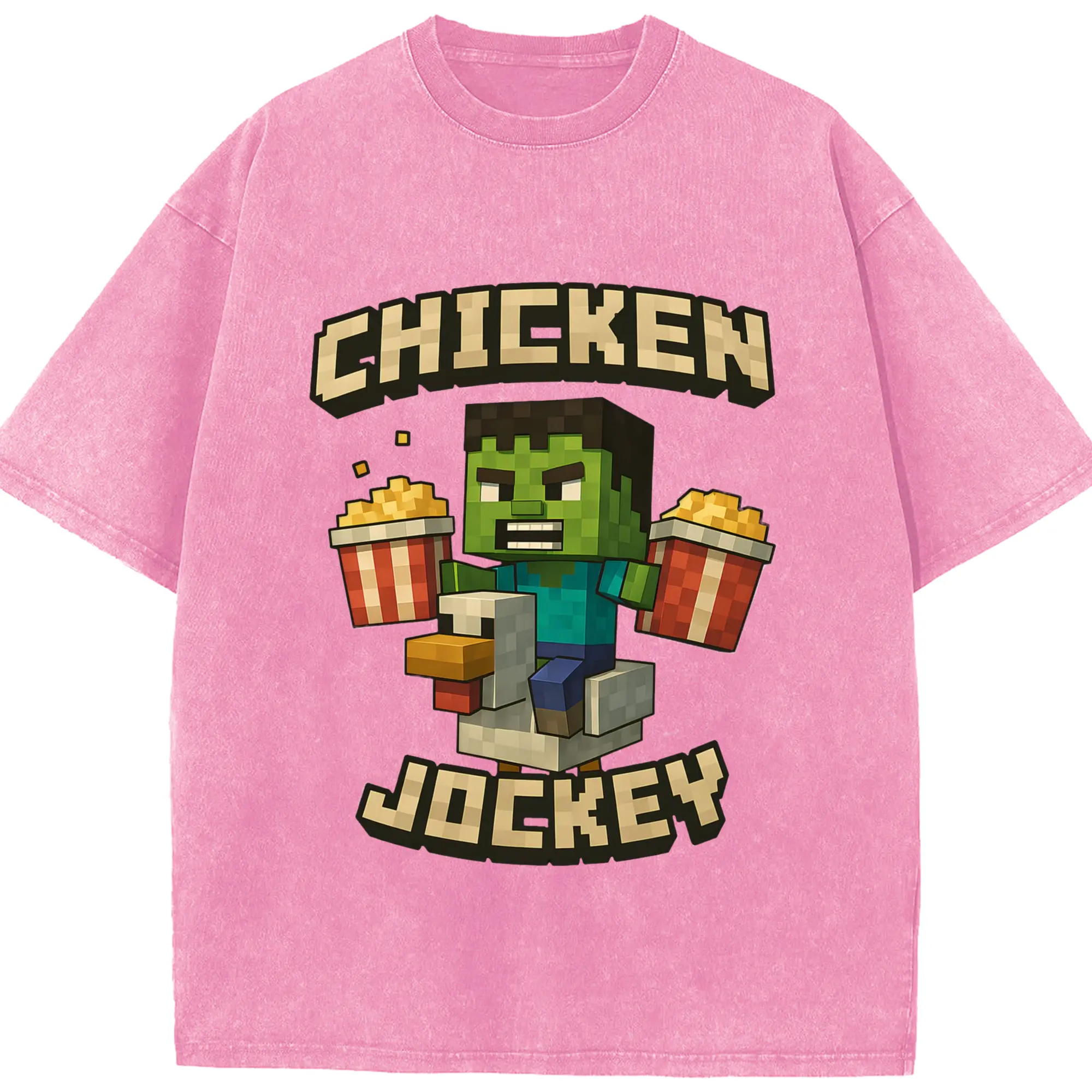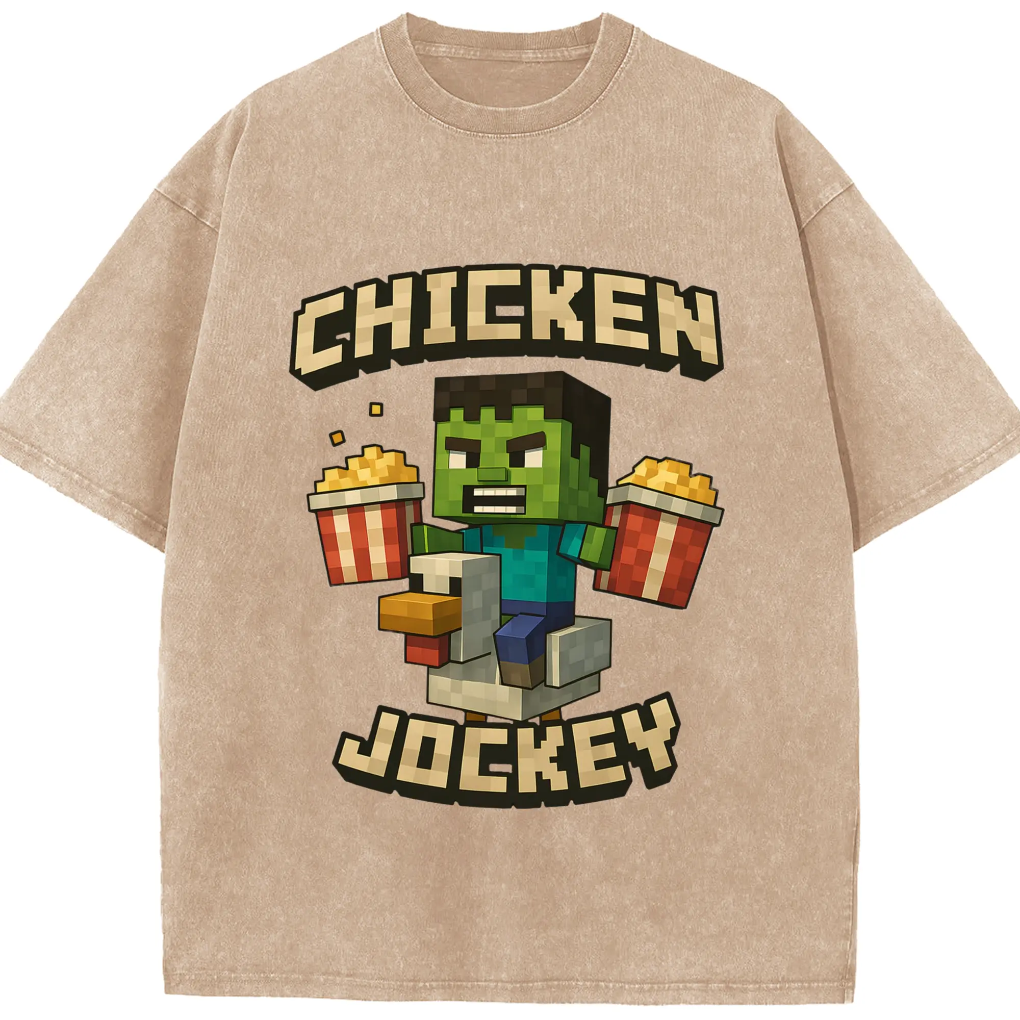 Adult minecraft zombie shirt​ - Washed Vintage Look 230g Cotton Oversized T-Shirt With Front Heat Transfer Print – Soft, Lightweight, Stylish Fit – Comfortable Casual Wear For Sports & Everyday Use