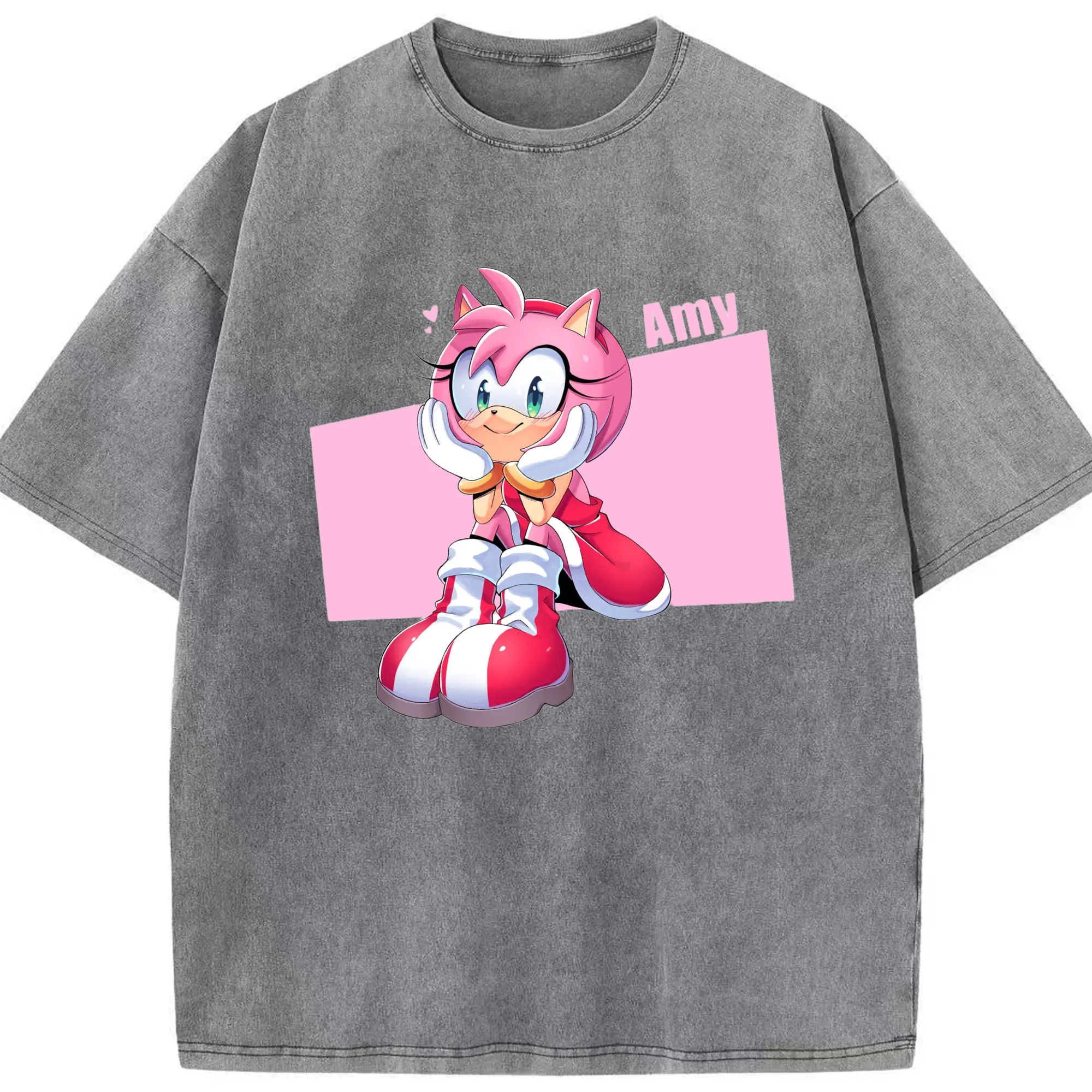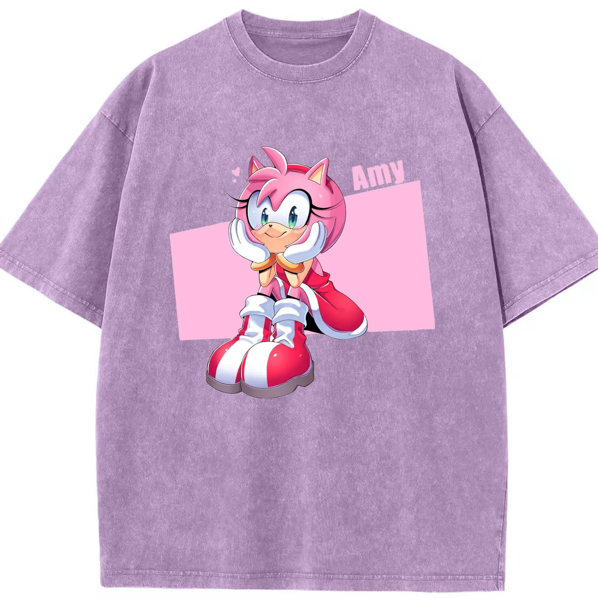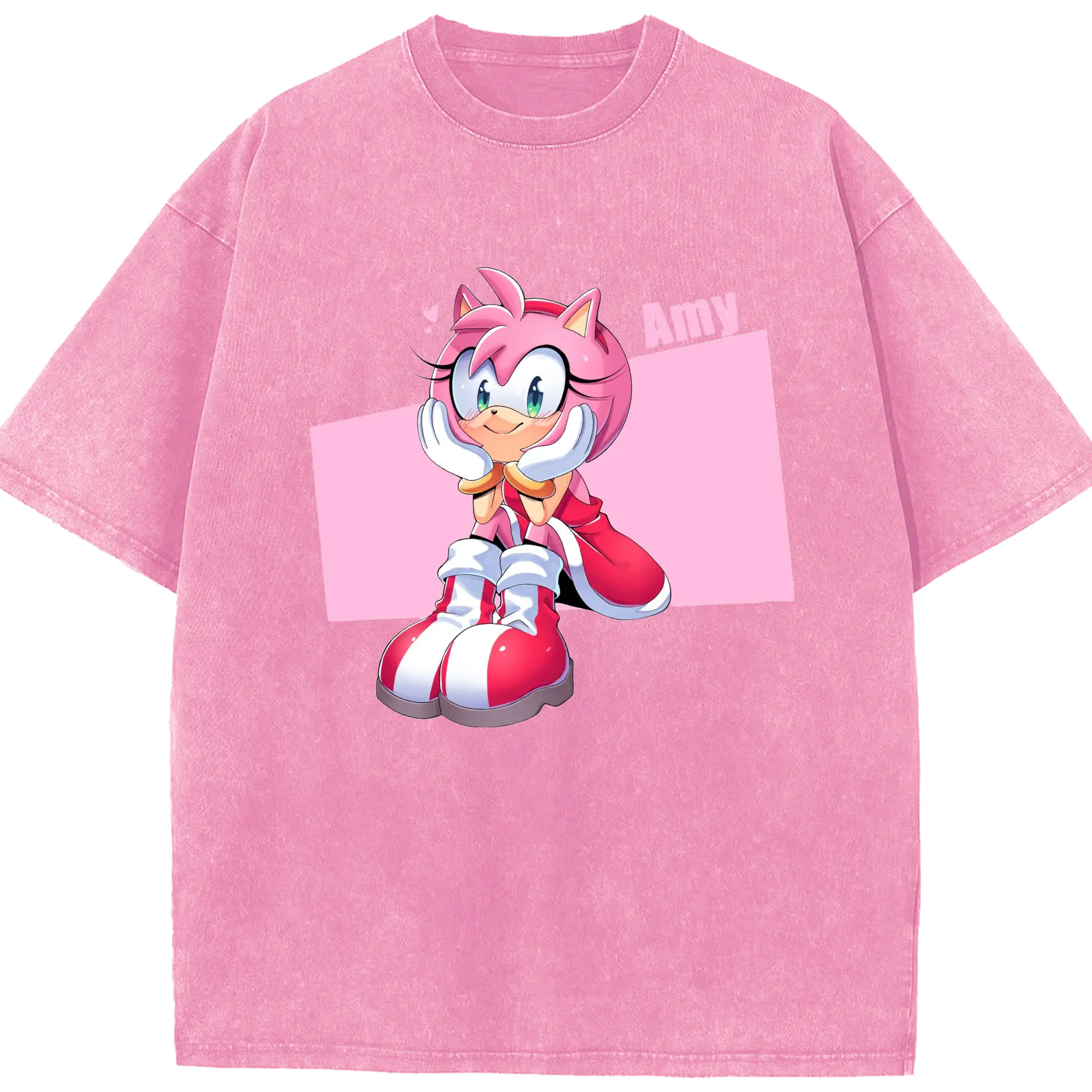 Amy Rose classic graphic t-shirt - Washed Vintage Look 230g Cotton Oversized T-Shirt With Front Heat Transfer Print – Soft, Lightweight, Stylish Fit – Comfortable Casual Wear For Sports & Everyday Use
