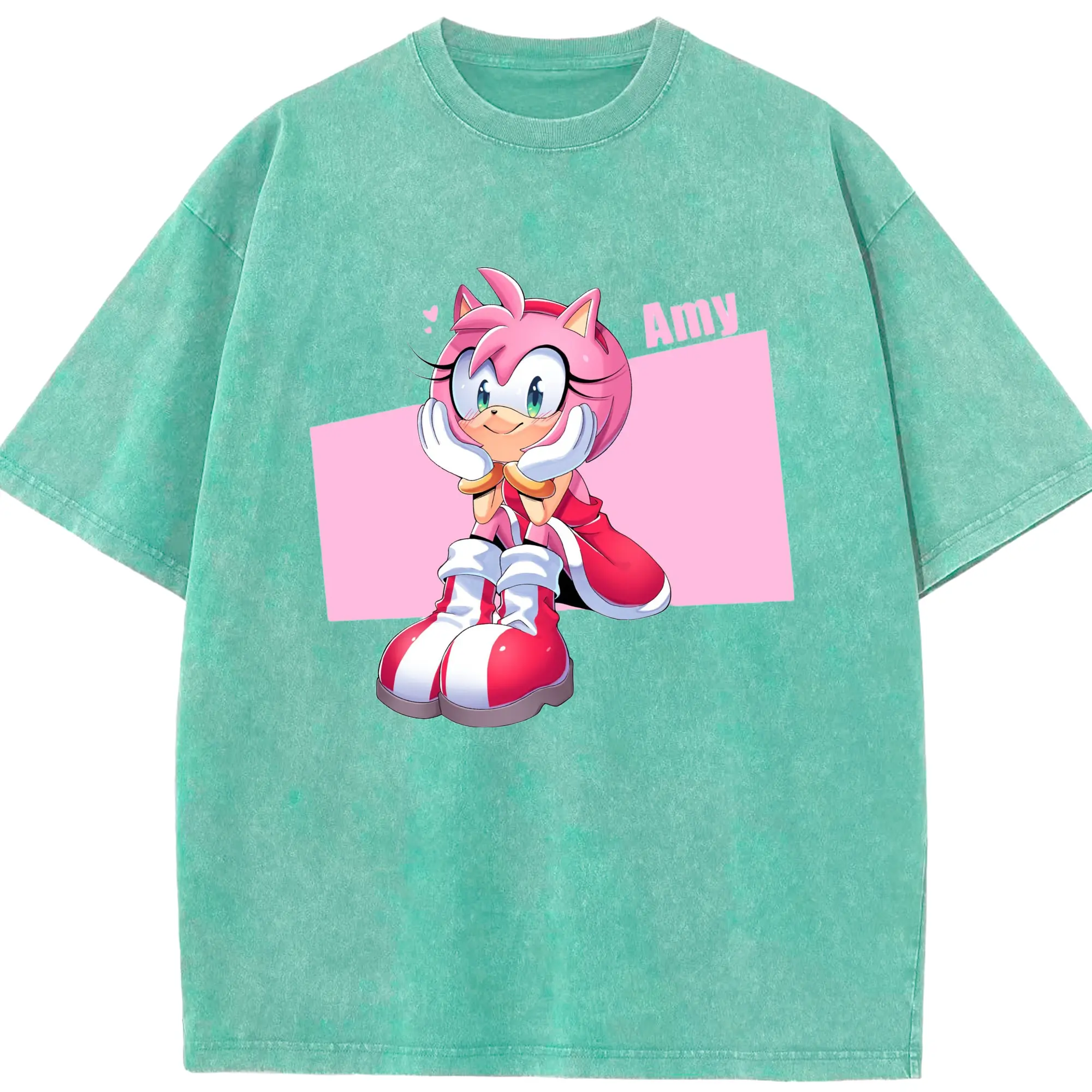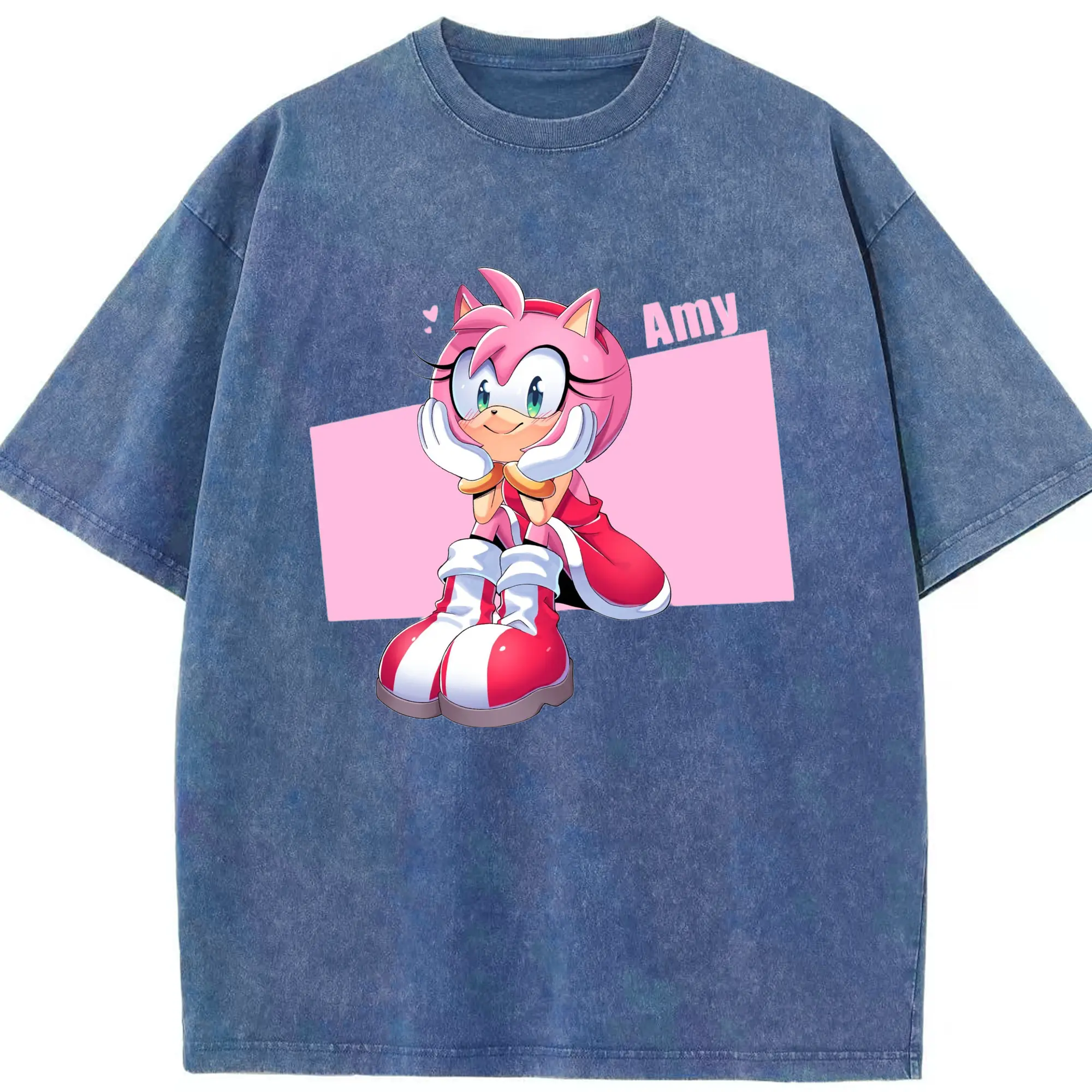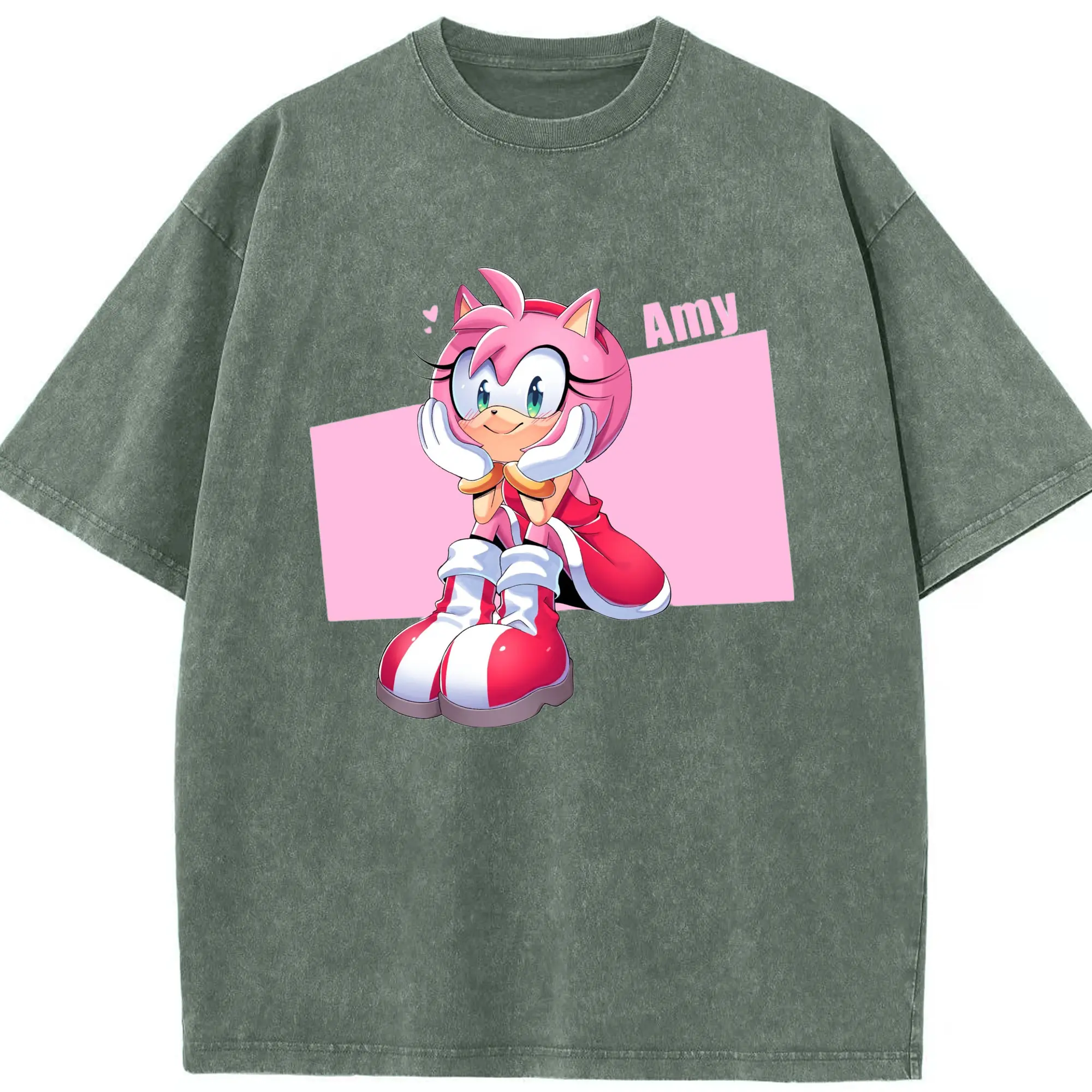 Amy Rose classic graphic t-shirt - Washed Vintage Look 230g Cotton Oversized T-Shirt With Front Heat Transfer Print – Soft, Lightweight, Stylish Fit – Comfortable Casual Wear For Sports & Everyday Use