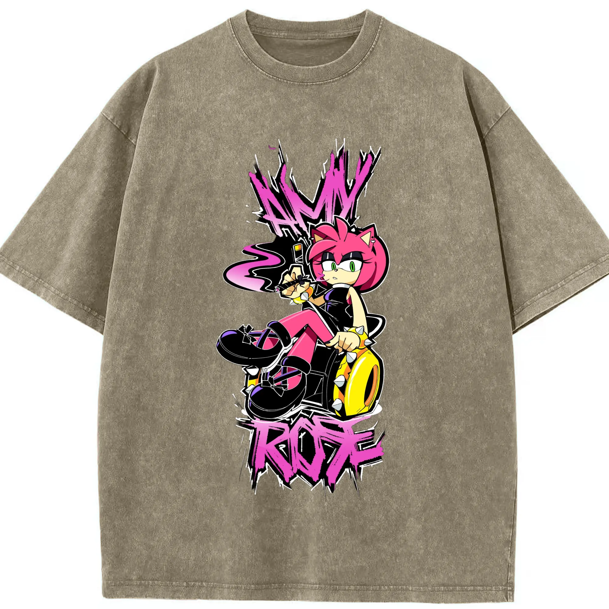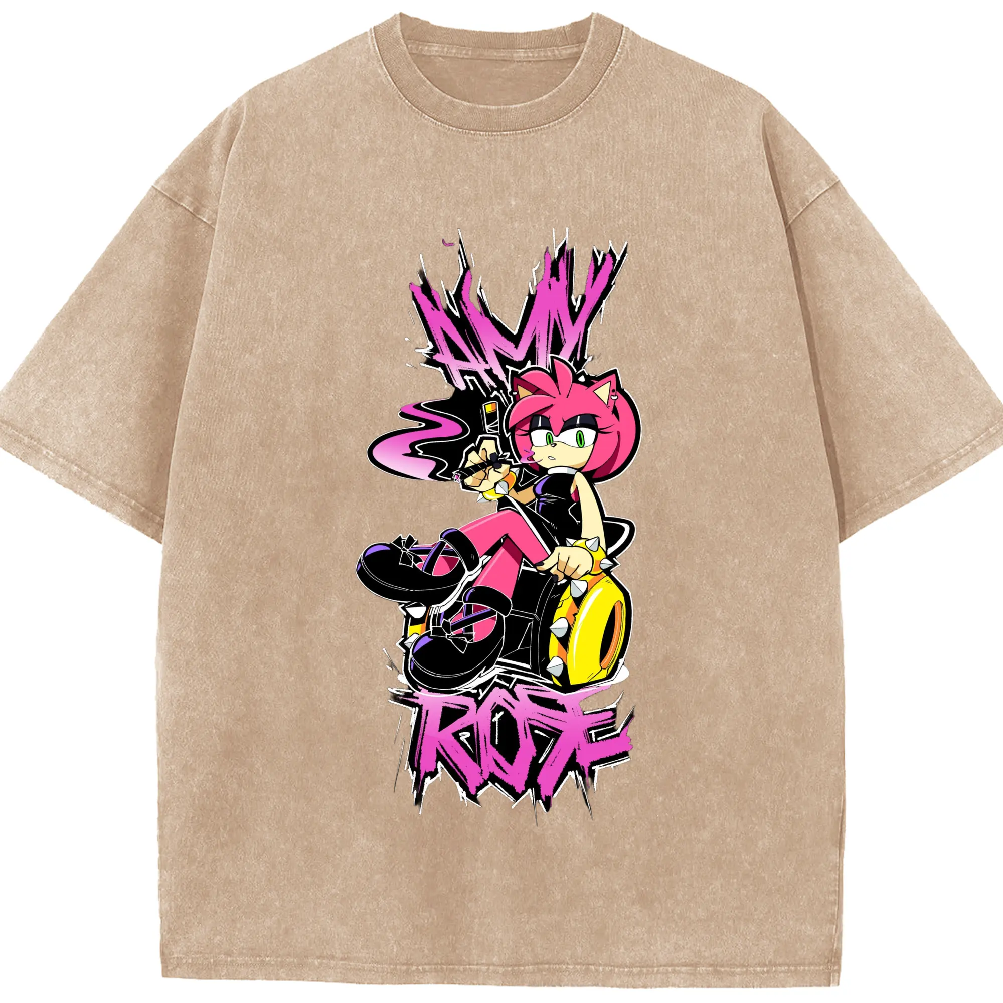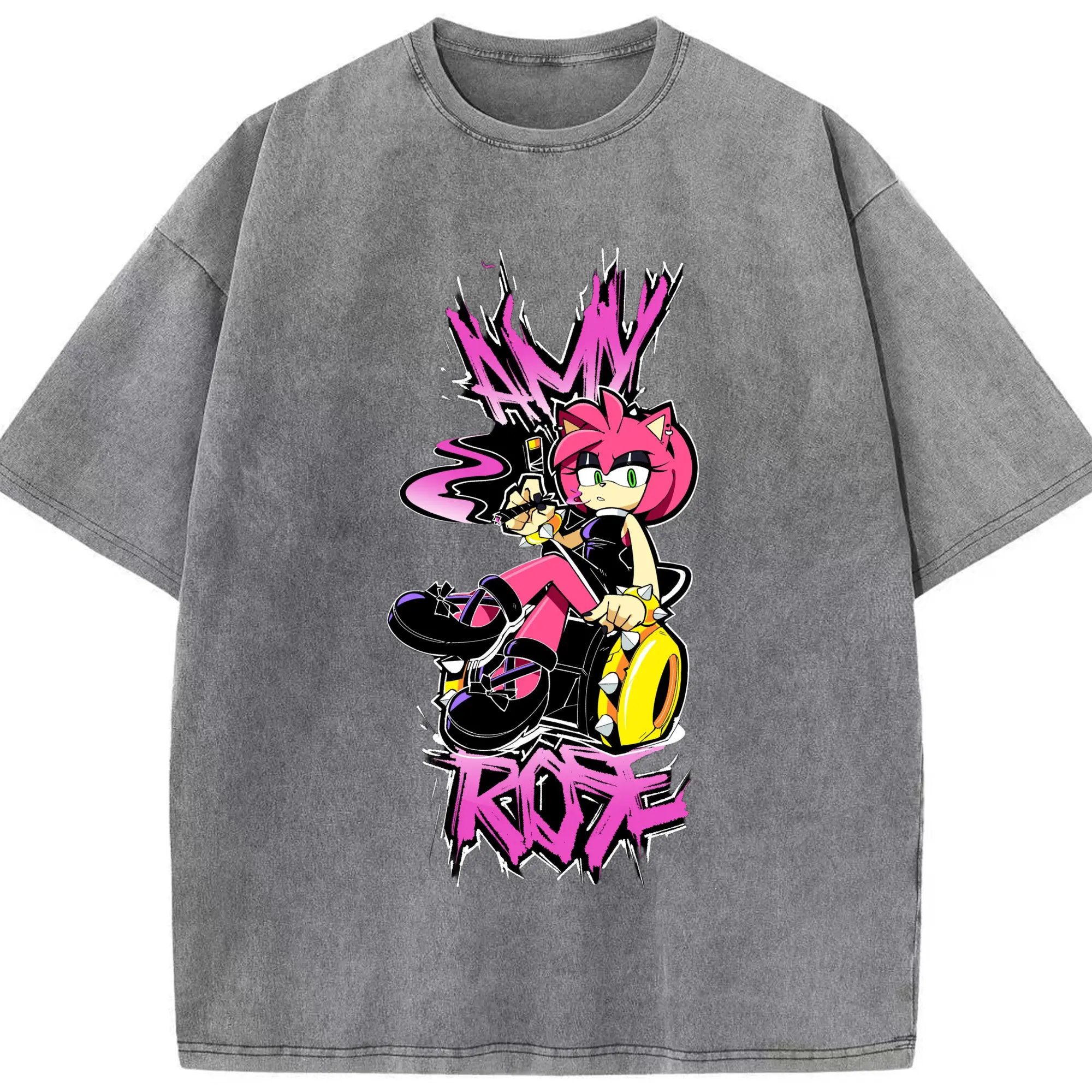 Amy Rose classic tee - Washed Vintage Look 230g Cotton Oversized T-Shirt With Front Heat Transfer Print – Soft, Lightweight, Stylish Fit – Comfortable Casual Wear For Sports & Everyday Use