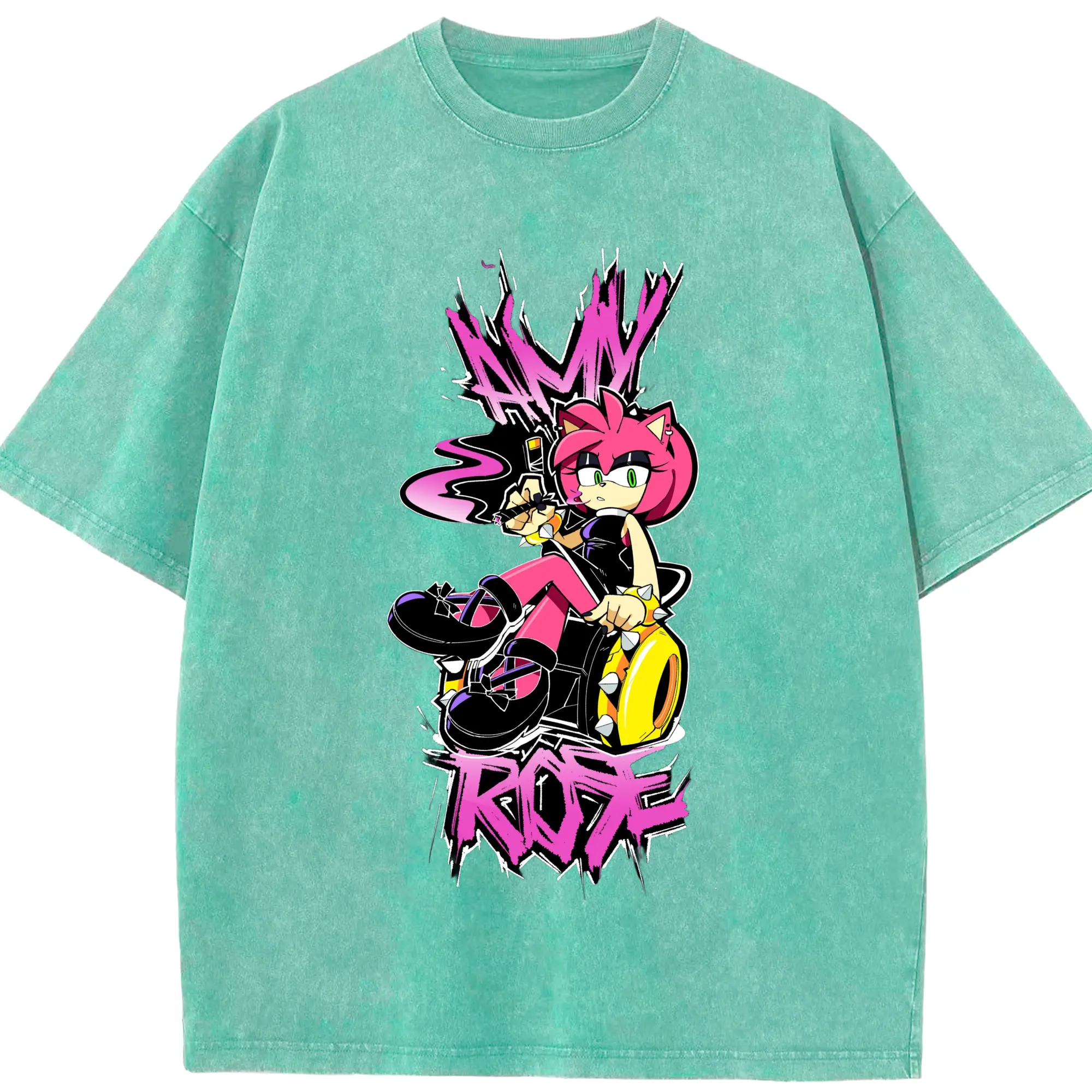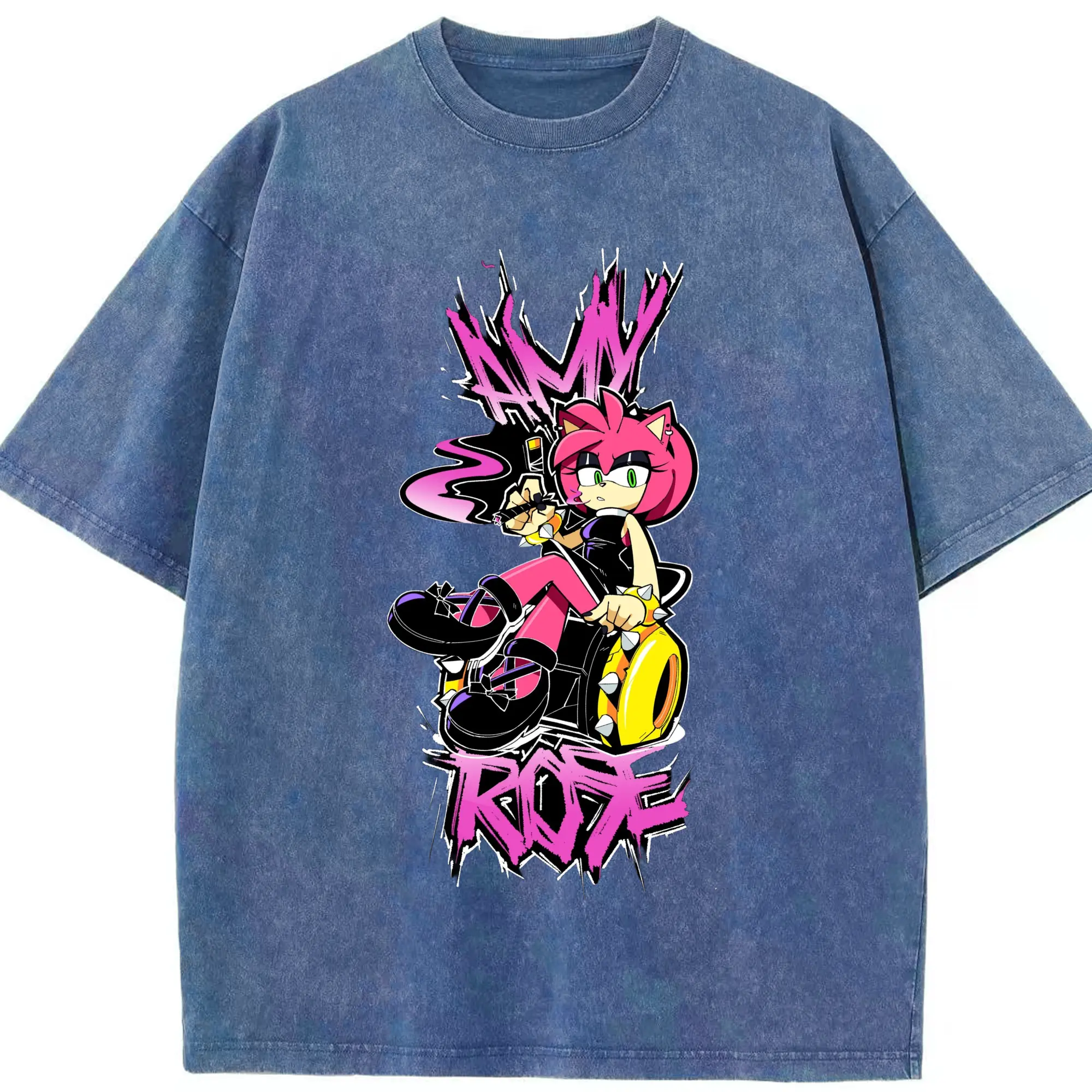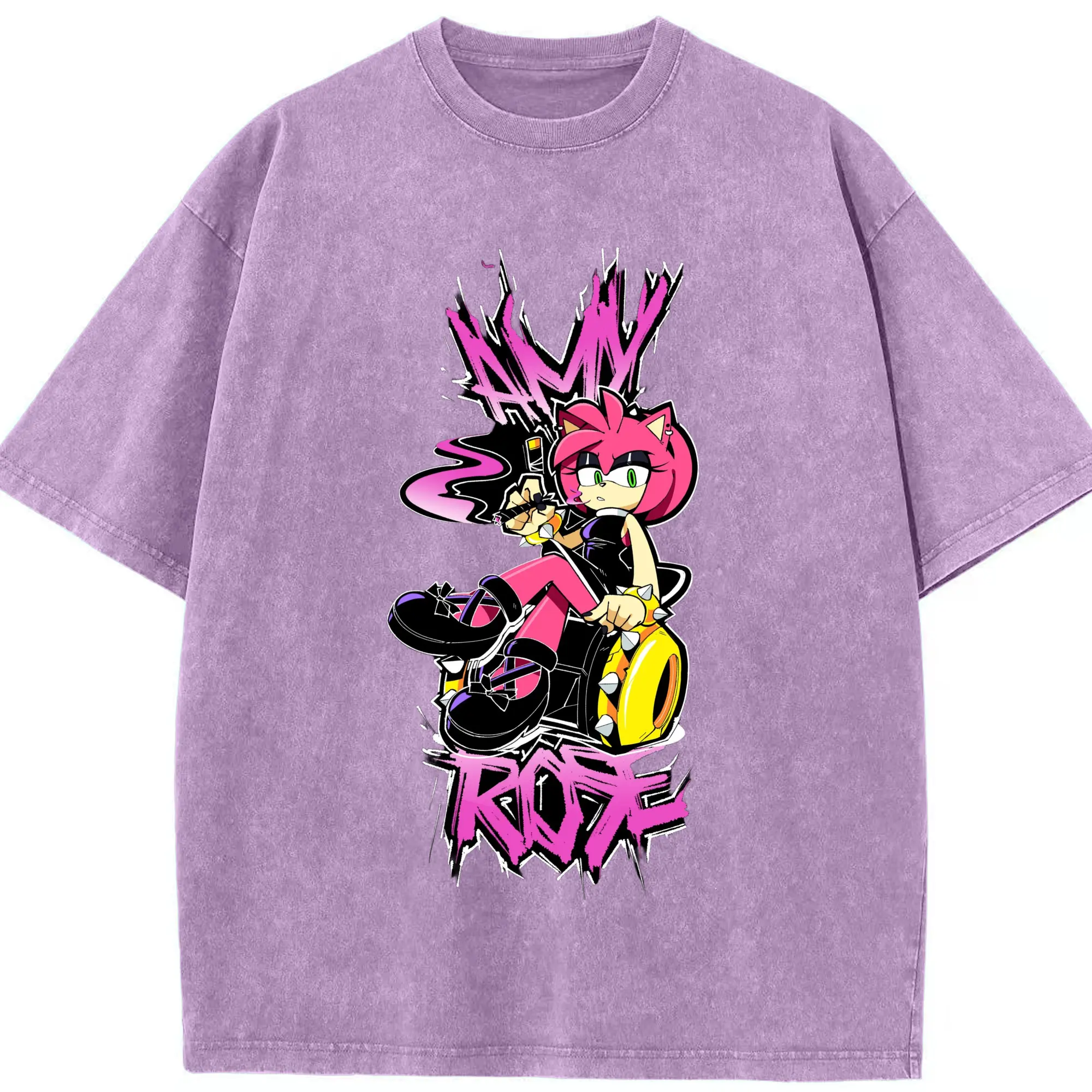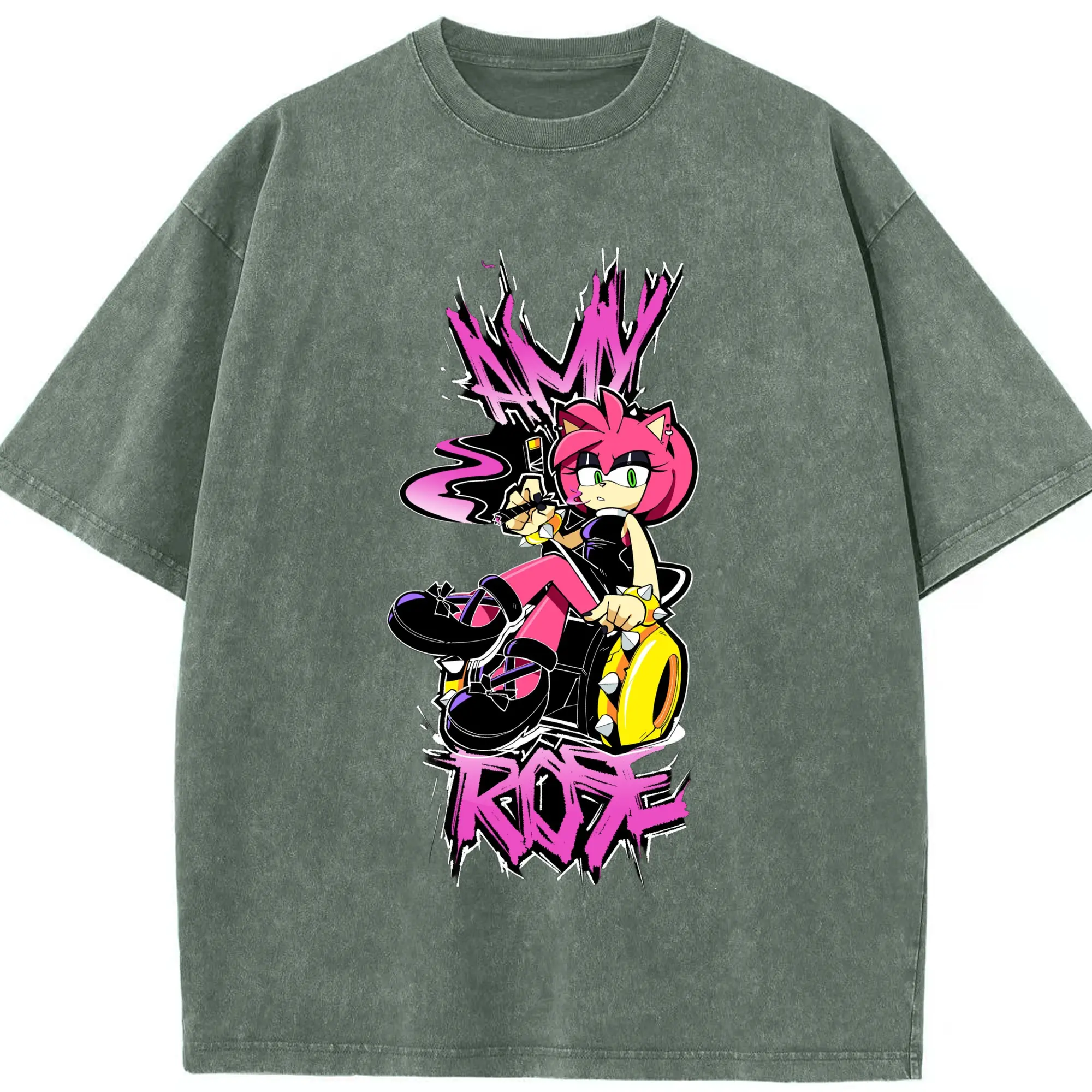 Amy Rose classic tee - Washed Vintage Look 230g Cotton Oversized T-Shirt With Front Heat Transfer Print – Soft, Lightweight, Stylish Fit – Comfortable Casual Wear For Sports & Everyday Use