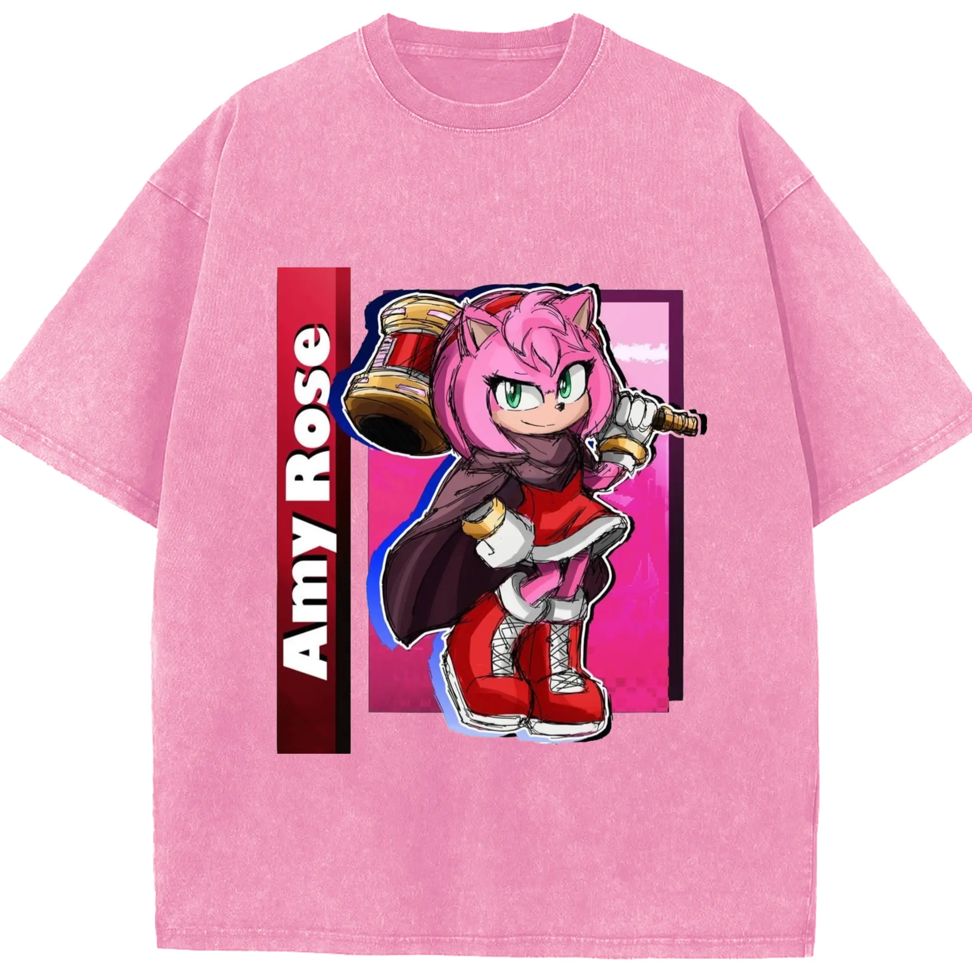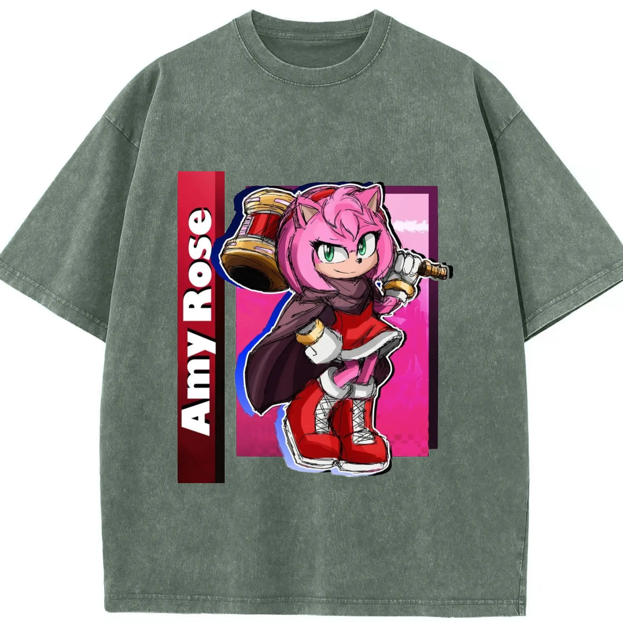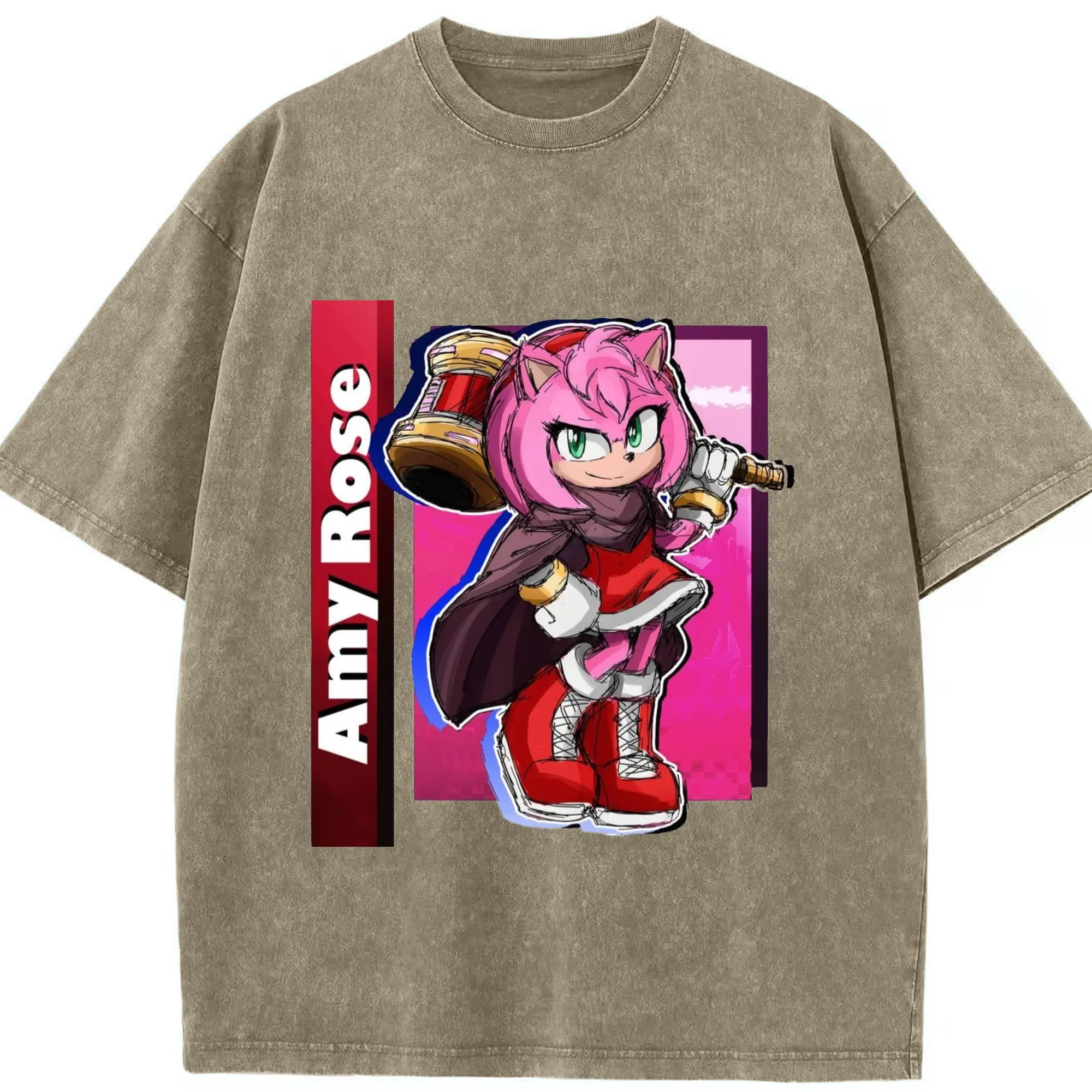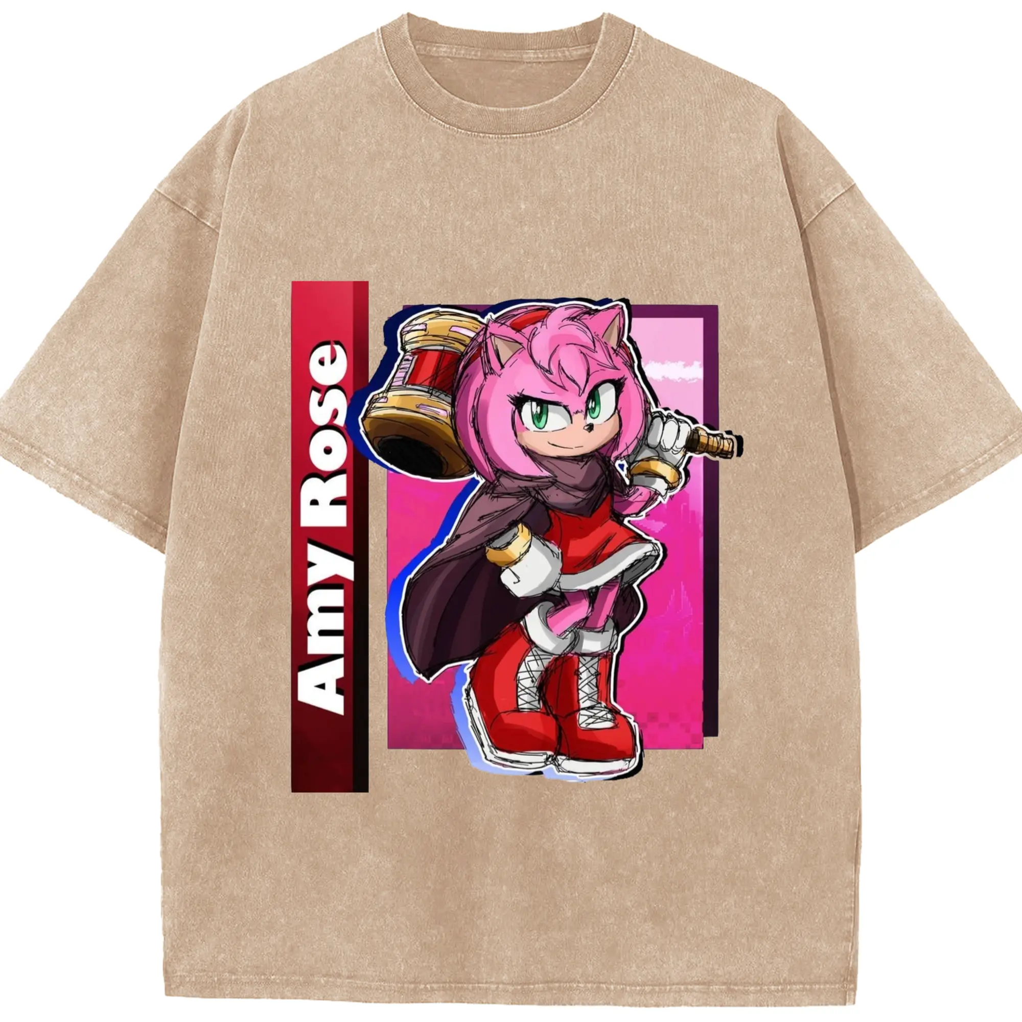 Amy Rose classic t-shirt - Washed Vintage Look 230g Cotton Oversized T-Shirt With Front Heat Transfer Print – Soft, Lightweight, Stylish Fit – Comfortable Casual Wear For Sports & Everyday Use