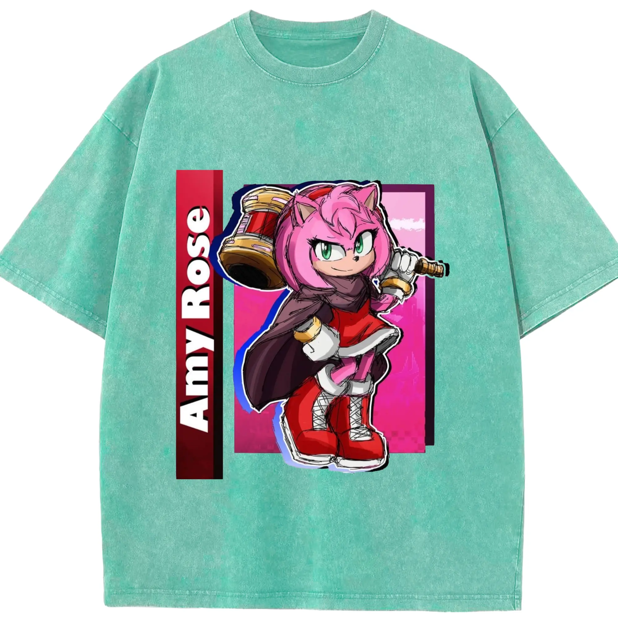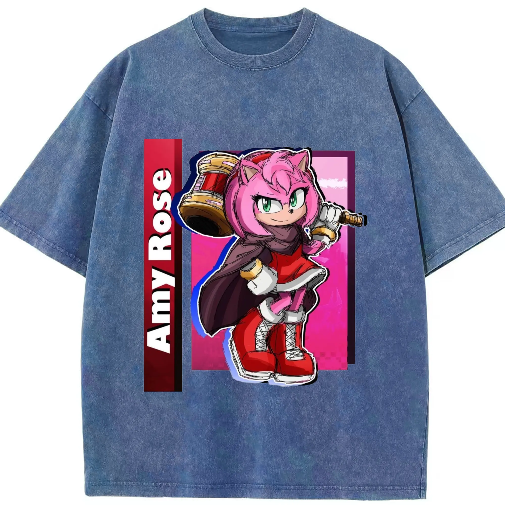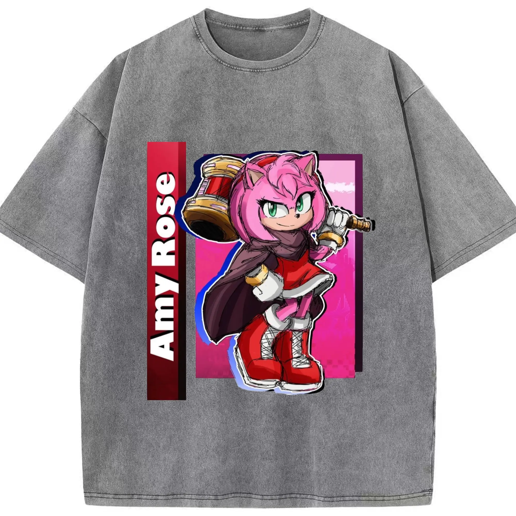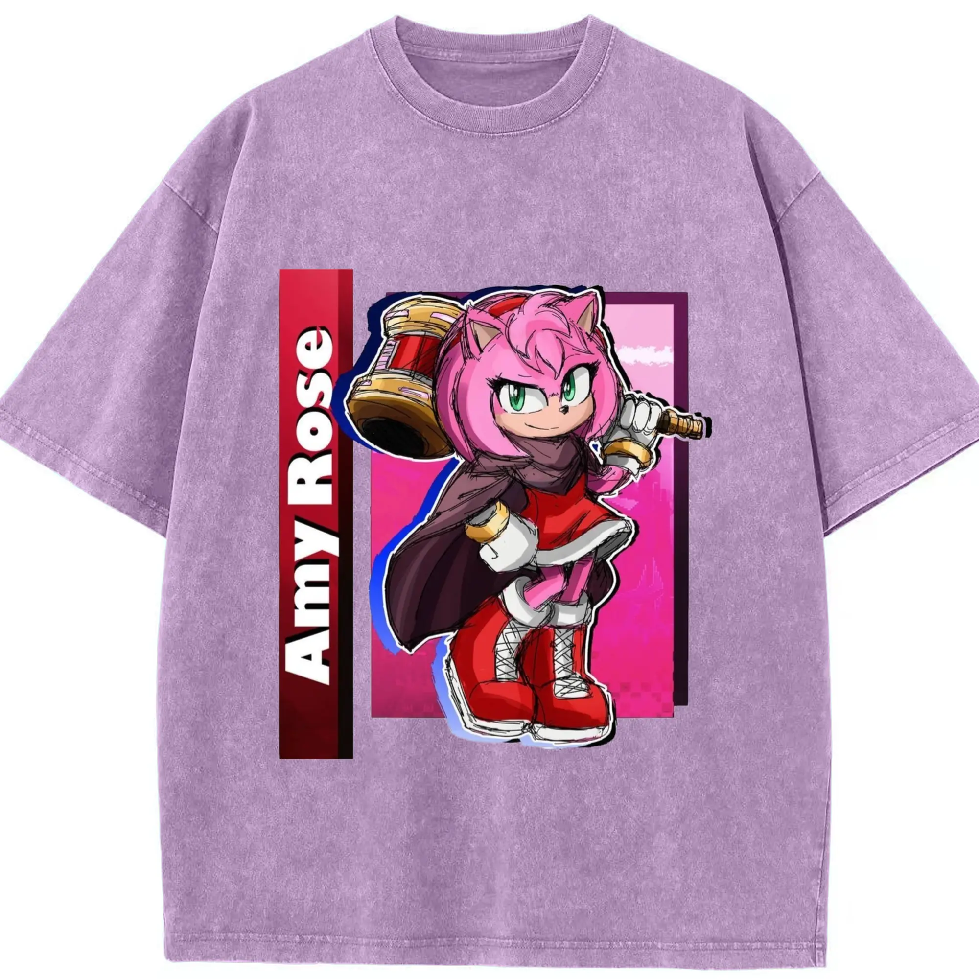 Amy Rose classic t-shirt - Washed Vintage Look 230g Cotton Oversized T-Shirt With Front Heat Transfer Print – Soft, Lightweight, Stylish Fit – Comfortable Casual Wear For Sports & Everyday Use