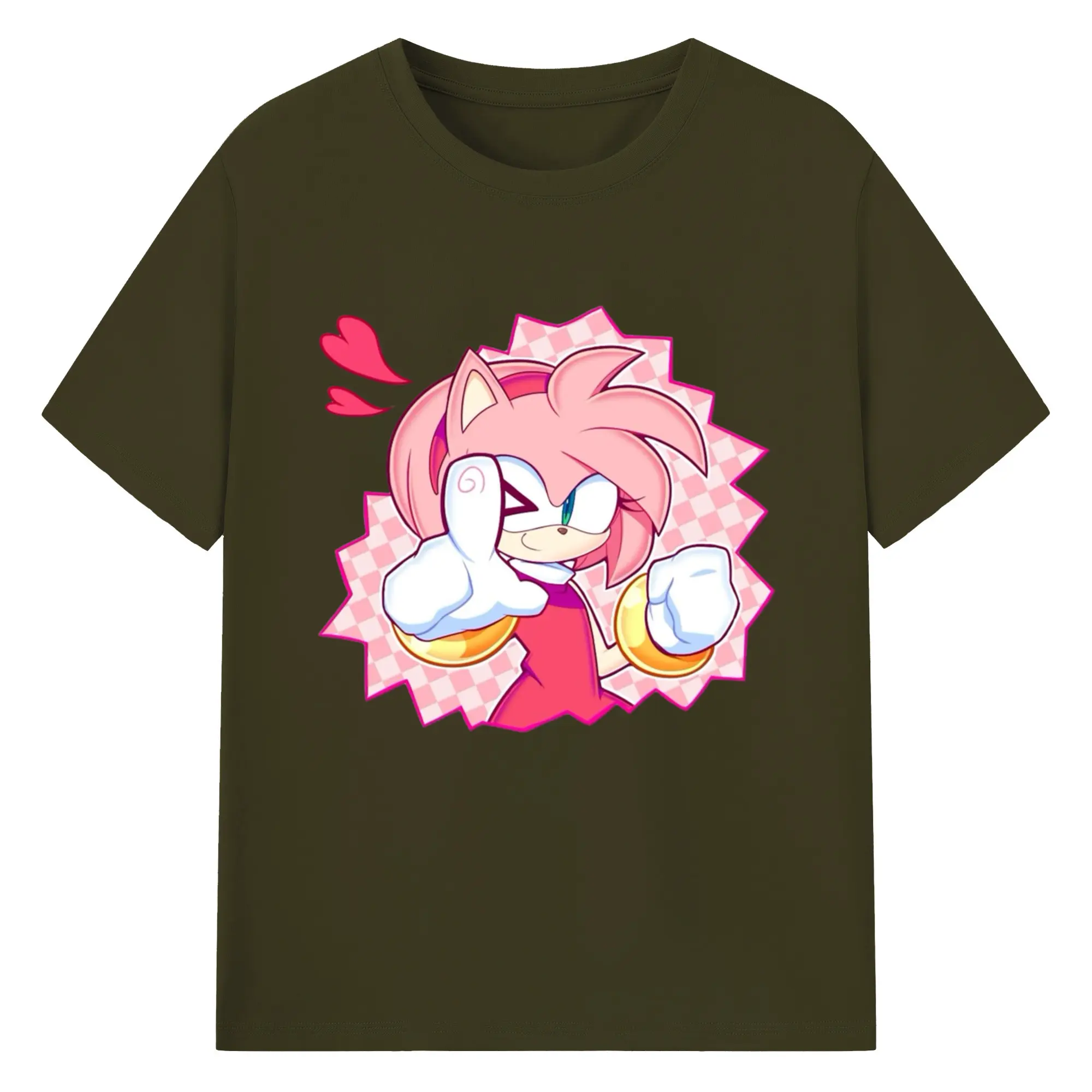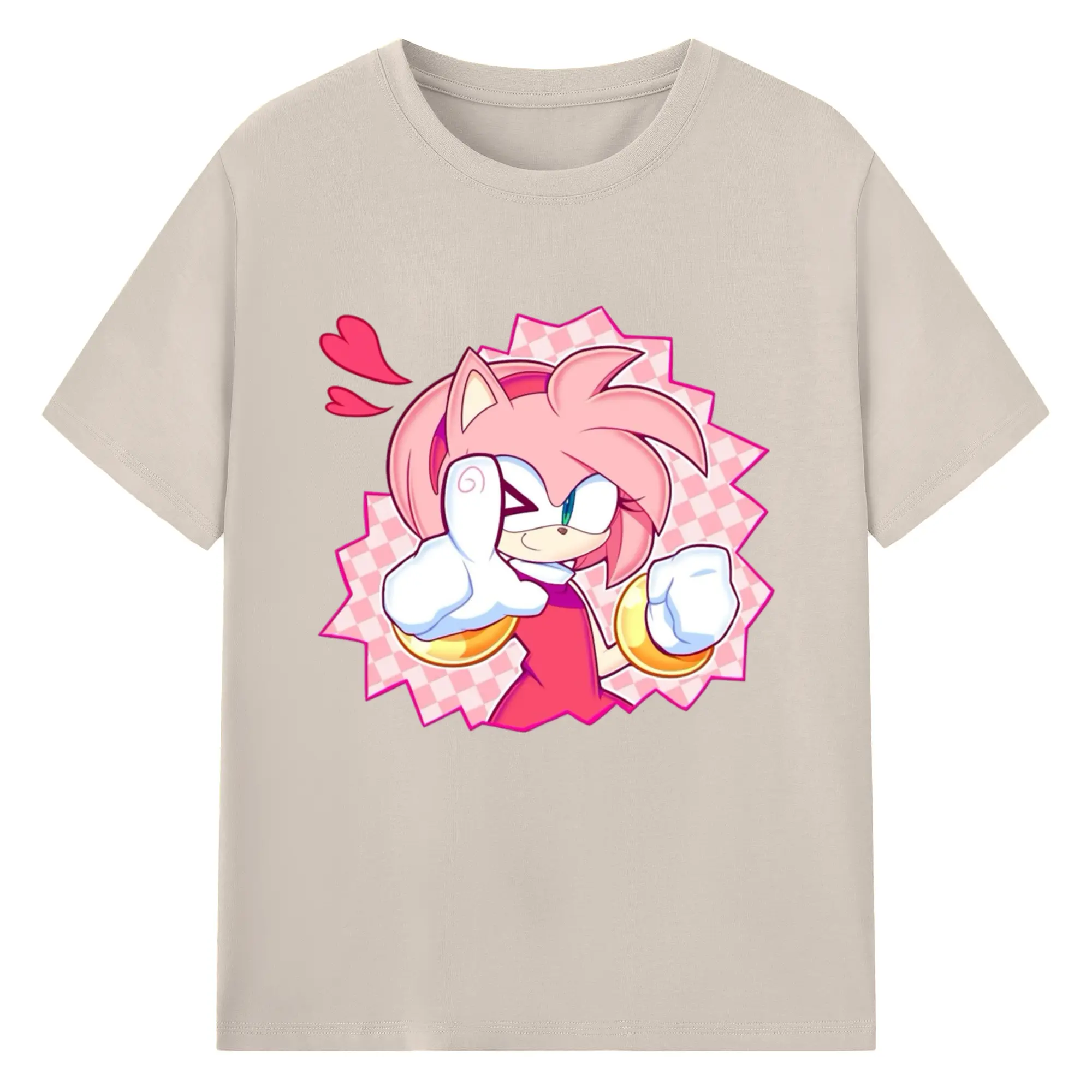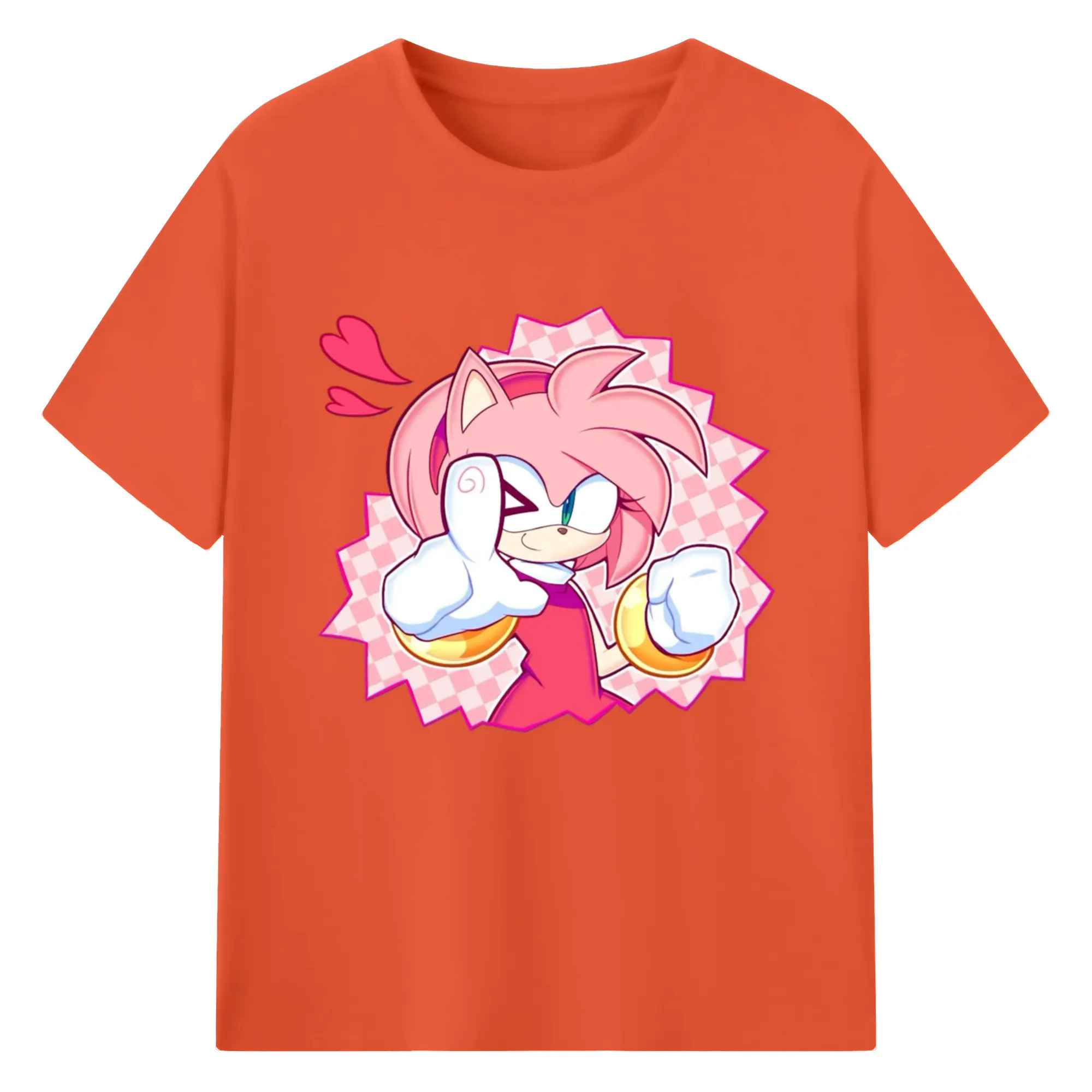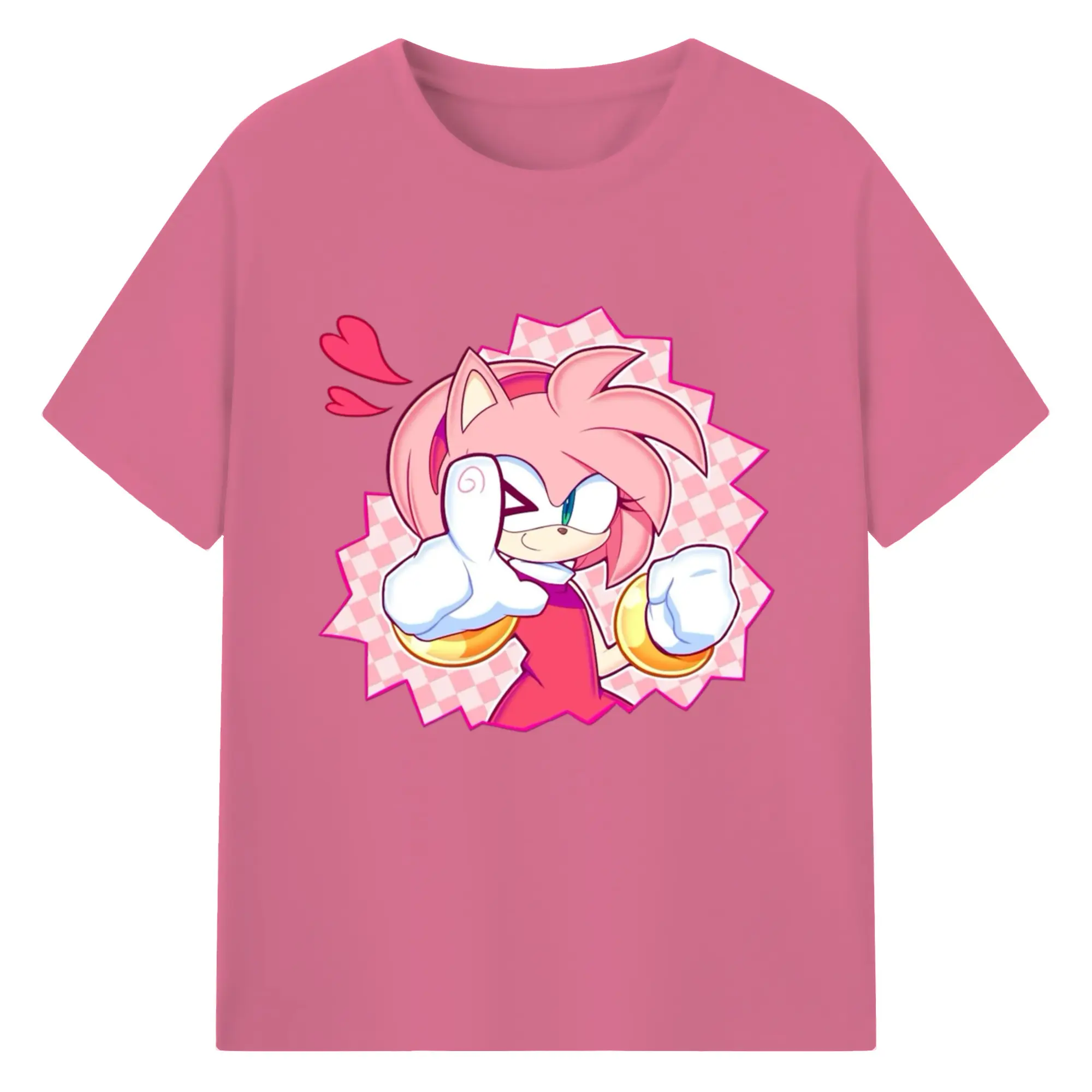 Amy Rose face t-shirt - 180g Cotton T-Shirt With Front Heat Transfer Print – Soft, Lightweight, Fitted Design – Comfortable Casual Wear For Sports & Everyday Use