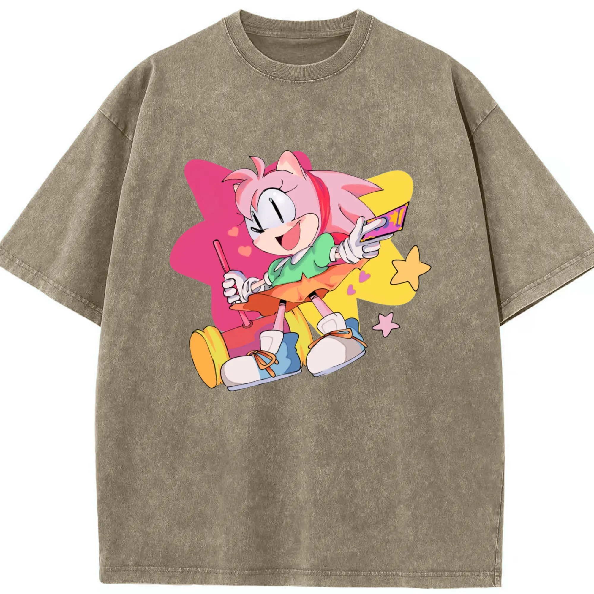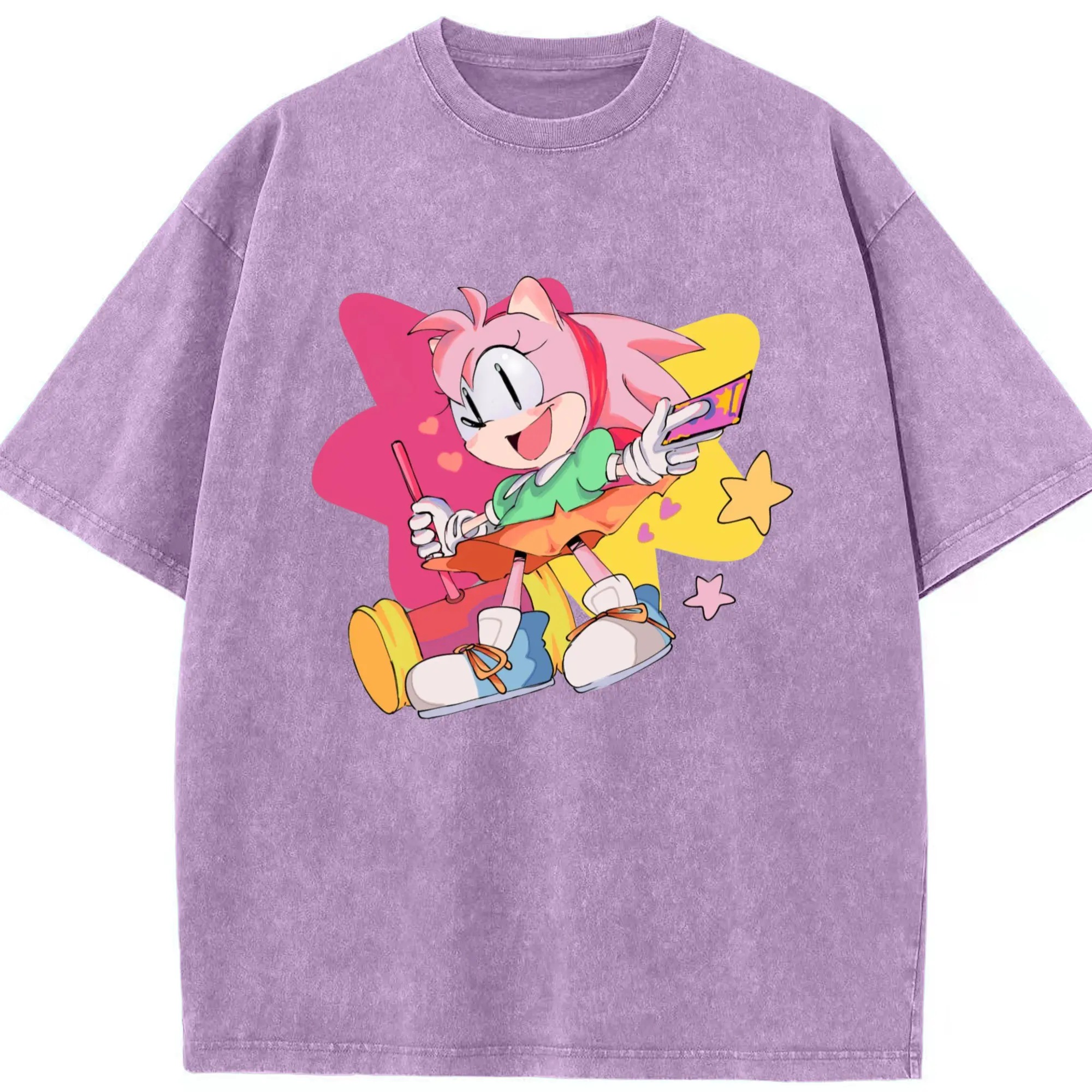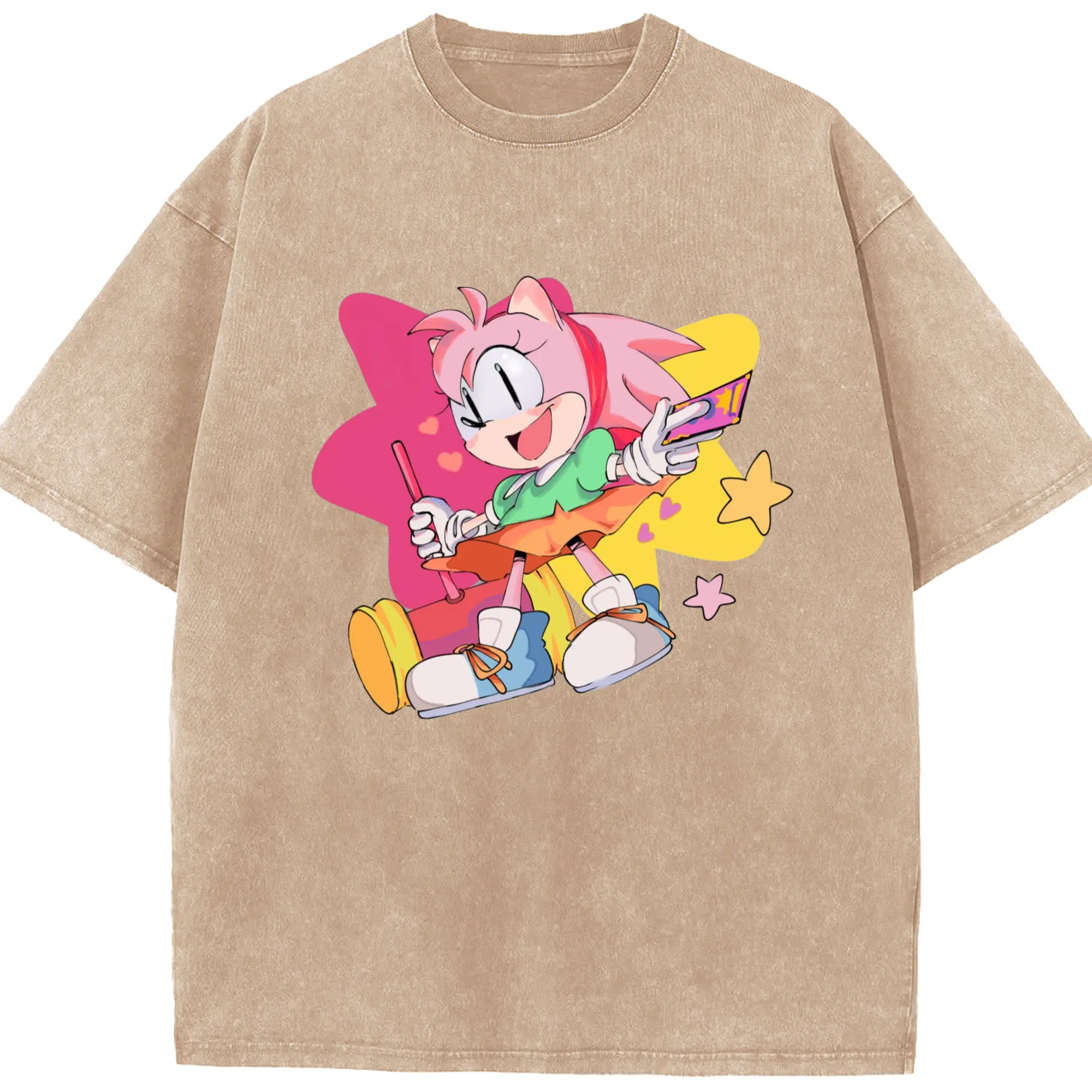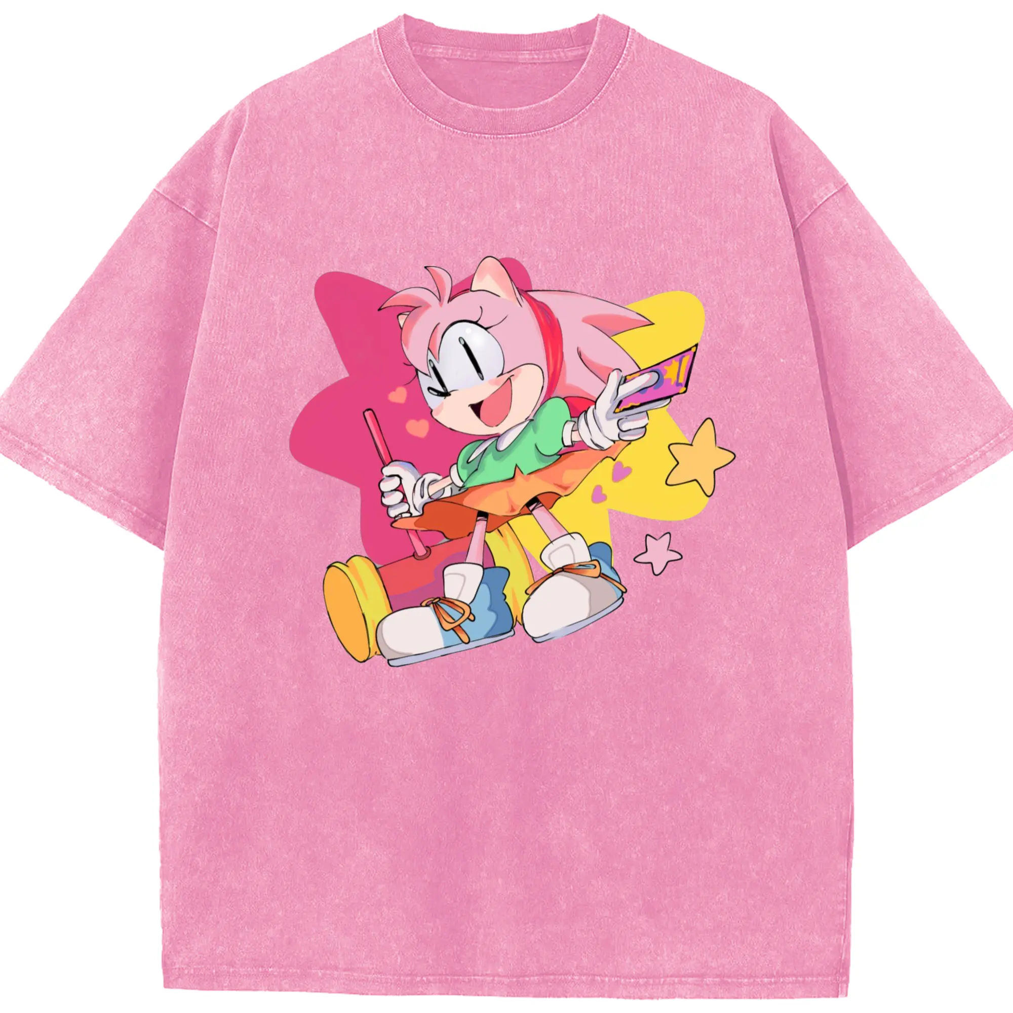 Amy Rose shirt - Washed Vintage Look 230g Cotton Oversized T-Shirt With Front Heat Transfer Print – Soft, Lightweight, Stylish Fit – Comfortable Casual Wear For Sports & Everyday Use