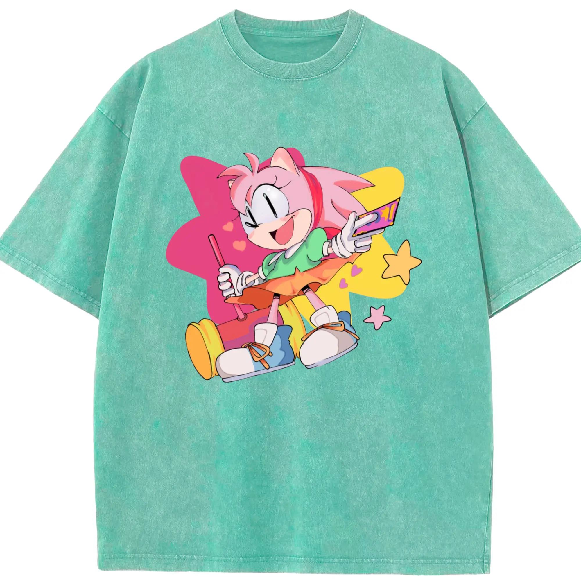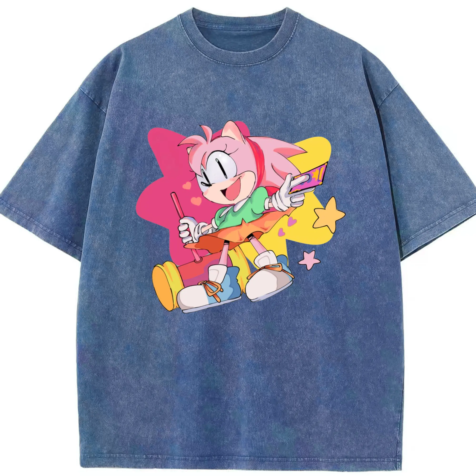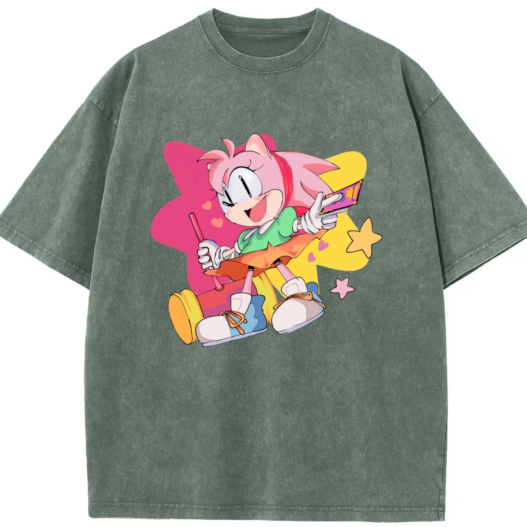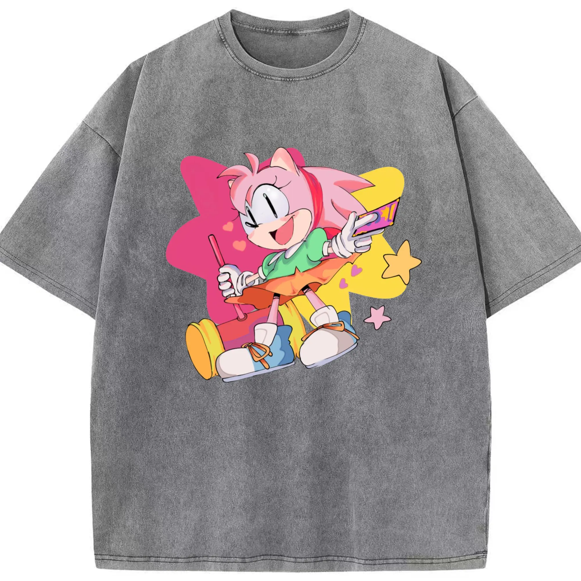 Amy Rose shirt - Washed Vintage Look 230g Cotton Oversized T-Shirt With Front Heat Transfer Print – Soft, Lightweight, Stylish Fit – Comfortable Casual Wear For Sports & Everyday Use
