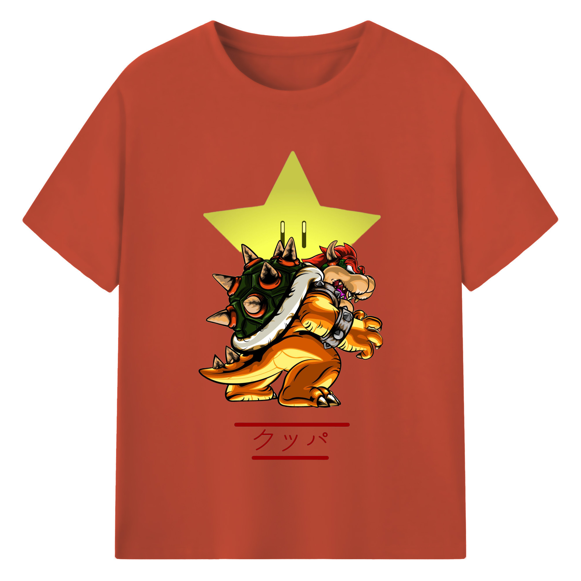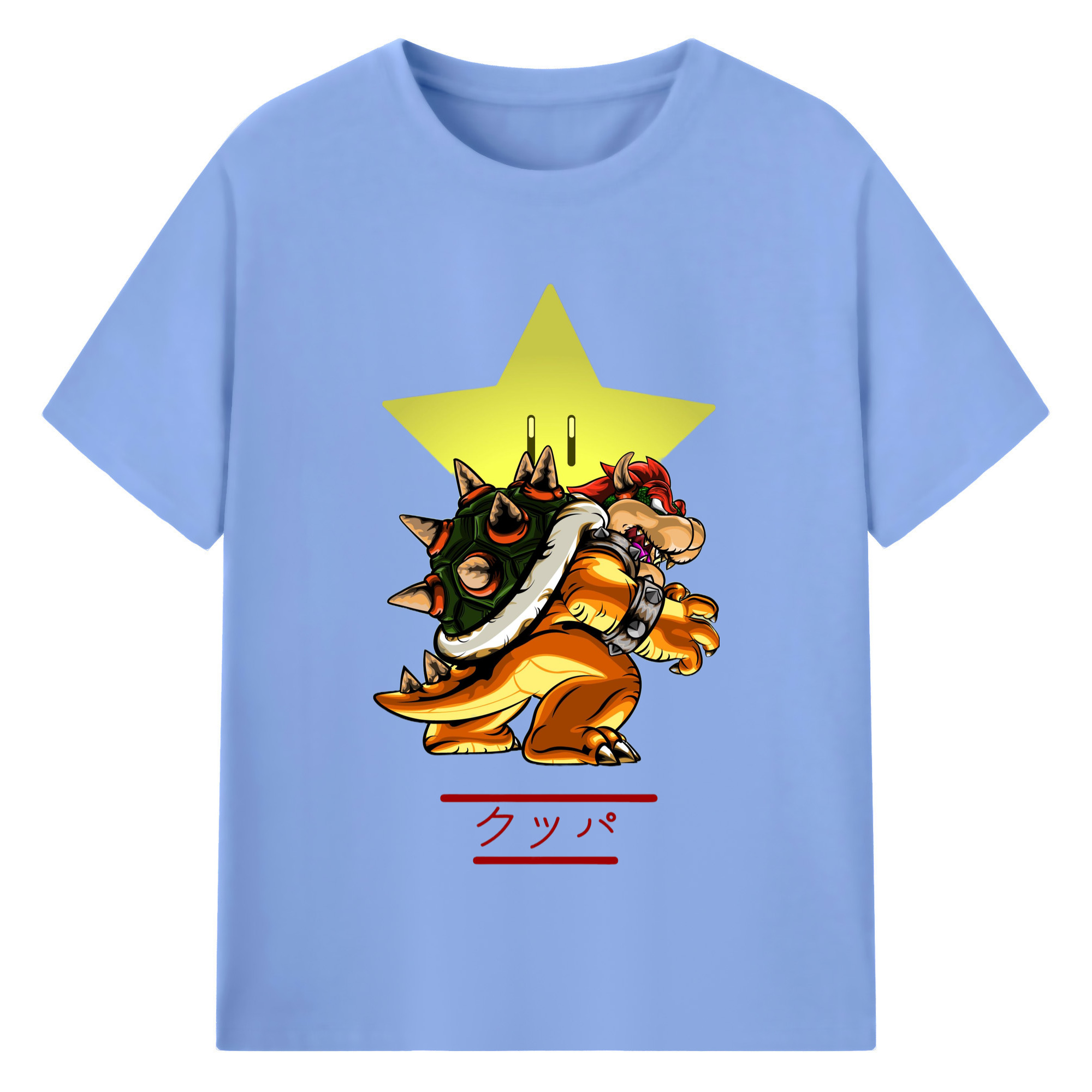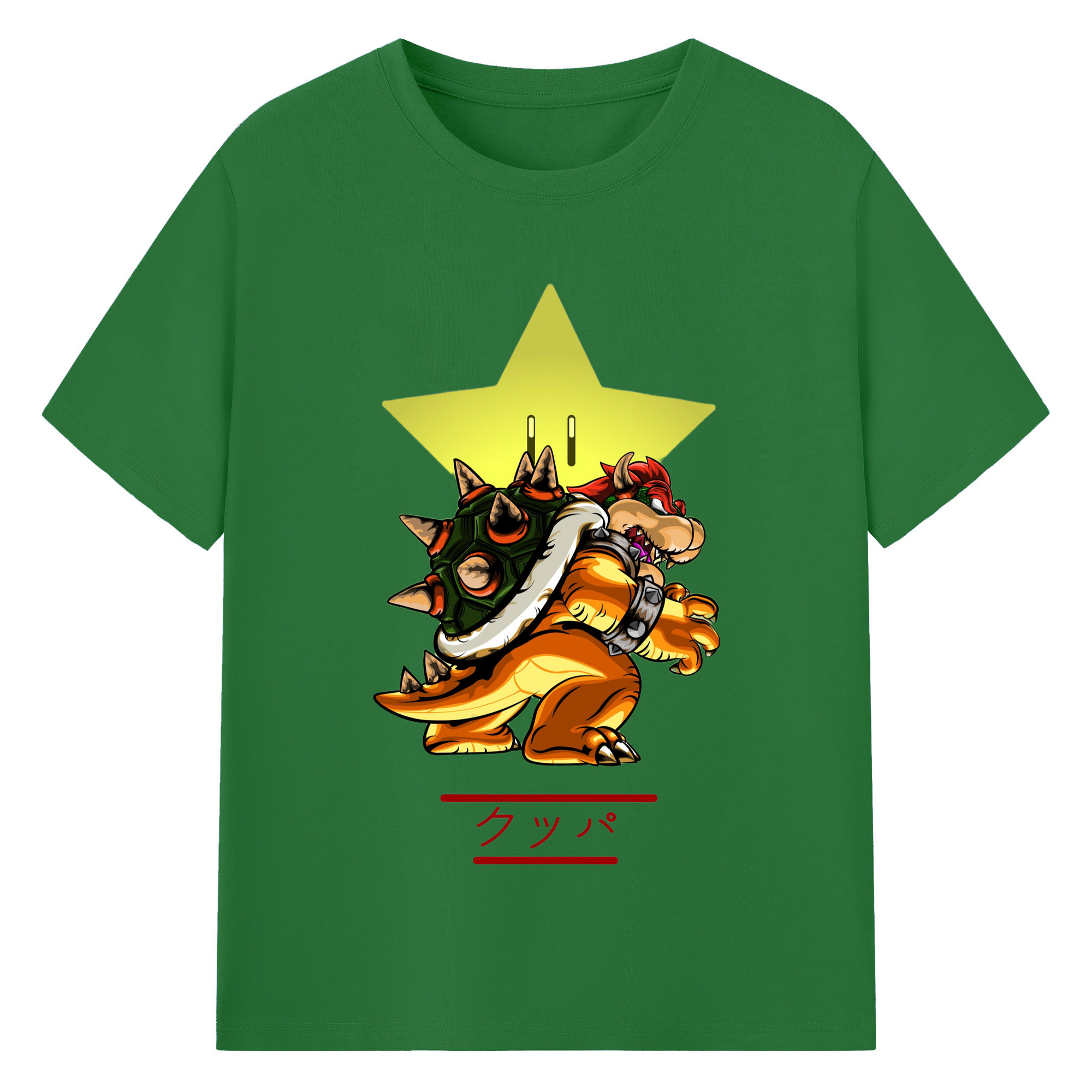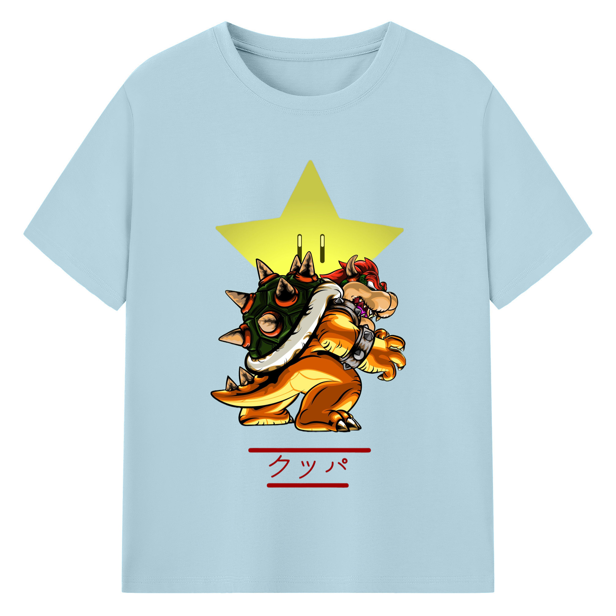 Bowser King Koopa Cartoon Graphic T-Shirt - 180g Cotton T-Shirt With Front Heat Transfer Print – Soft, Lightweight, Fitted Design – Comfortable Casual Wear For Sports & Everyday Use