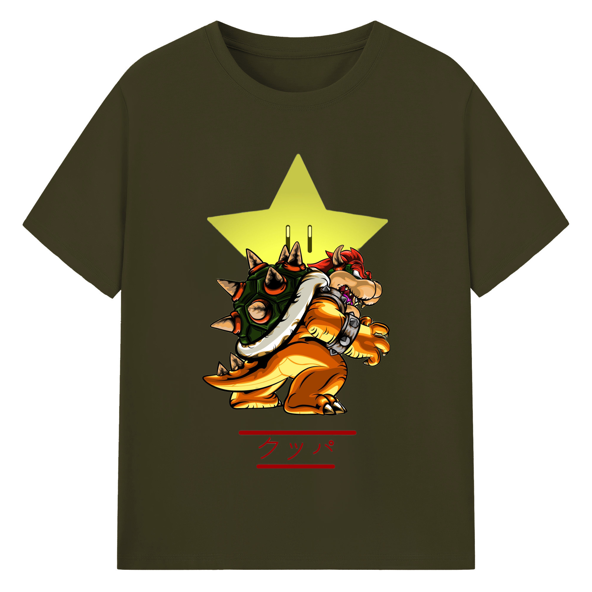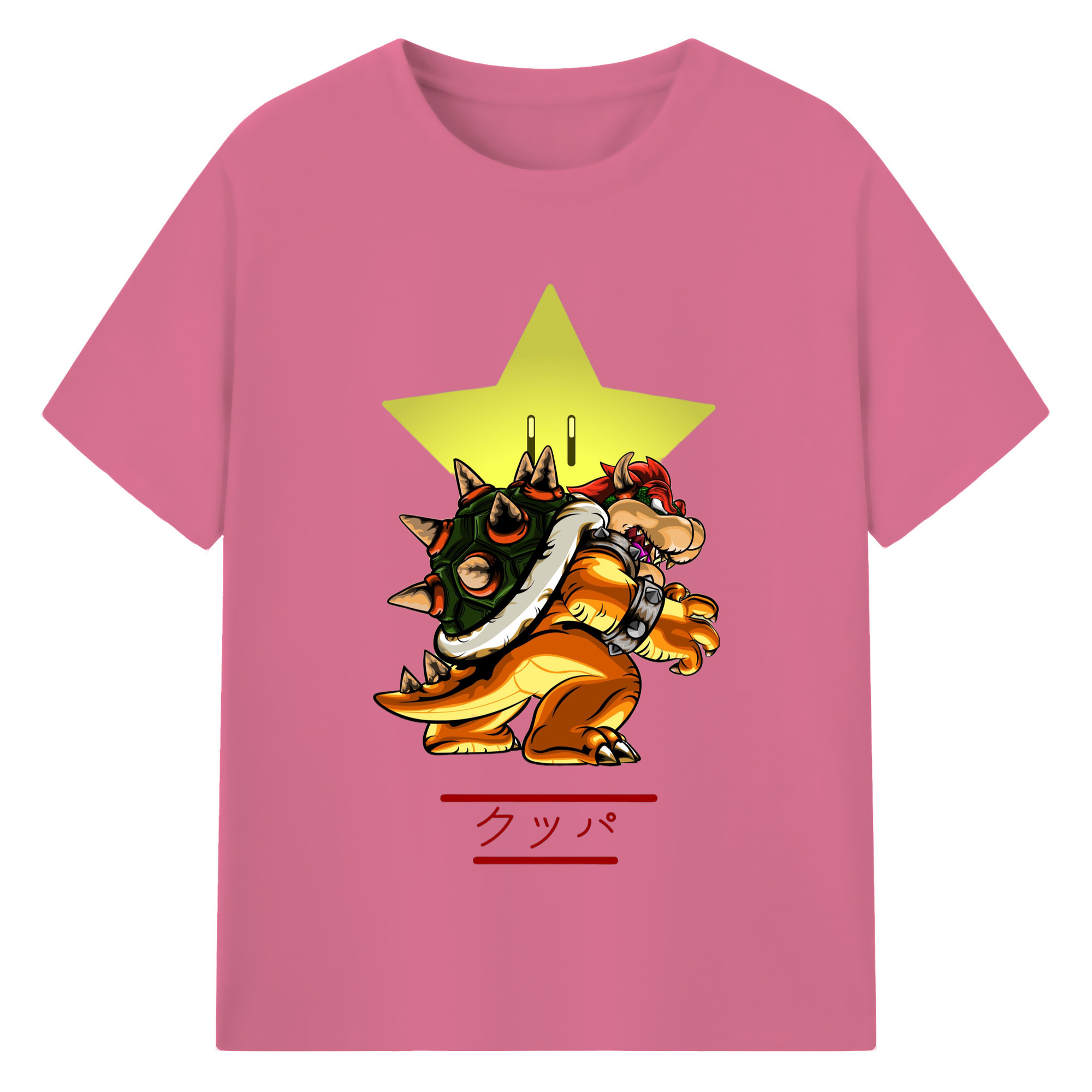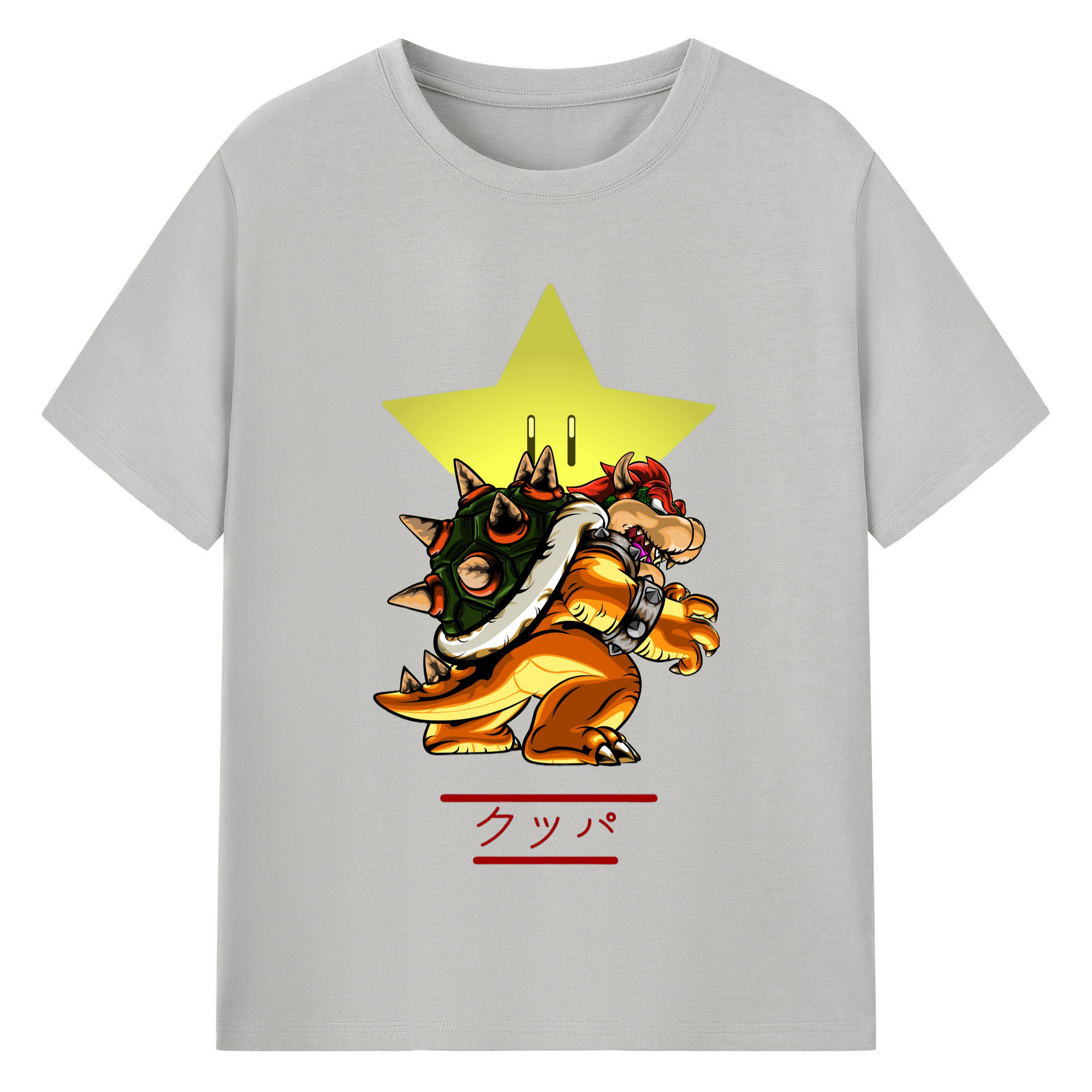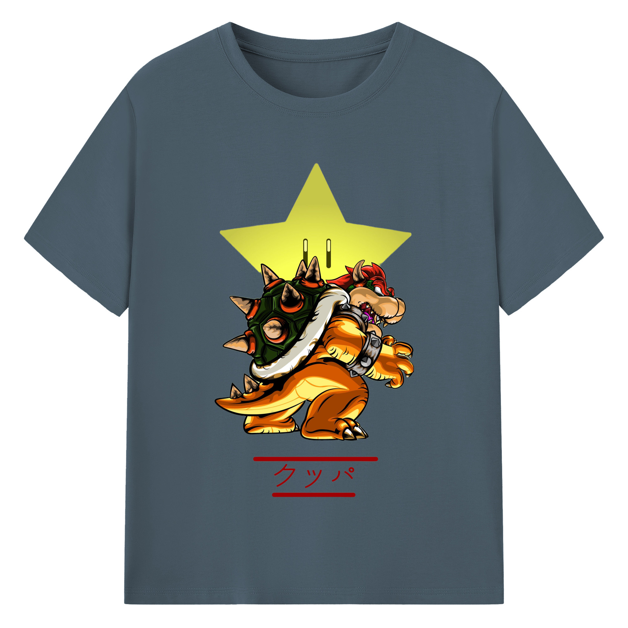 Bowser King Koopa Cartoon Graphic T-Shirt - 180g Cotton T-Shirt With Front Heat Transfer Print – Soft, Lightweight, Fitted Design – Comfortable Casual Wear For Sports & Everyday Use