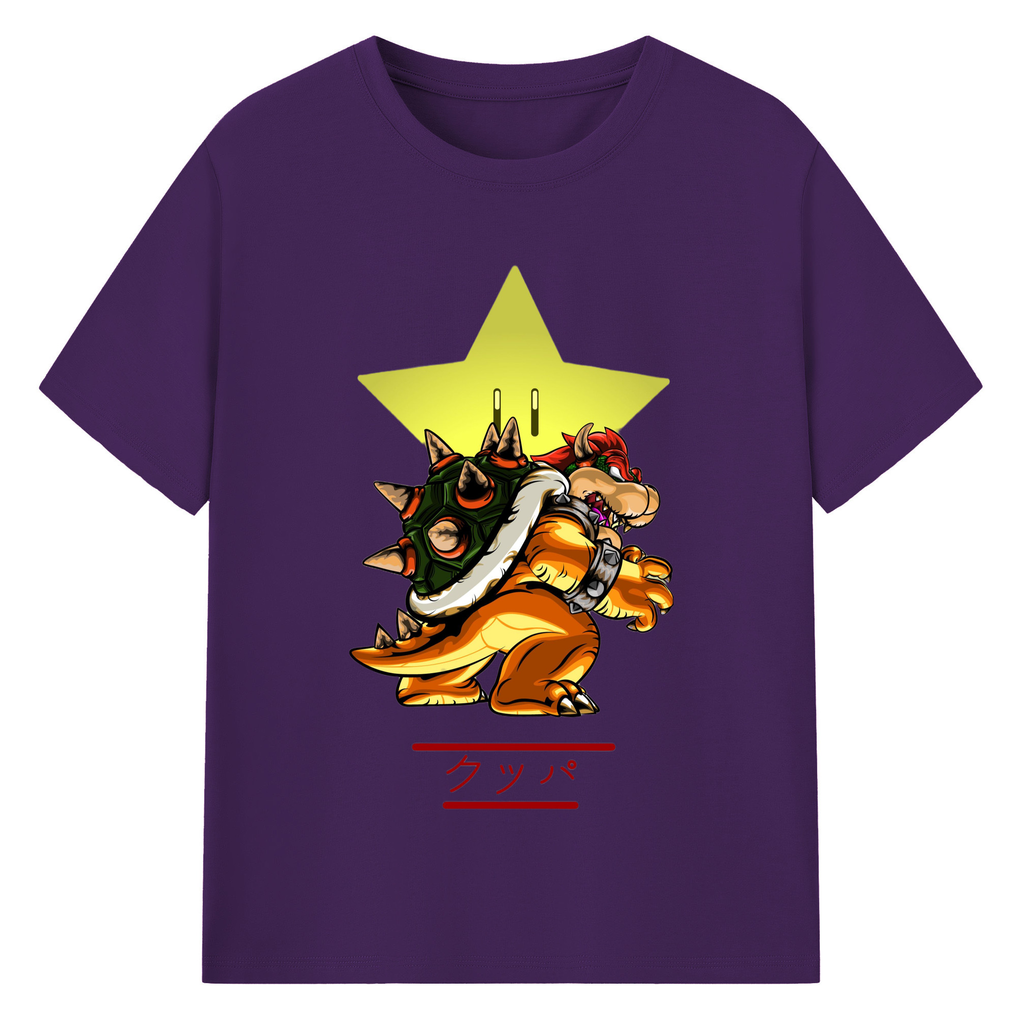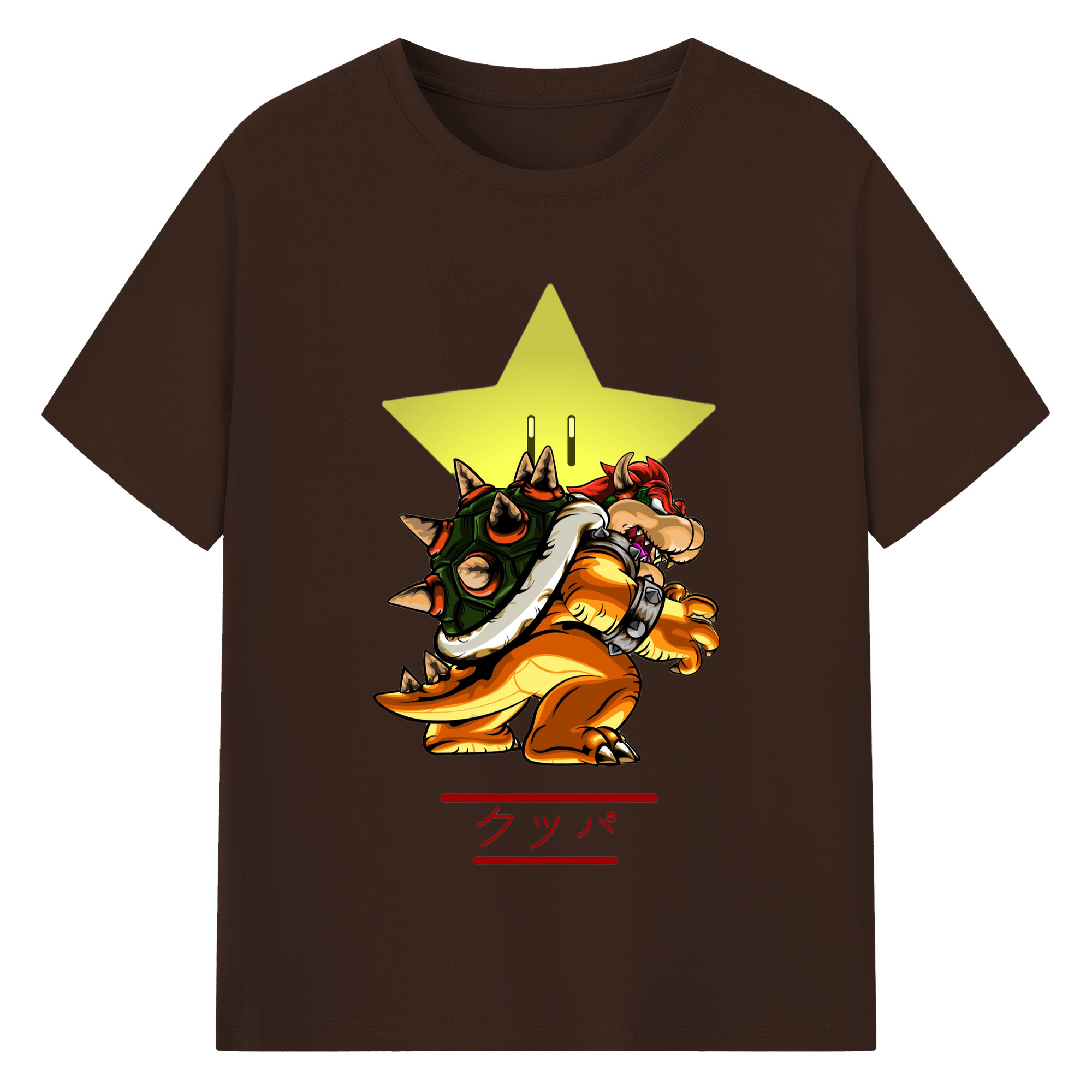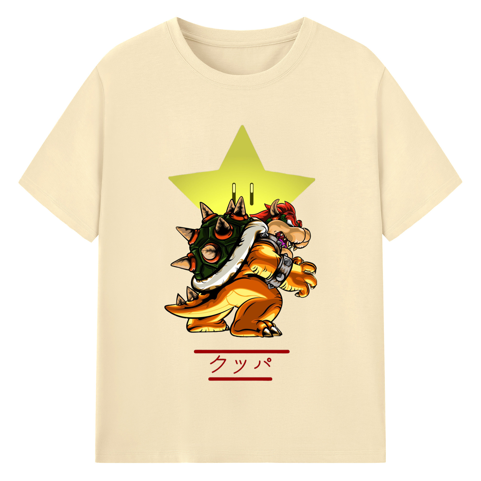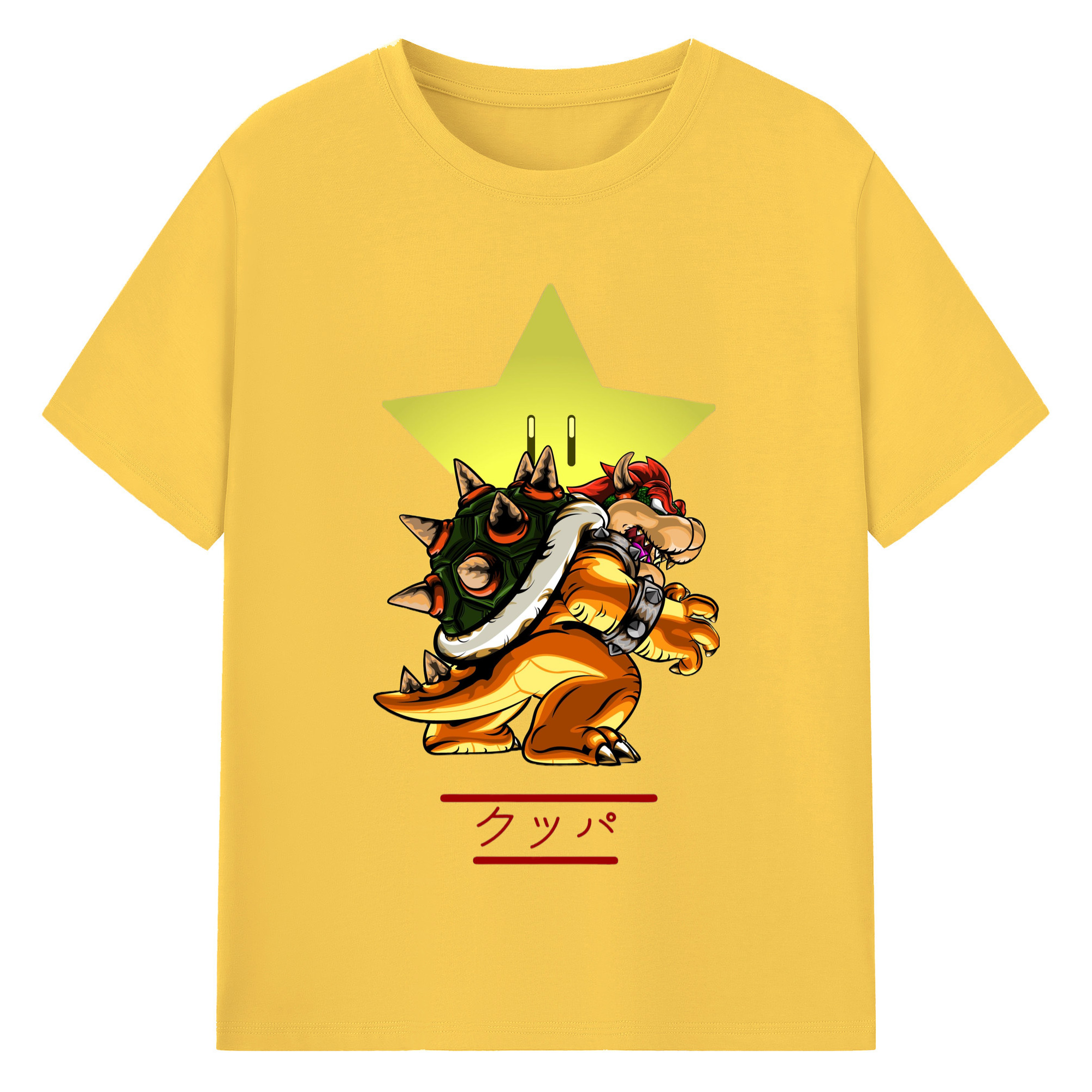 Bowser King Koopa Cartoon Graphic T-Shirt - 180g Cotton T-Shirt With Front Heat Transfer Print – Soft, Lightweight, Fitted Design – Comfortable Casual Wear For Sports & Everyday Use