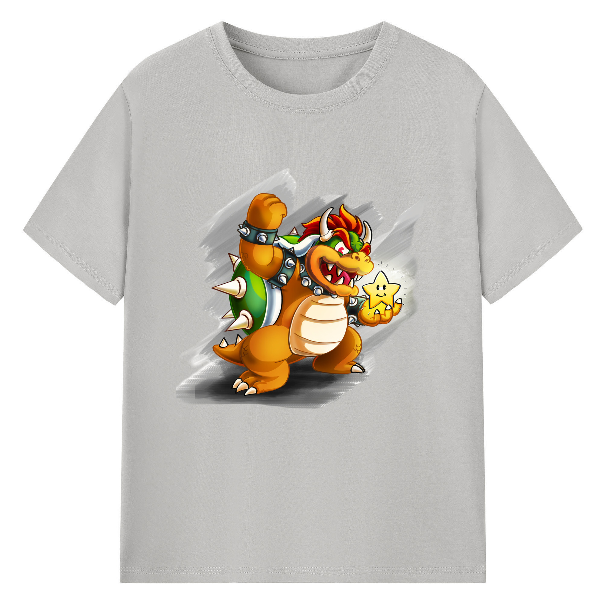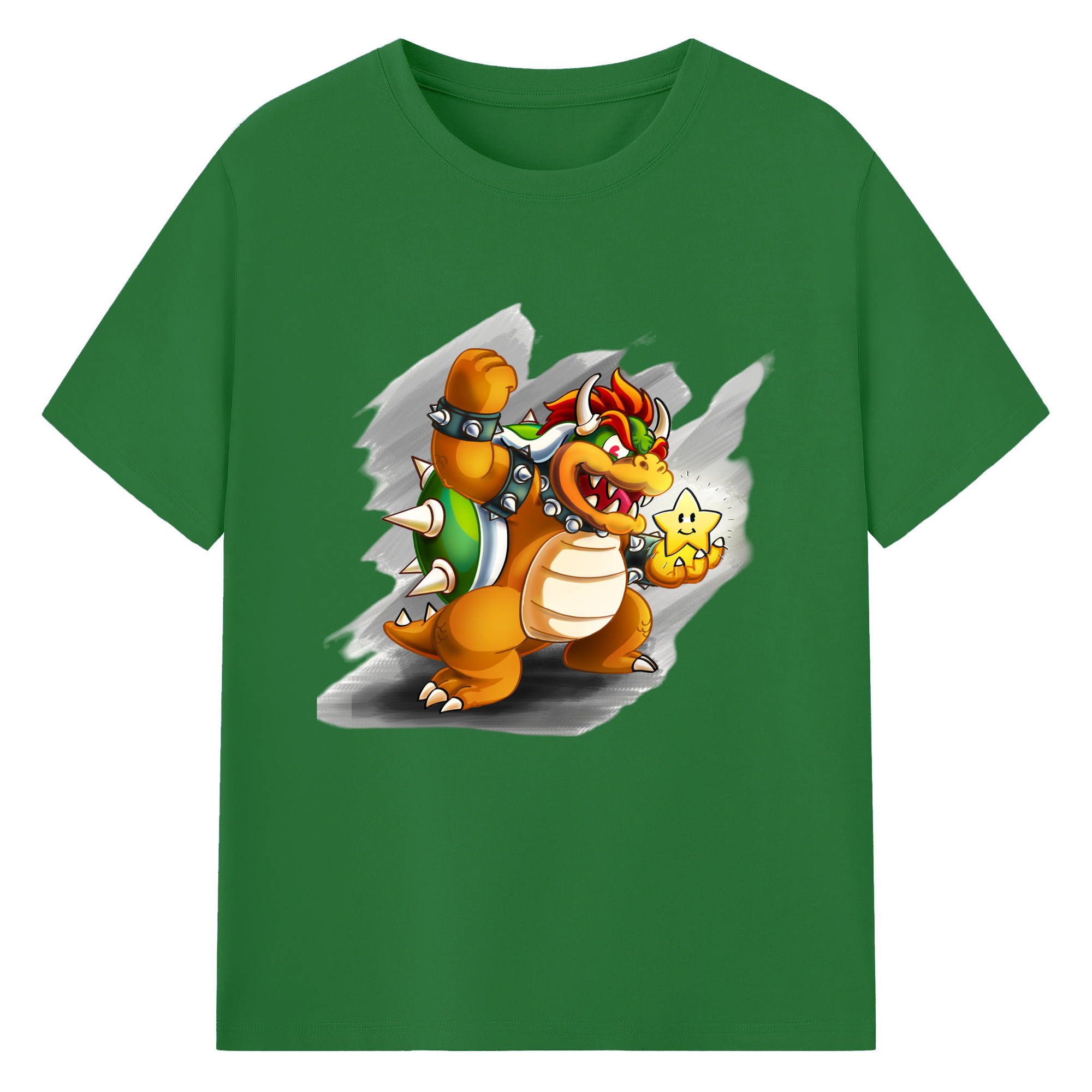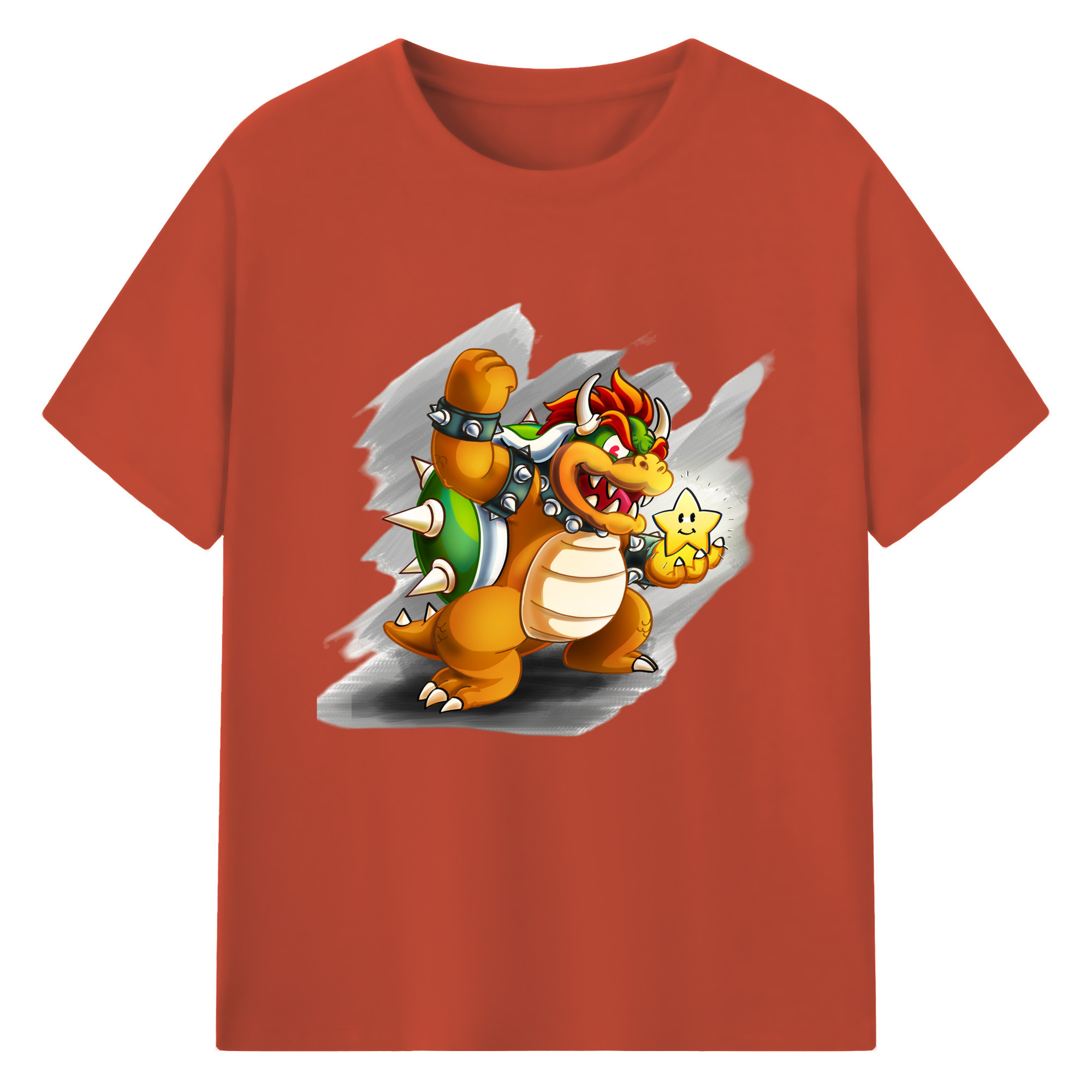 Bowser King Koopa celebratory gesture Graphic T-Shirt - 180g Cotton T-Shirt With Front Heat Transfer Print – Soft, Lightweight, Fitted Design – Comfortable Casual Wear For Sports & Everyday Use
