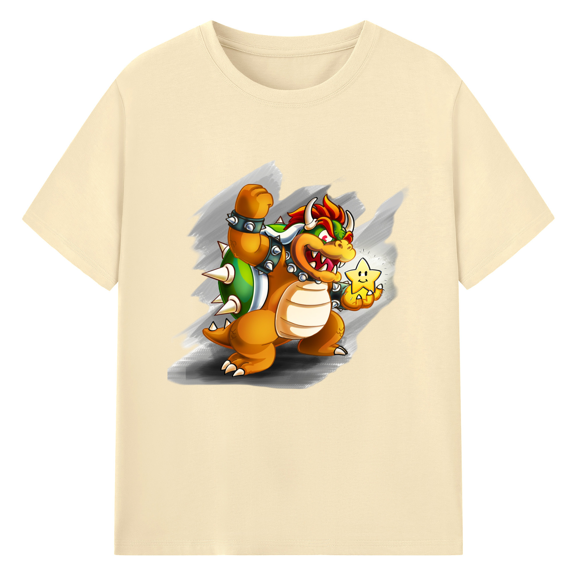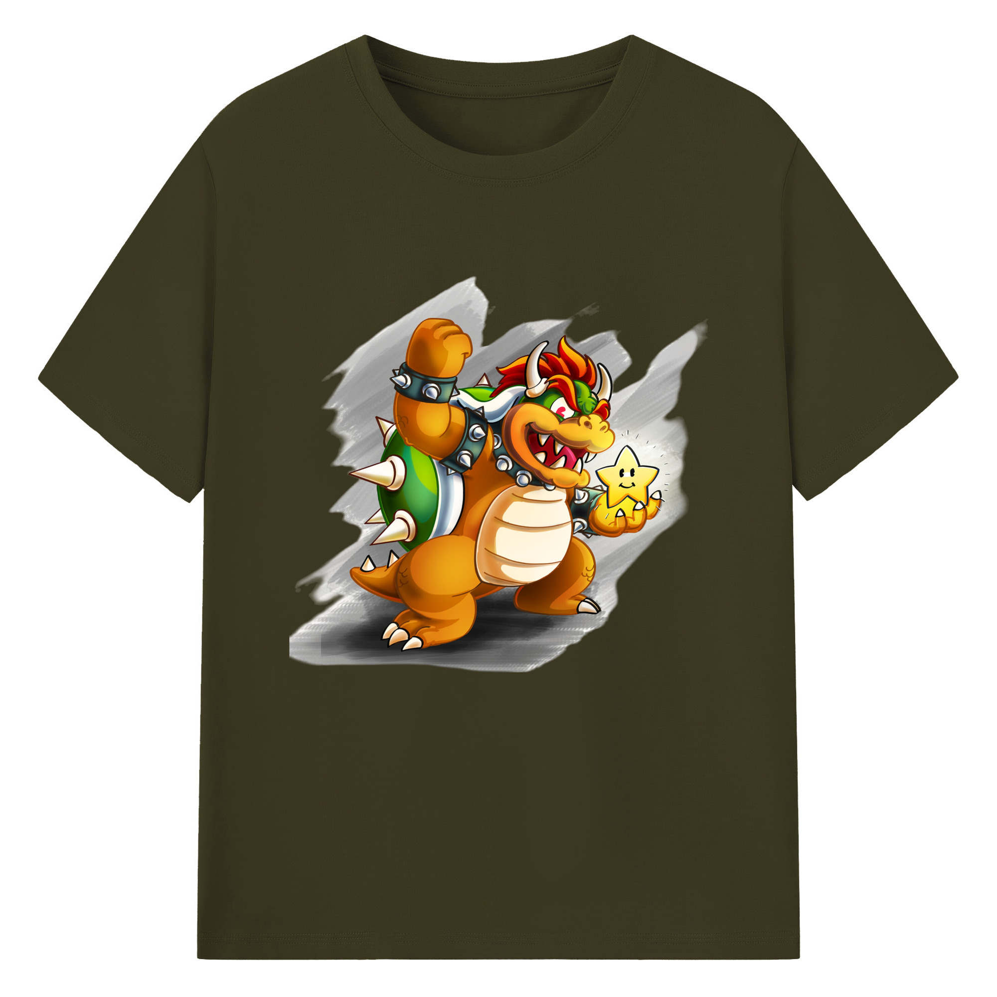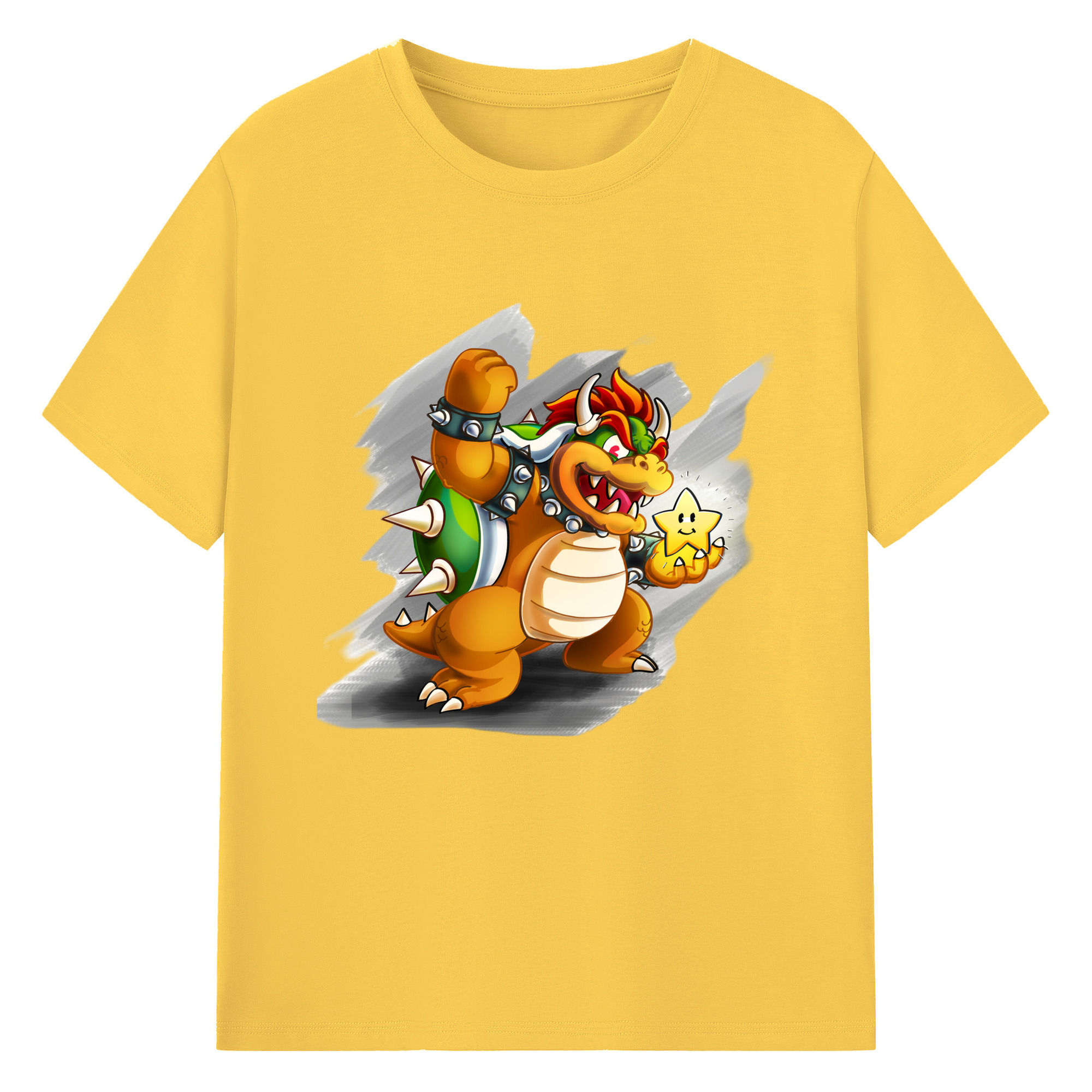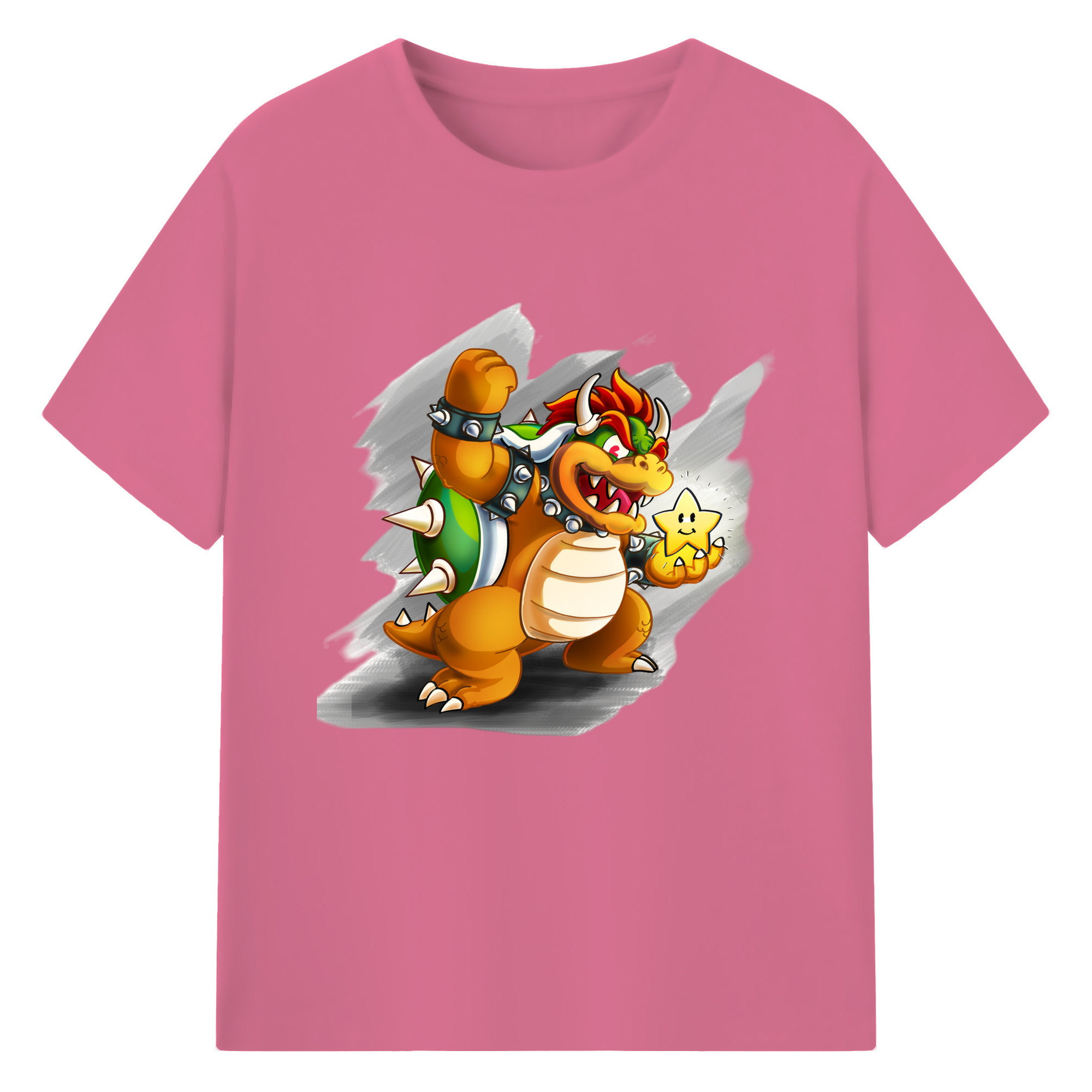 Bowser King Koopa celebratory gesture Graphic T-Shirt - 180g Cotton T-Shirt With Front Heat Transfer Print – Soft, Lightweight, Fitted Design – Comfortable Casual Wear For Sports & Everyday Use