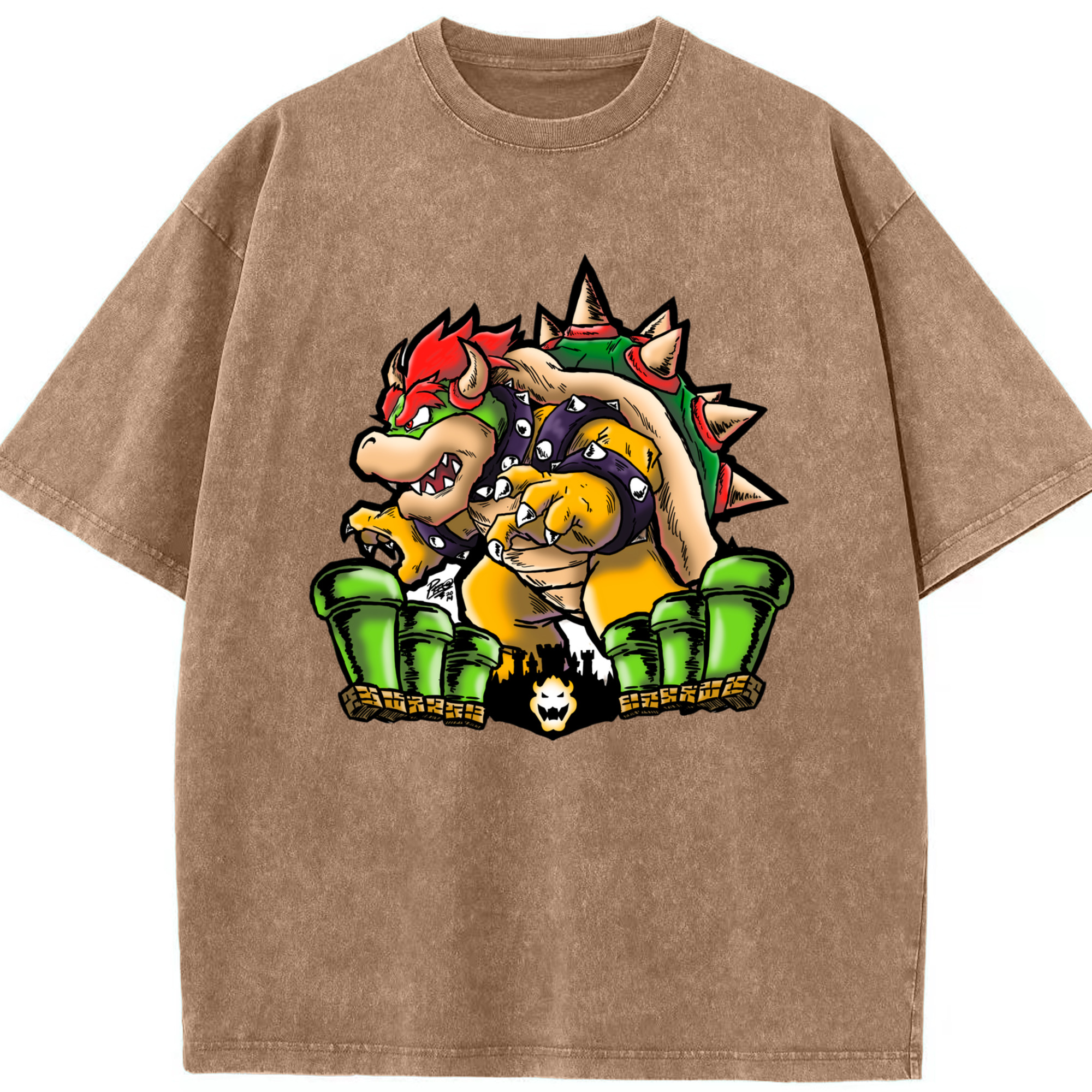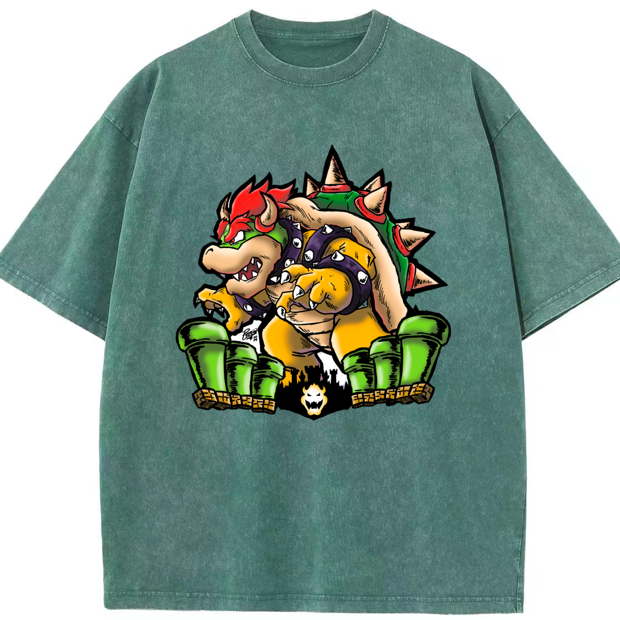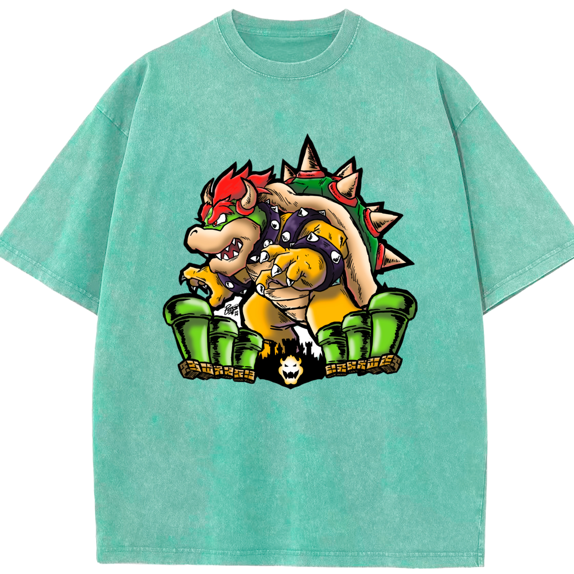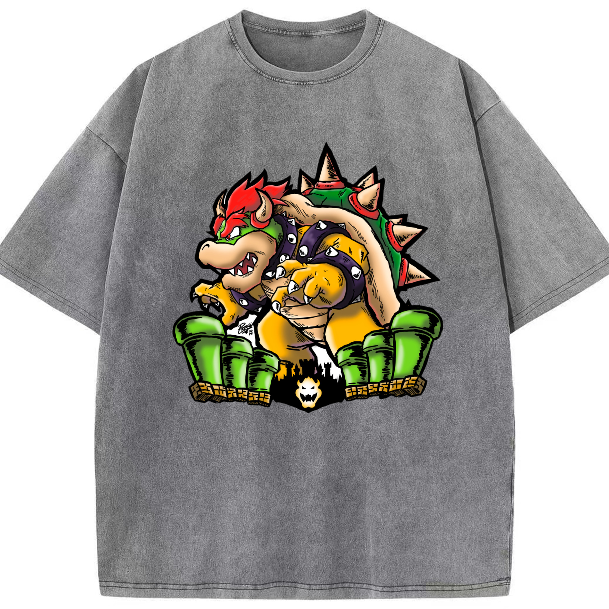 Bowser King Koopa the Great Demon King Appears Graphic T-Shirt - Washed Vintage Look 230g Cotton Oversized T-Shirt With Front Heat Transfer Print – Soft, Lightweight, Stylish Fit – Comfortable Casual Wear For Sports & Everyday Use