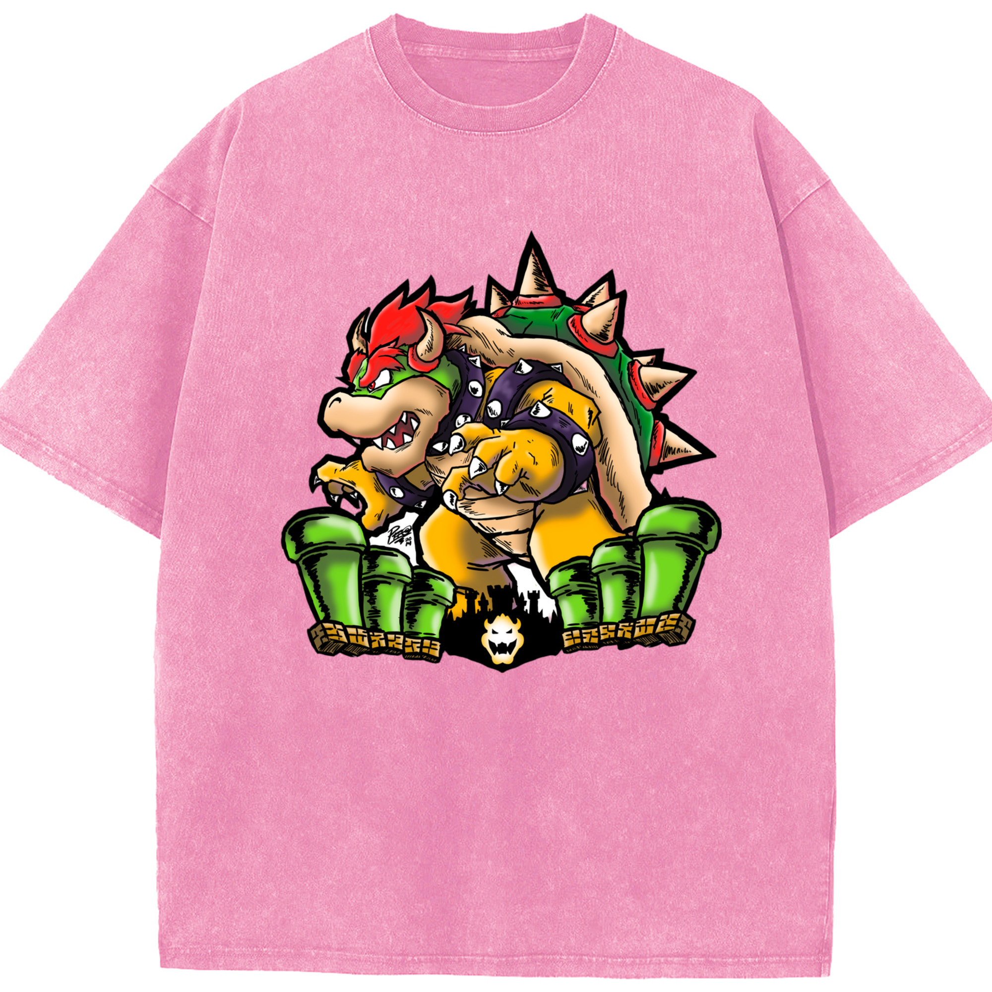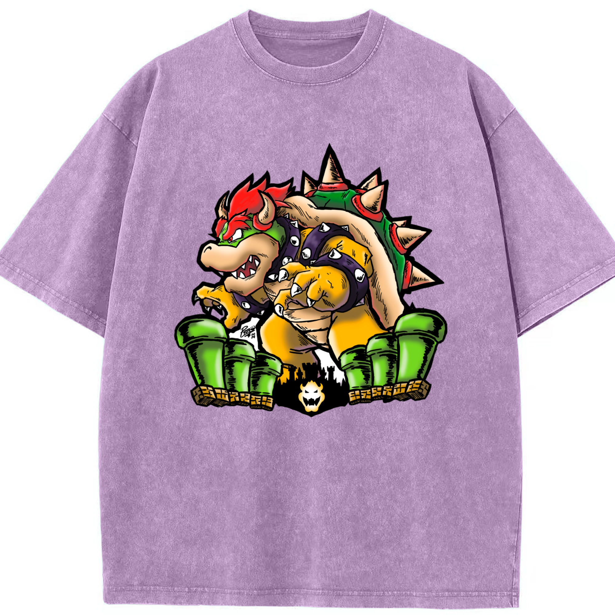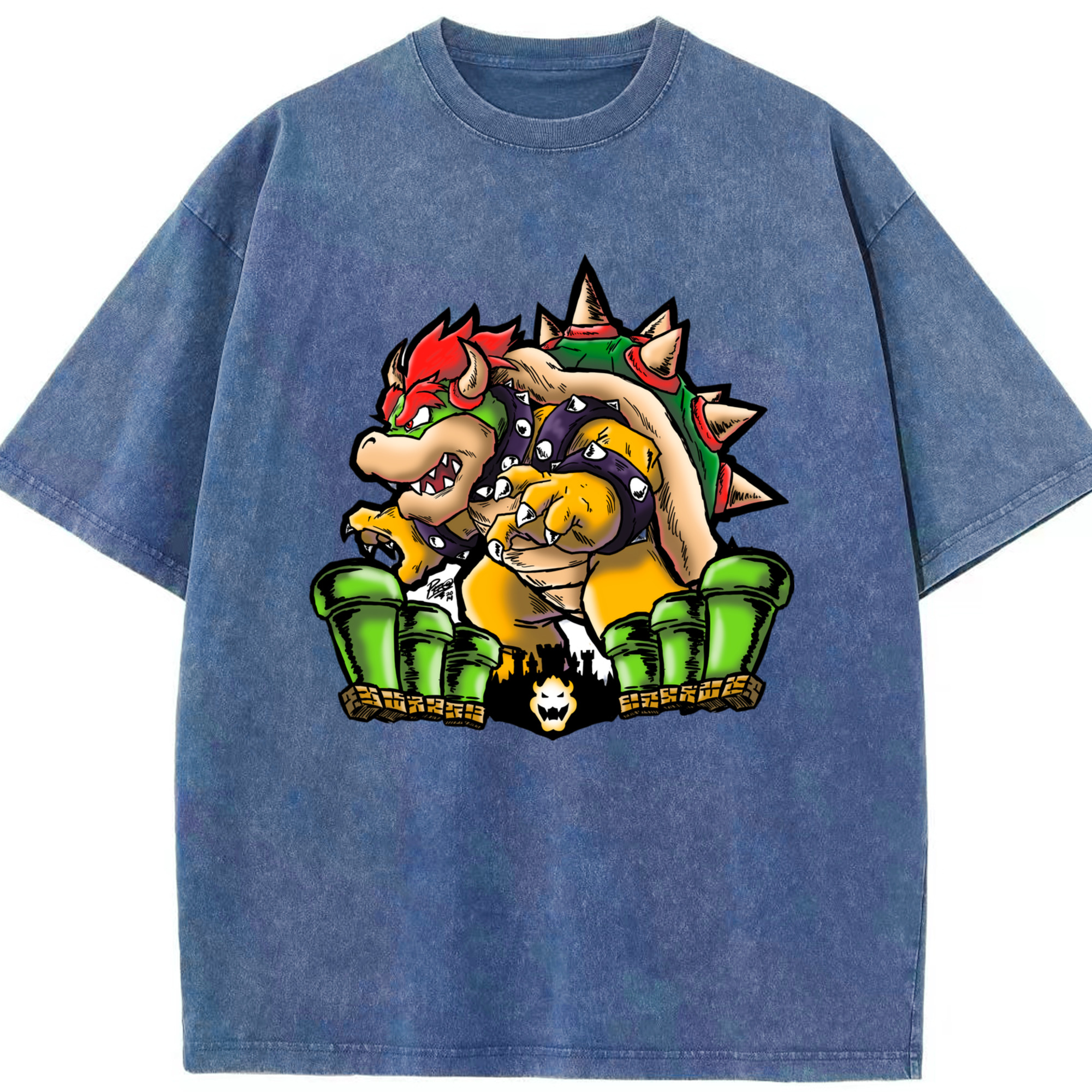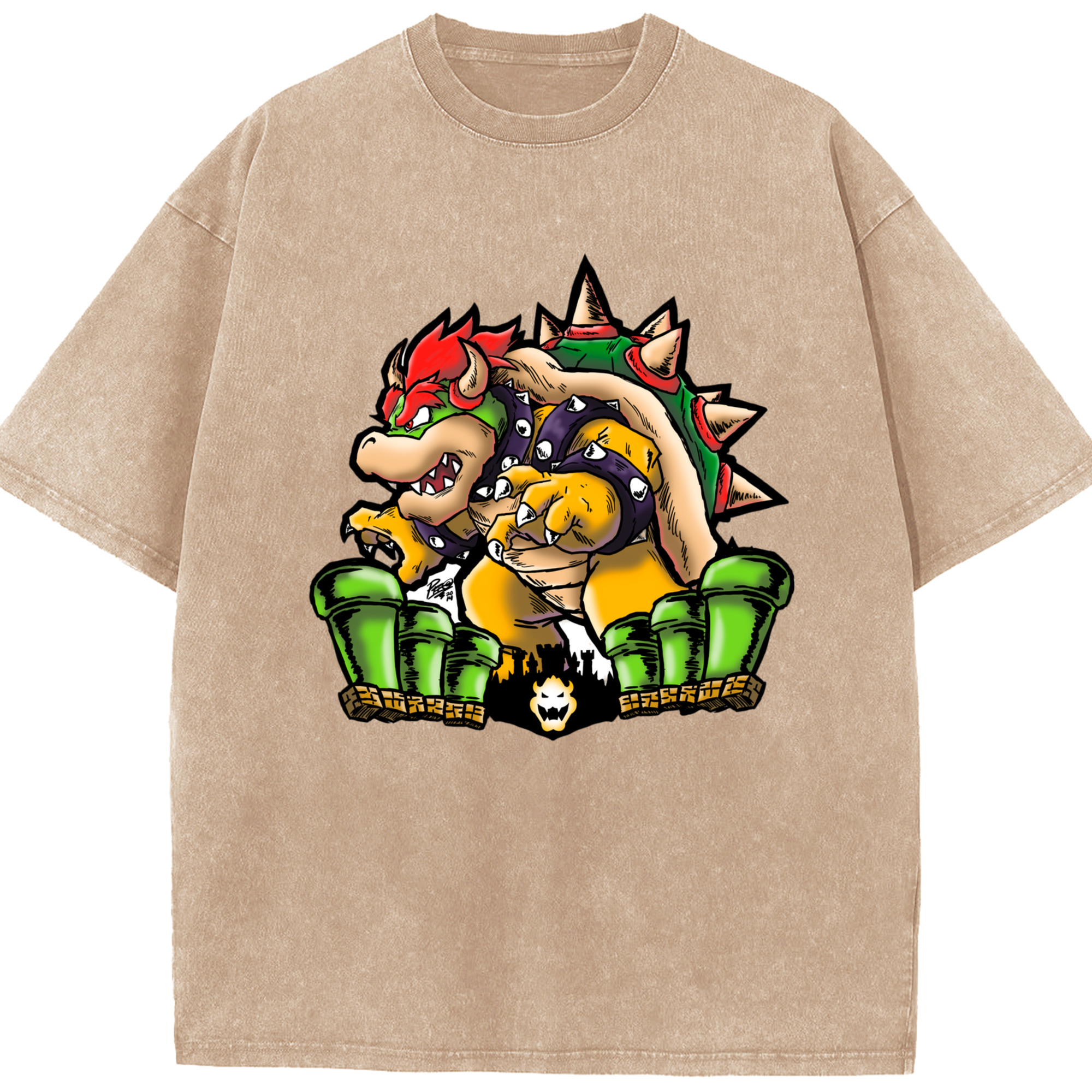 Bowser King Koopa the Great Demon King Appears Graphic T-Shirt - Washed Vintage Look 230g Cotton Oversized T-Shirt With Front Heat Transfer Print – Soft, Lightweight, Stylish Fit – Comfortable Casual Wear For Sports & Everyday Use
