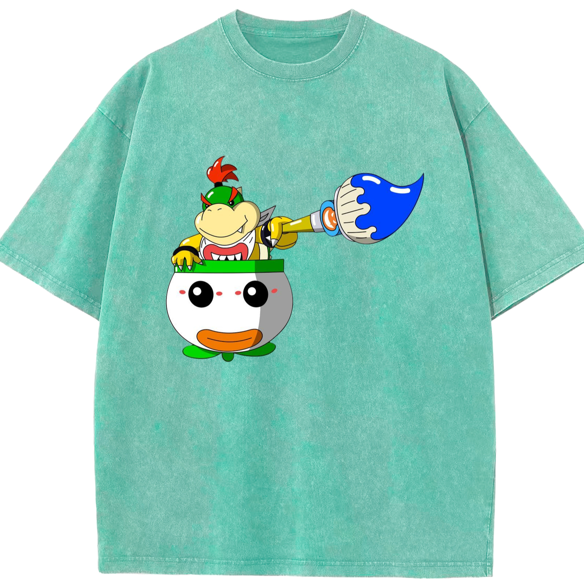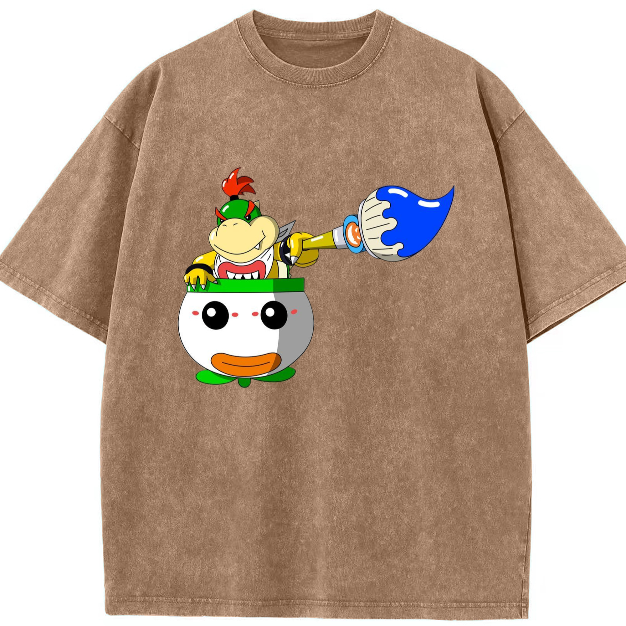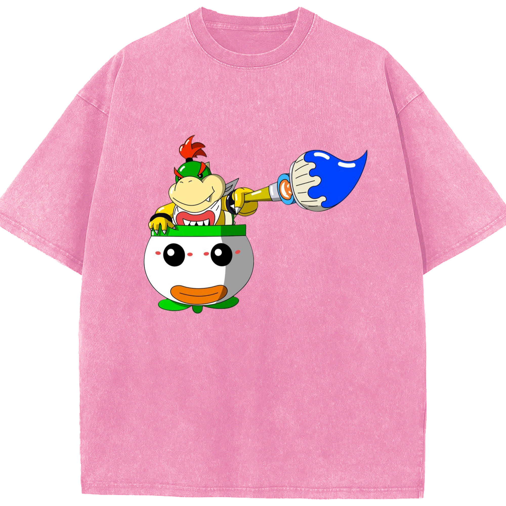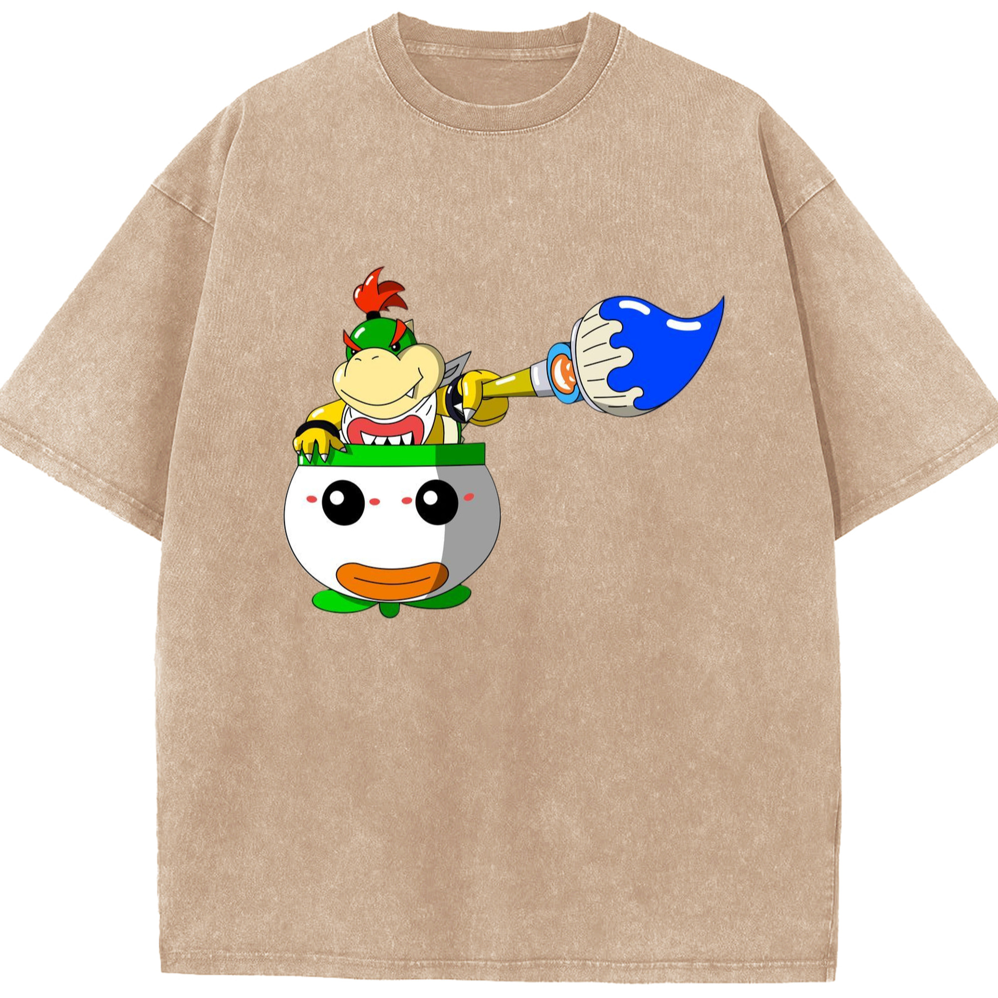 Boy's Nintendo Bowser Jr. cartoon t-shirt - Washed Vintage Look 230g Cotton Oversized T-Shirt With Front Heat Transfer Print – Soft, Lightweight, Stylish Fit – Comfortable Casual Wear For Sports & Everyday Use