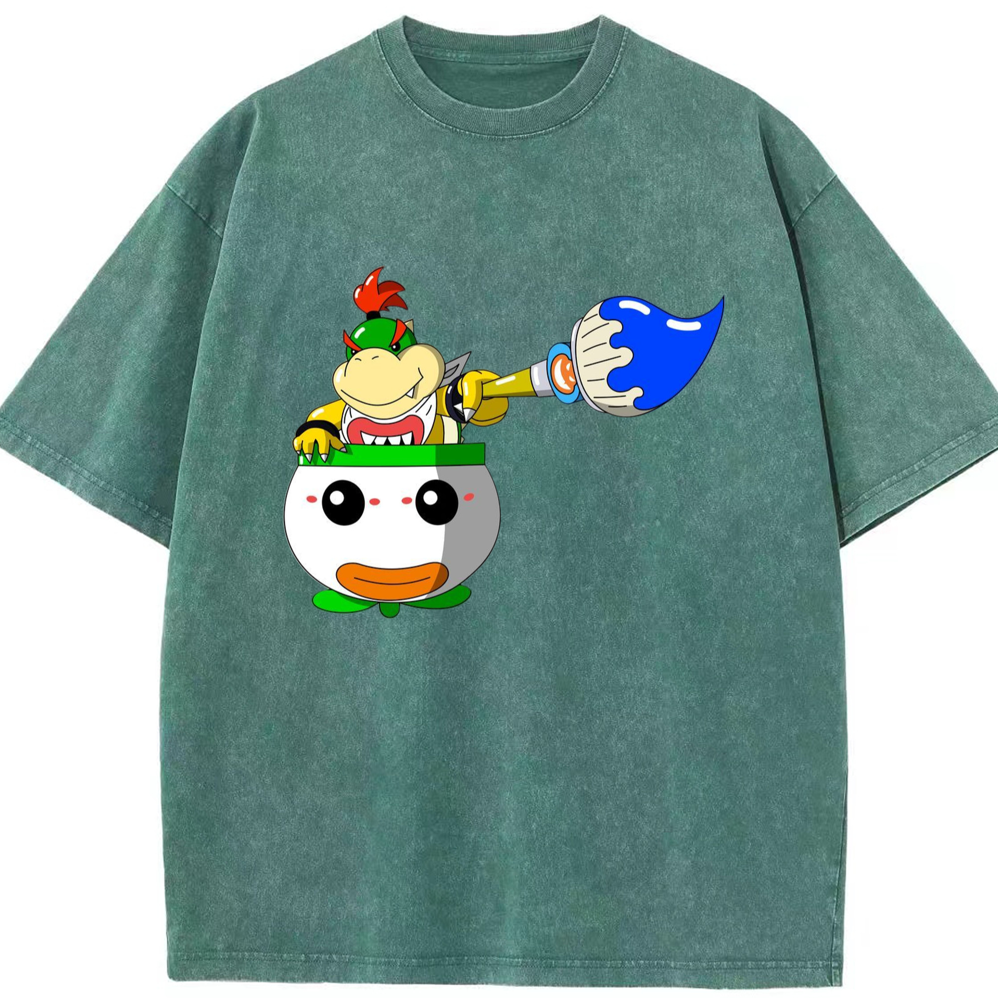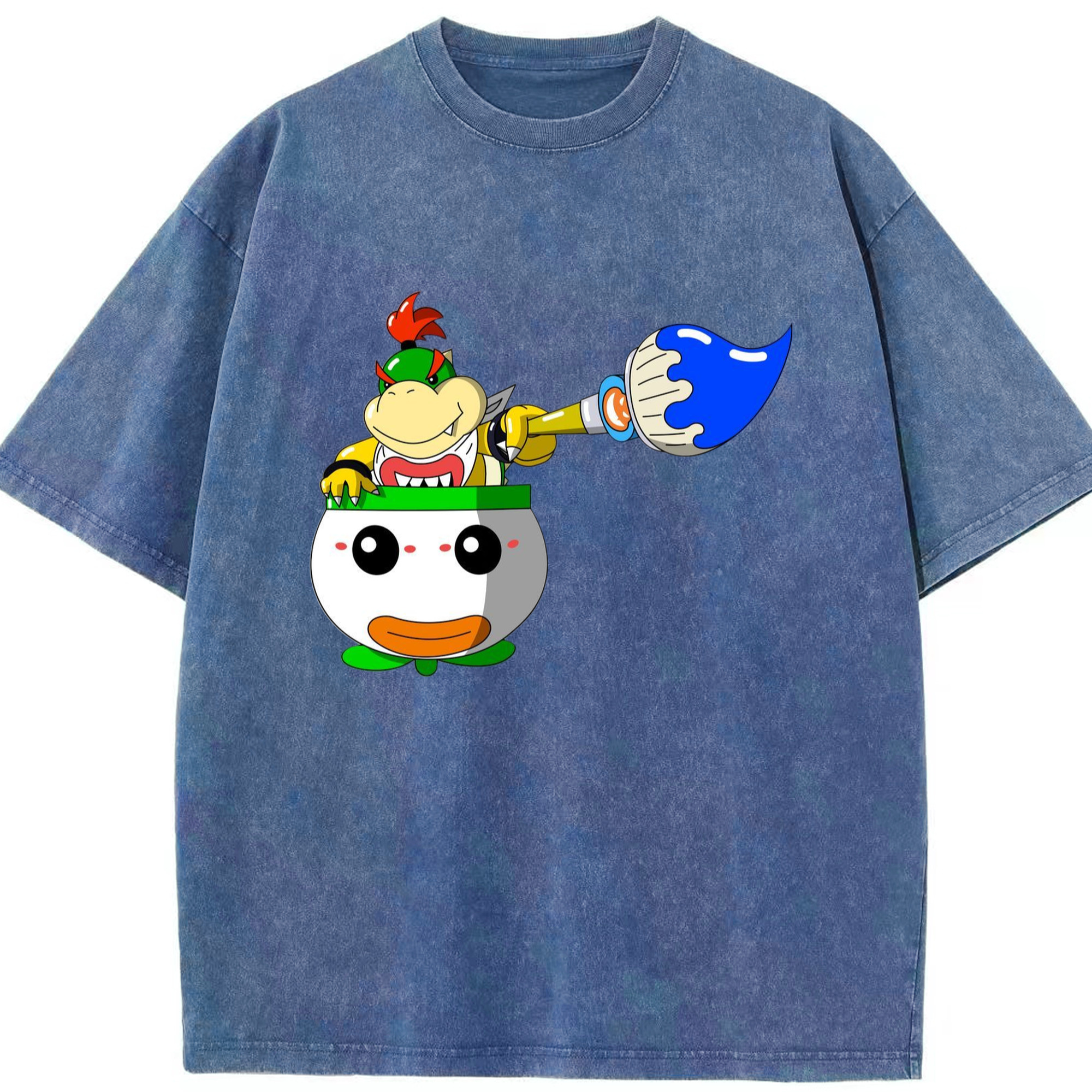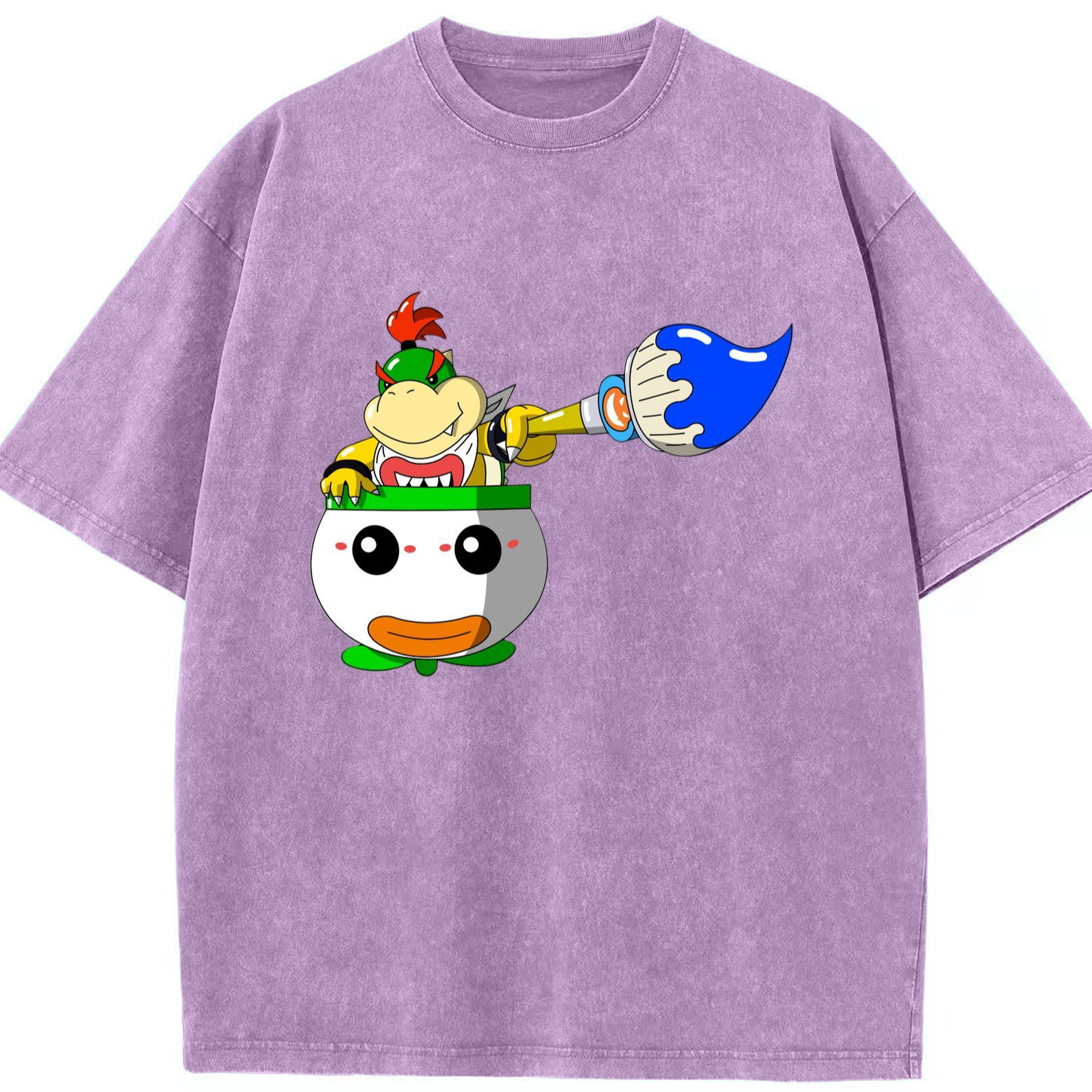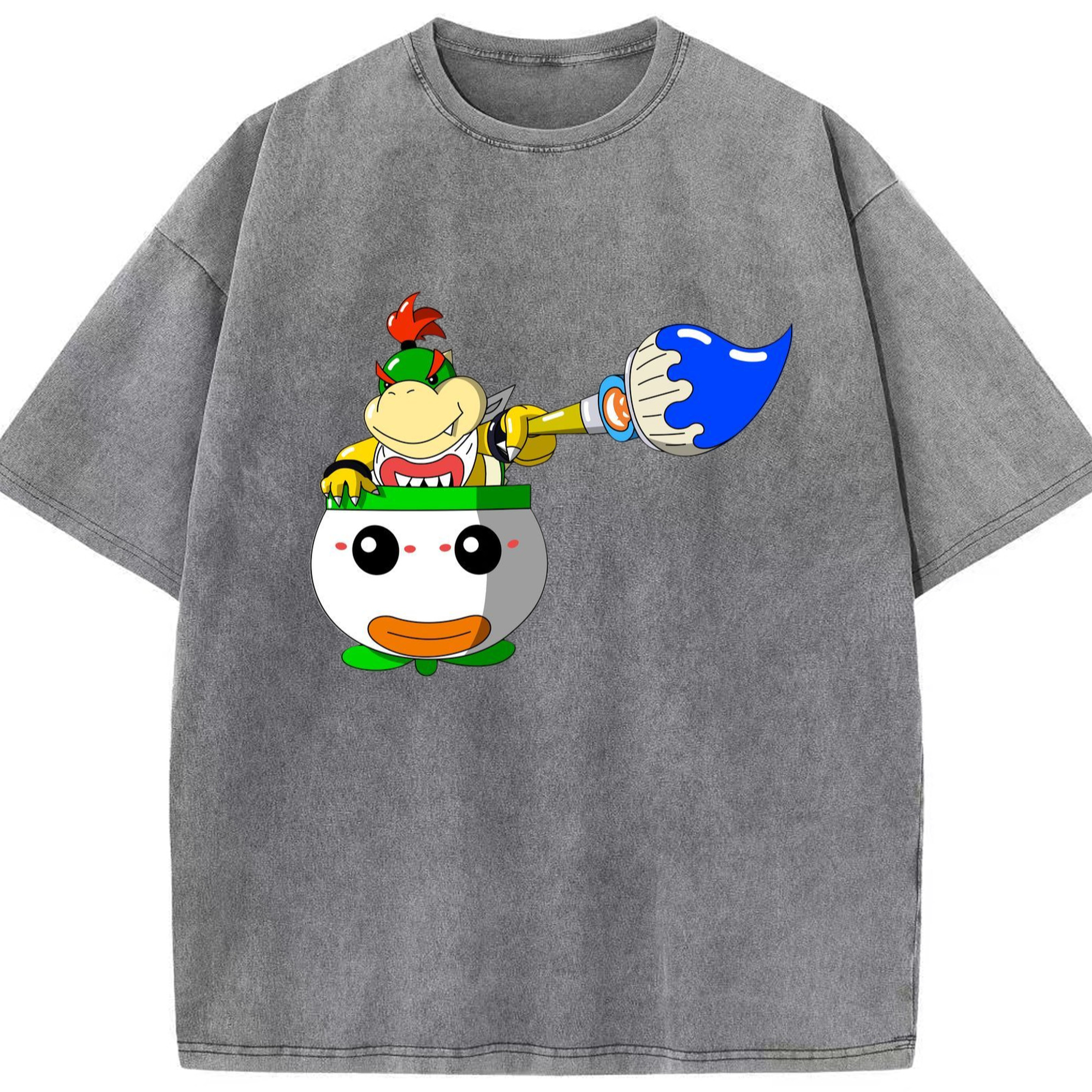 Boy's Nintendo Bowser Jr. cartoon t-shirt - Washed Vintage Look 230g Cotton Oversized T-Shirt With Front Heat Transfer Print – Soft, Lightweight, Stylish Fit – Comfortable Casual Wear For Sports & Everyday Use