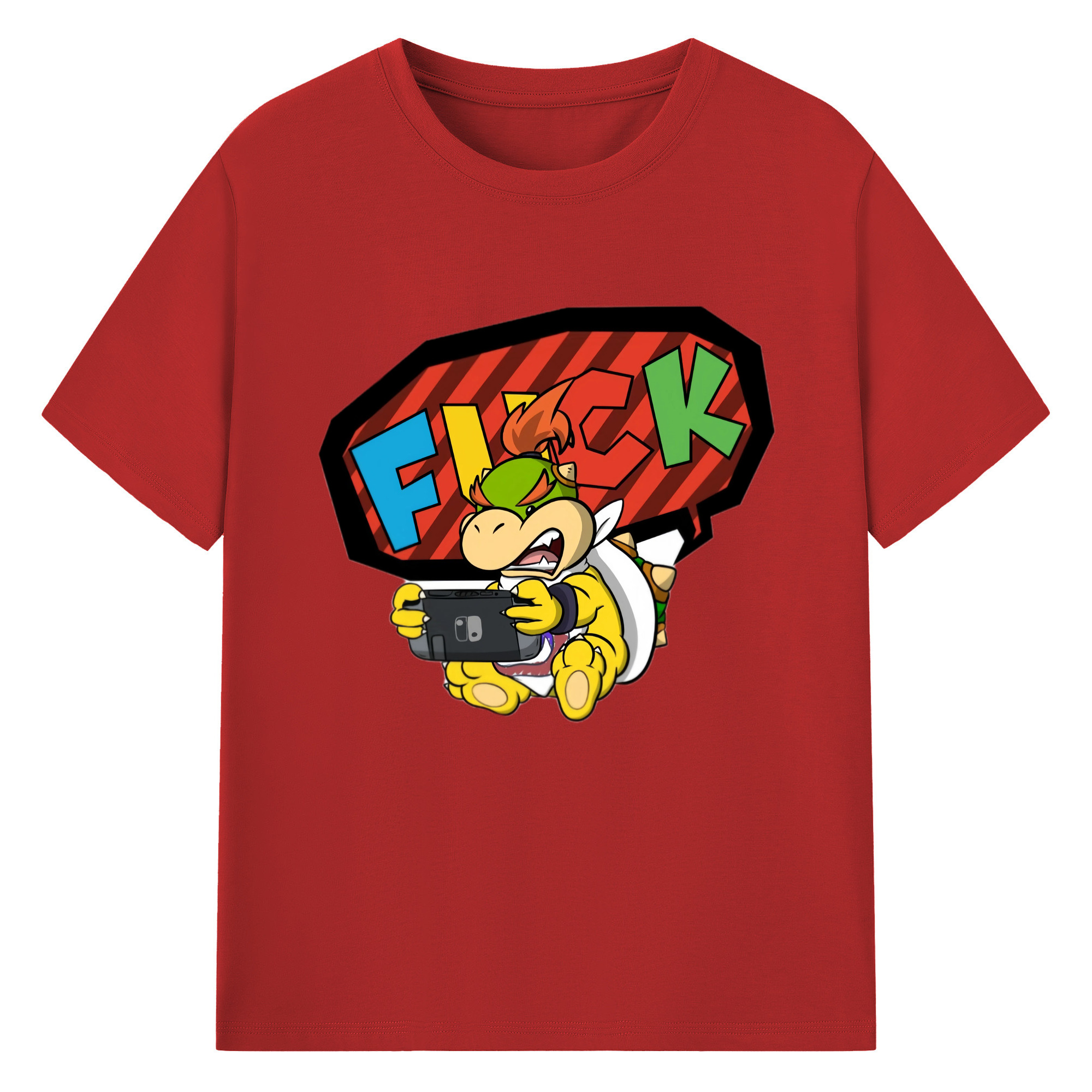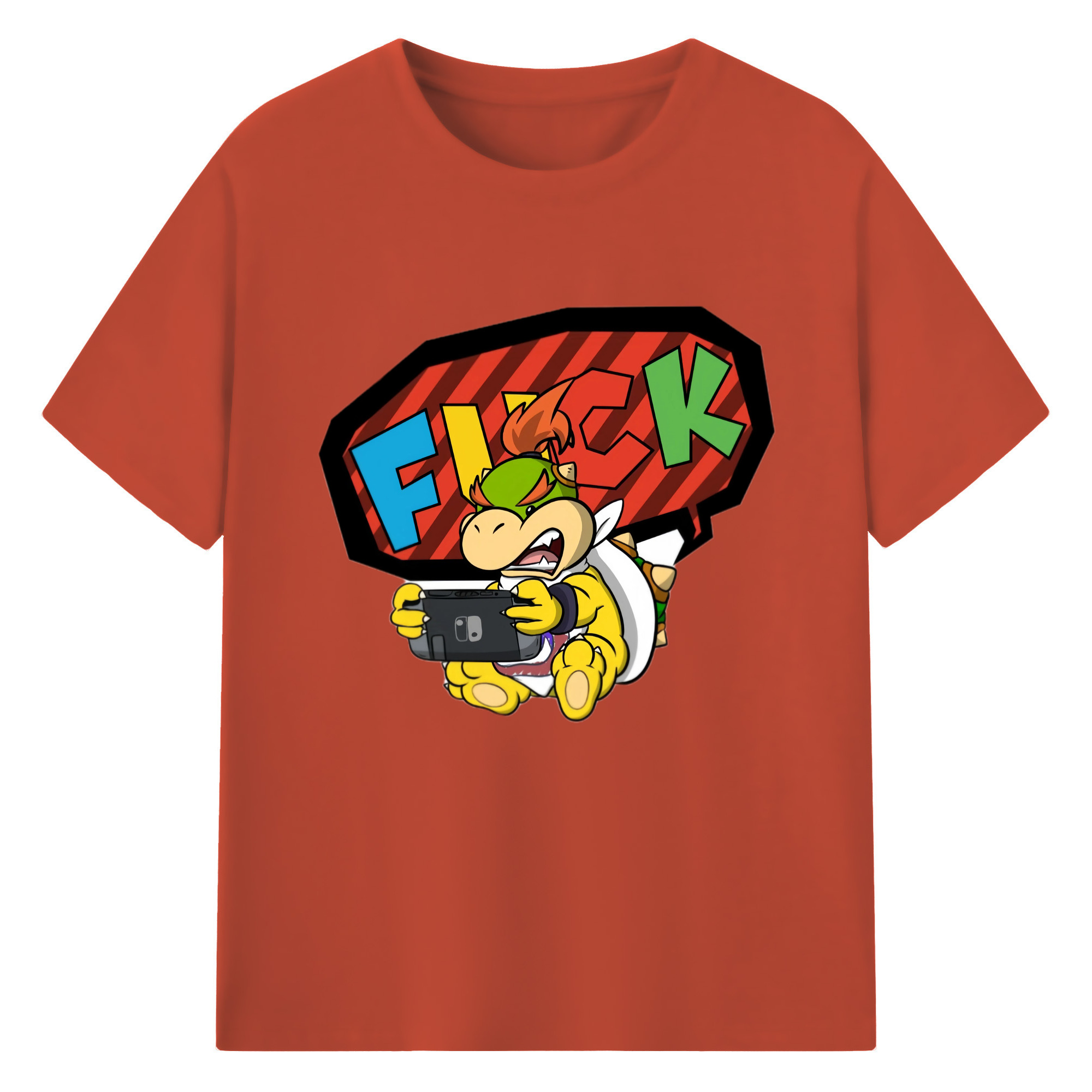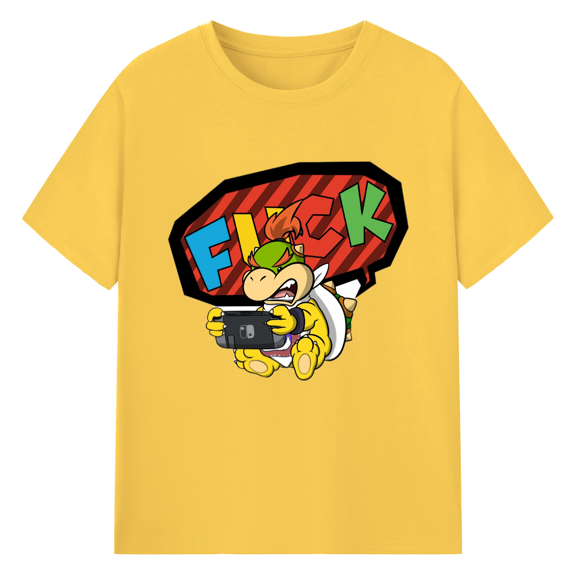 Boy's Nintendo Bowser Jr. cartoon 'fuck!' Graphic Tee - 180g Cotton T-Shirt With Front Heat Transfer Print – Soft, Lightweight, Fitted Design – Comfortable Casual Wear For Sports & Everyday Use