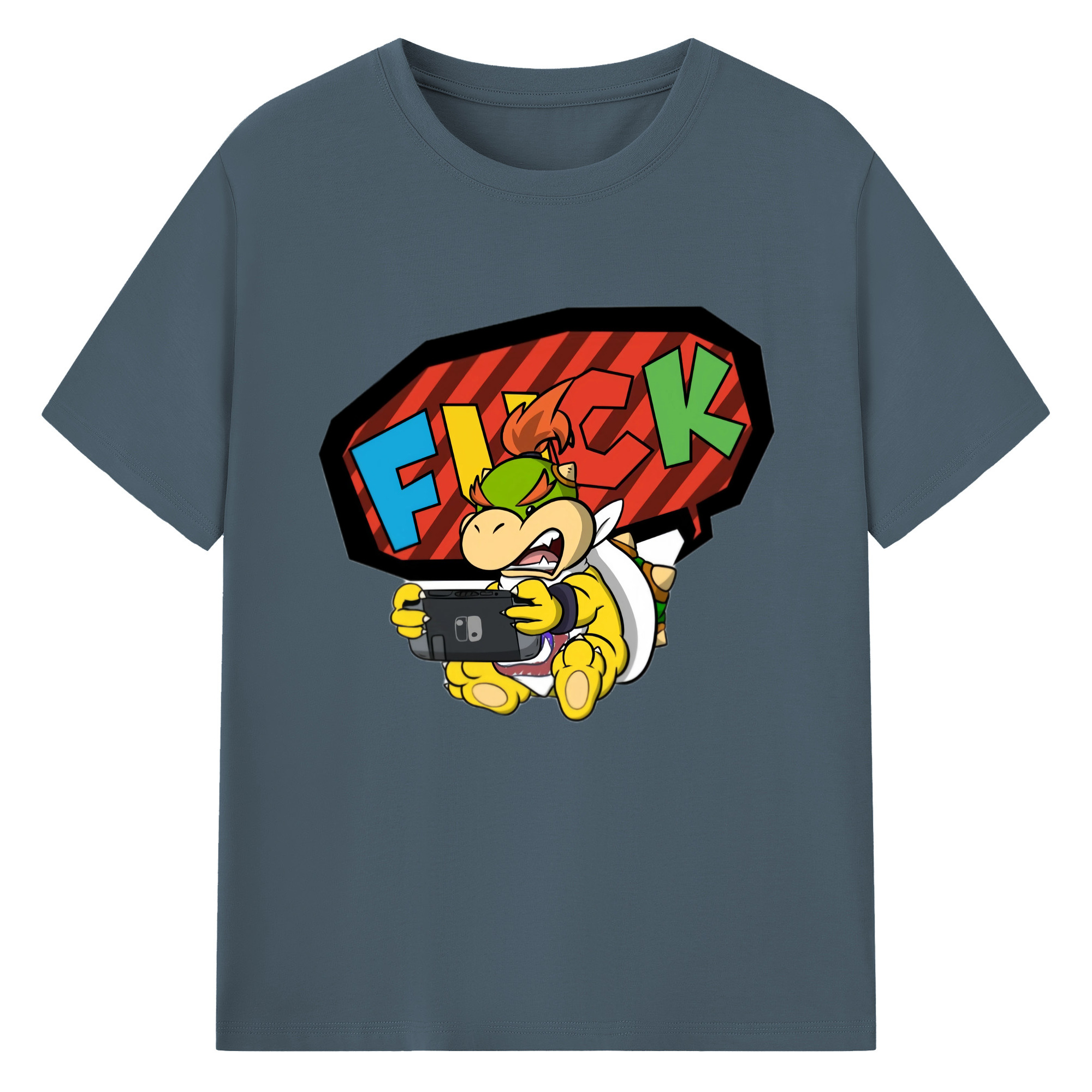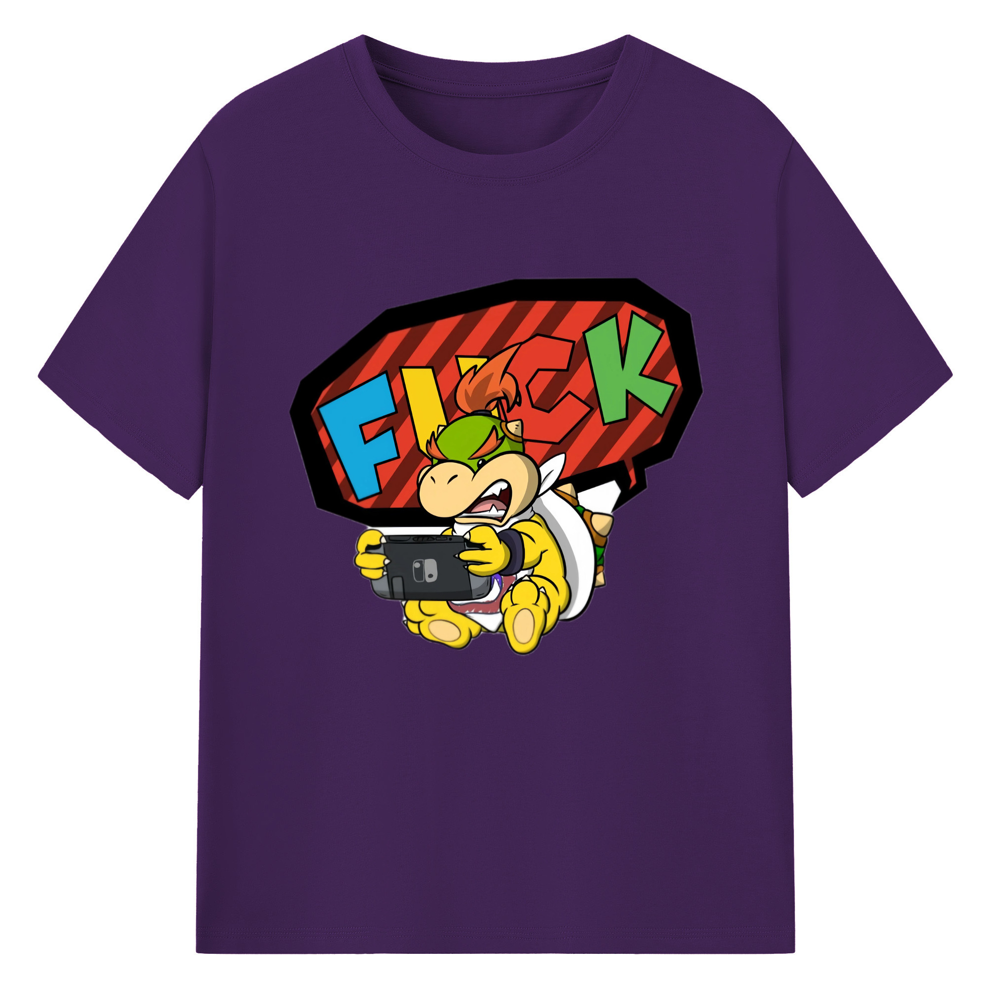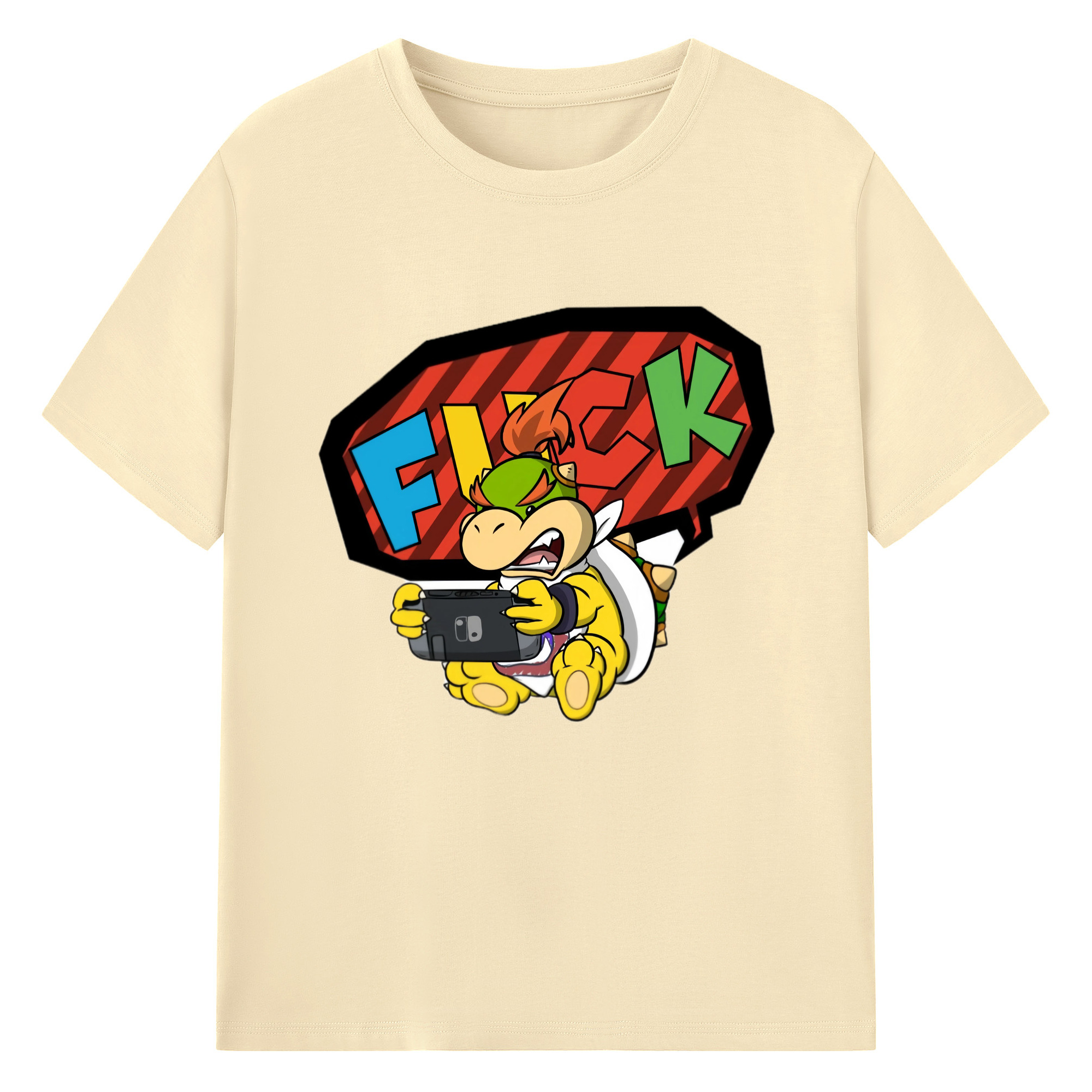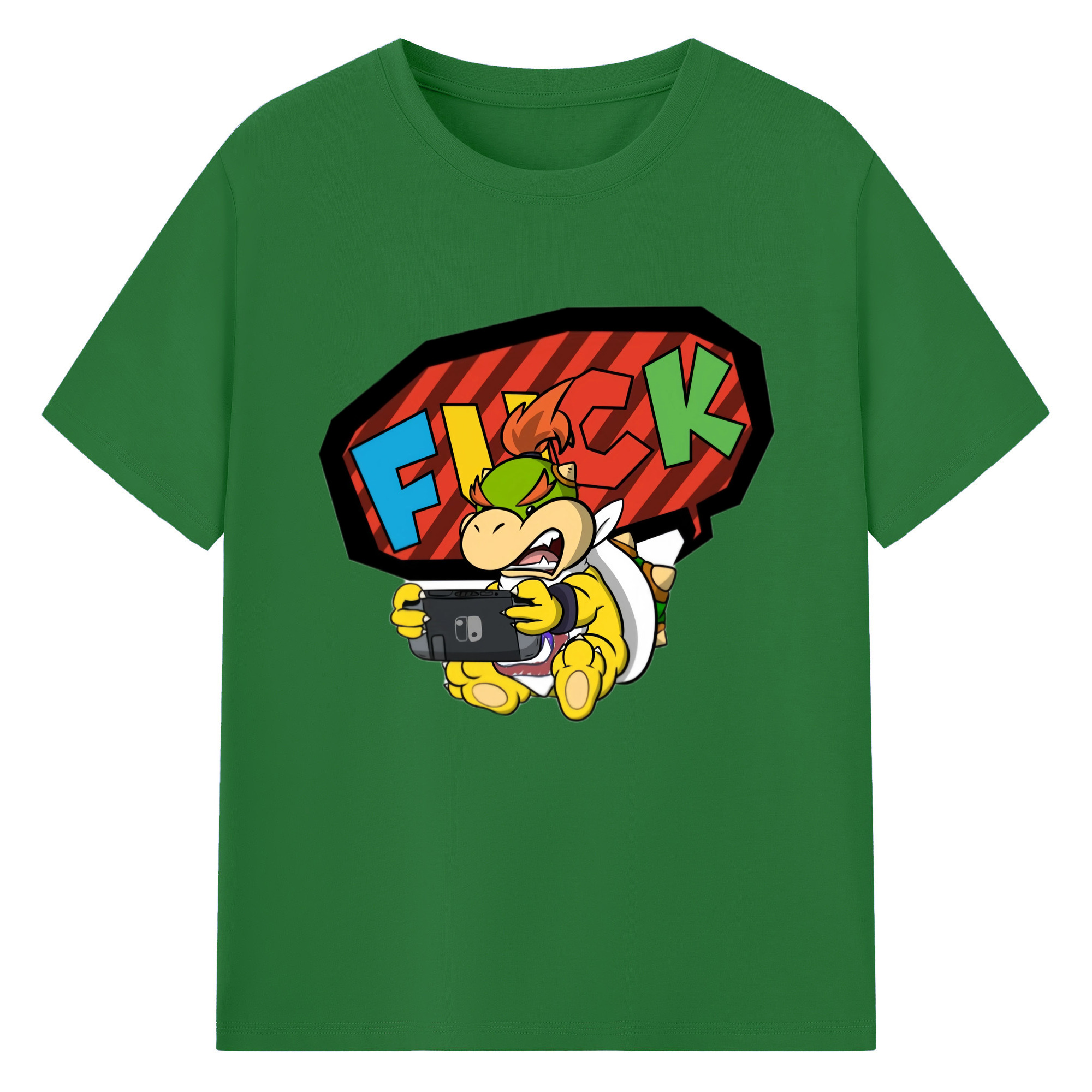 Boy's Nintendo Bowser Jr. cartoon 'fuck!' Graphic Tee - 180g Cotton T-Shirt With Front Heat Transfer Print – Soft, Lightweight, Fitted Design – Comfortable Casual Wear For Sports & Everyday Use