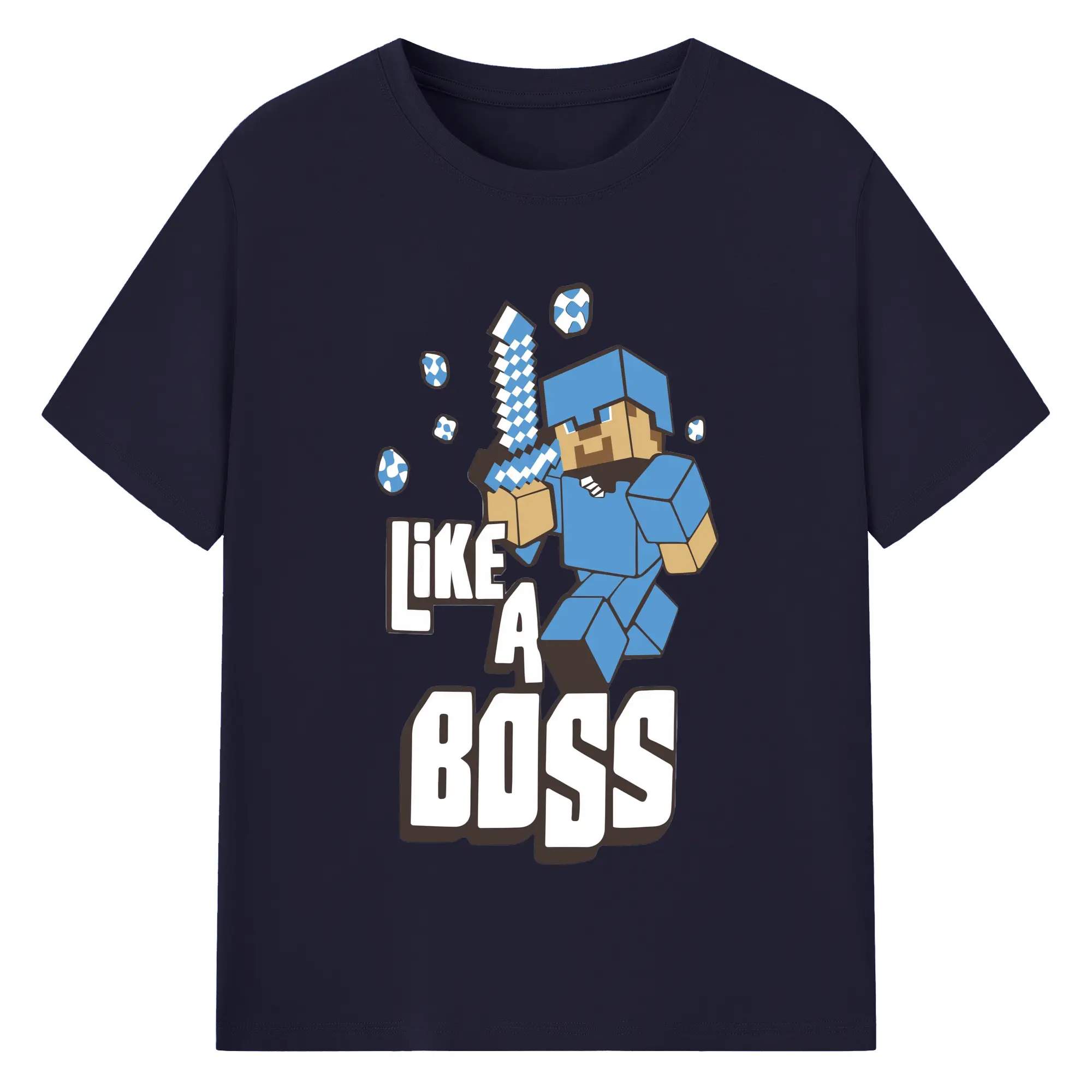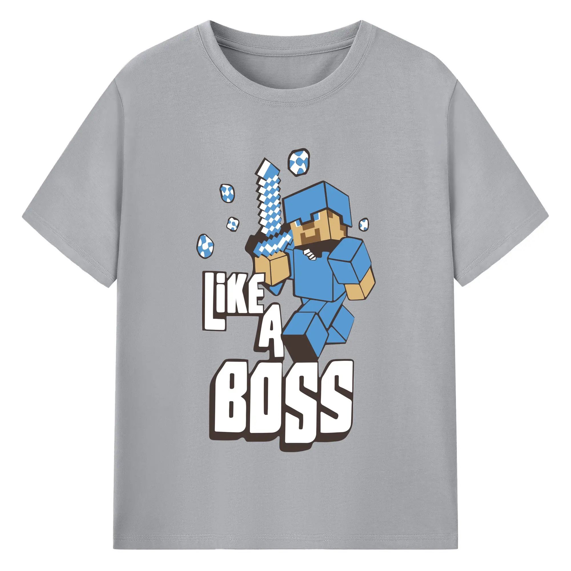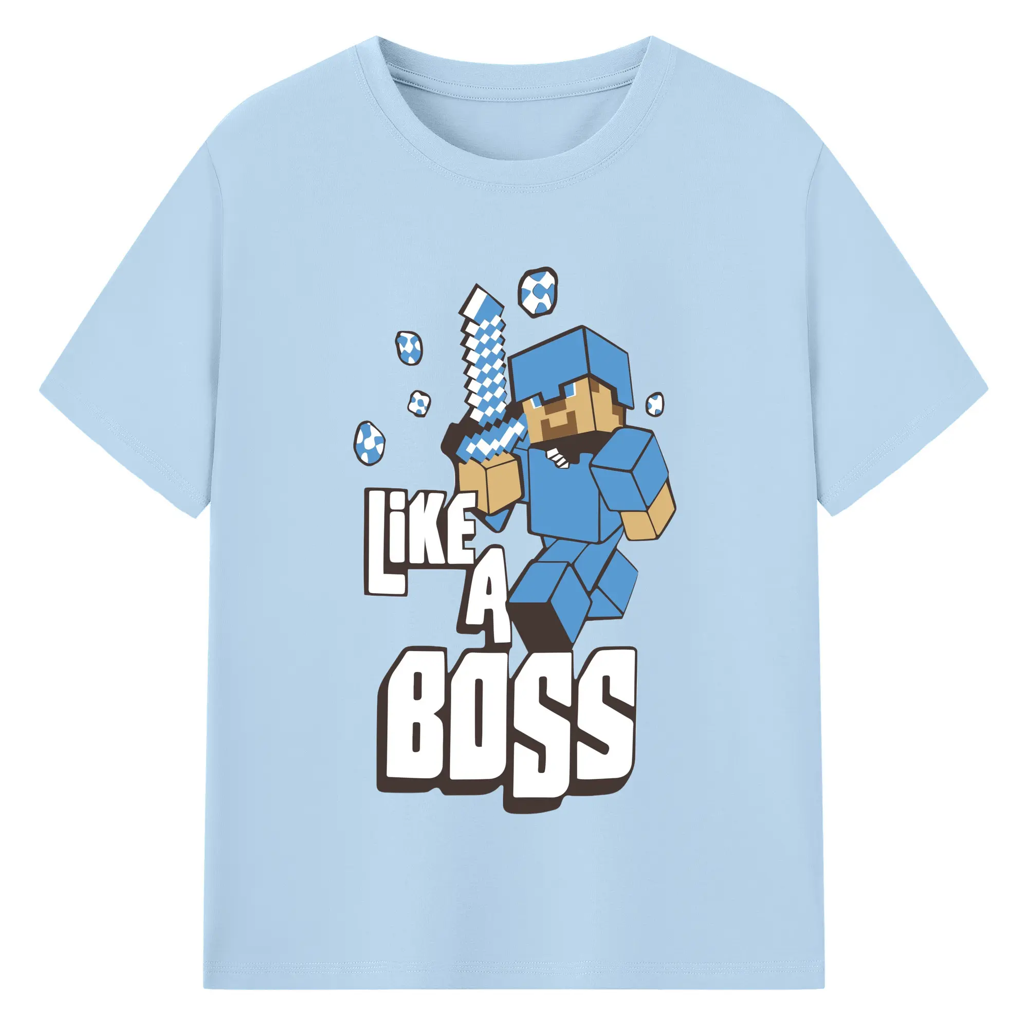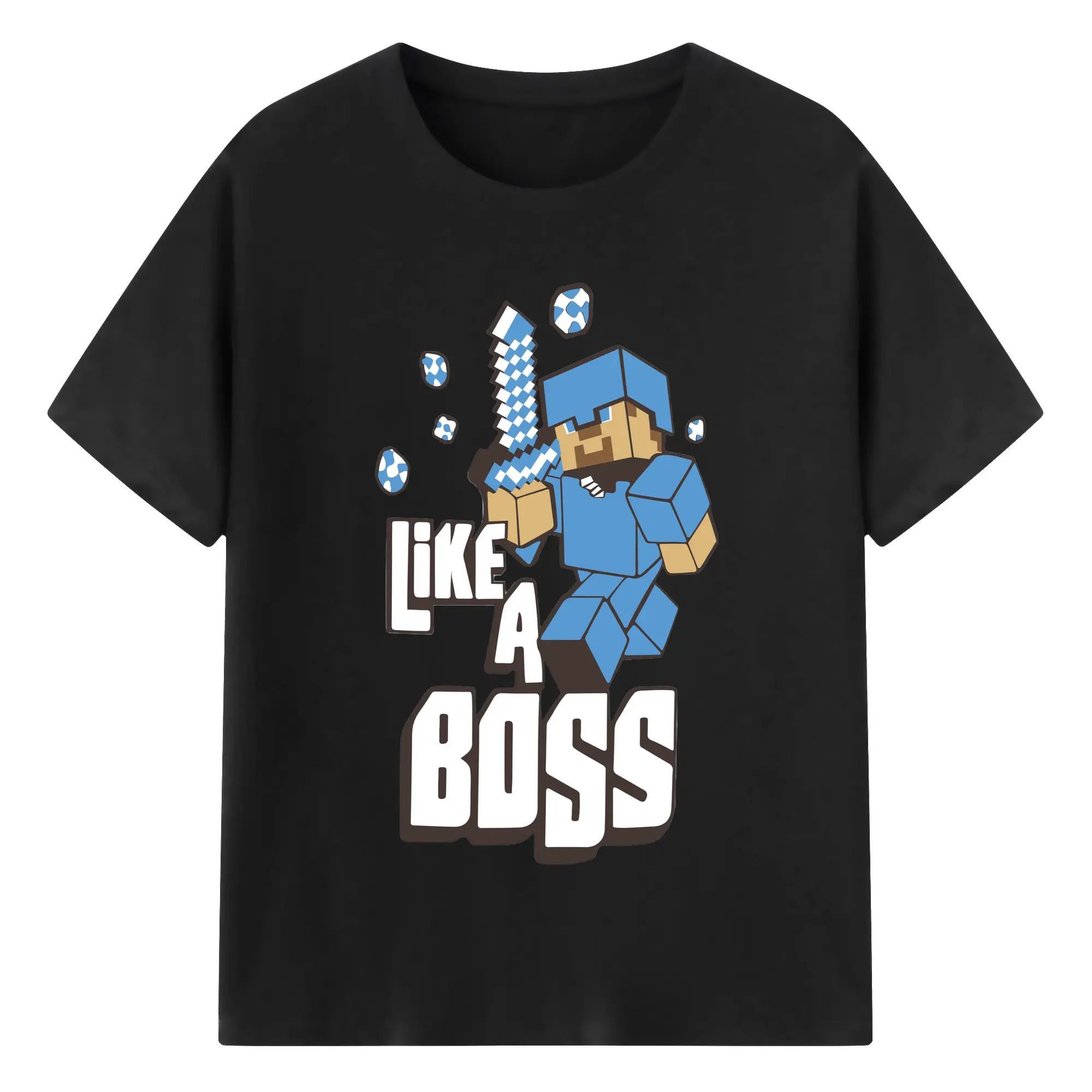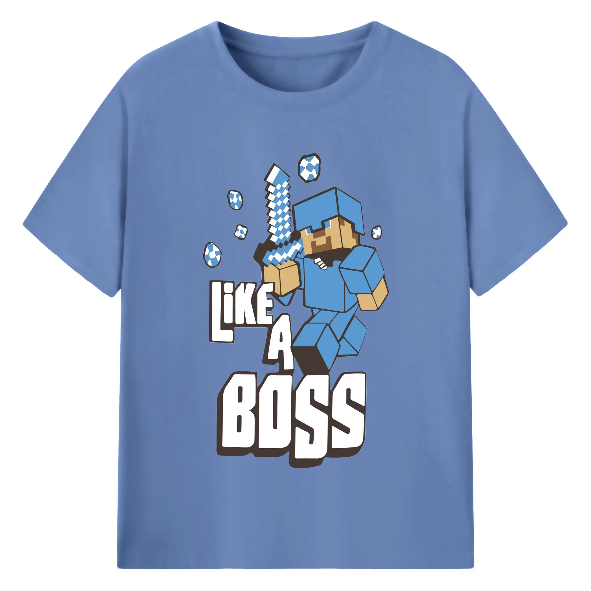 Boys minecraft steve shirt​ - 180g Cotton T-Shirt With Front Heat Transfer Print – Soft, Lightweight, Fitted Design – Comfortable Casual Wear For Sports & Everyday Use