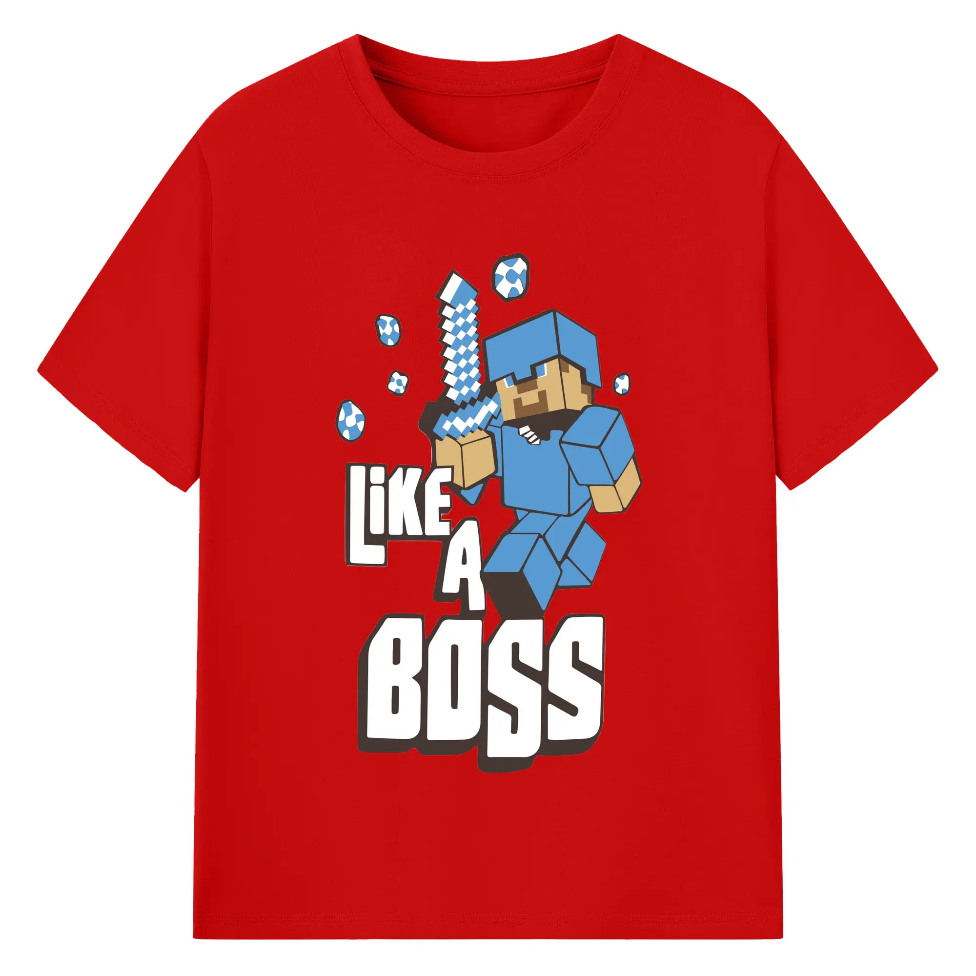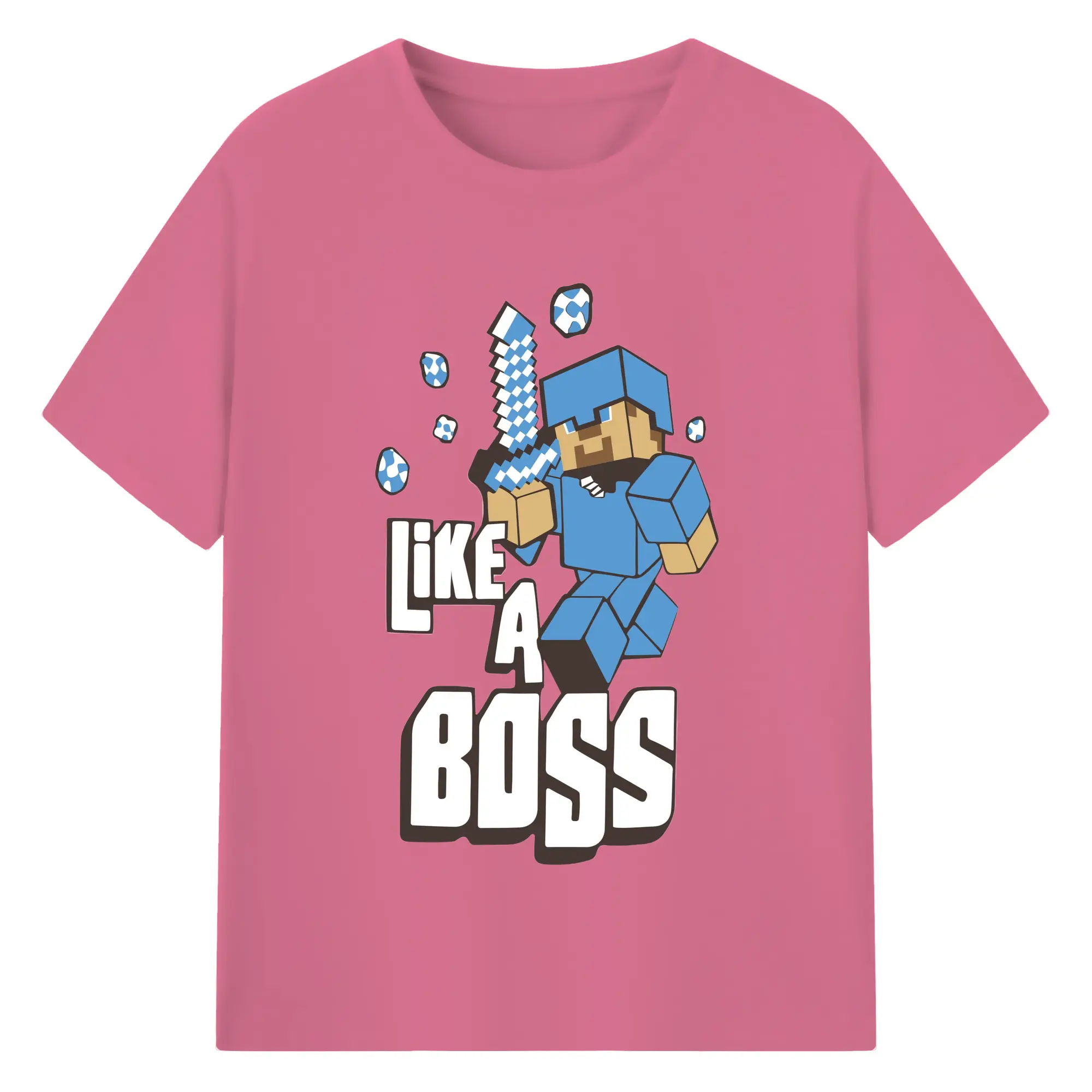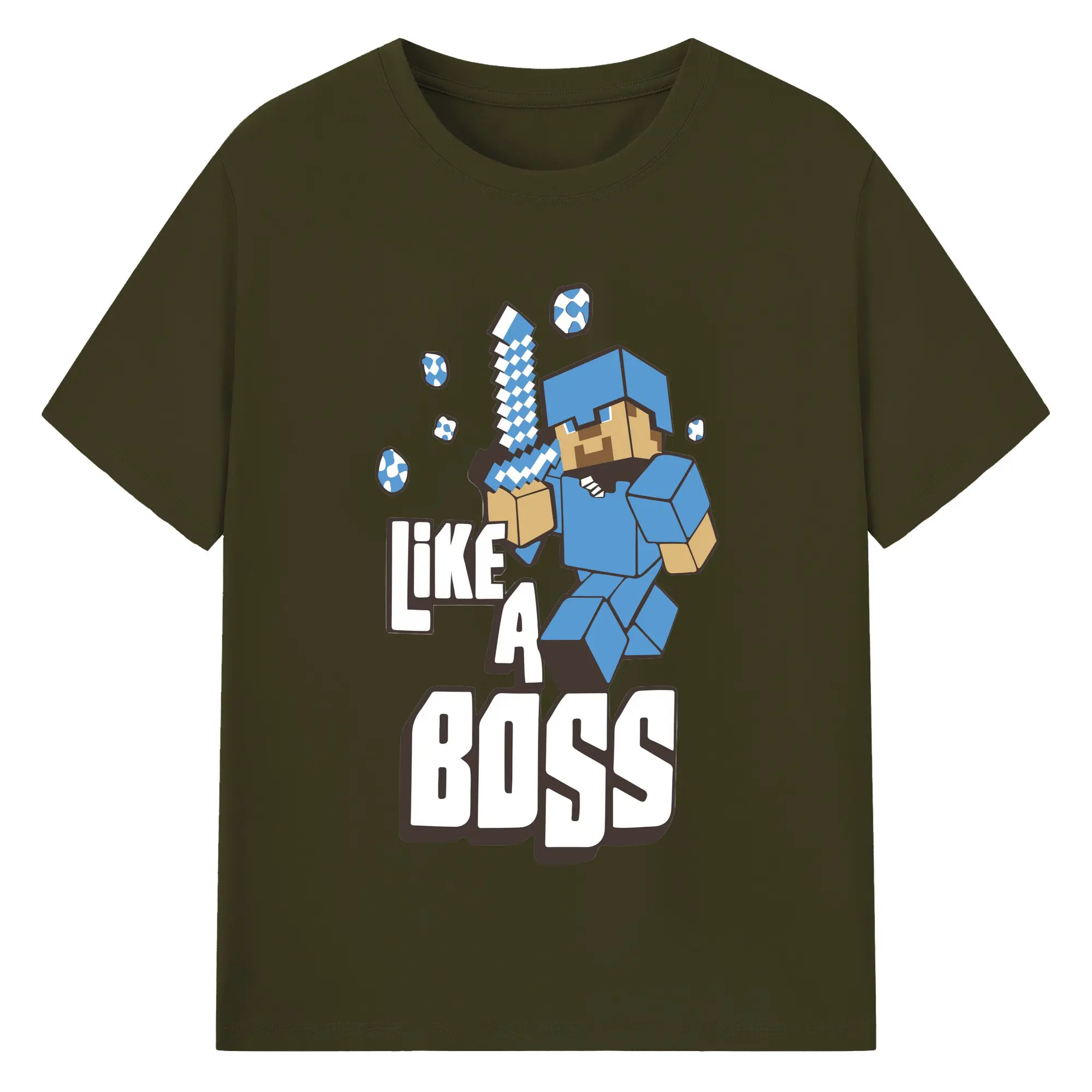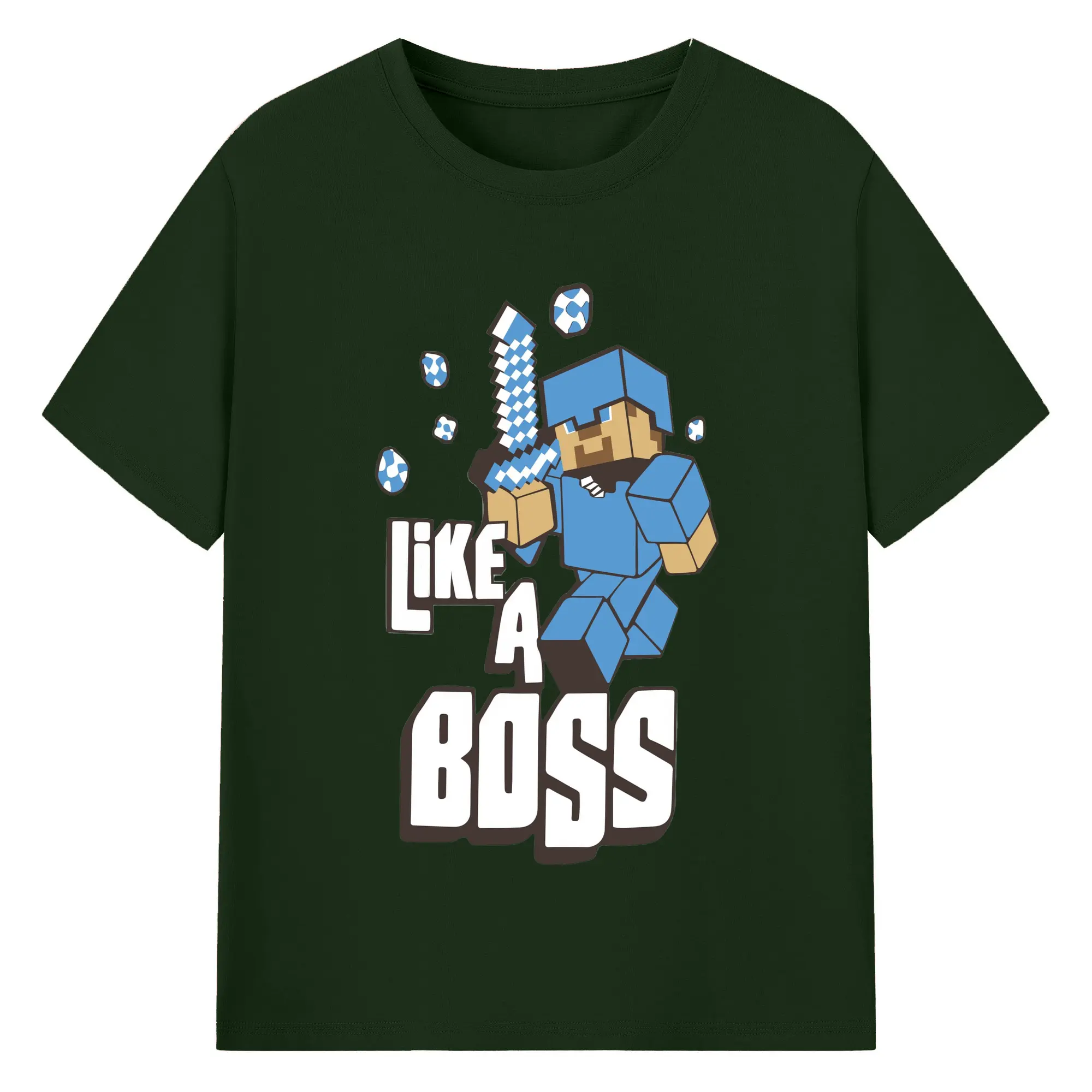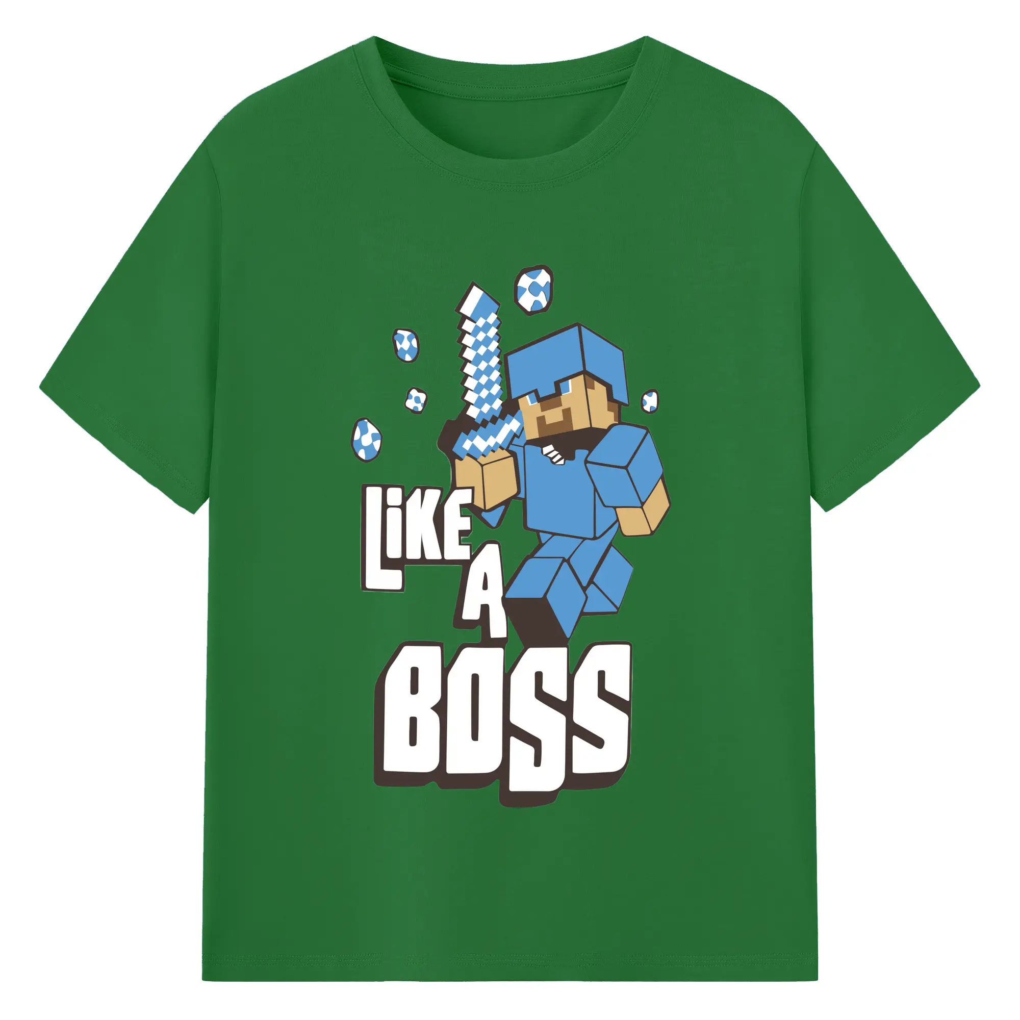 Boys minecraft steve shirt​ - 180g Cotton T-Shirt With Front Heat Transfer Print – Soft, Lightweight, Fitted Design – Comfortable Casual Wear For Sports & Everyday Use