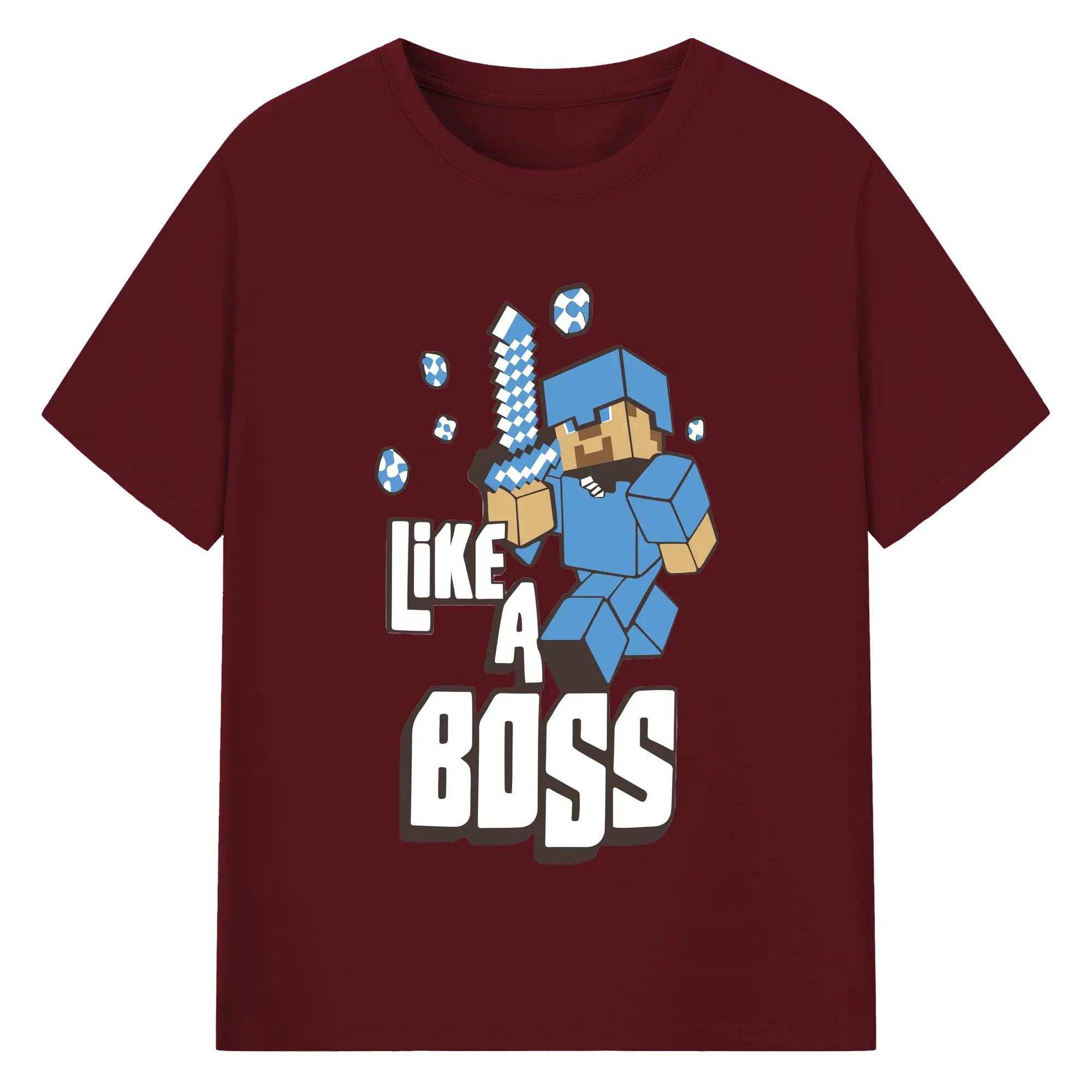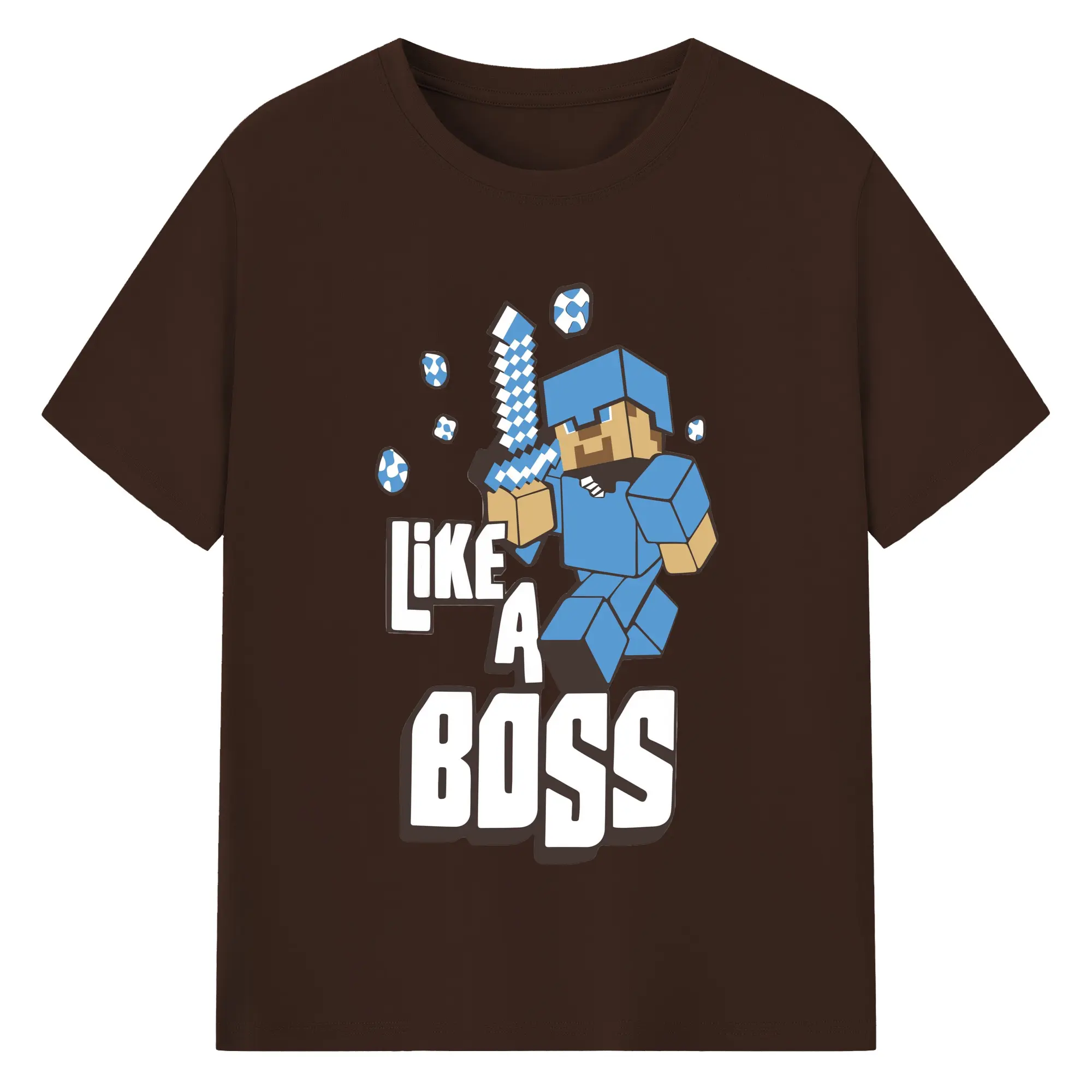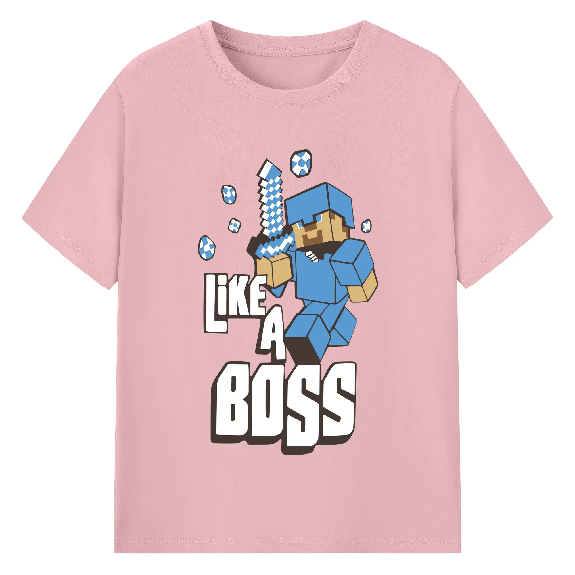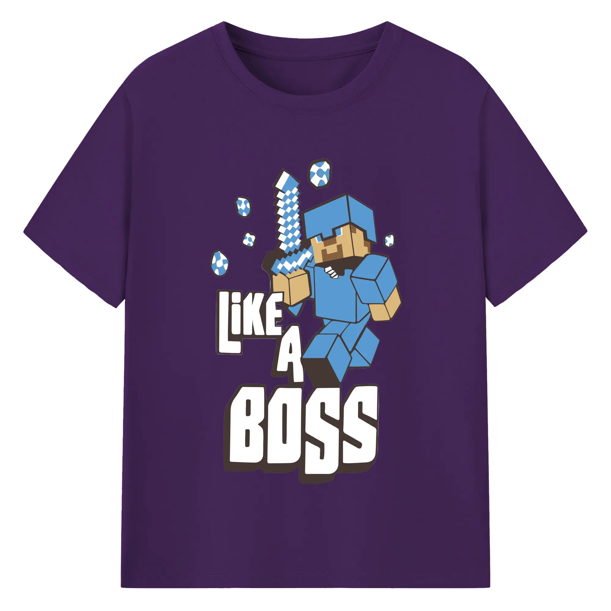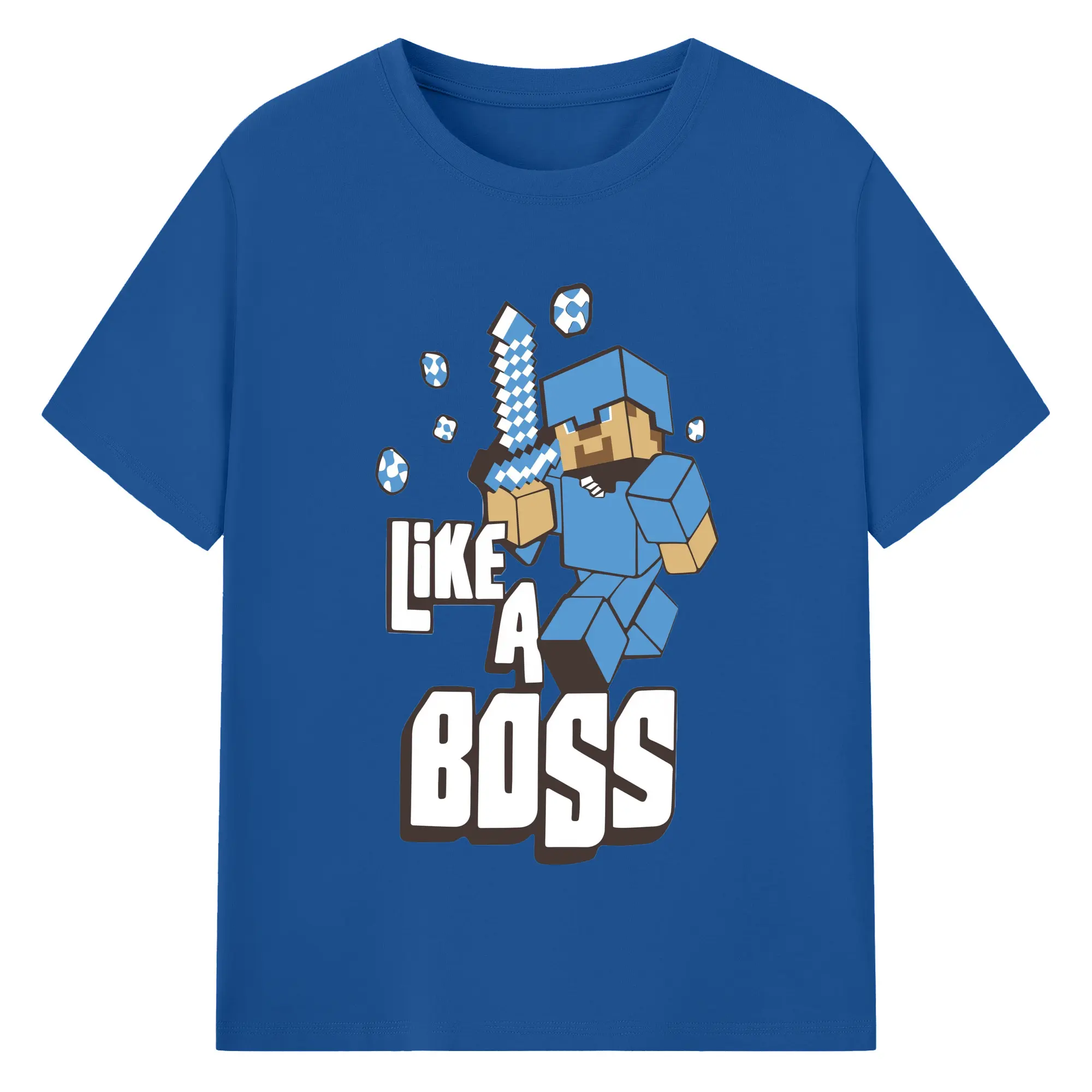 Boys minecraft steve shirt​ - 180g Cotton T-Shirt With Front Heat Transfer Print – Soft, Lightweight, Fitted Design – Comfortable Casual Wear For Sports & Everyday Use