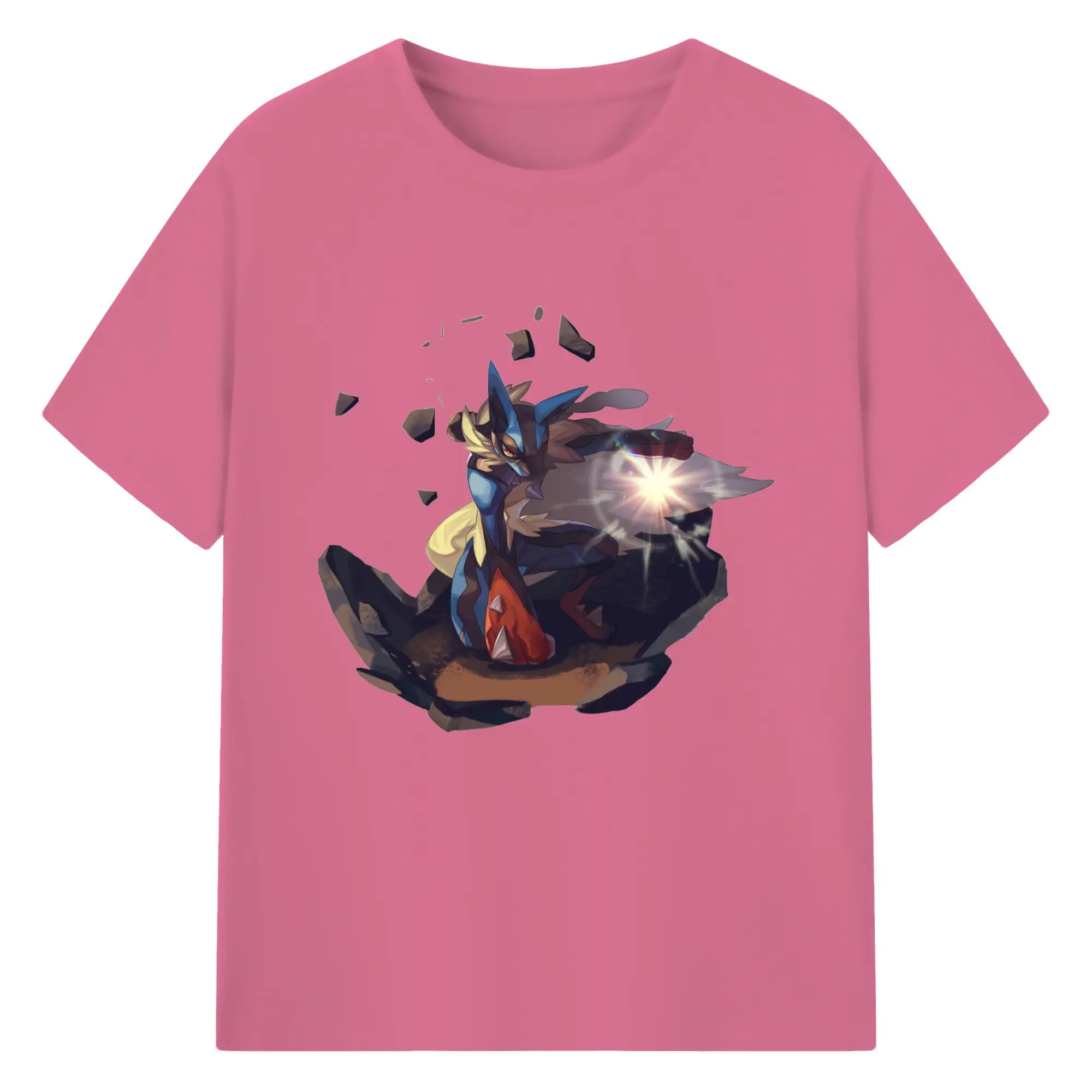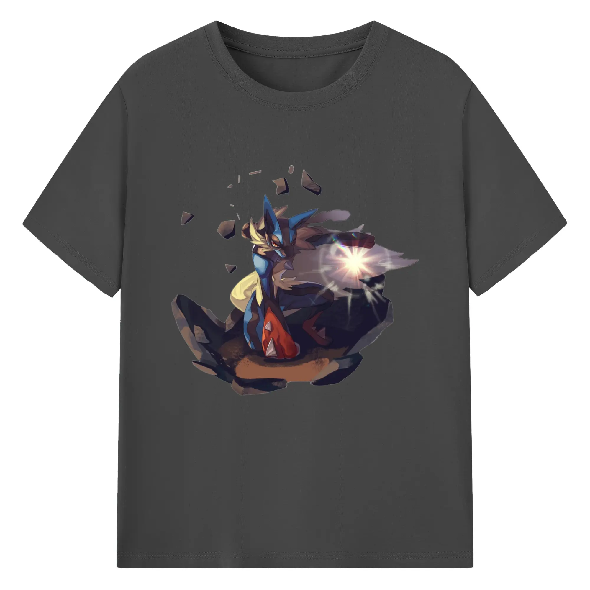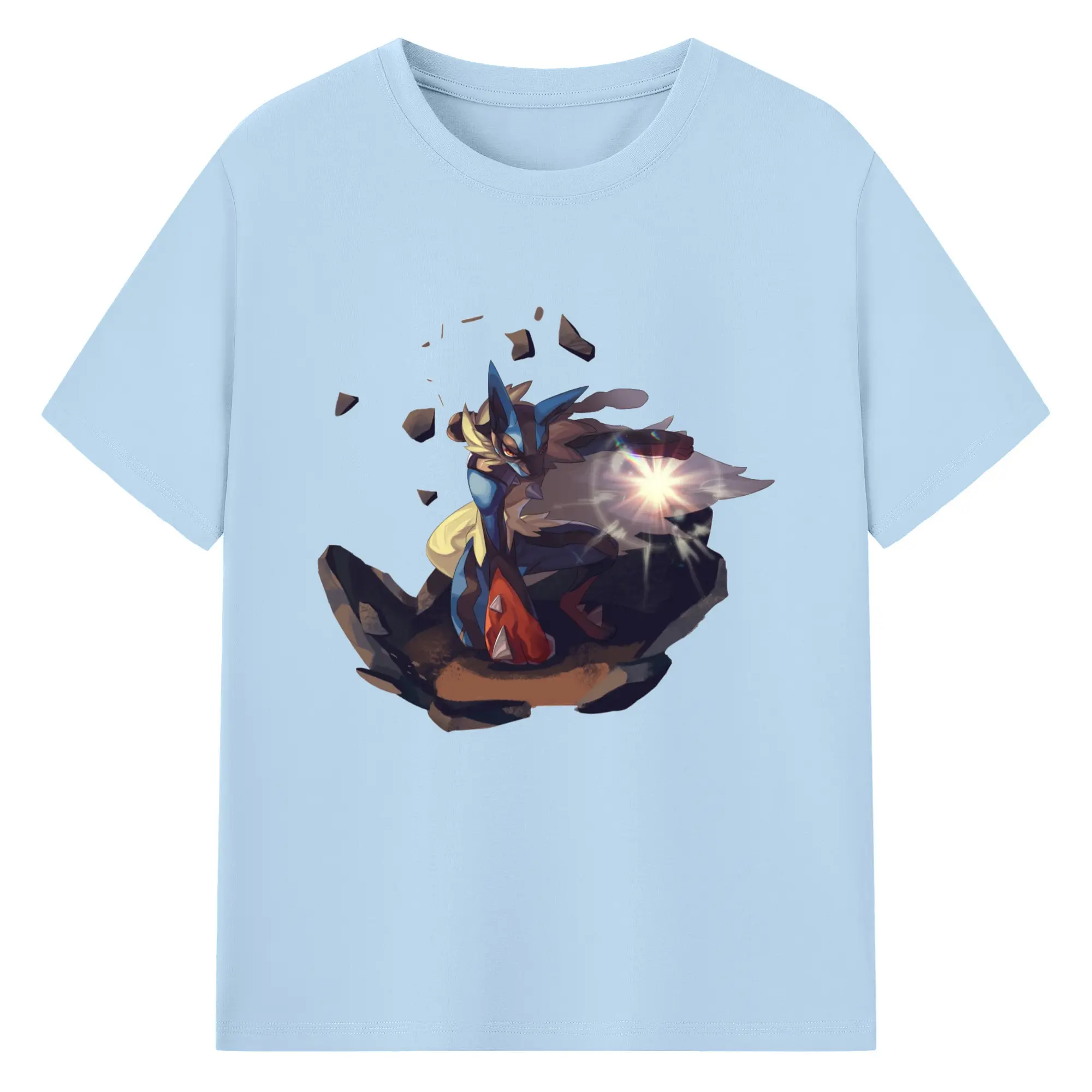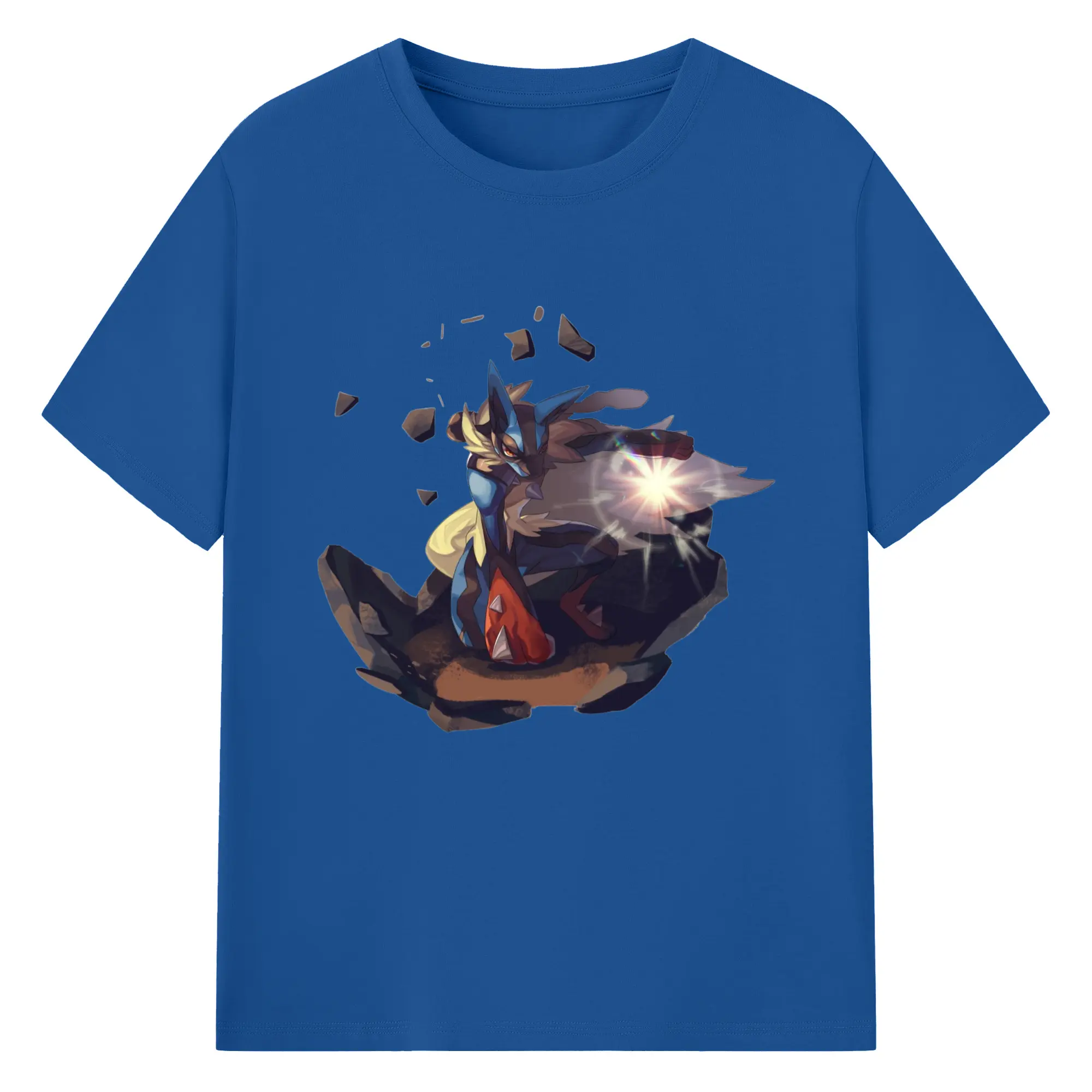 Cool Lucario collage graphic t shirt - 180g Cotton T-Shirt With Front Heat Transfer Print – Soft, Lightweight, Fitted Design – Comfortable Casual Wear For Sports & Everyday Use