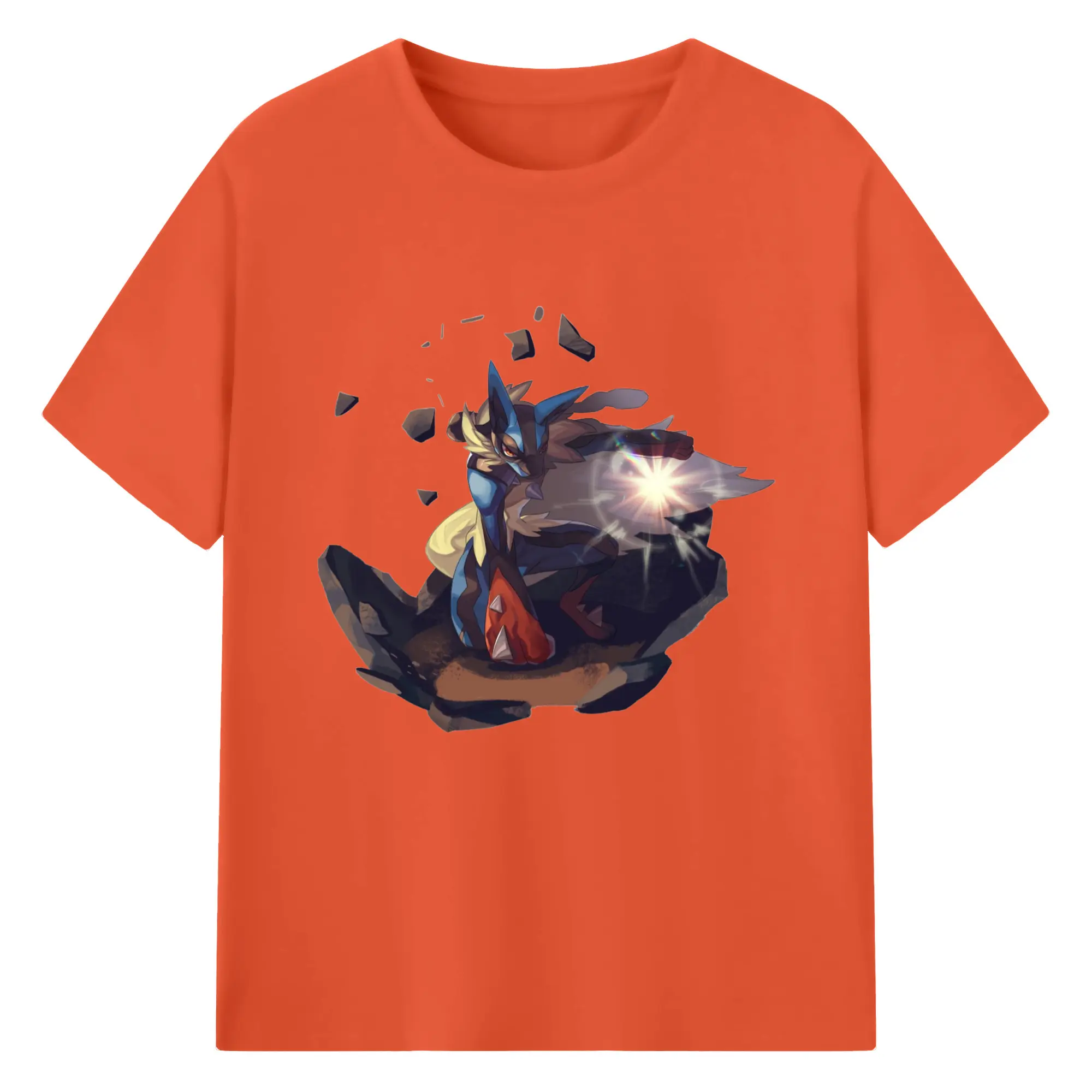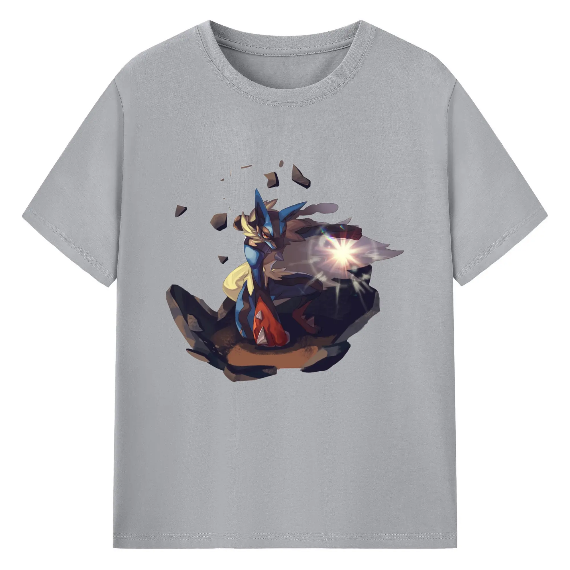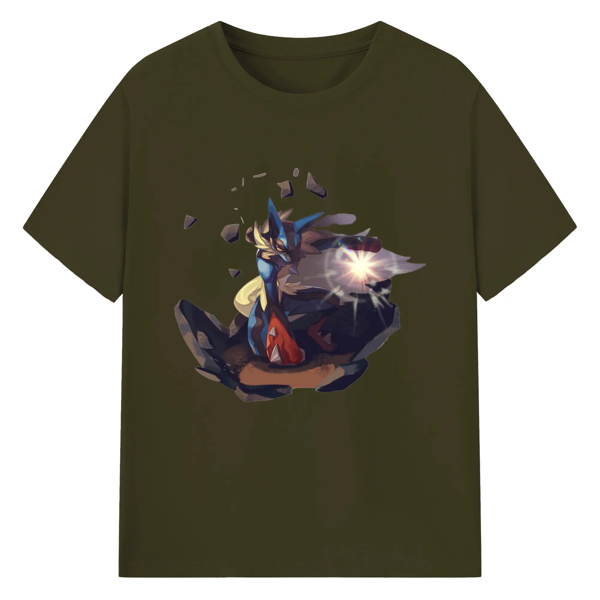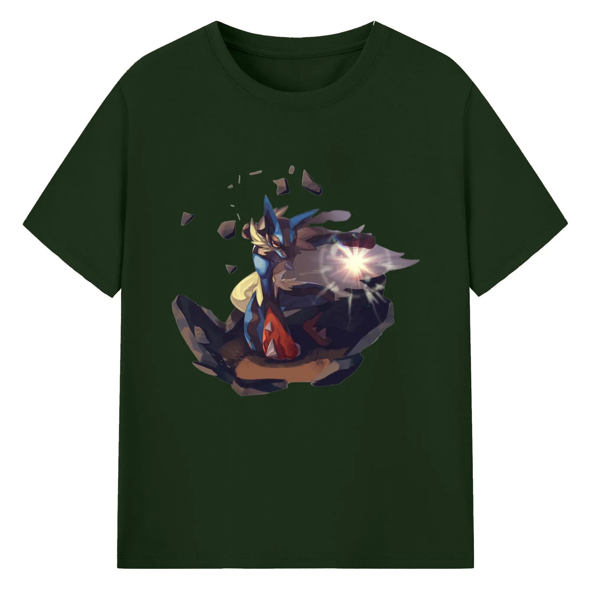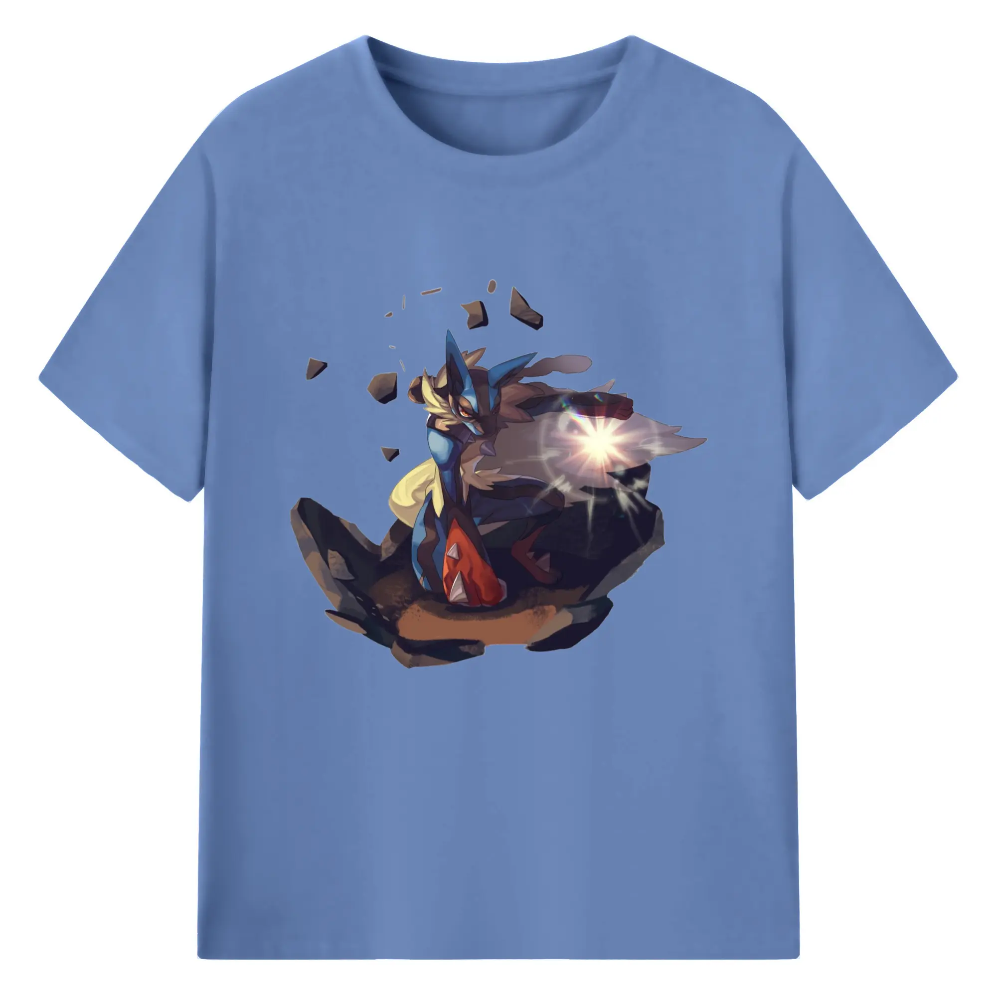 Cool Lucario collage graphic t shirt - 180g Cotton T-Shirt With Front Heat Transfer Print – Soft, Lightweight, Fitted Design – Comfortable Casual Wear For Sports & Everyday Use