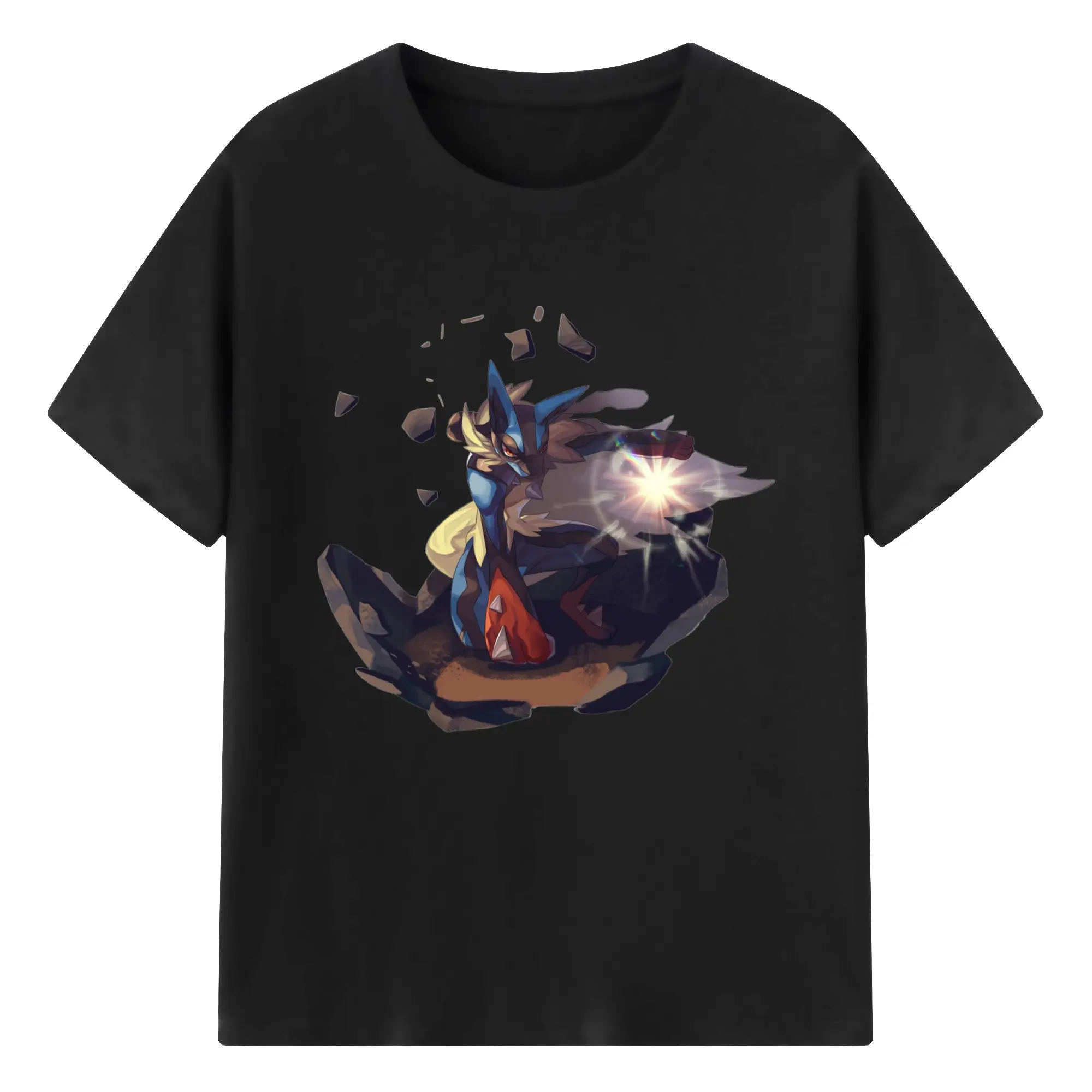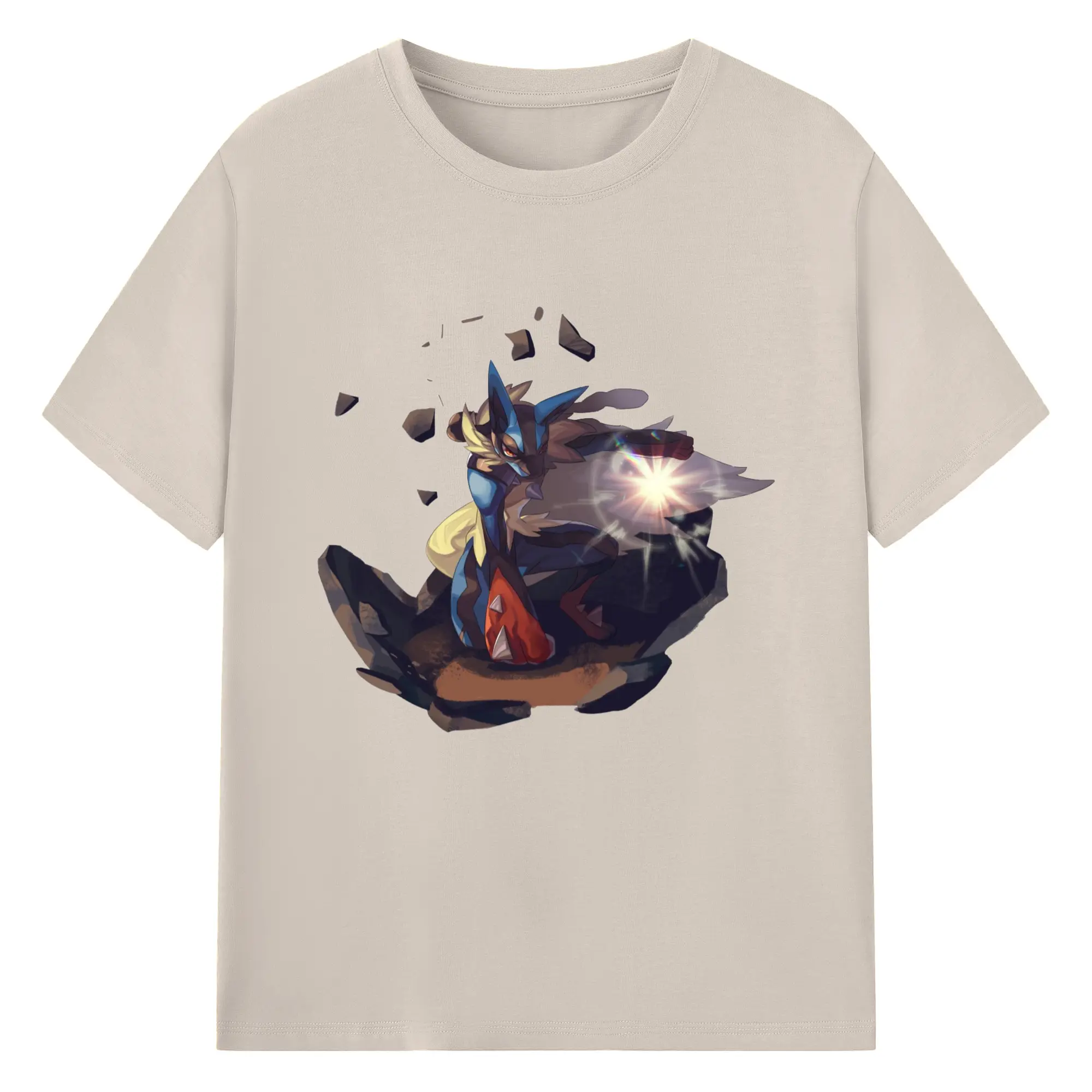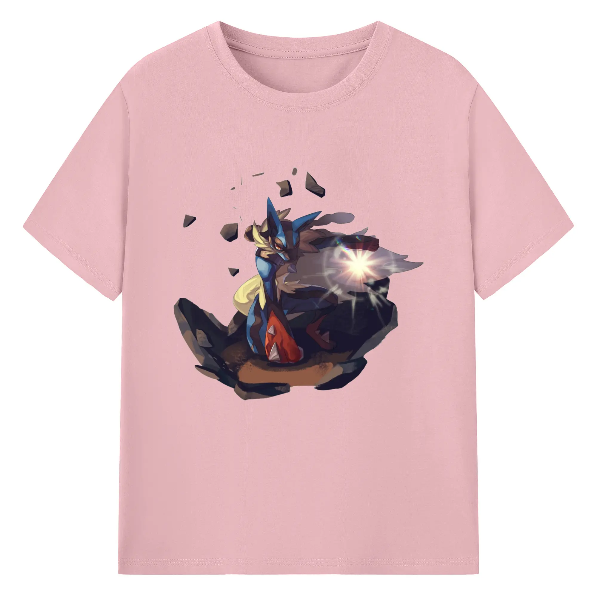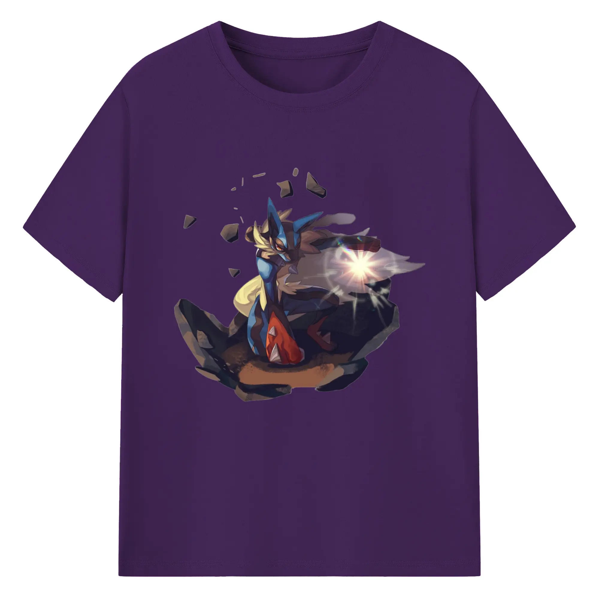 Cool Lucario collage graphic t shirt - 180g Cotton T-Shirt With Front Heat Transfer Print – Soft, Lightweight, Fitted Design – Comfortable Casual Wear For Sports & Everyday Use