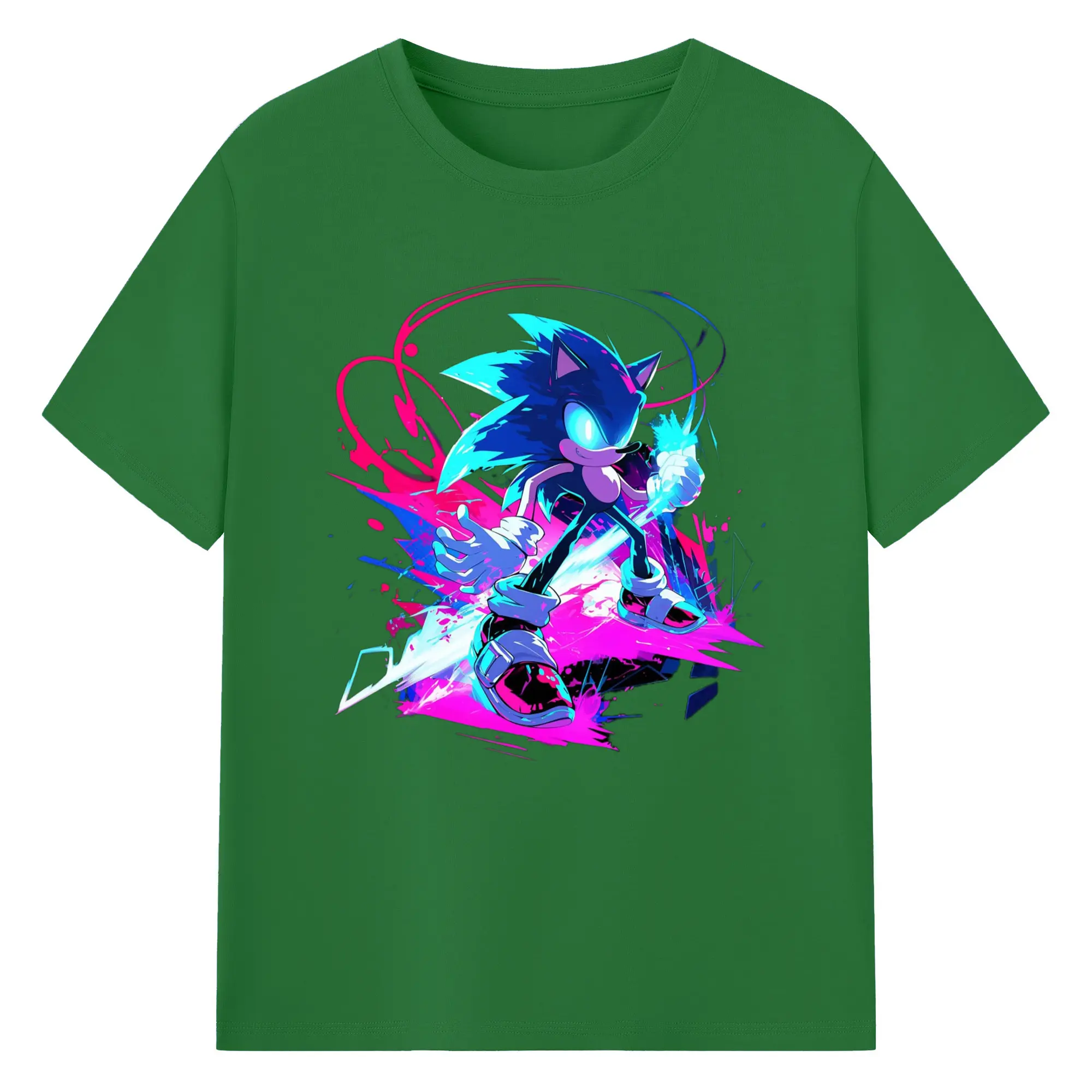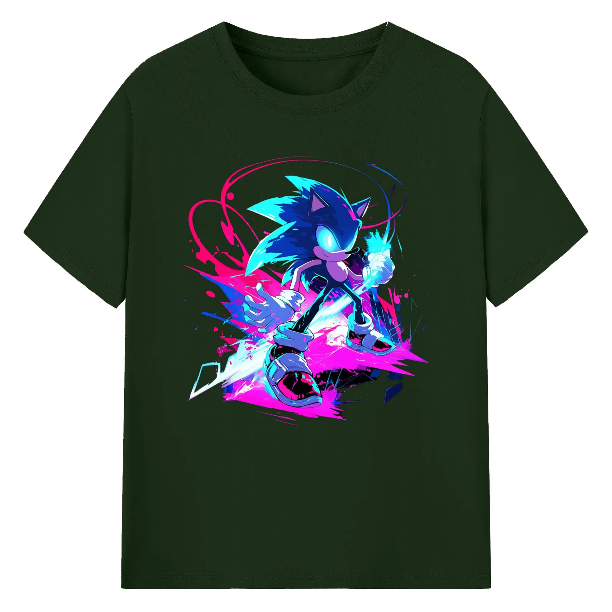 Cool Sonic graphic t-shirt - 180g Cotton T-Shirt With Front Heat Transfer Print – Soft, Lightweight, Fitted Design – Comfortable Casual Wear For Sports & Everyday Use