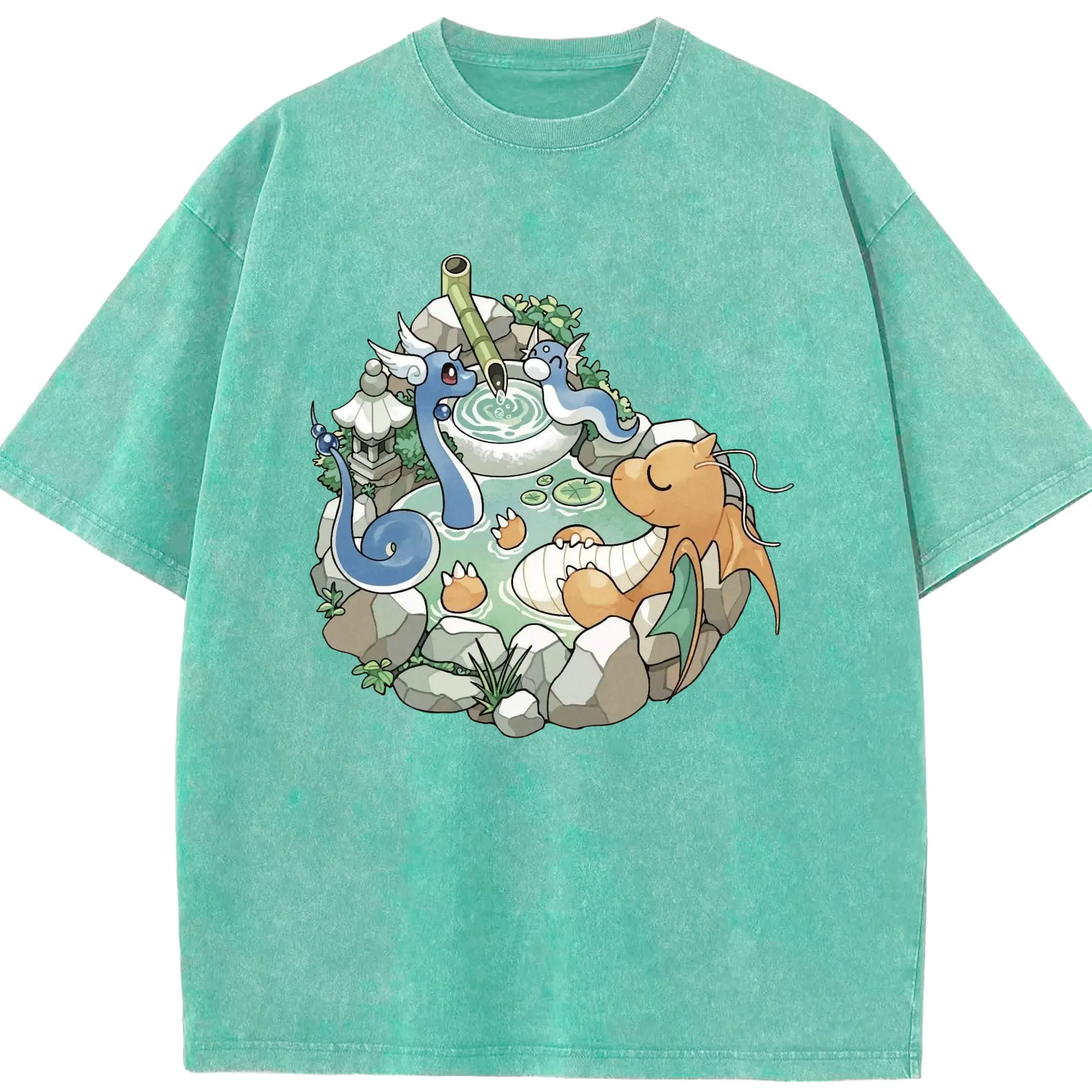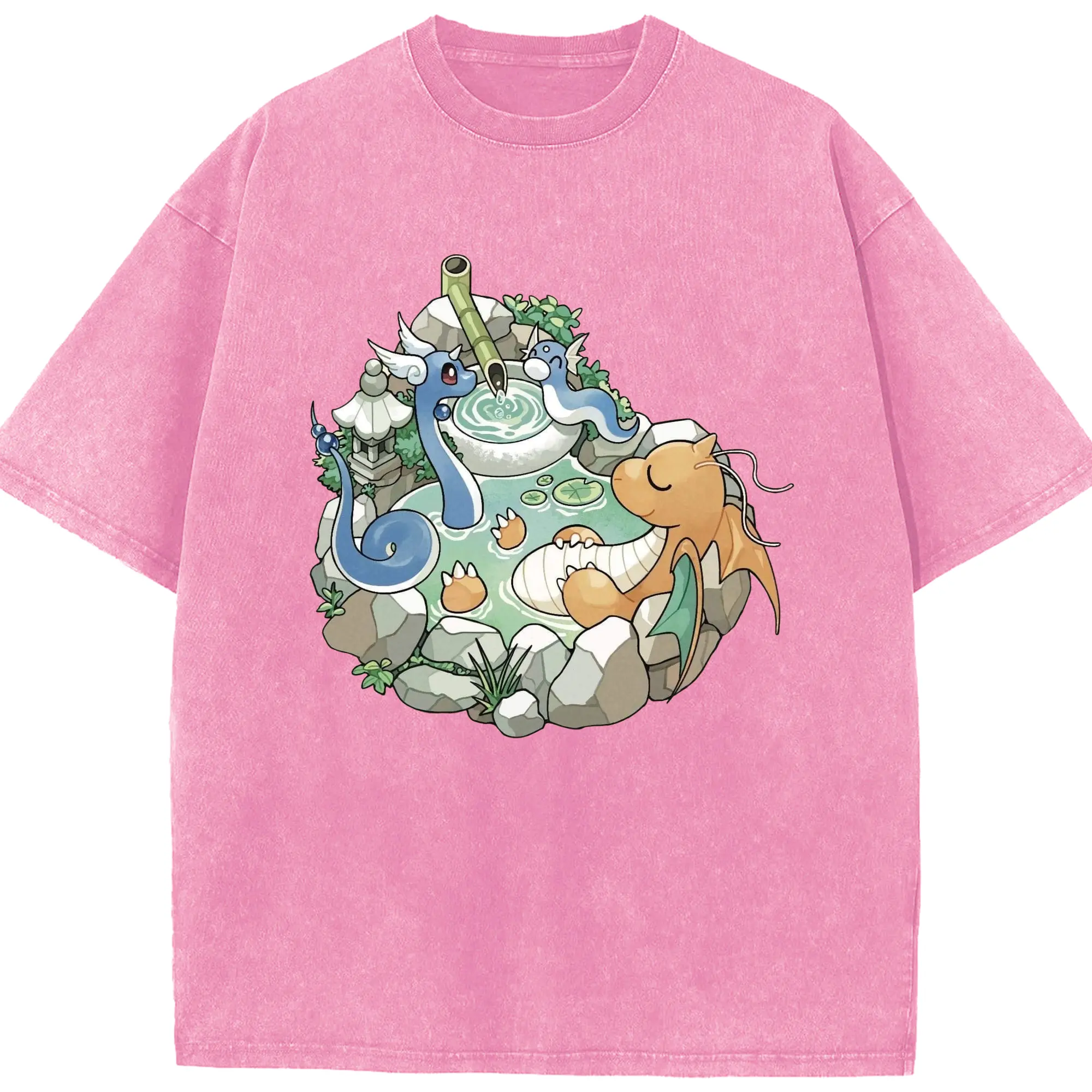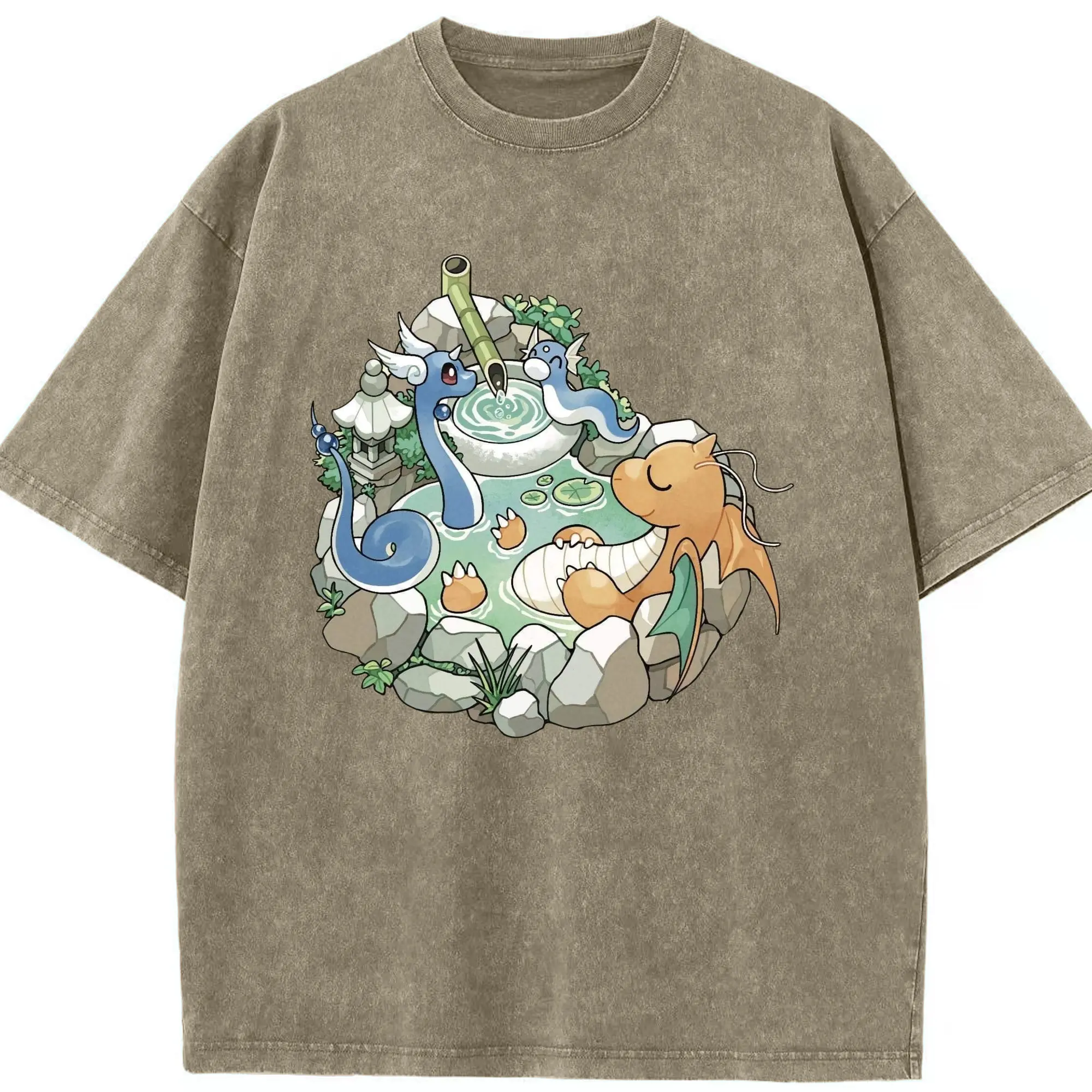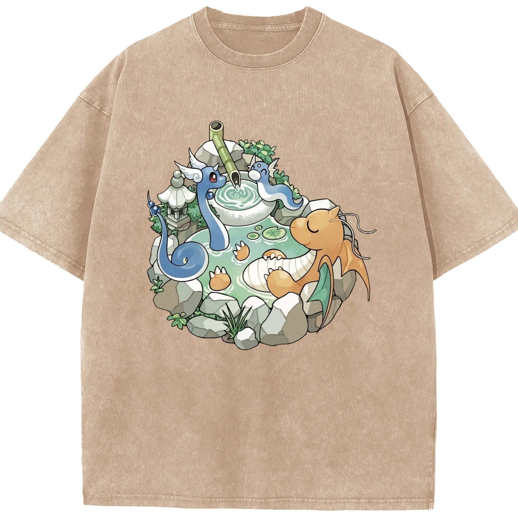 Dragonite graphic tee - Washed Vintage Look 230g Cotton Oversized T-Shirt With Front Heat Transfer Print – Soft, Lightweight, Stylish Fit – Comfortable Casual Wear For Sports & Everyday Use
