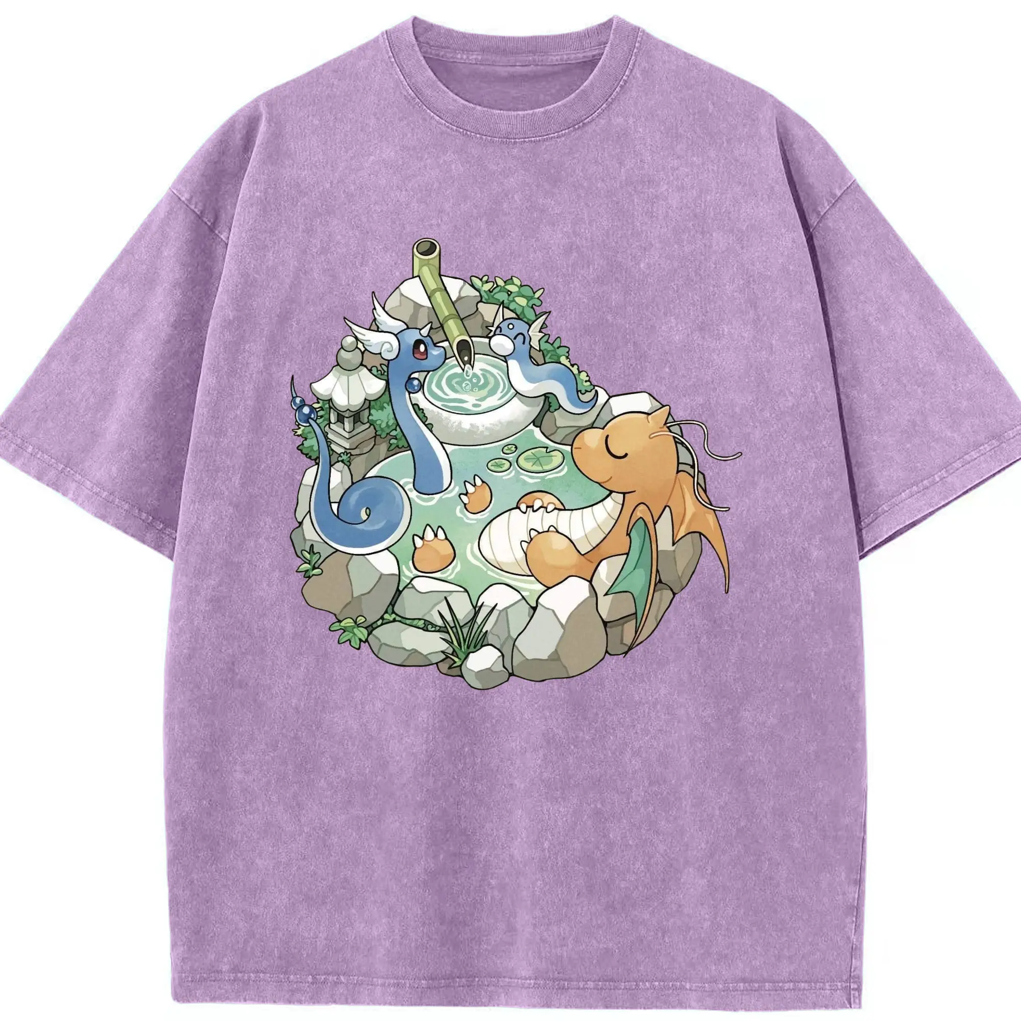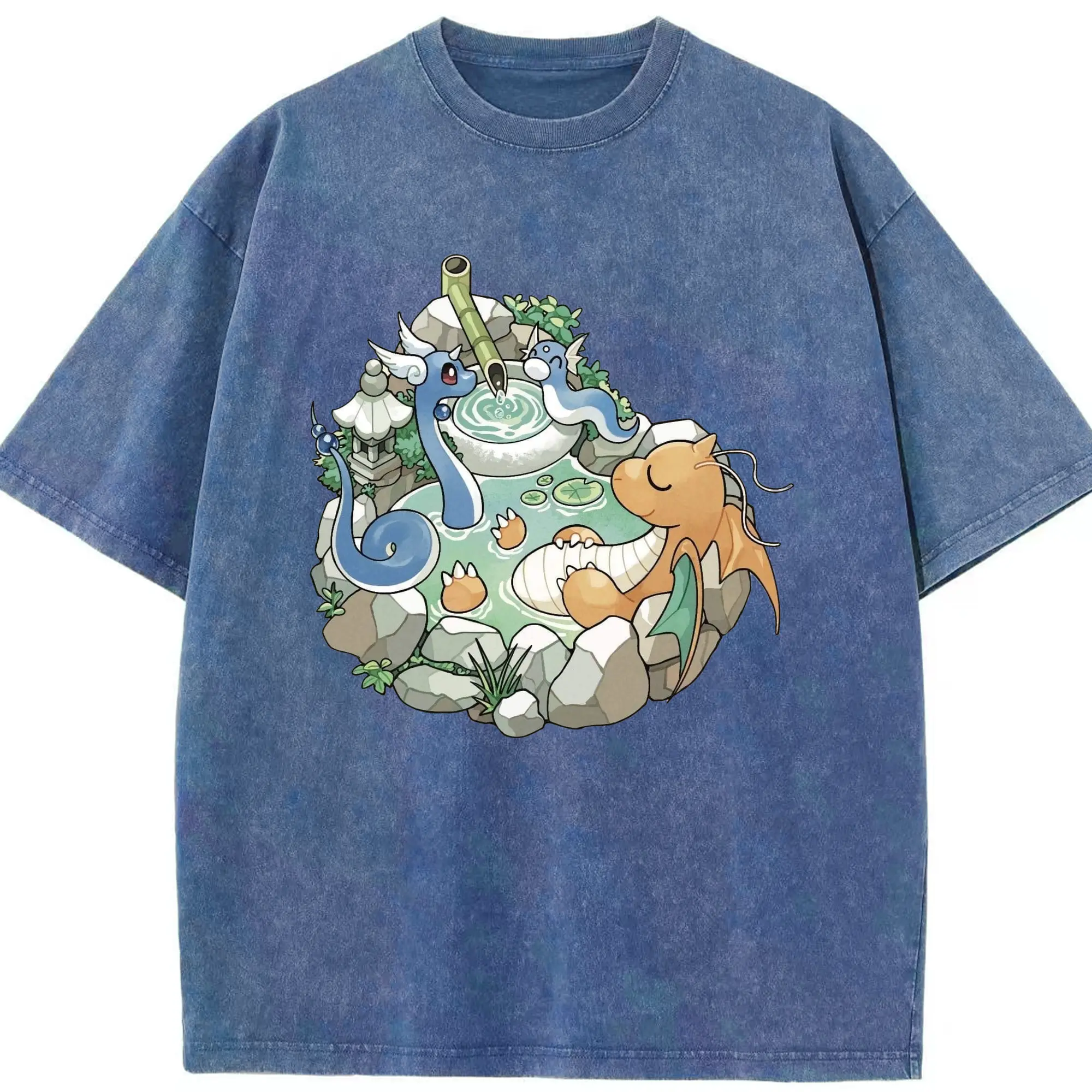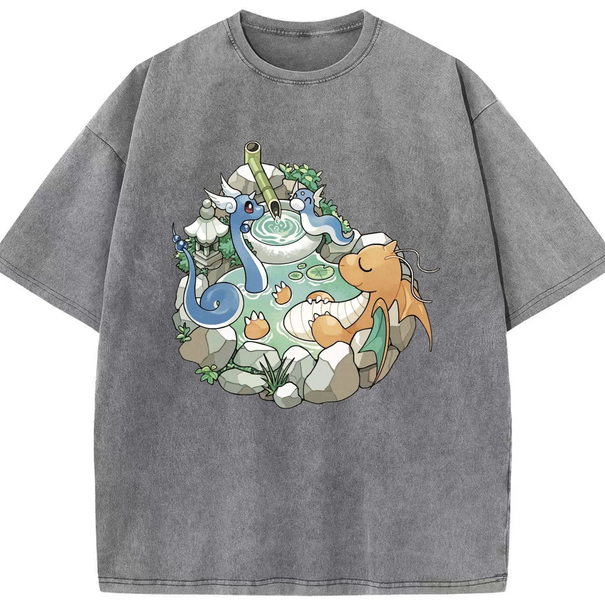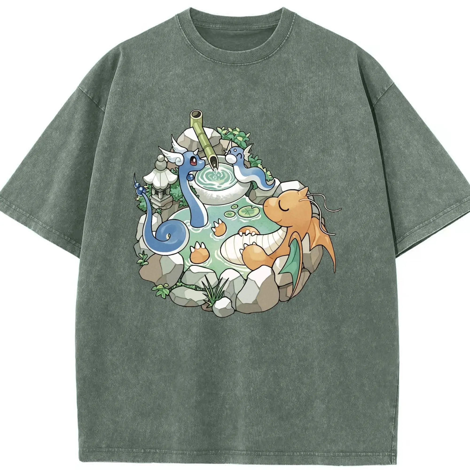Dragonite graphic tee - Washed Vintage Look 230g Cotton Oversized T-Shirt With Front Heat Transfer Print – Soft, Lightweight, Stylish Fit – Comfortable Casual Wear For Sports & Everyday Use