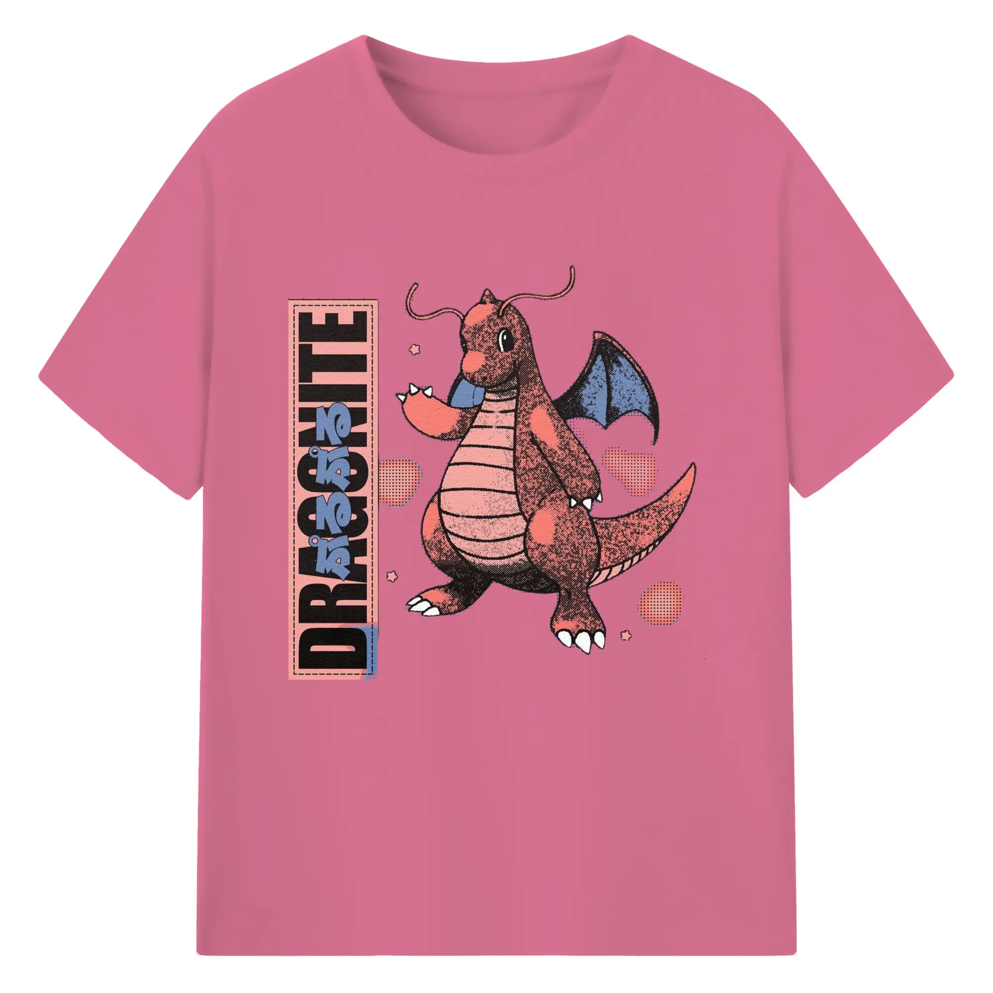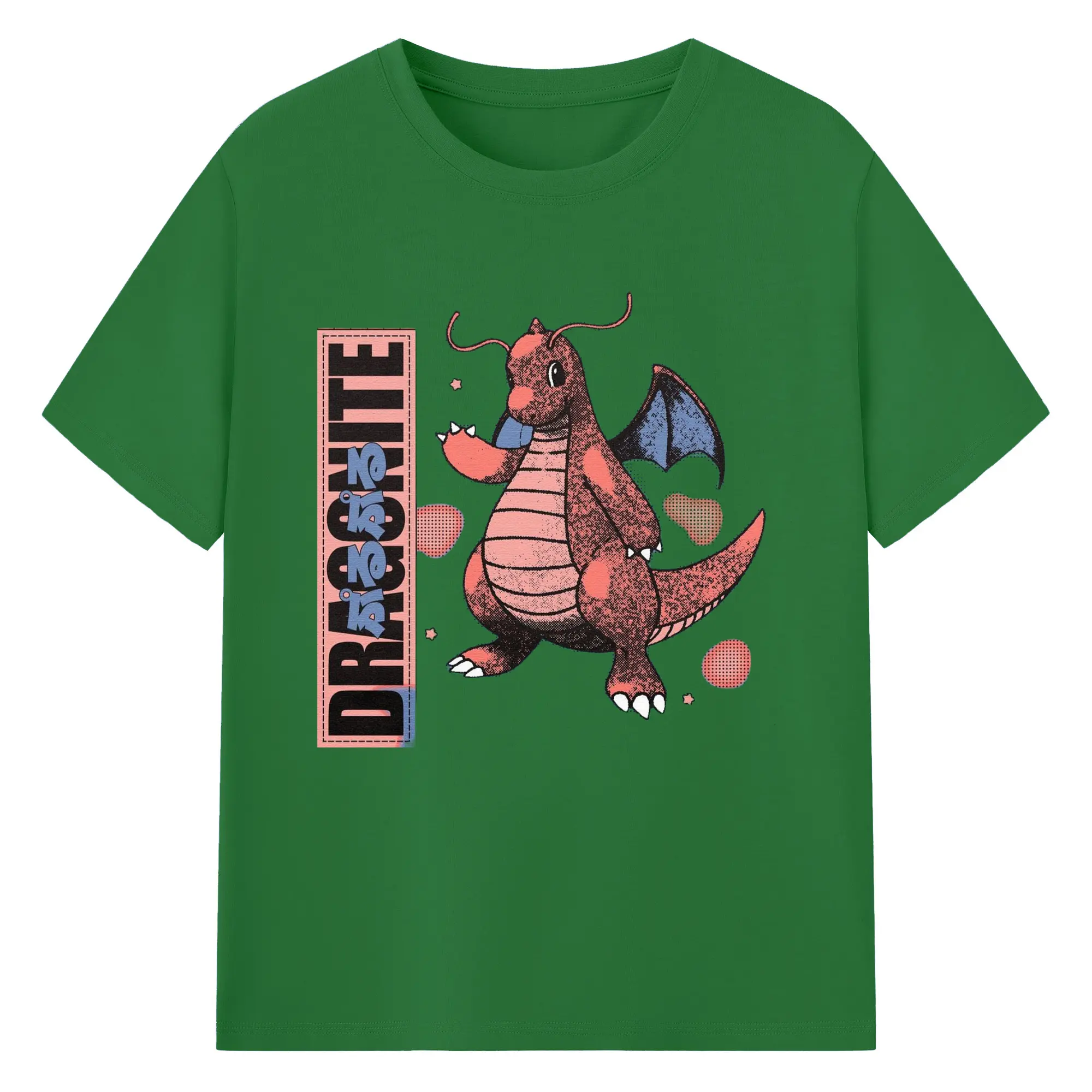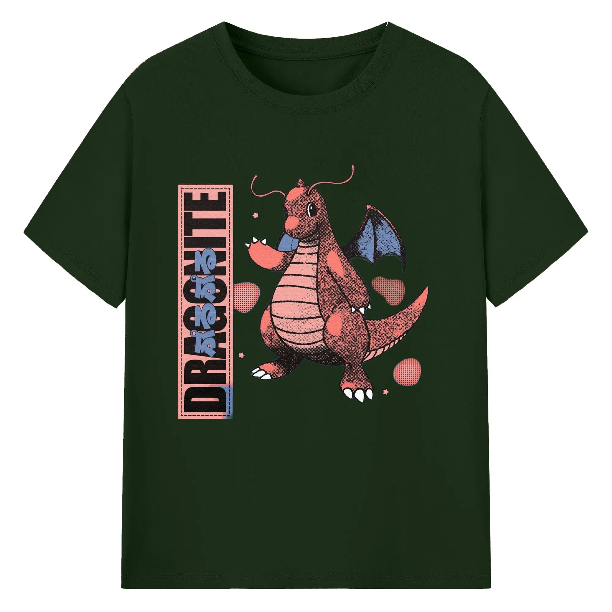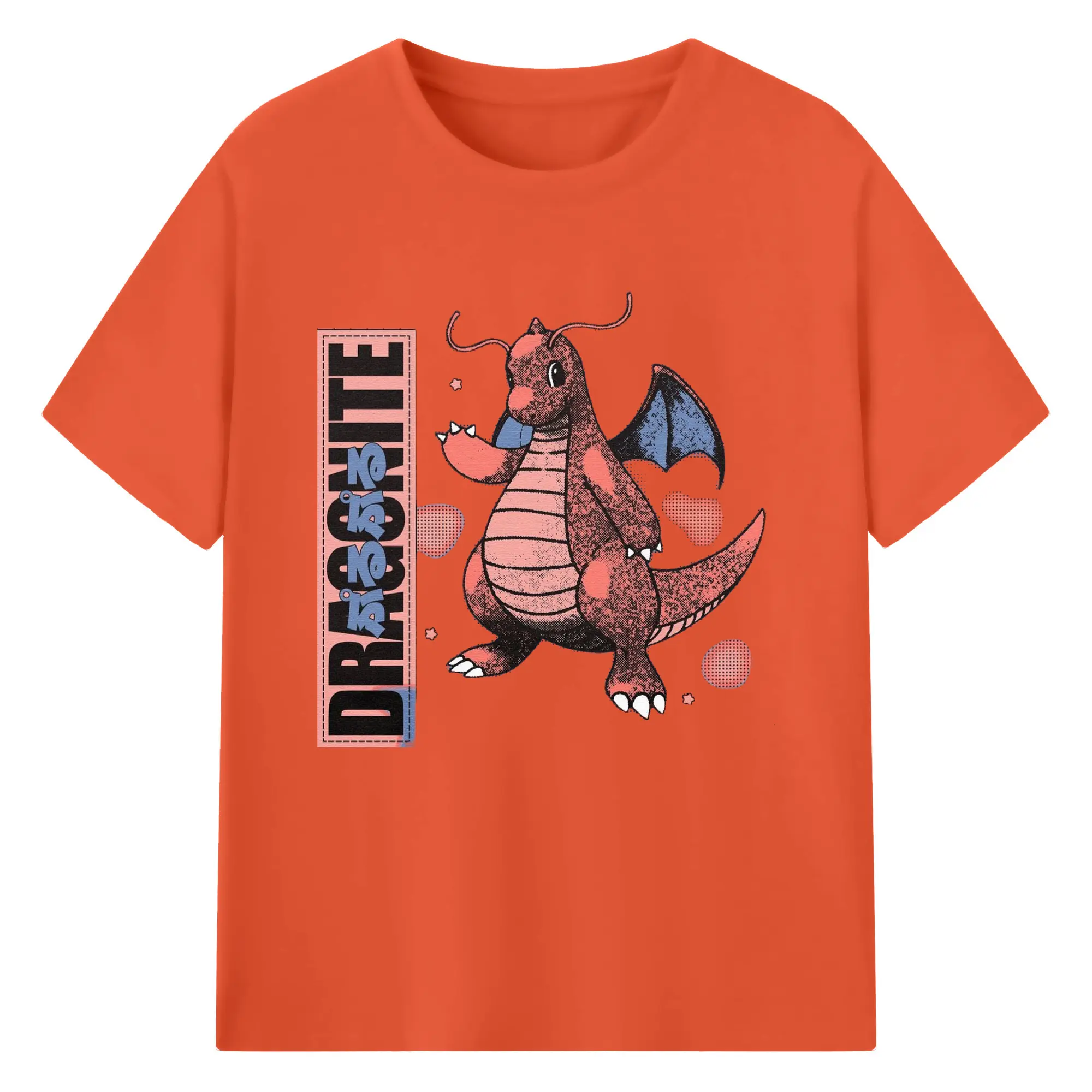 Dragonite retro graphic shirt - 180g Cotton T-Shirt With Front Heat Transfer Print – Soft, Lightweight, Fitted Design – Comfortable Casual Wear For Sports & Everyday Use