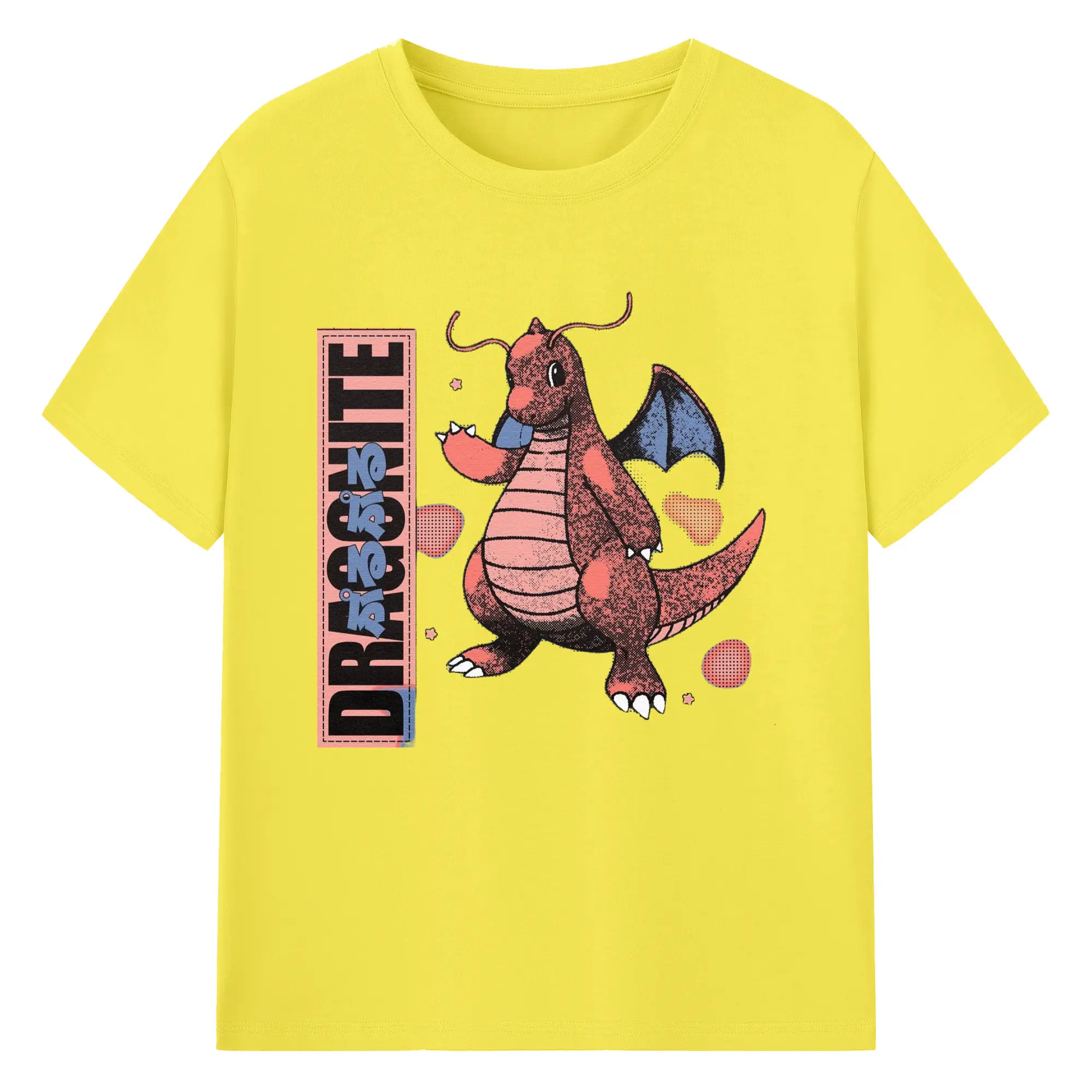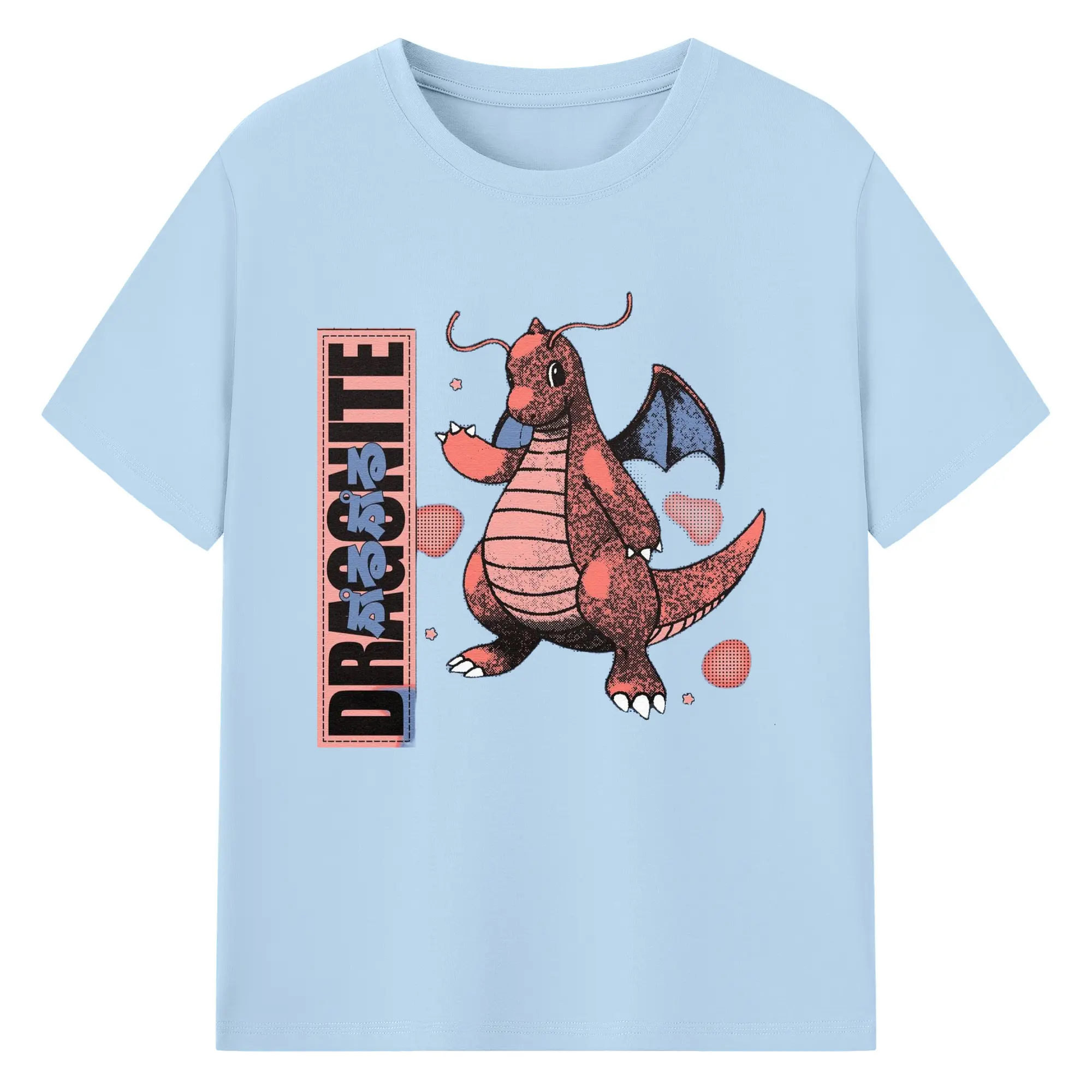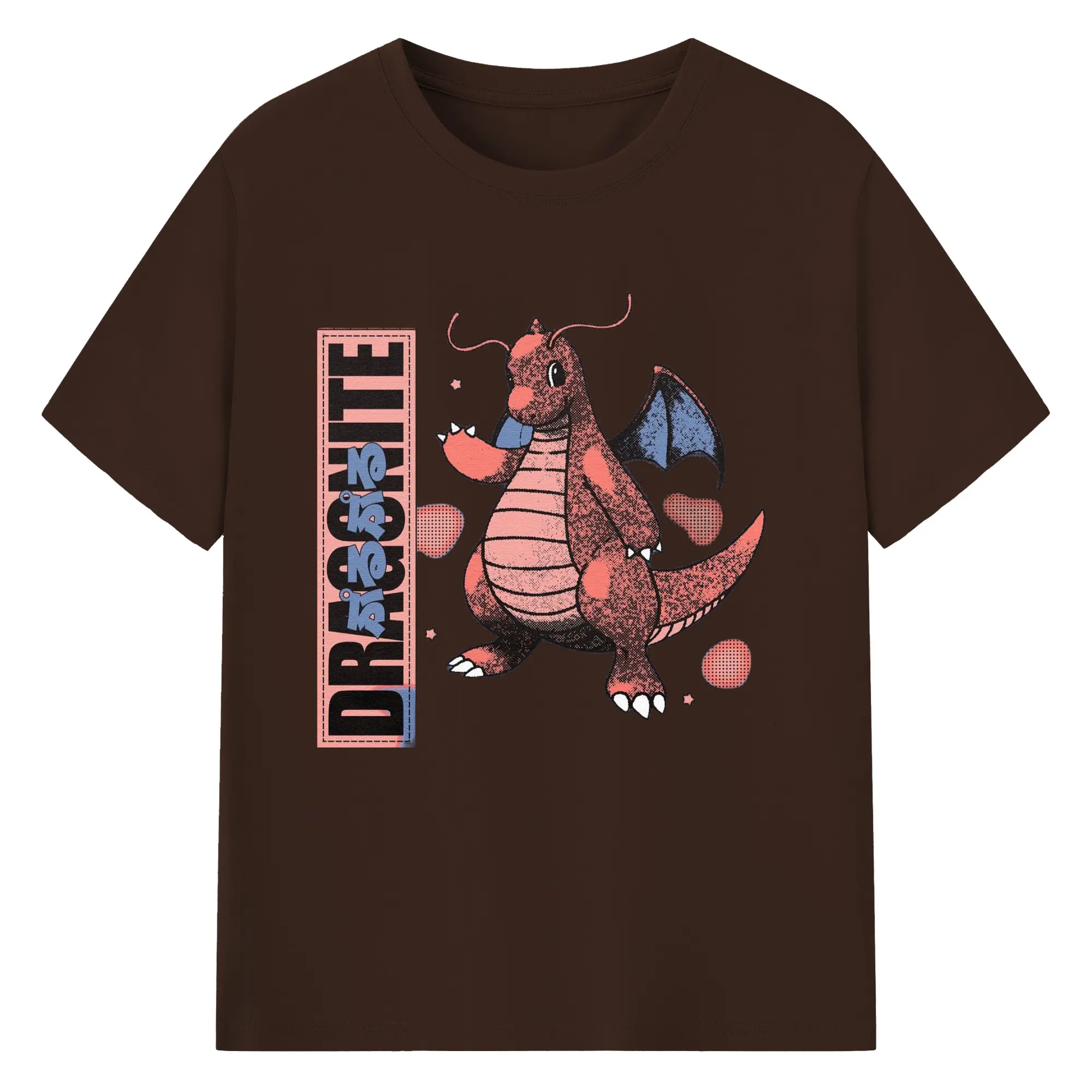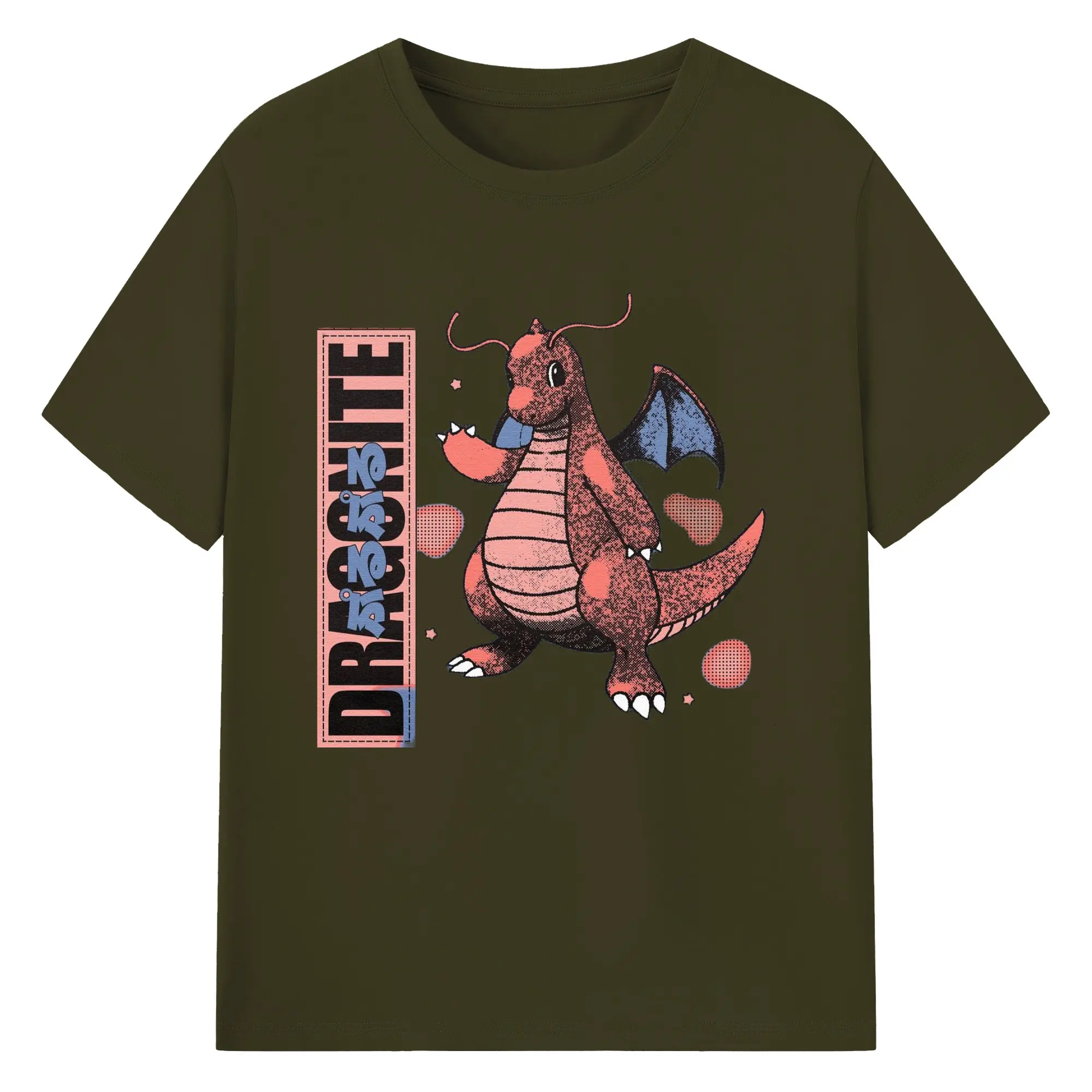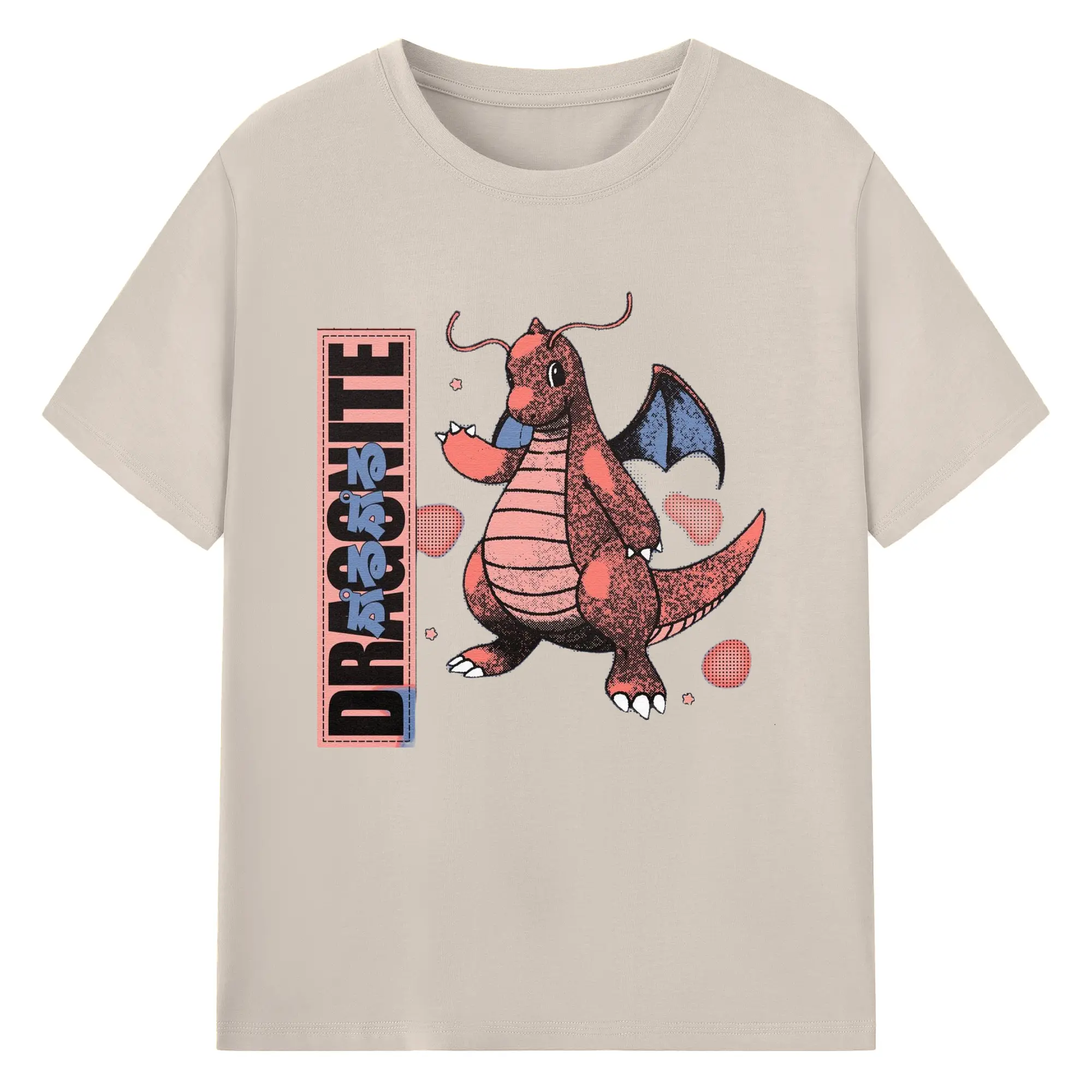 Dragonite retro graphic shirt - 180g Cotton T-Shirt With Front Heat Transfer Print – Soft, Lightweight, Fitted Design – Comfortable Casual Wear For Sports & Everyday Use