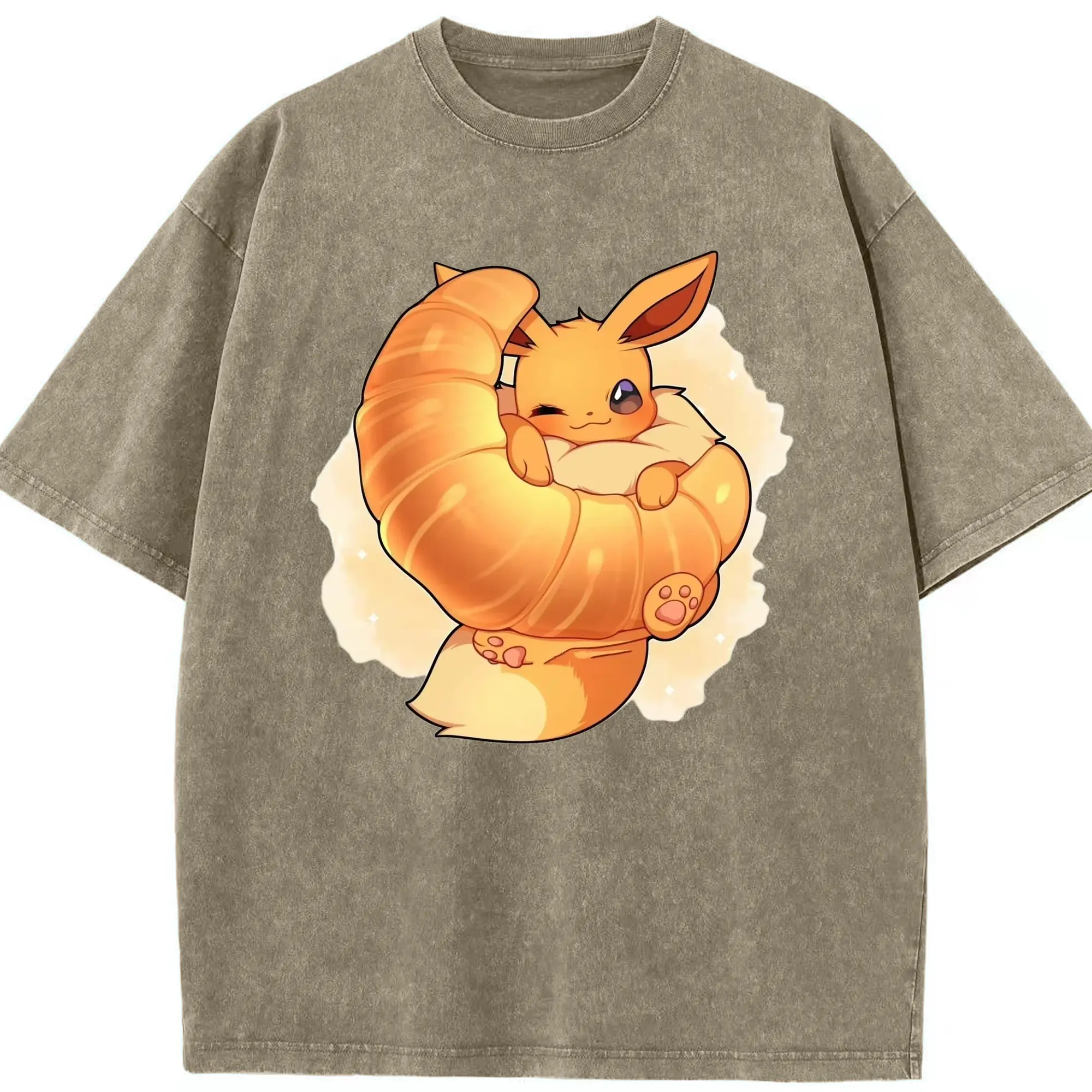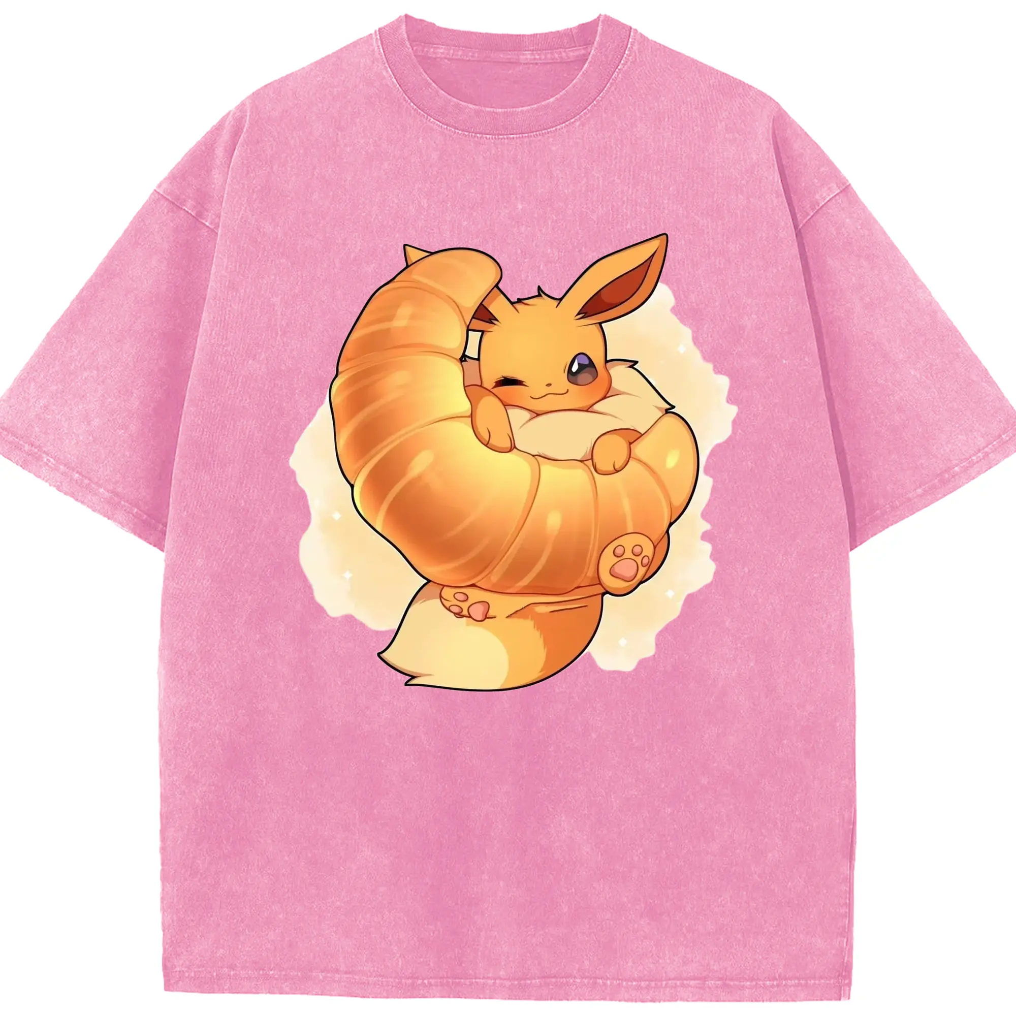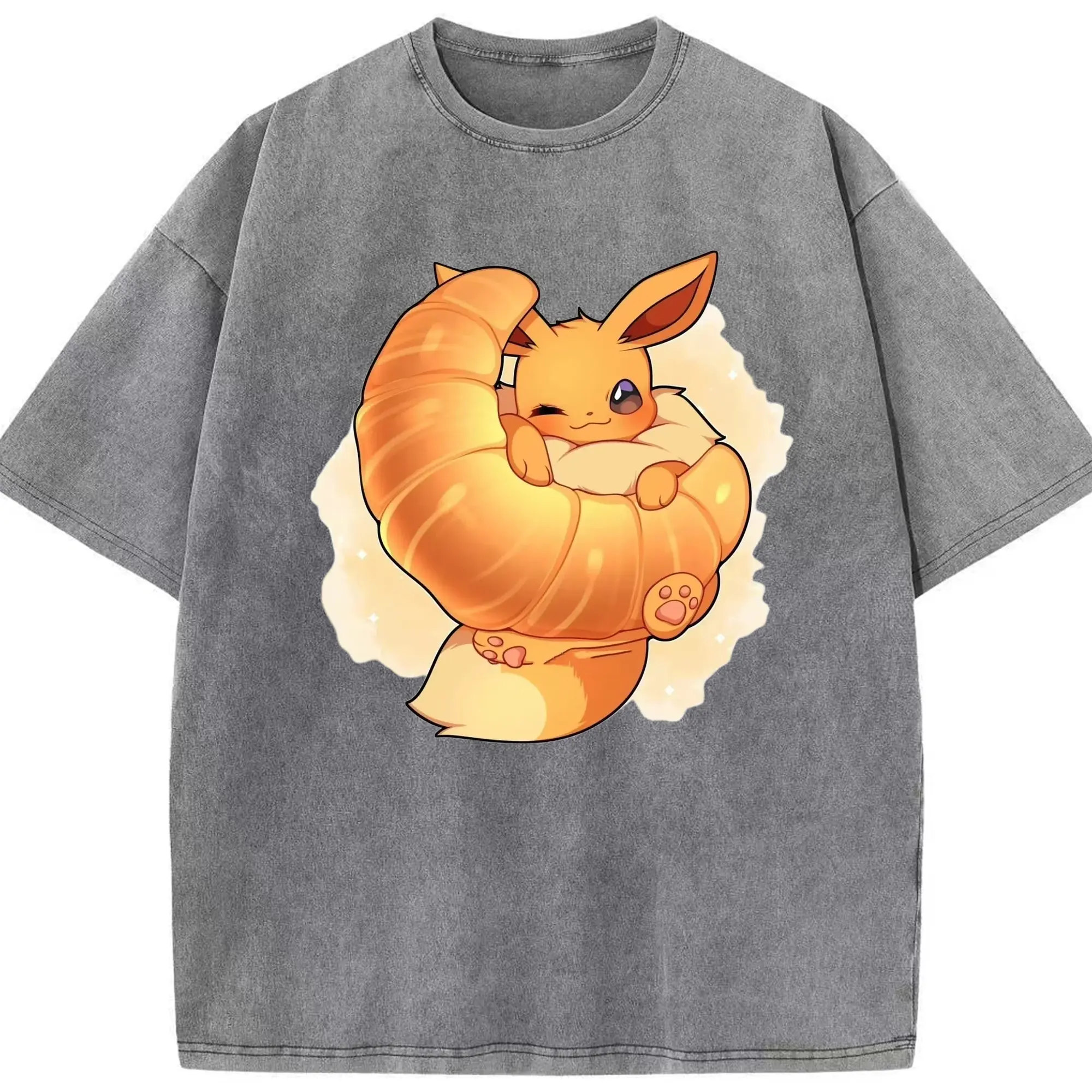 Eevee graphic shirt - Washed Vintage Look 230g Cotton Oversized T-Shirt With Front Heat Transfer Print – Soft, Lightweight, Stylish Fit – Comfortable Casual Wear For Sports & Everyday Use