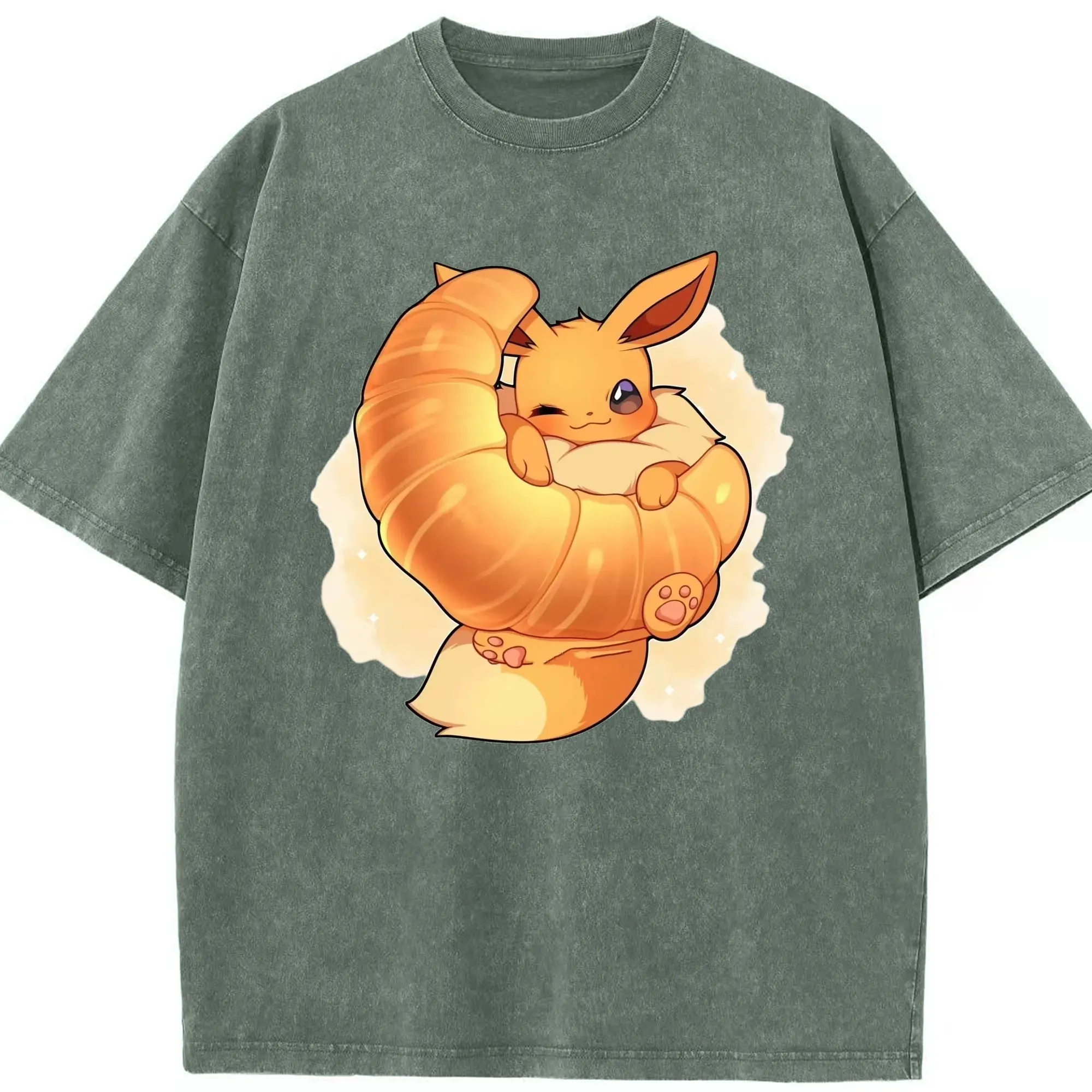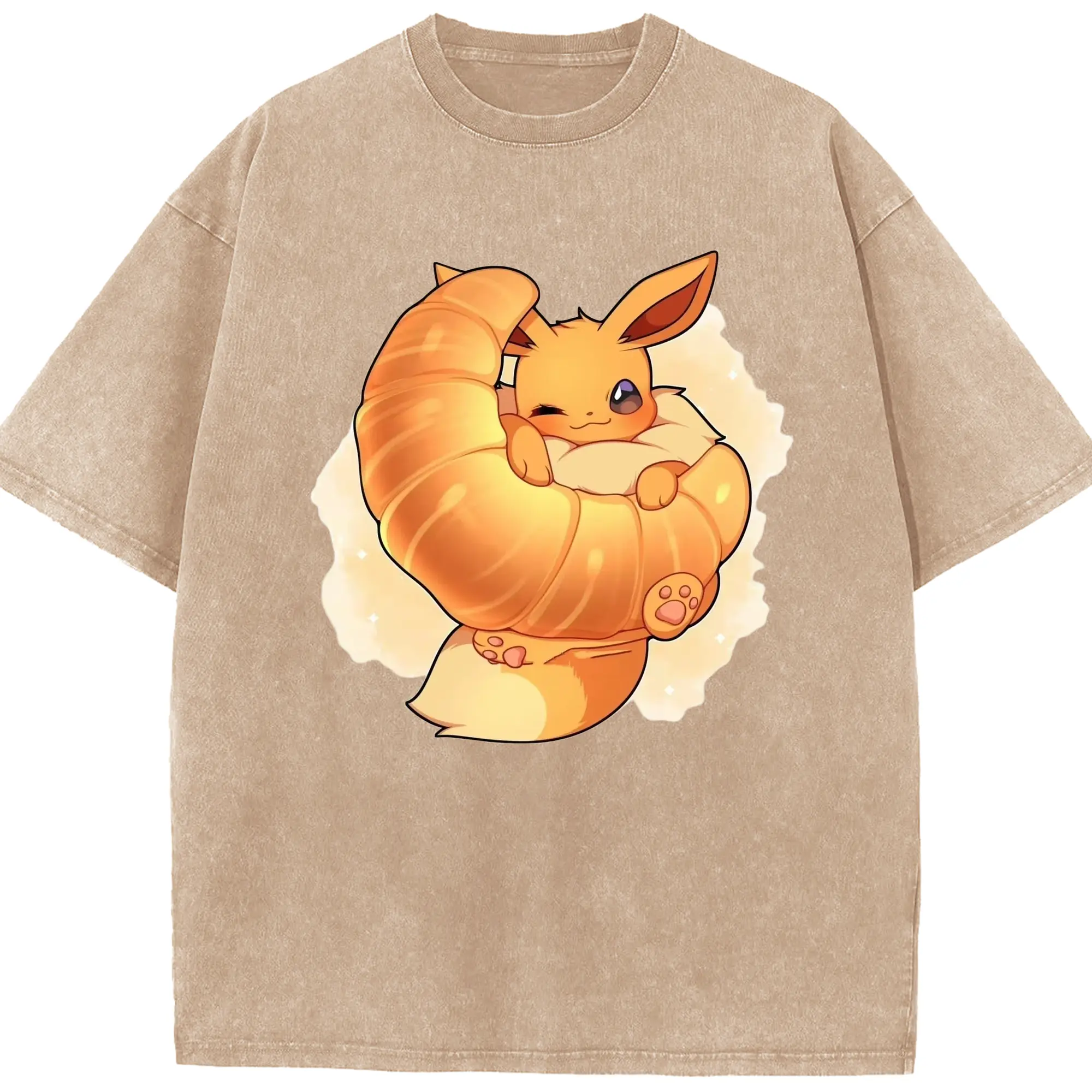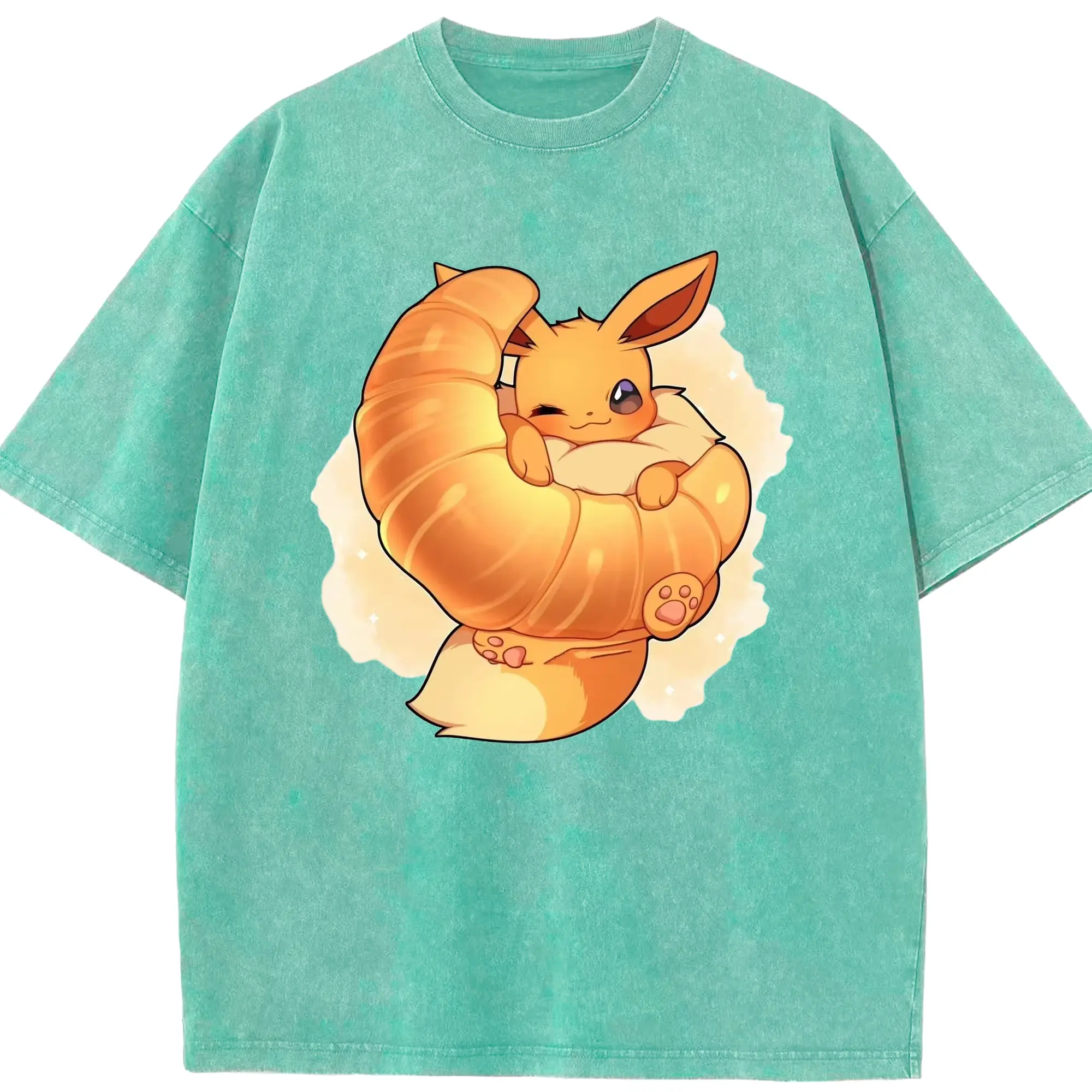 Eevee graphic shirt - Washed Vintage Look 230g Cotton Oversized T-Shirt With Front Heat Transfer Print – Soft, Lightweight, Stylish Fit – Comfortable Casual Wear For Sports & Everyday Use