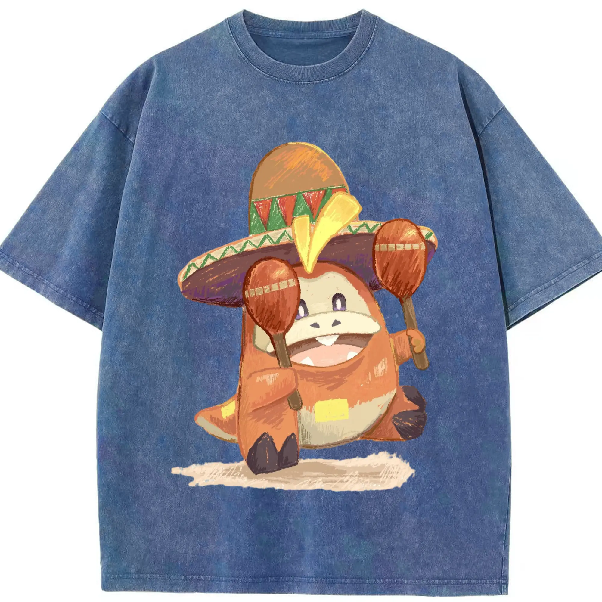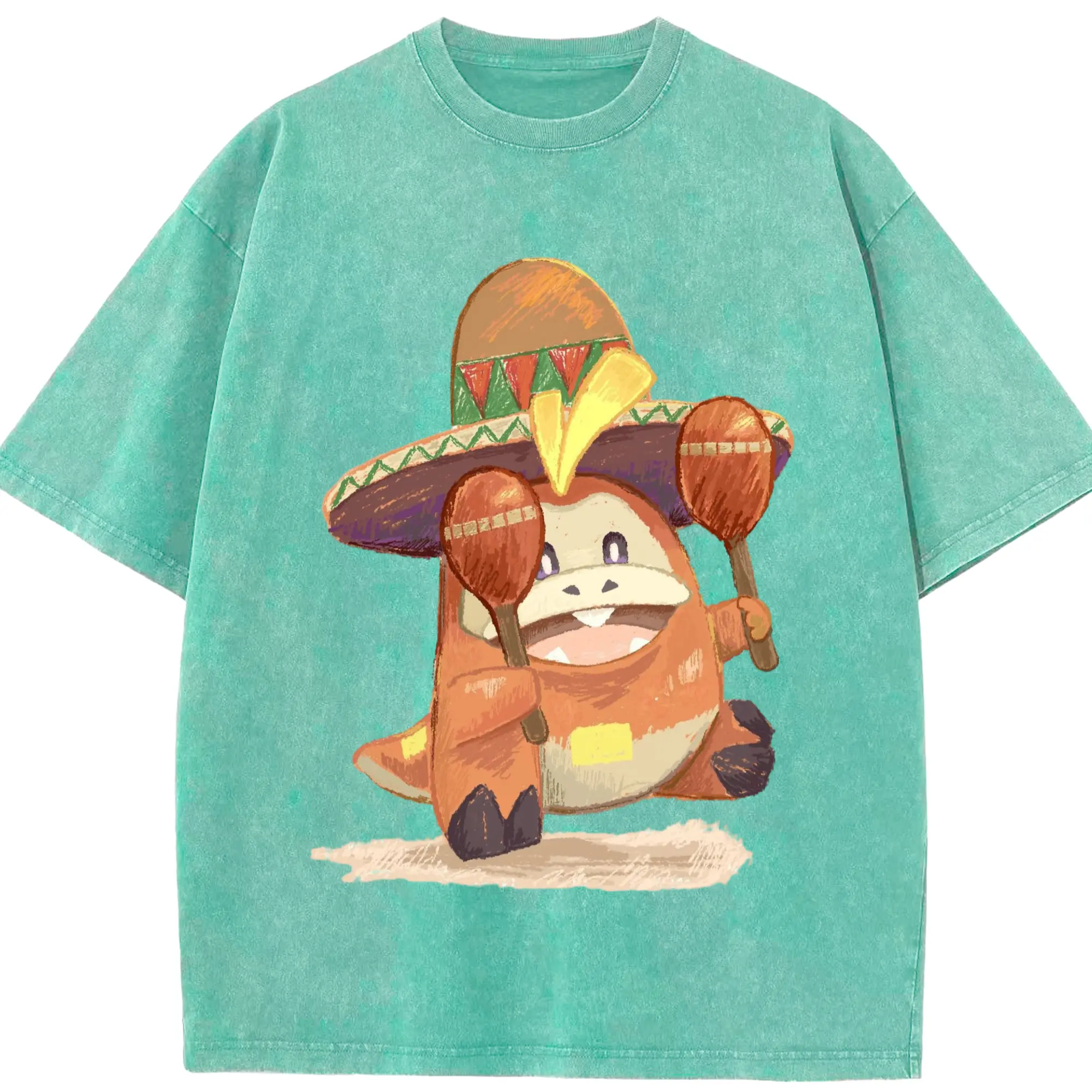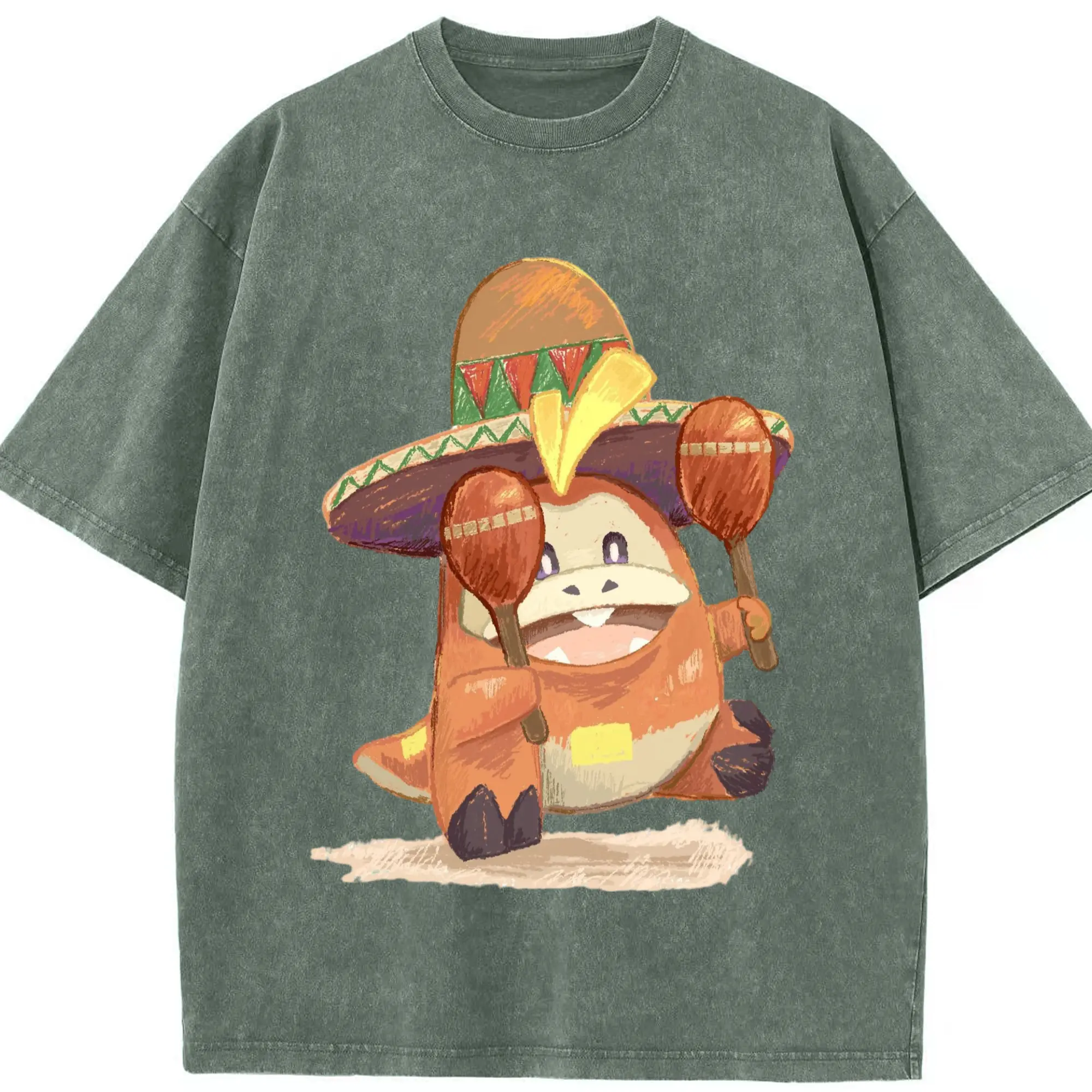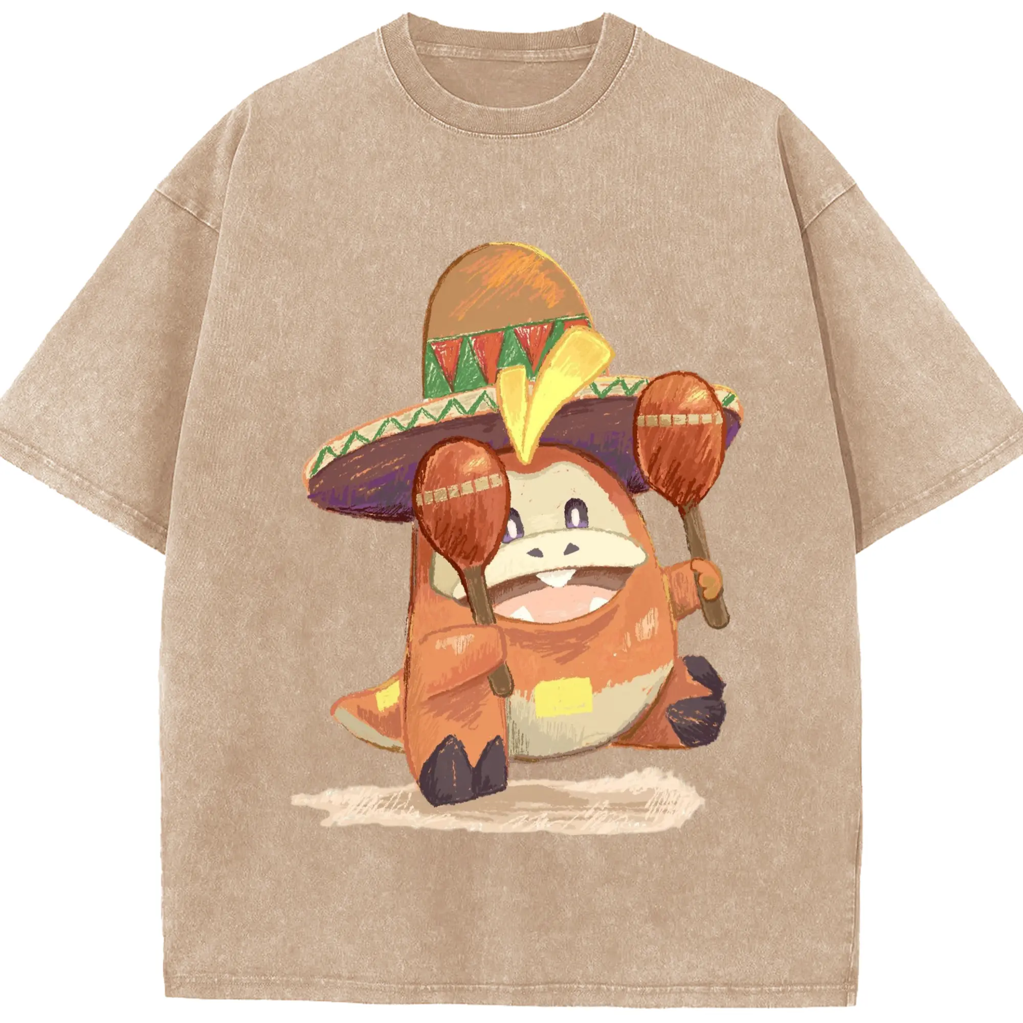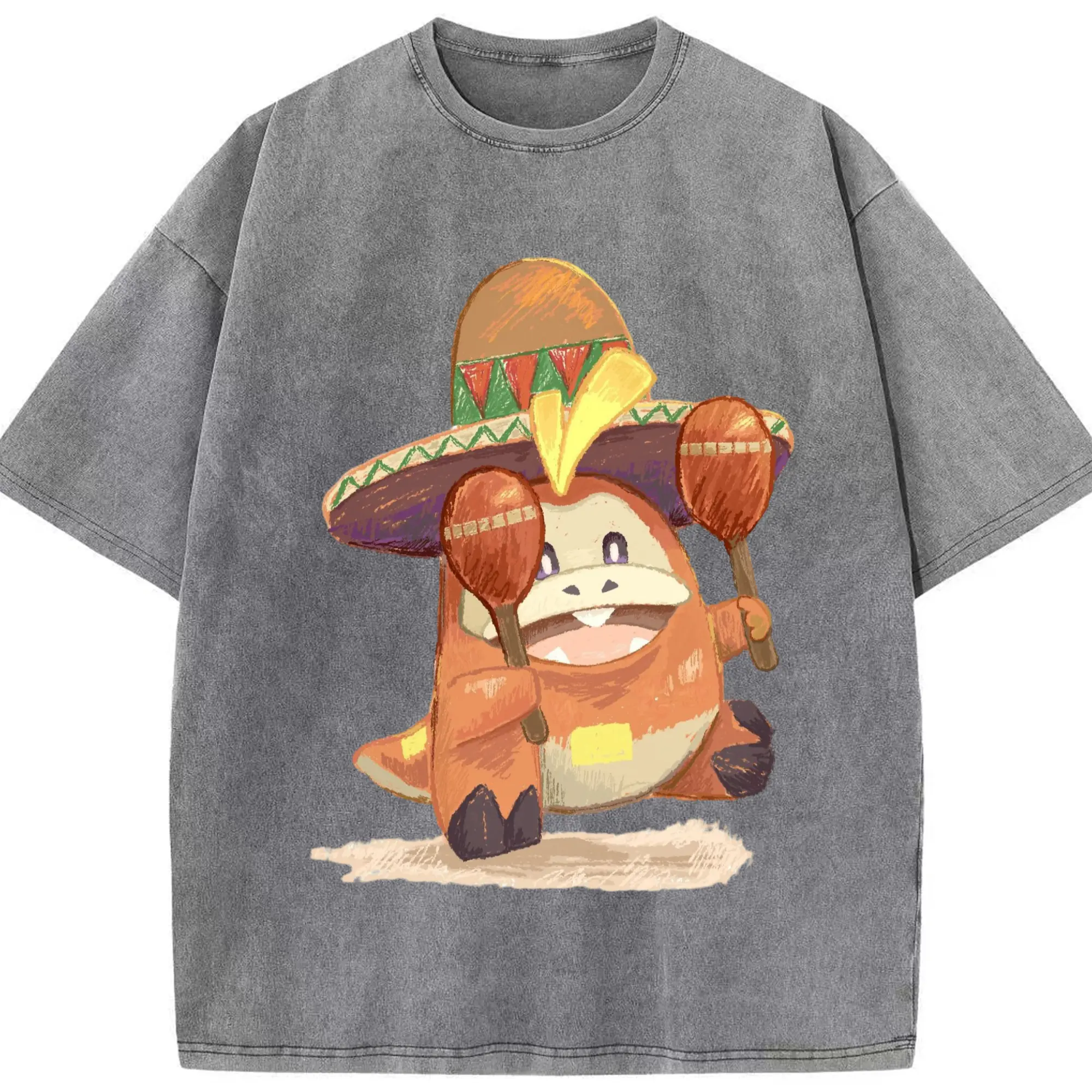 Fuecoco graphic t-shirt - Washed Vintage Look 230g Cotton Oversized T-Shirt With Front Heat Transfer Print – Soft, Lightweight, Stylish Fit – Comfortable Casual Wear For Sports & Everyday Use