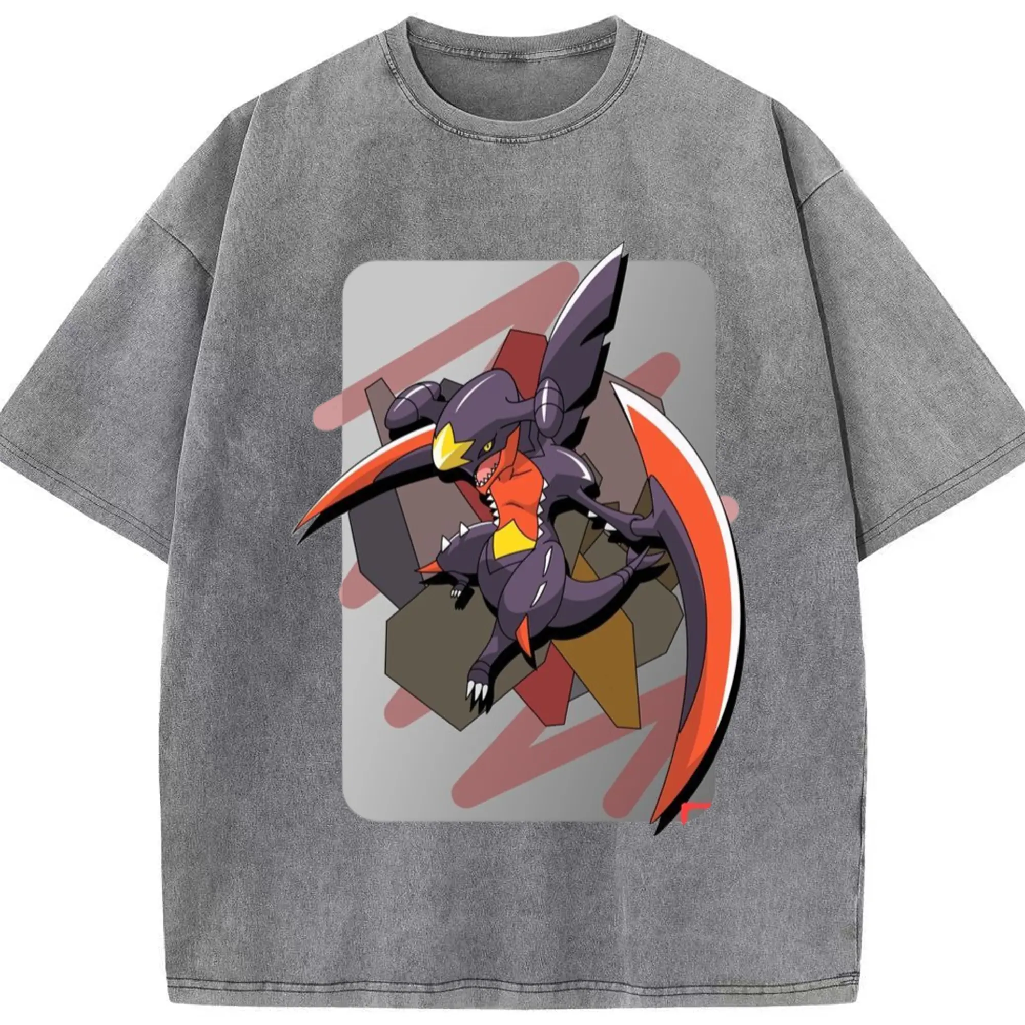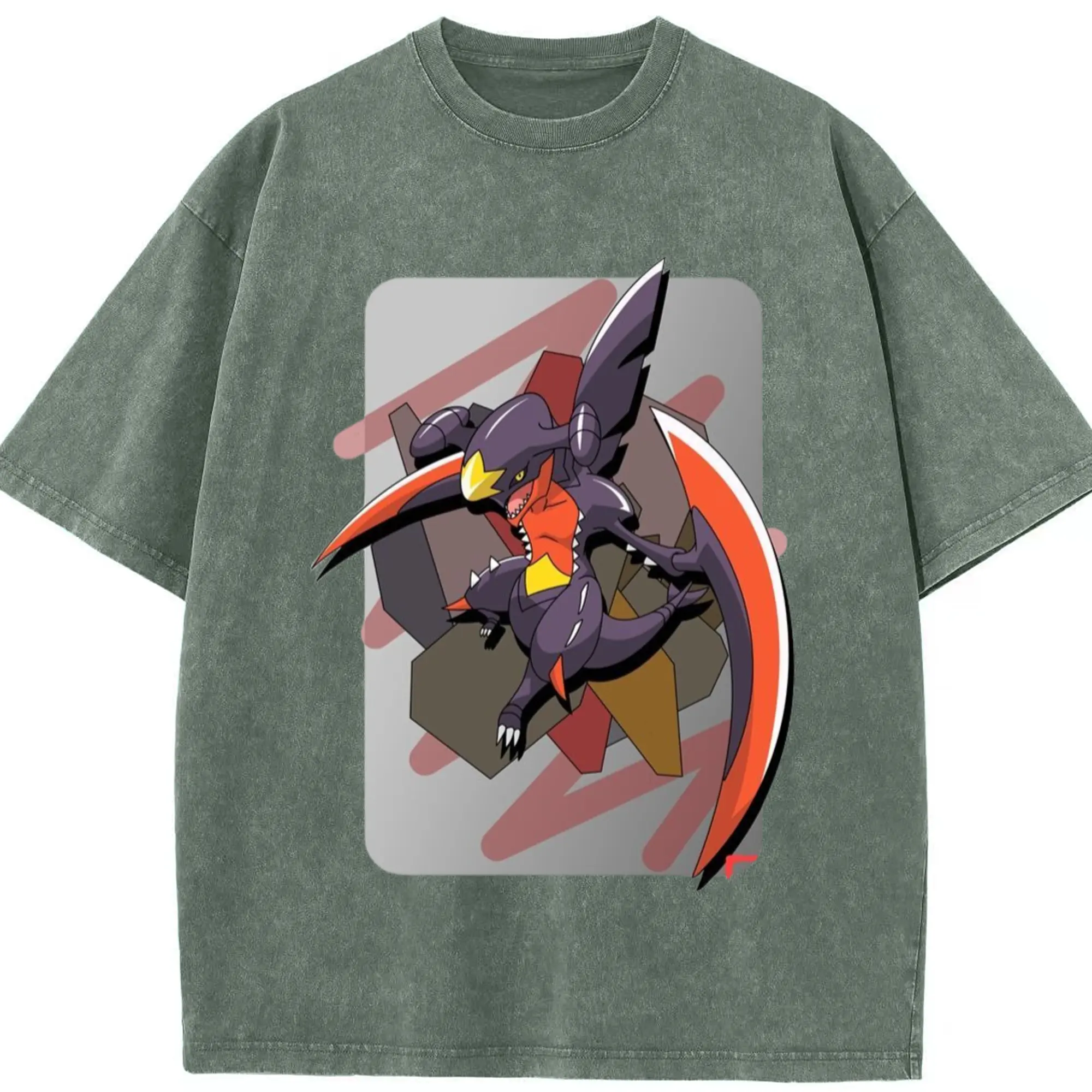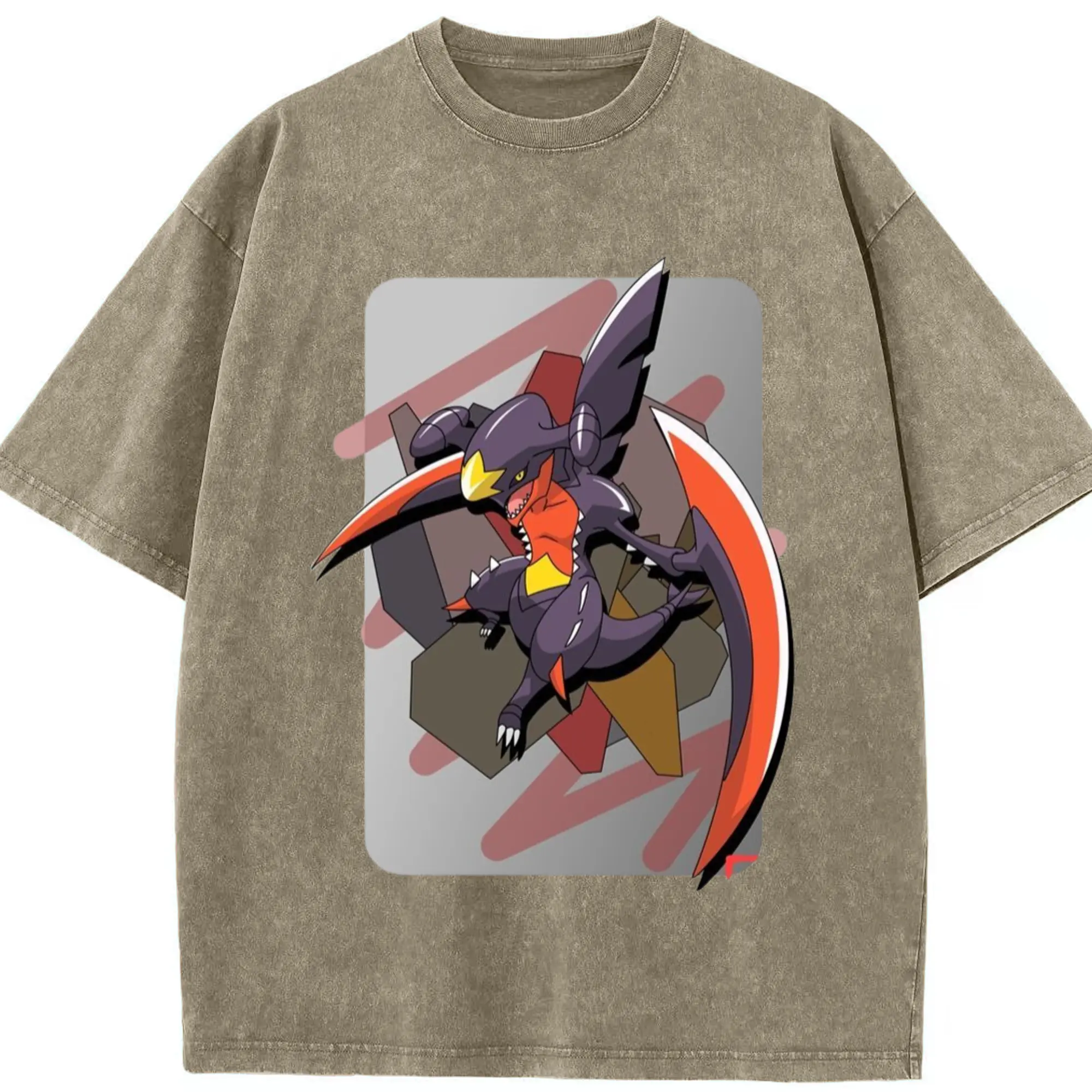 Garchomp graphic t shirt​ - Washed Vintage Look 230g Cotton Oversized T-Shirt With Front Heat Transfer Print – Soft, Lightweight, Stylish Fit – Comfortable Casual Wear For Sports & Everyday Use