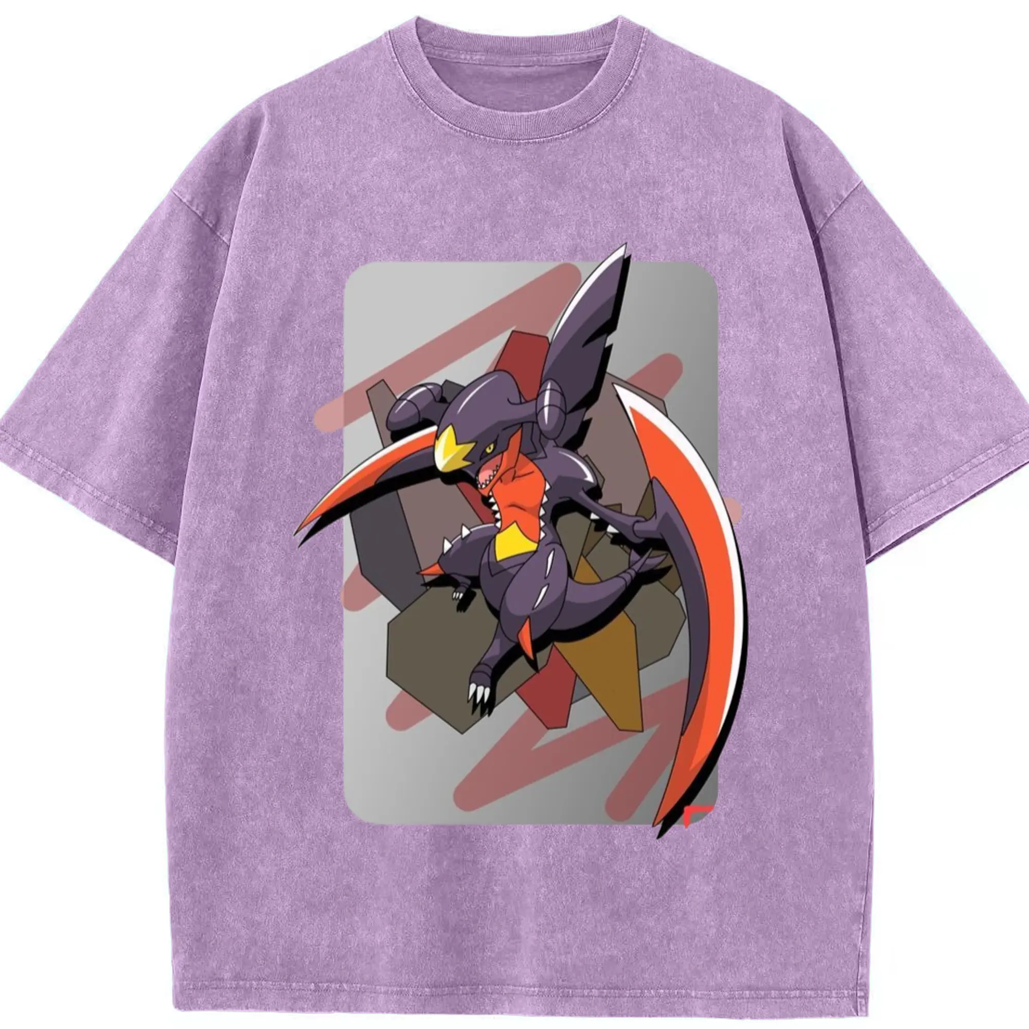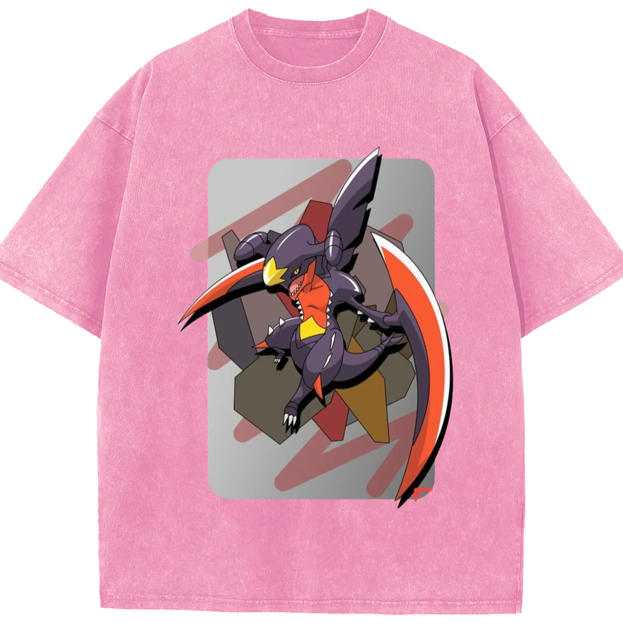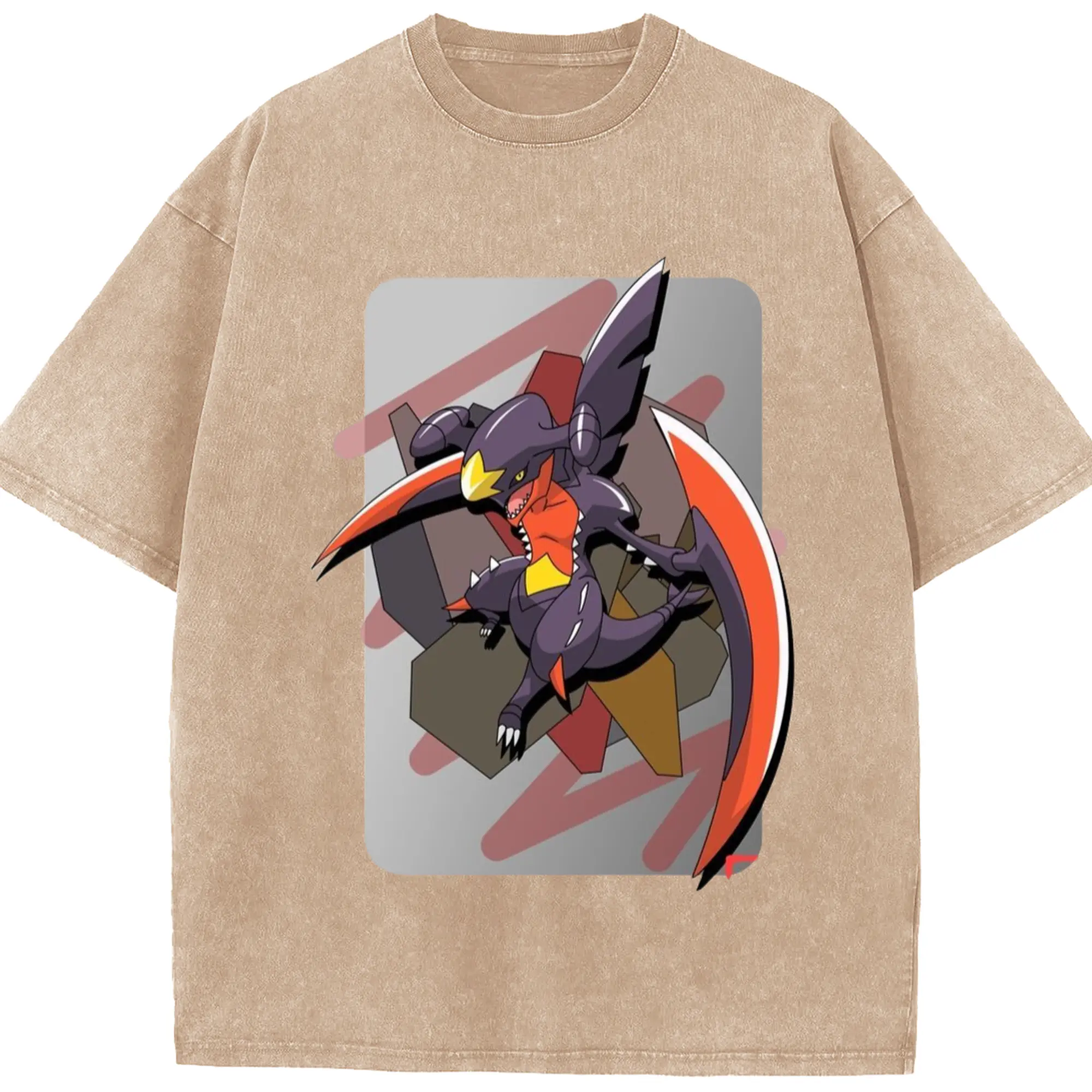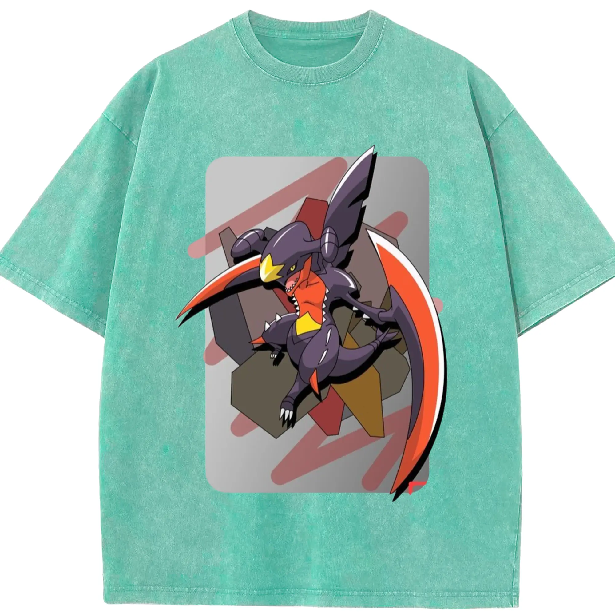Garchomp graphic t shirt​ - Washed Vintage Look 230g Cotton Oversized T-Shirt With Front Heat Transfer Print – Soft, Lightweight, Stylish Fit – Comfortable Casual Wear For Sports & Everyday Use