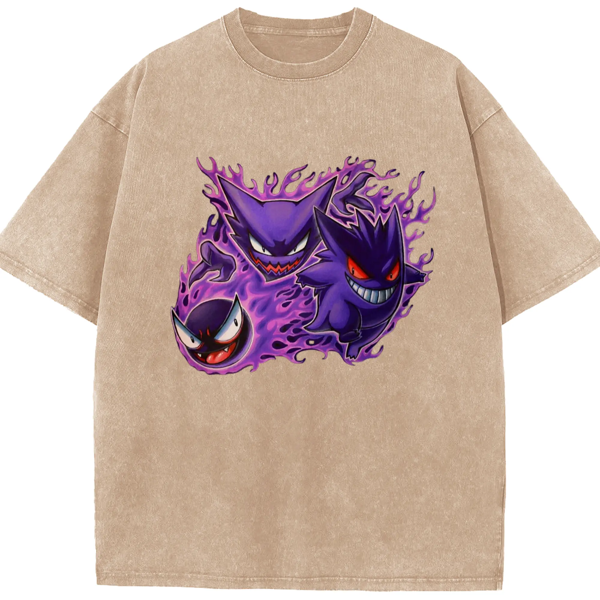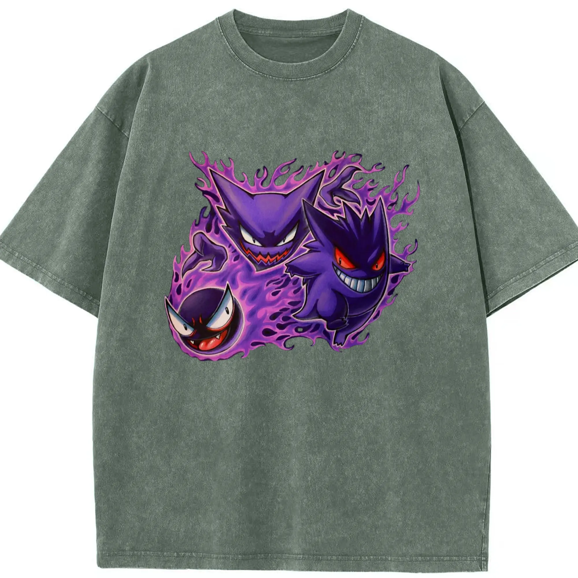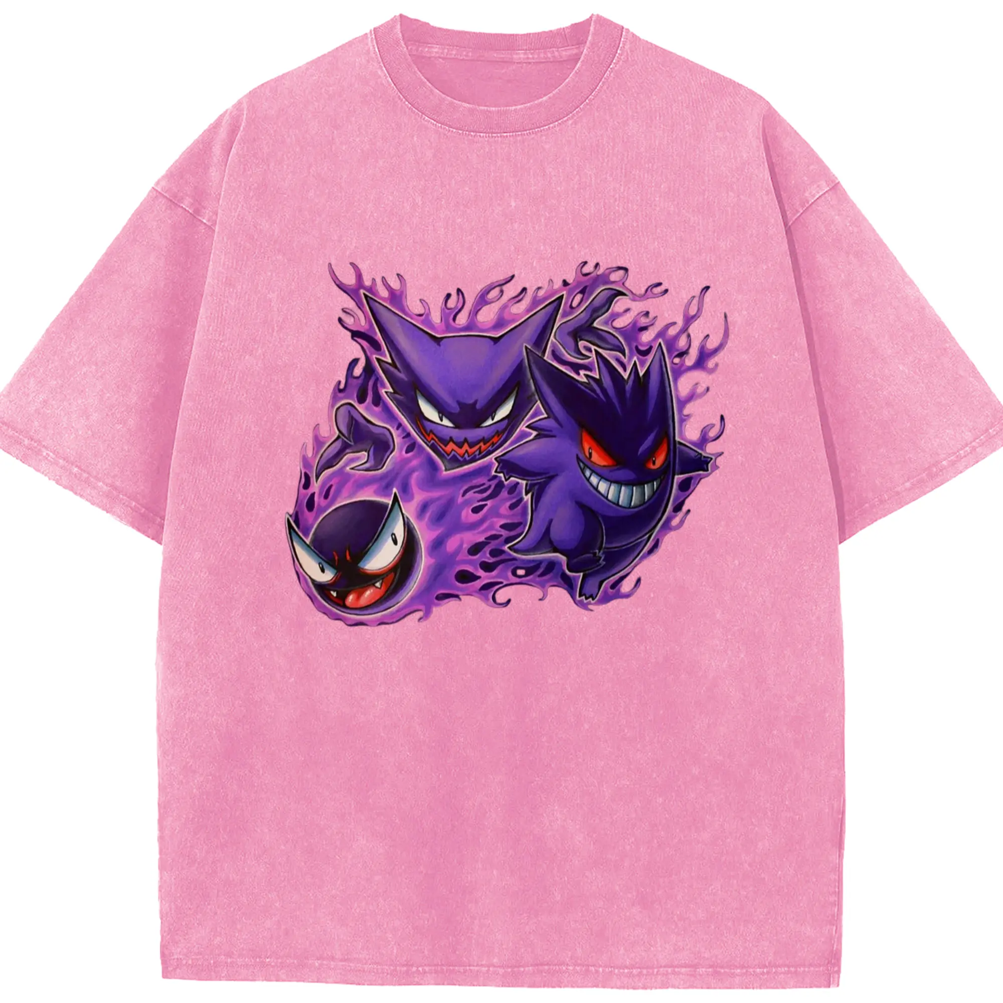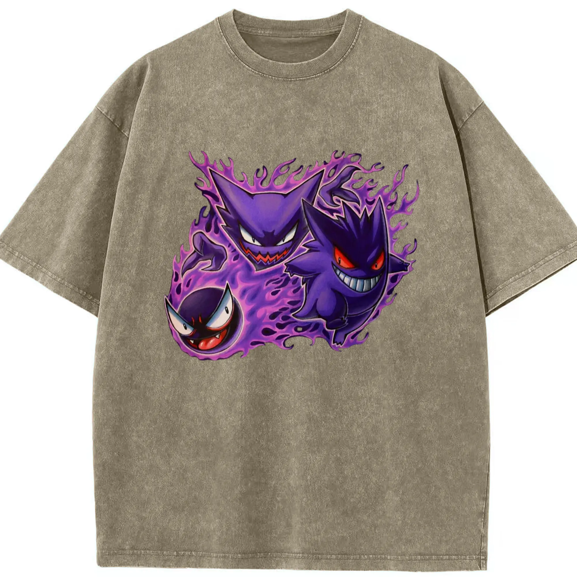 Gengar evolution t shirt​ - Washed Vintage Look 230g Cotton Oversized T-Shirt With Front Heat Transfer Print – Soft, Lightweight, Stylish Fit – Comfortable Casual Wear For Sports & Everyday Use