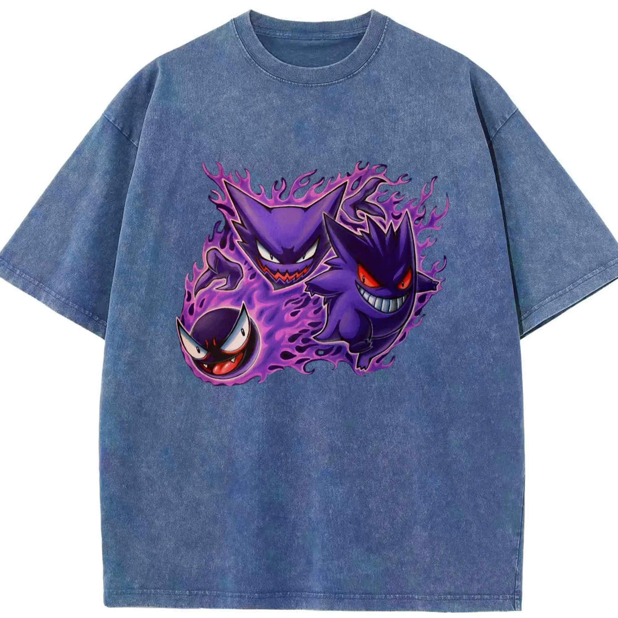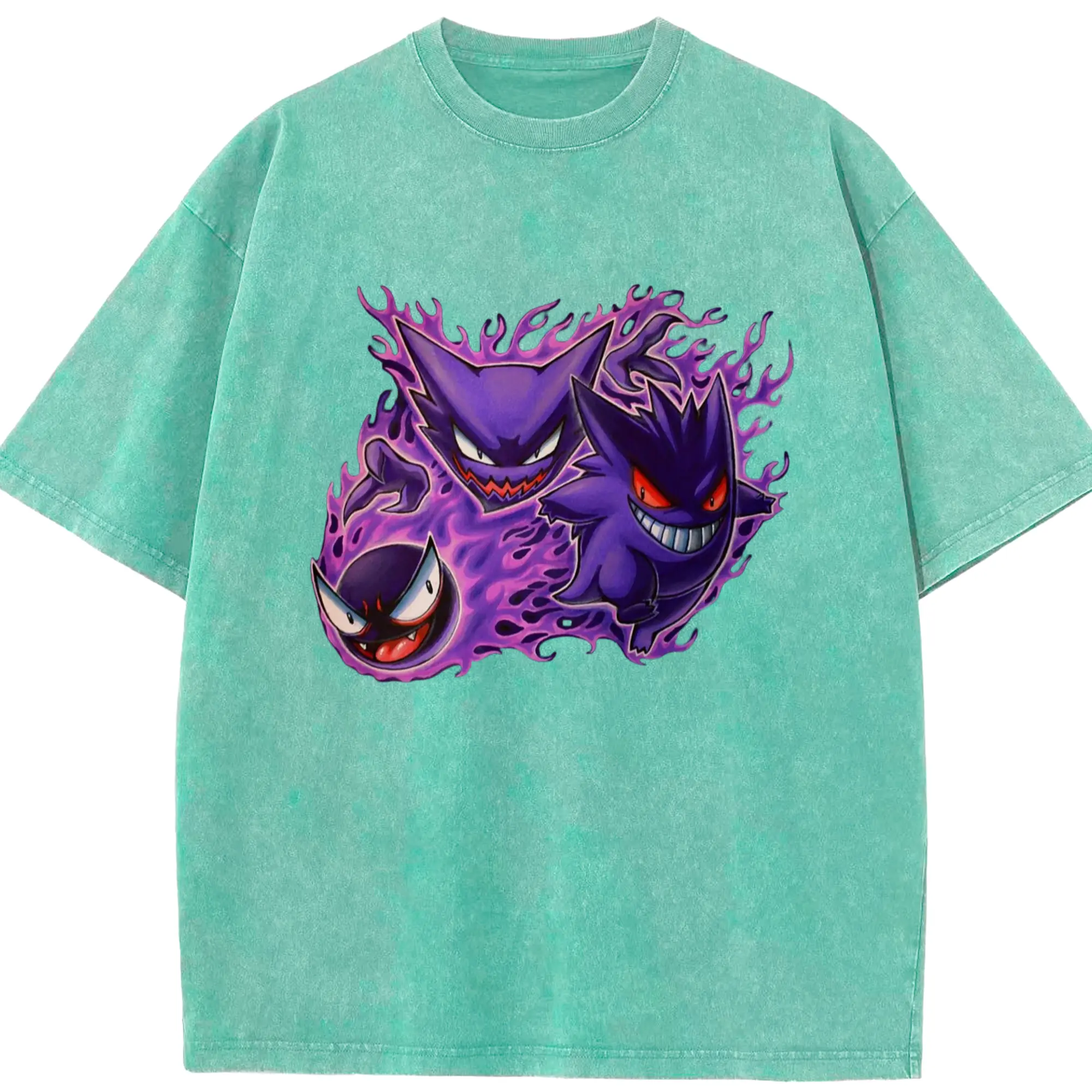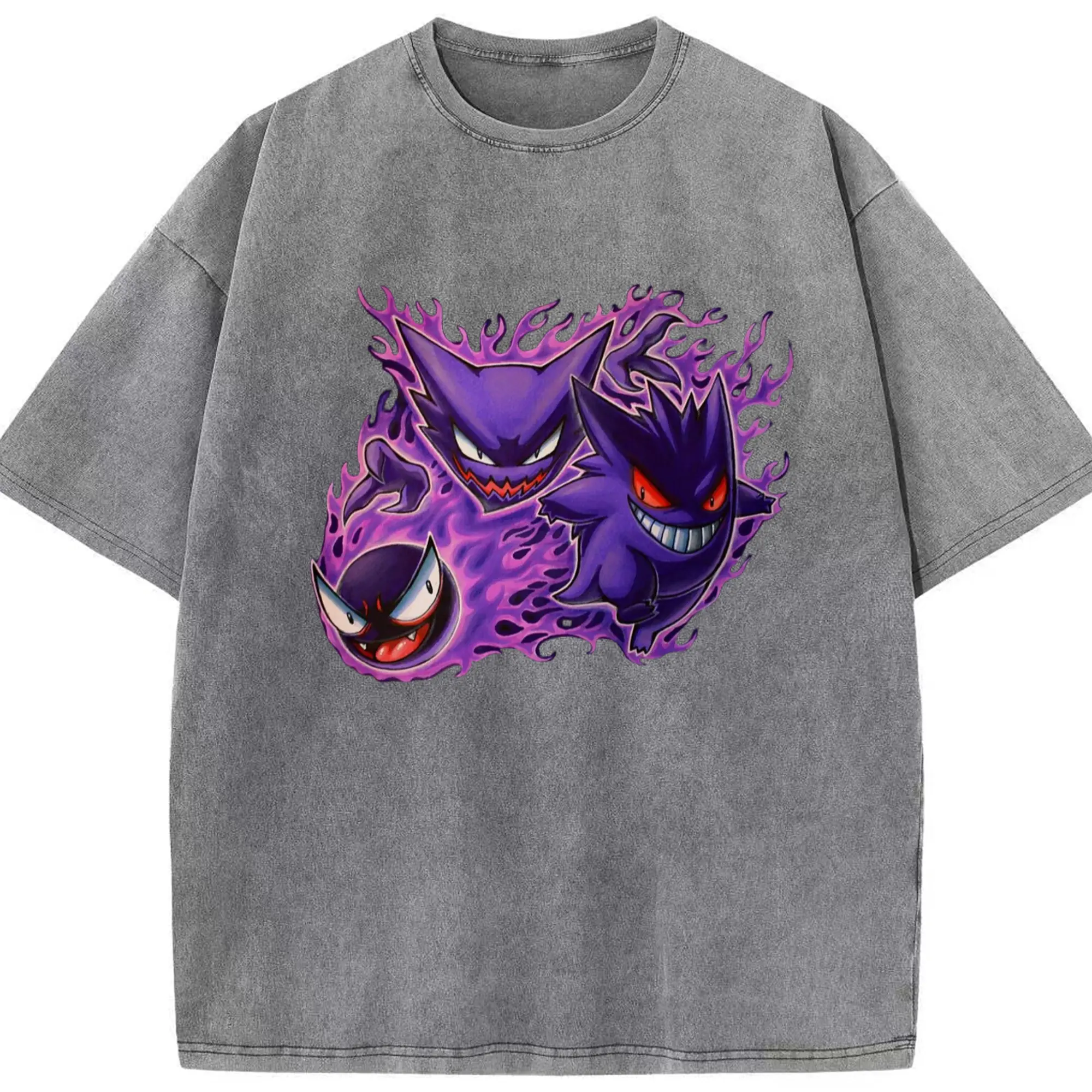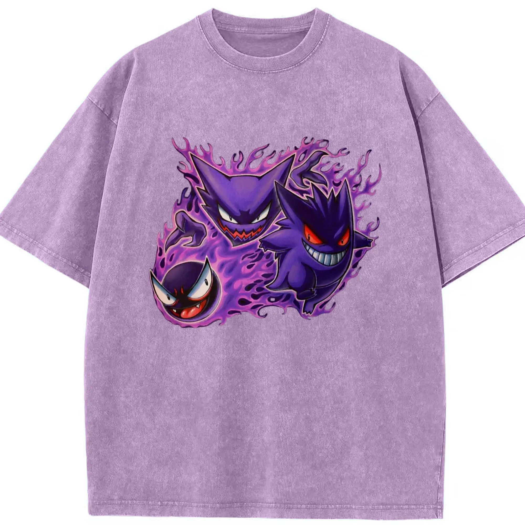 Gengar evolution t shirt​ - Washed Vintage Look 230g Cotton Oversized T-Shirt With Front Heat Transfer Print – Soft, Lightweight, Stylish Fit – Comfortable Casual Wear For Sports & Everyday Use