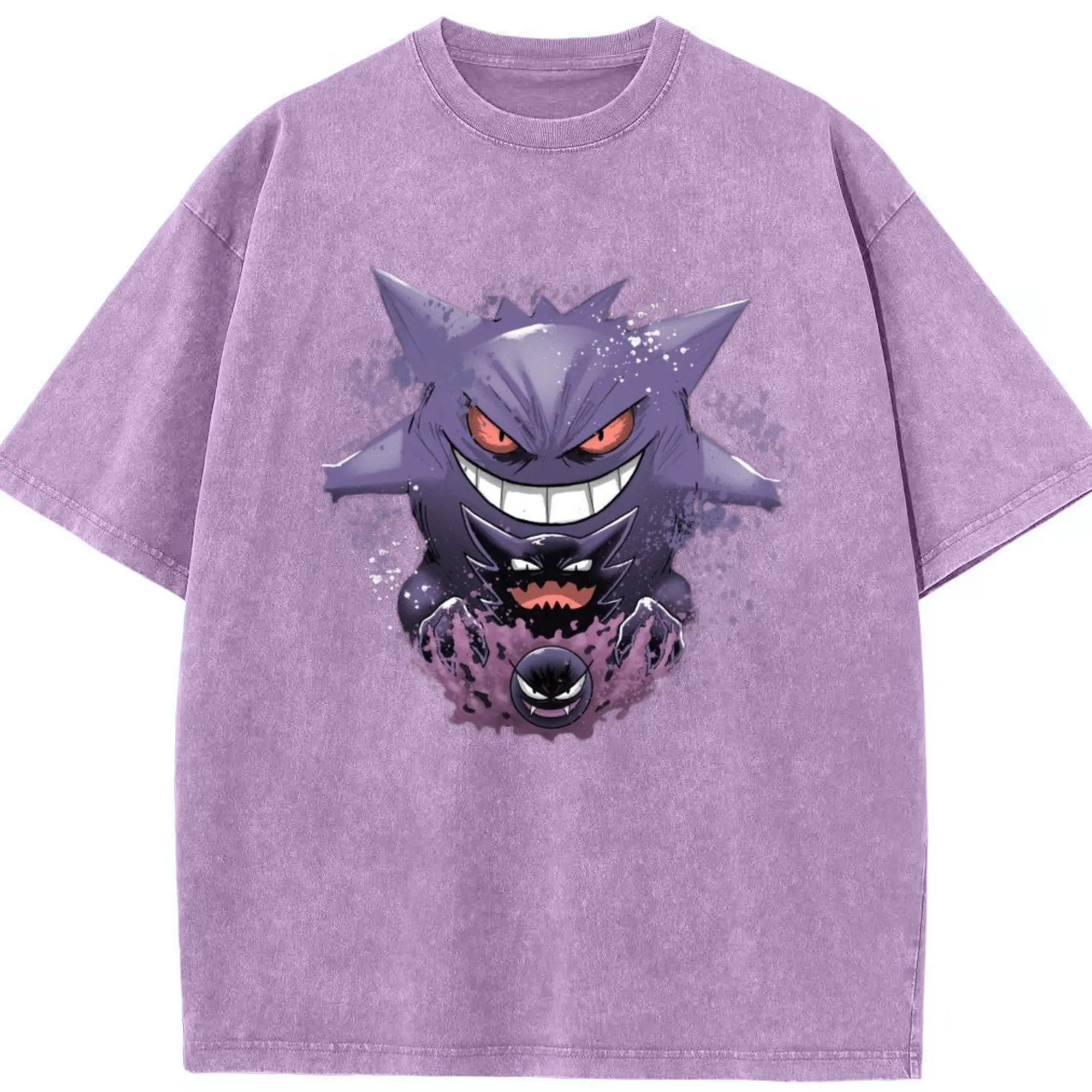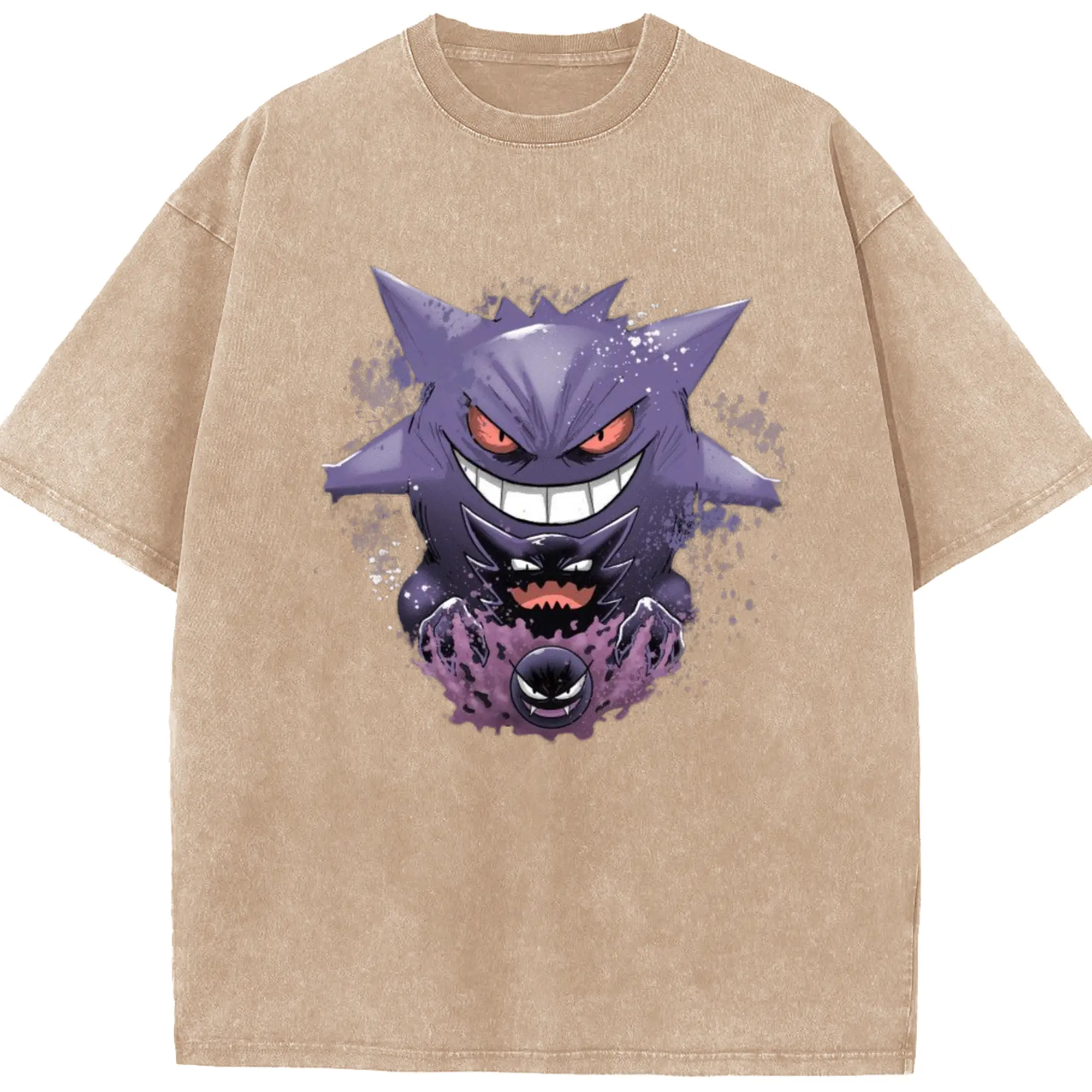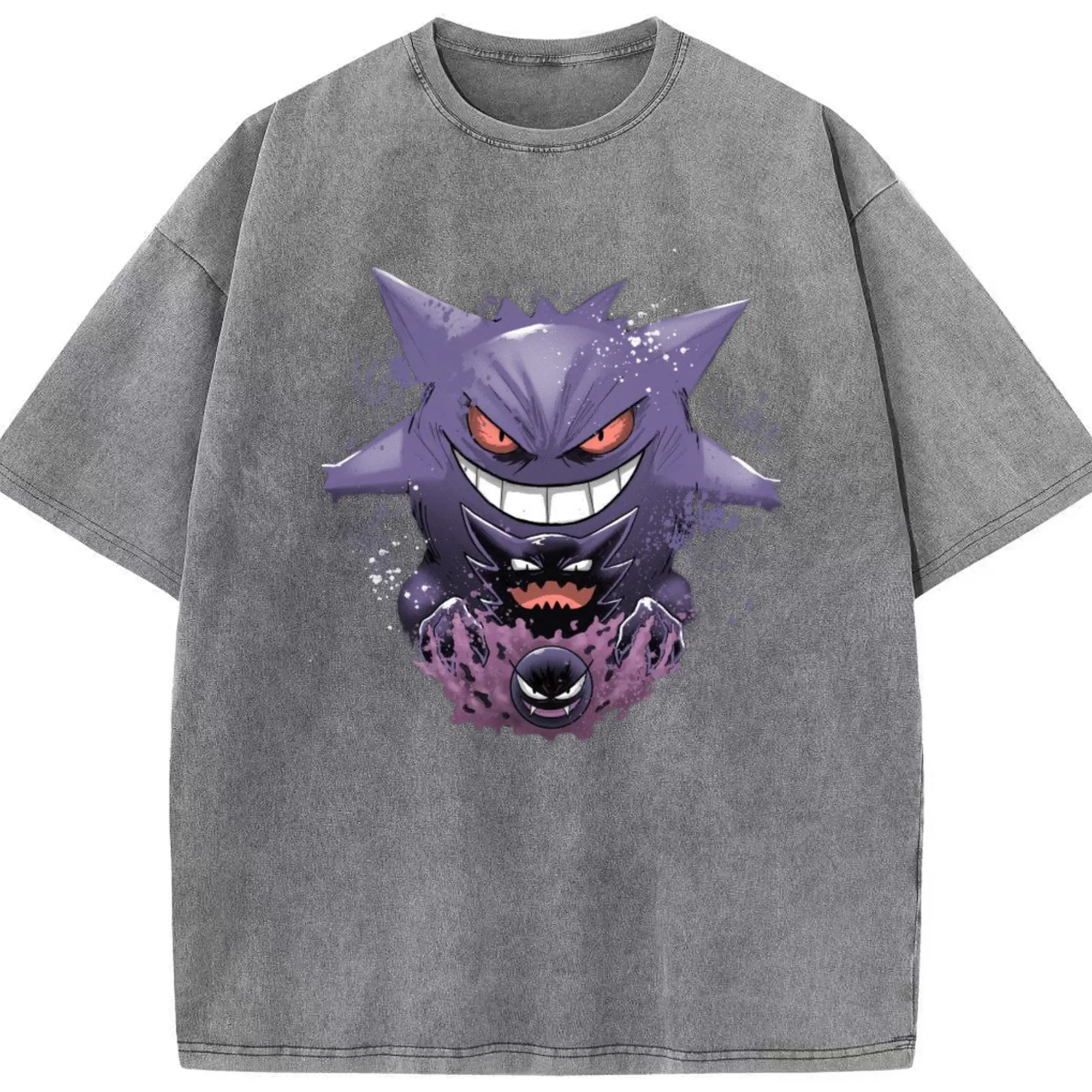 Gengar evolution t shirt - Washed Vintage Look 230g Cotton Oversized T-Shirt With Front Heat Transfer Print – Soft, Lightweight, Stylish Fit – Comfortable Casual Wear For Sports & Everyday Use