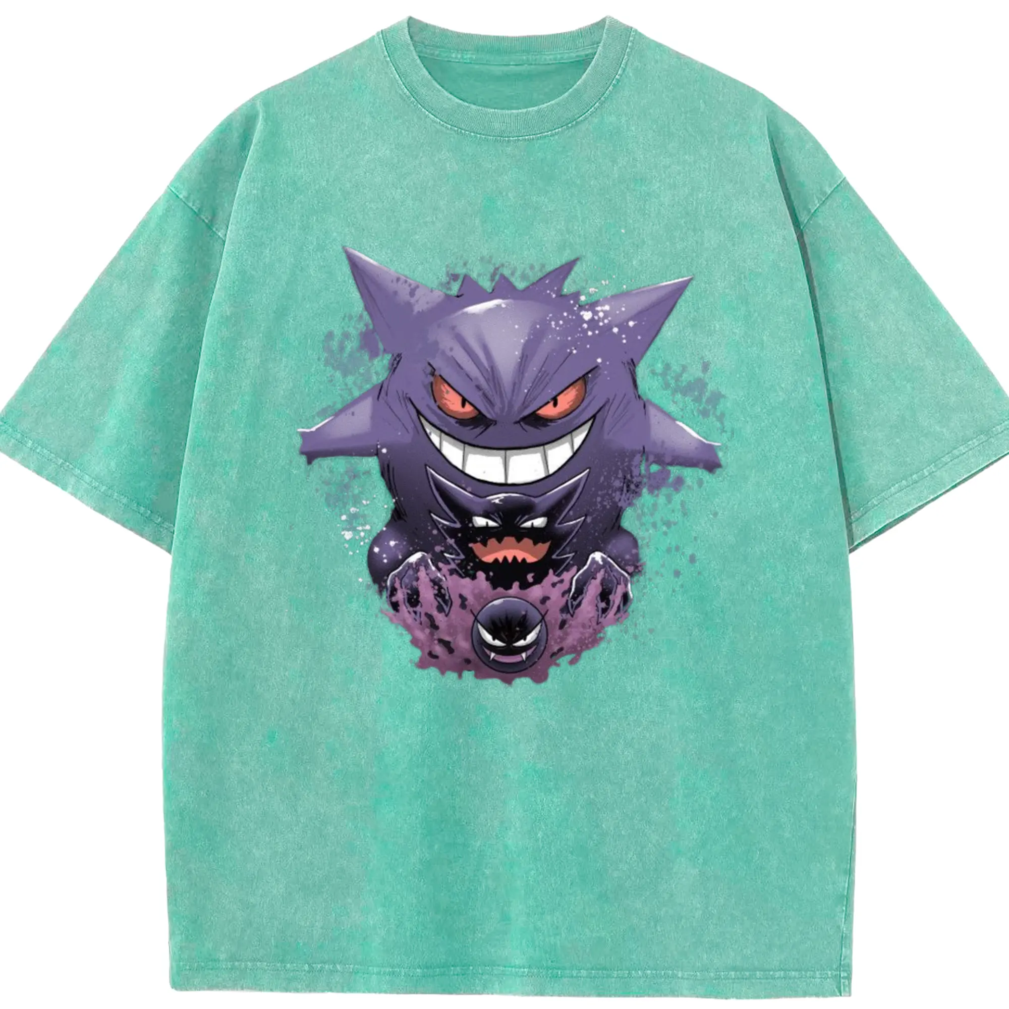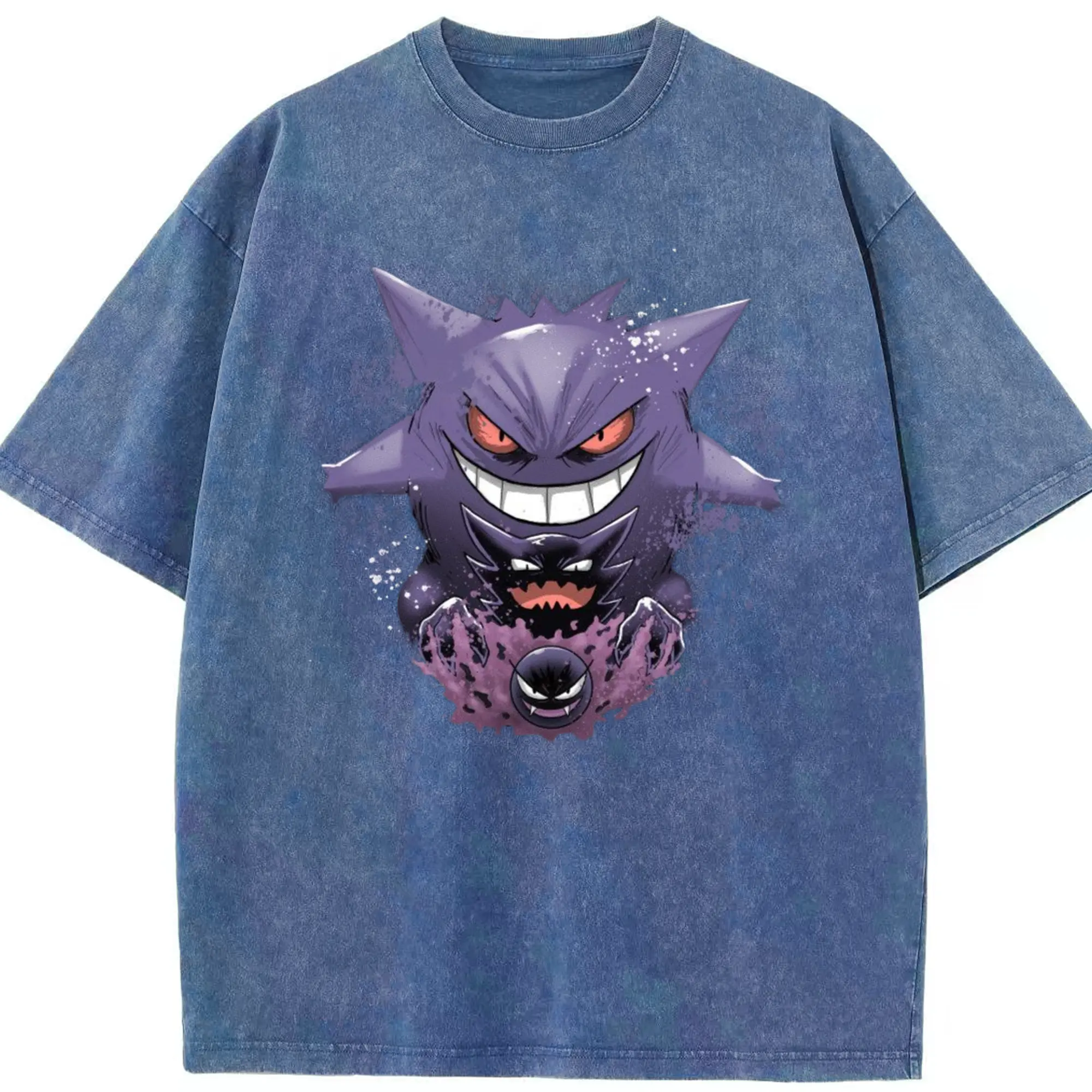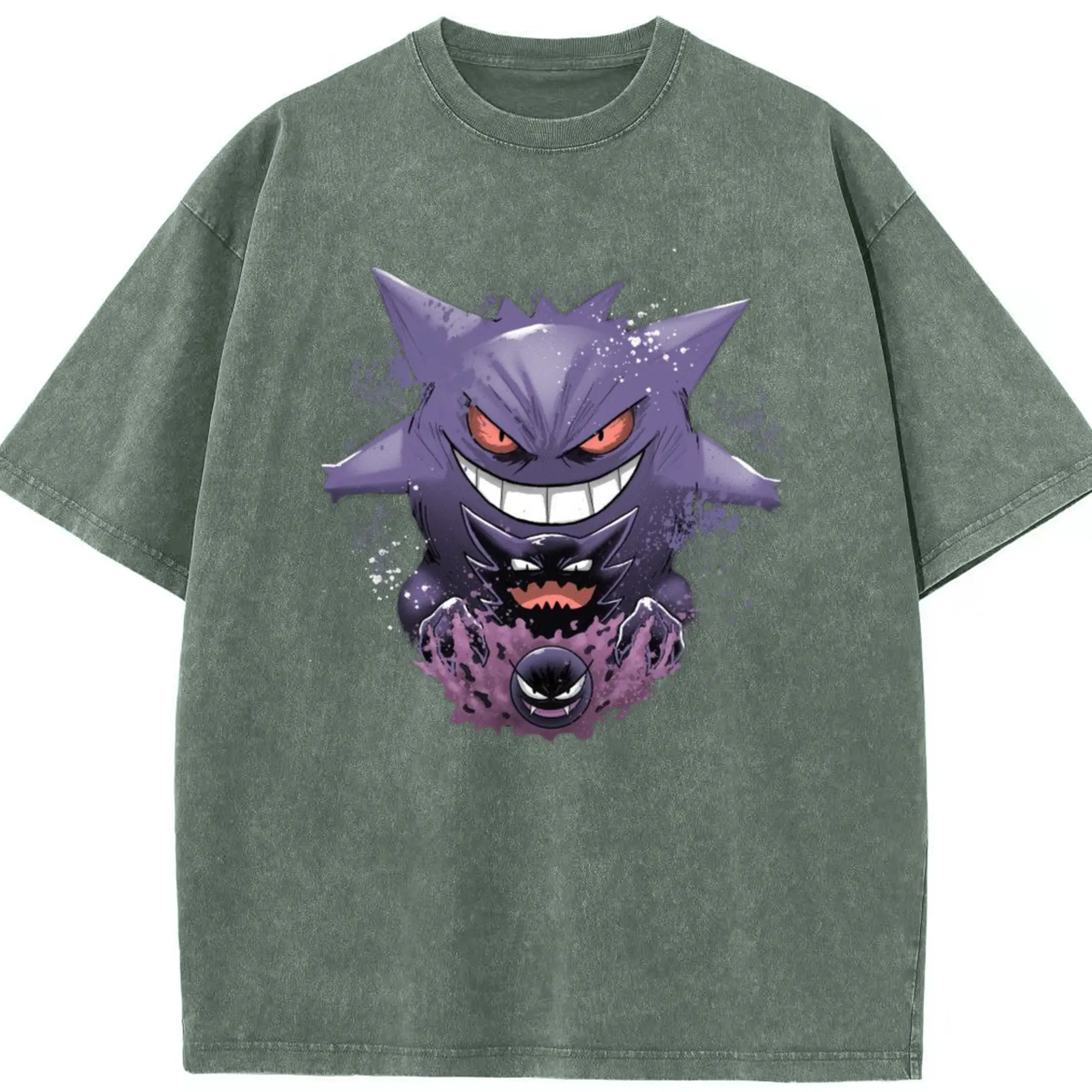 Gengar evolution t shirt - Washed Vintage Look 230g Cotton Oversized T-Shirt With Front Heat Transfer Print – Soft, Lightweight, Stylish Fit – Comfortable Casual Wear For Sports & Everyday Use
