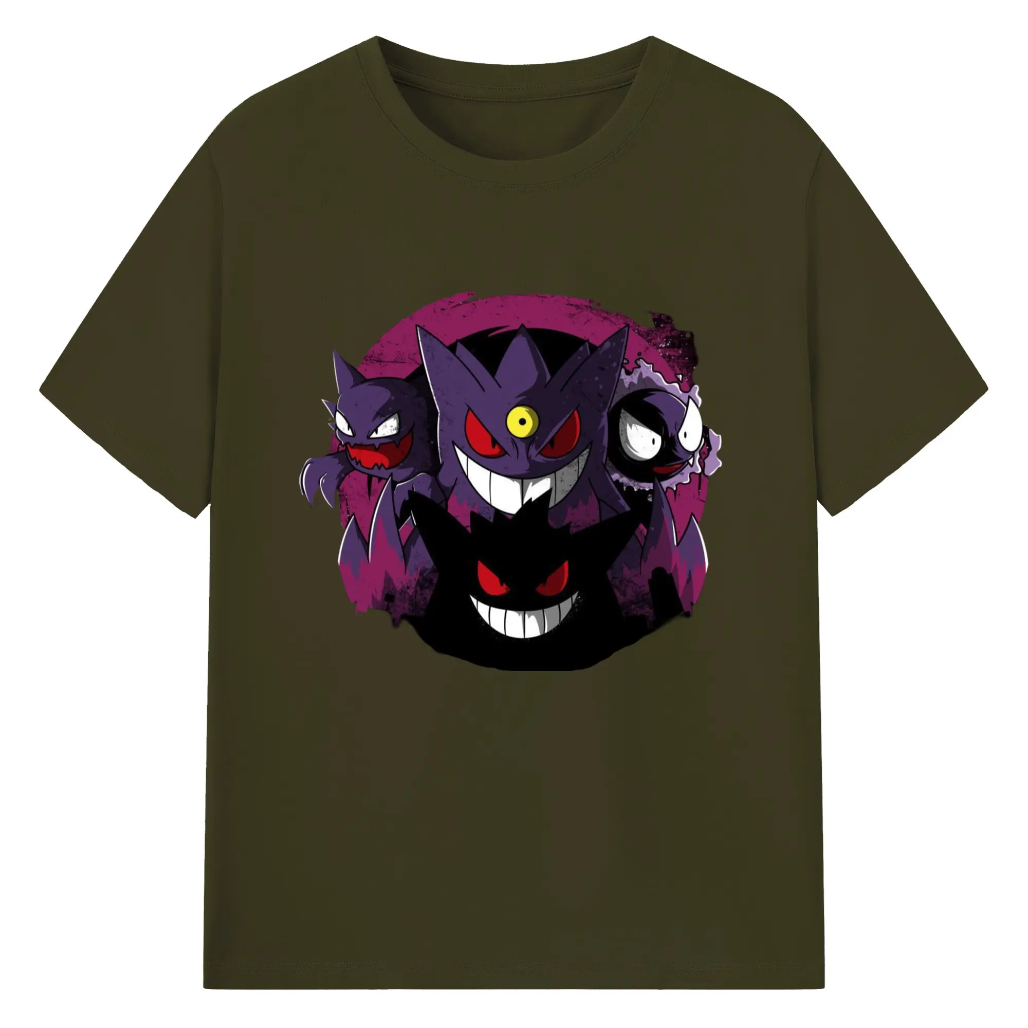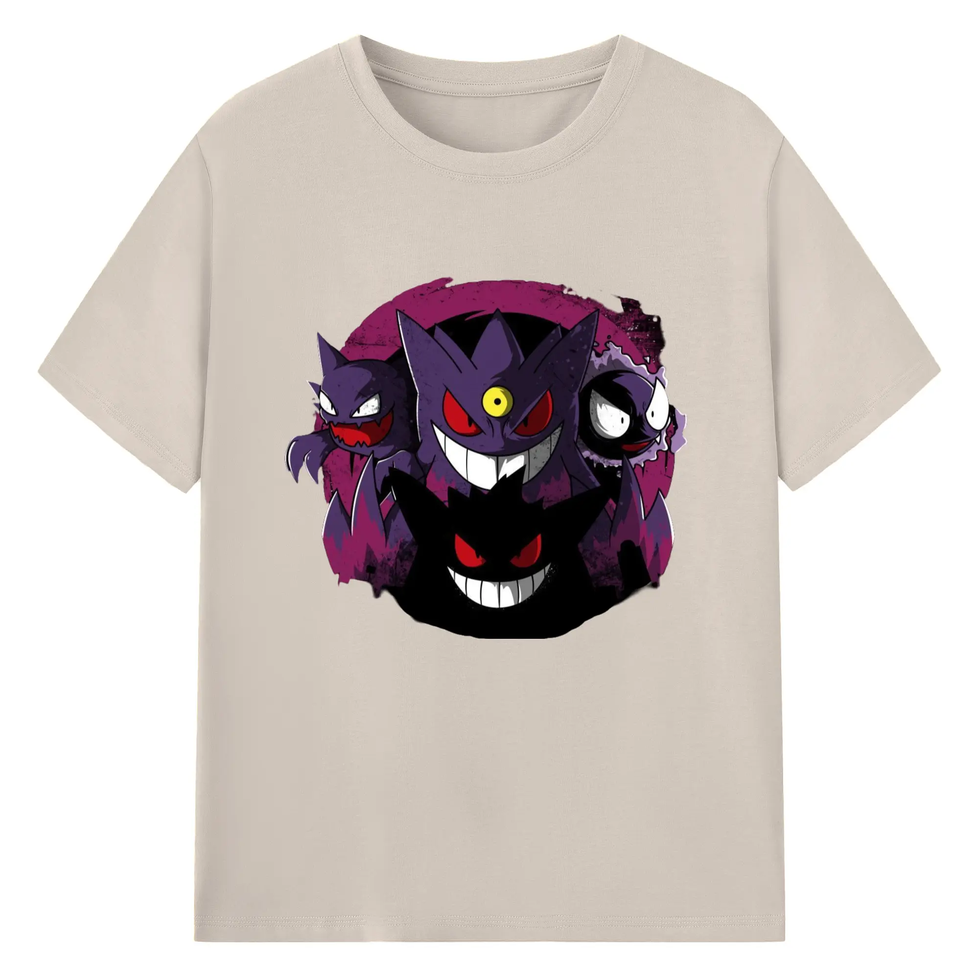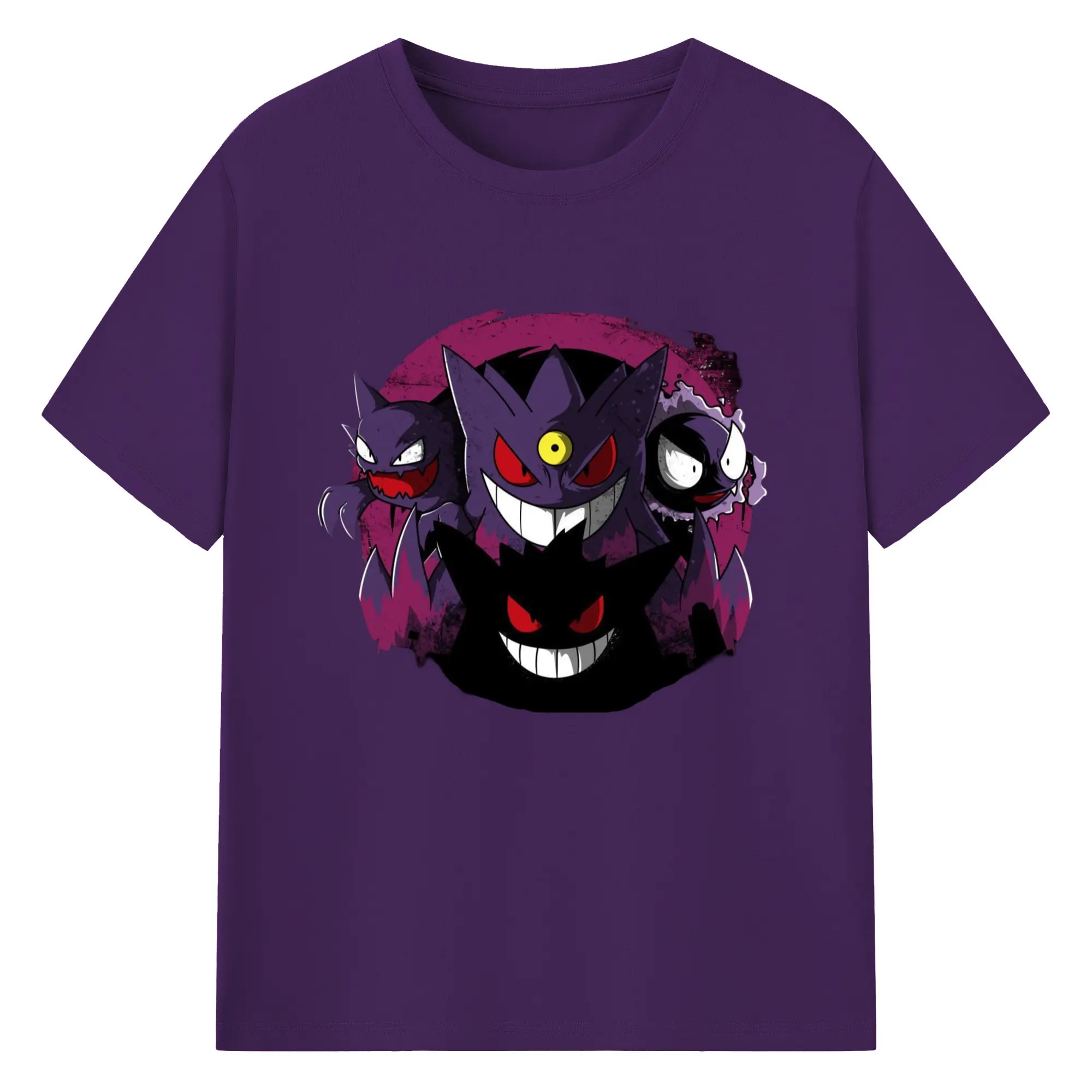 Gengar face collage t shirt​ - 180g Cotton T-Shirt With Front Heat Transfer Print – Soft, Lightweight, Fitted Design – Comfortable Casual Wear For Sports & Everyday Use