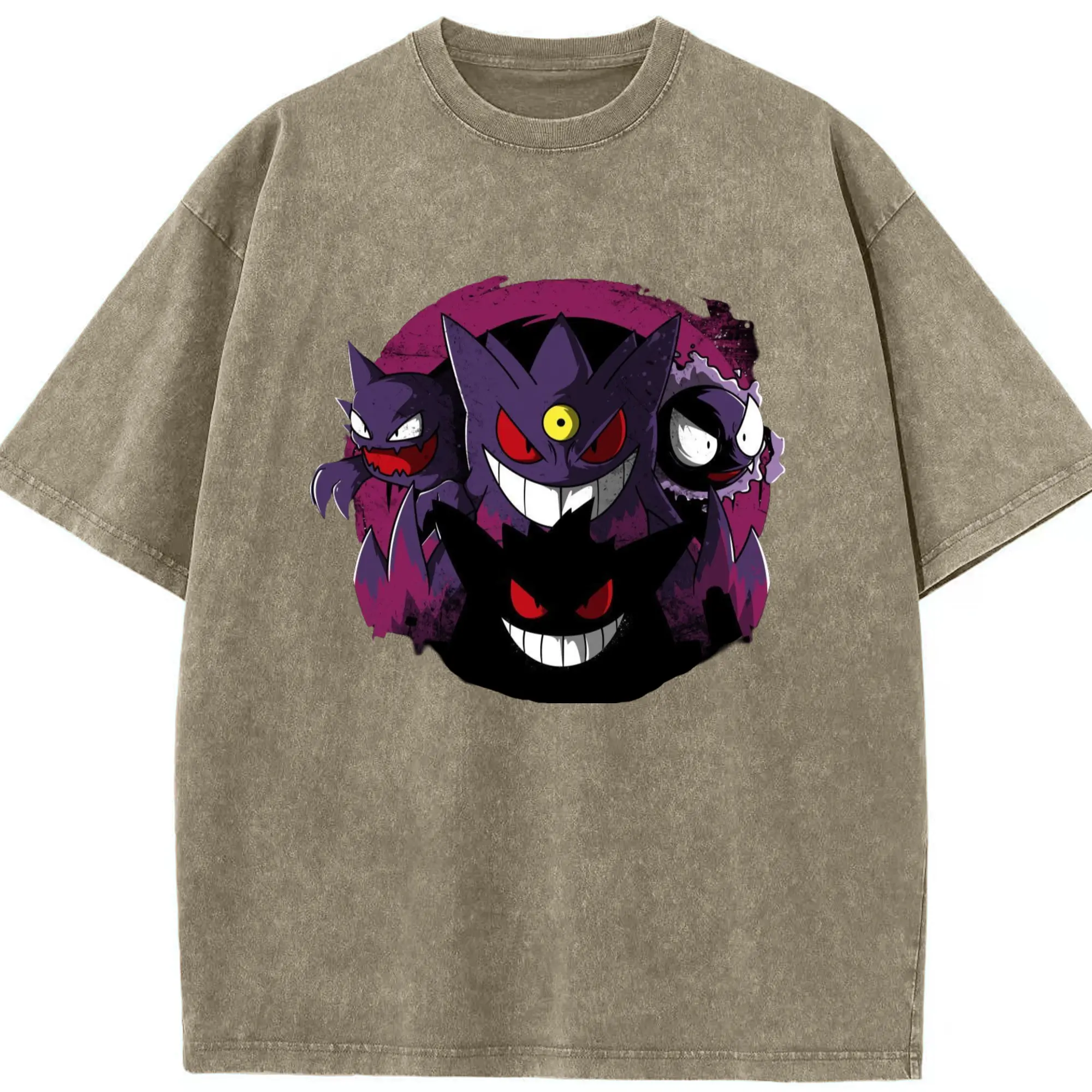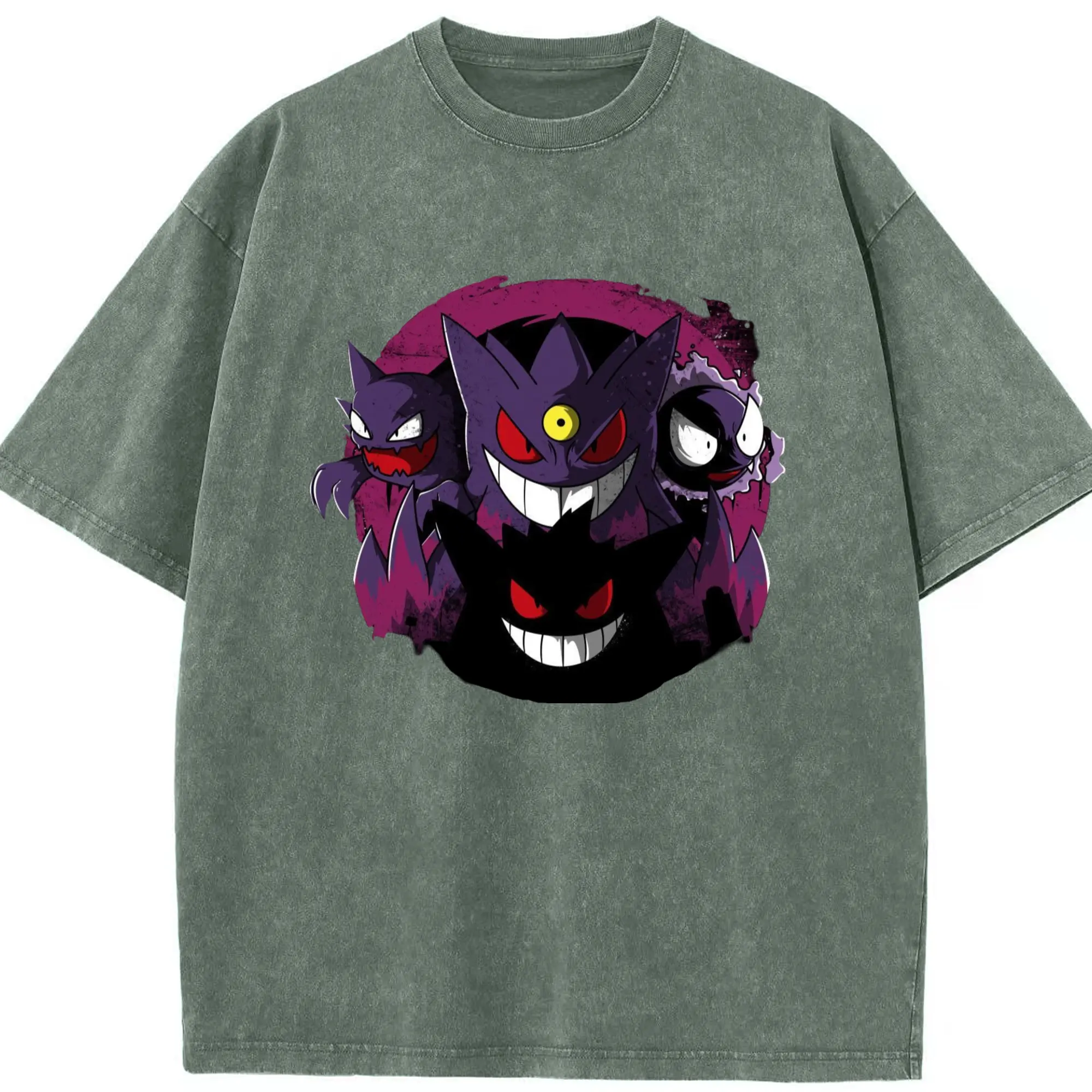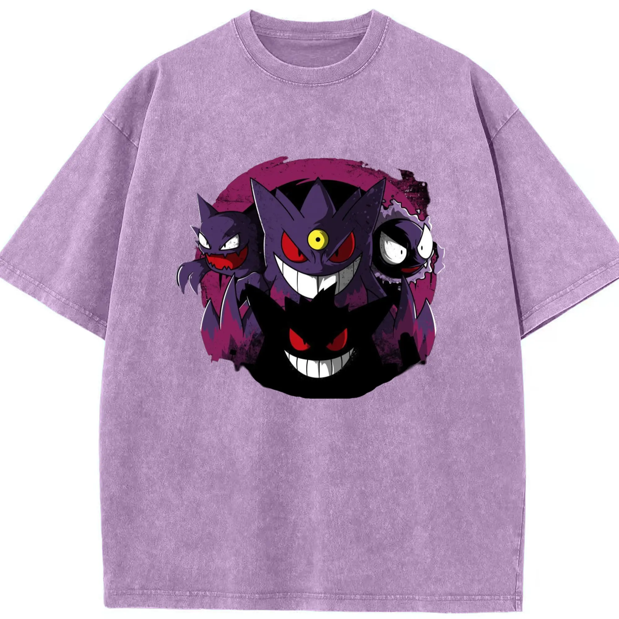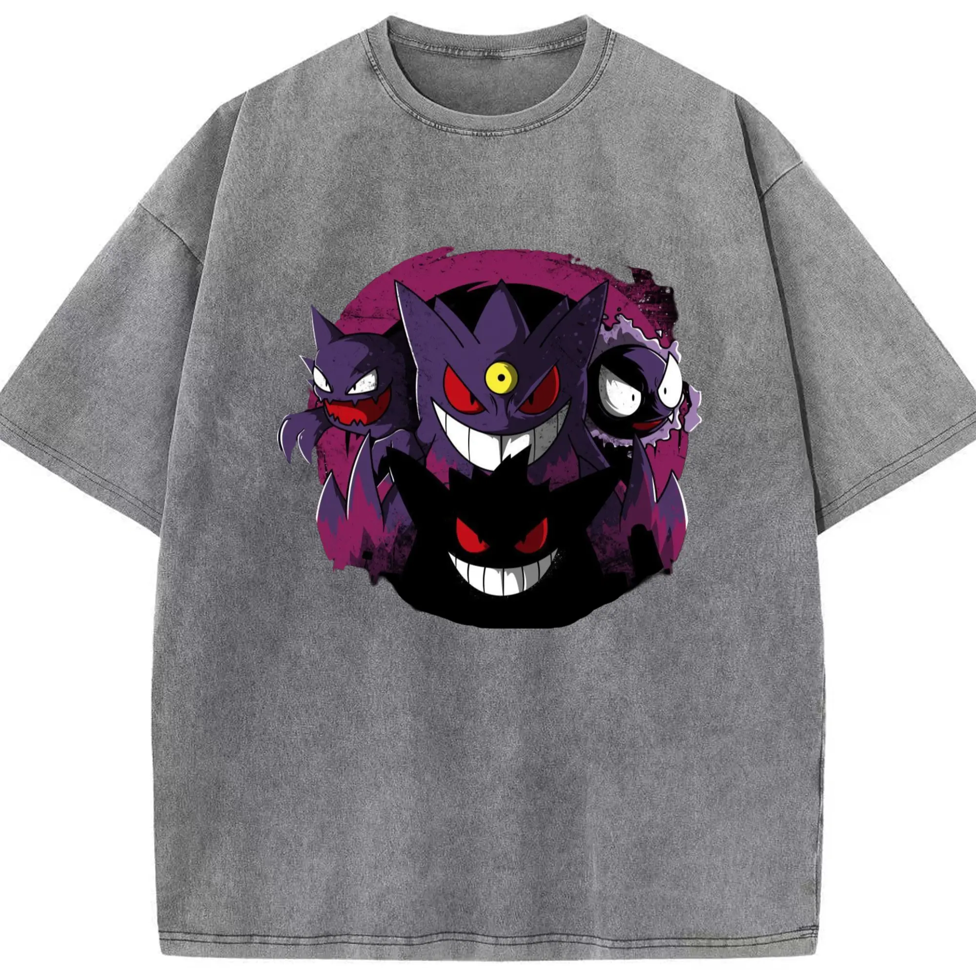 Gengar face collage t shirt​ - Washed Vintage Look 230g Cotton Oversized T-Shirt With Front Heat Transfer Print – Soft, Lightweight, Stylish Fit – Comfortable Casual Wear For Sports & Everyday Use