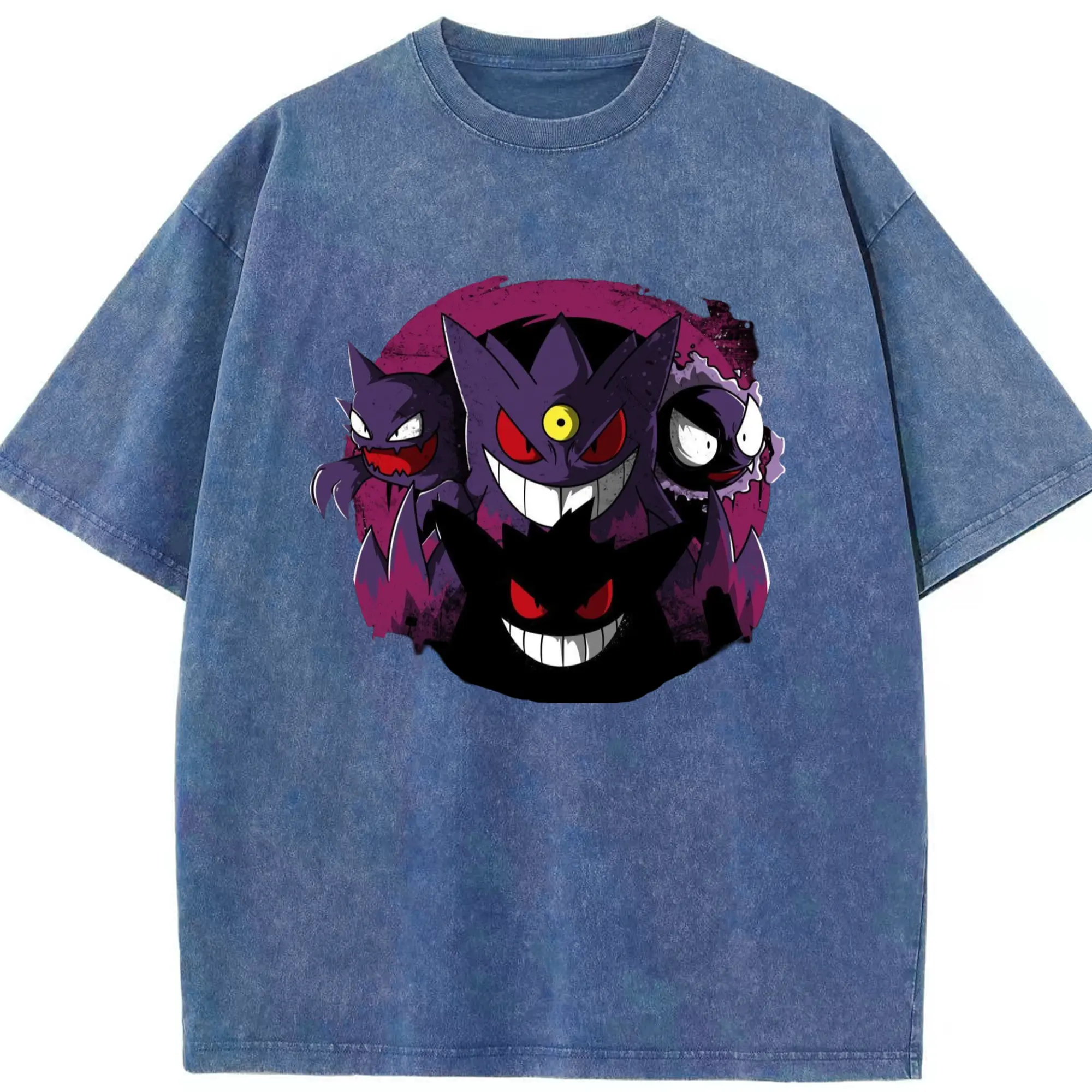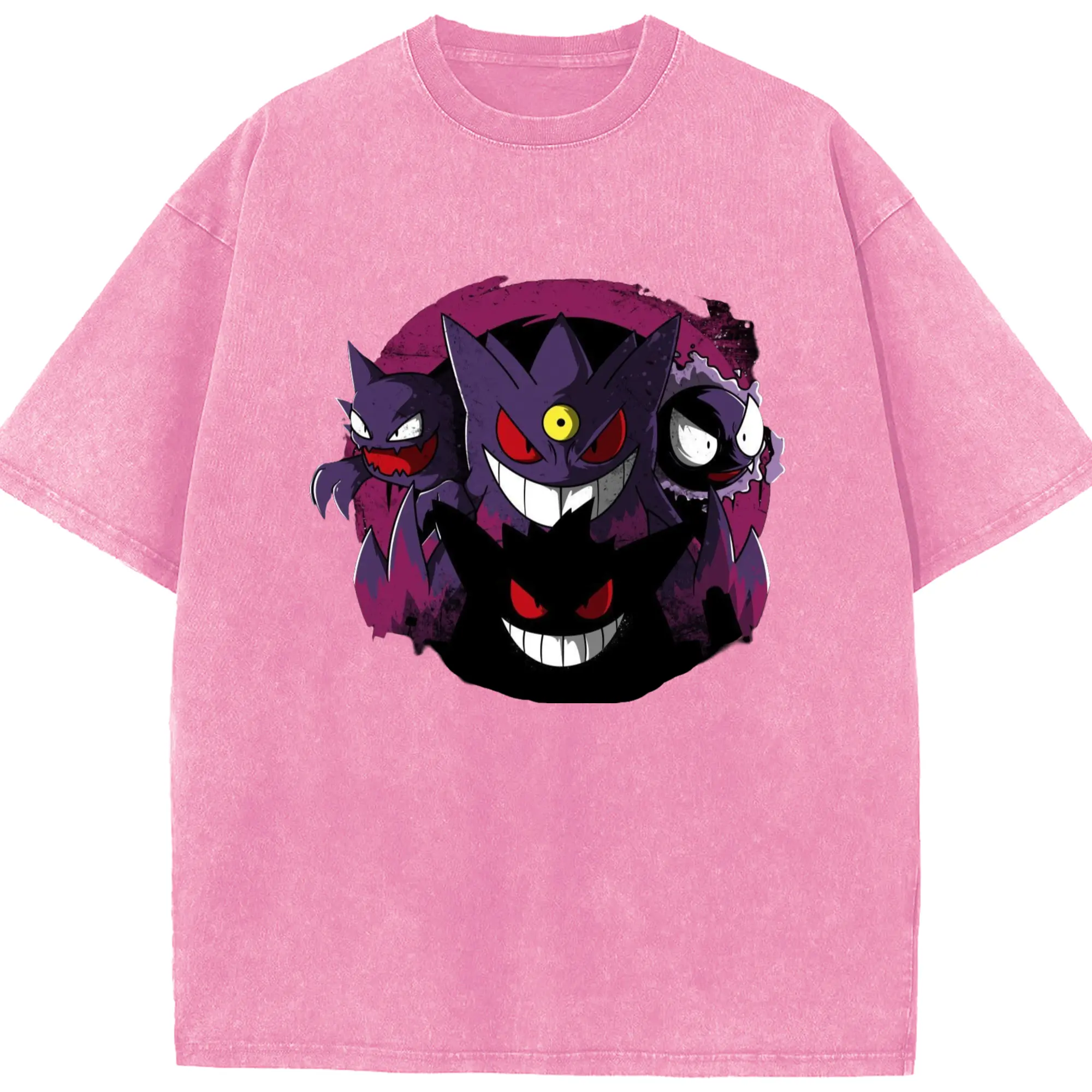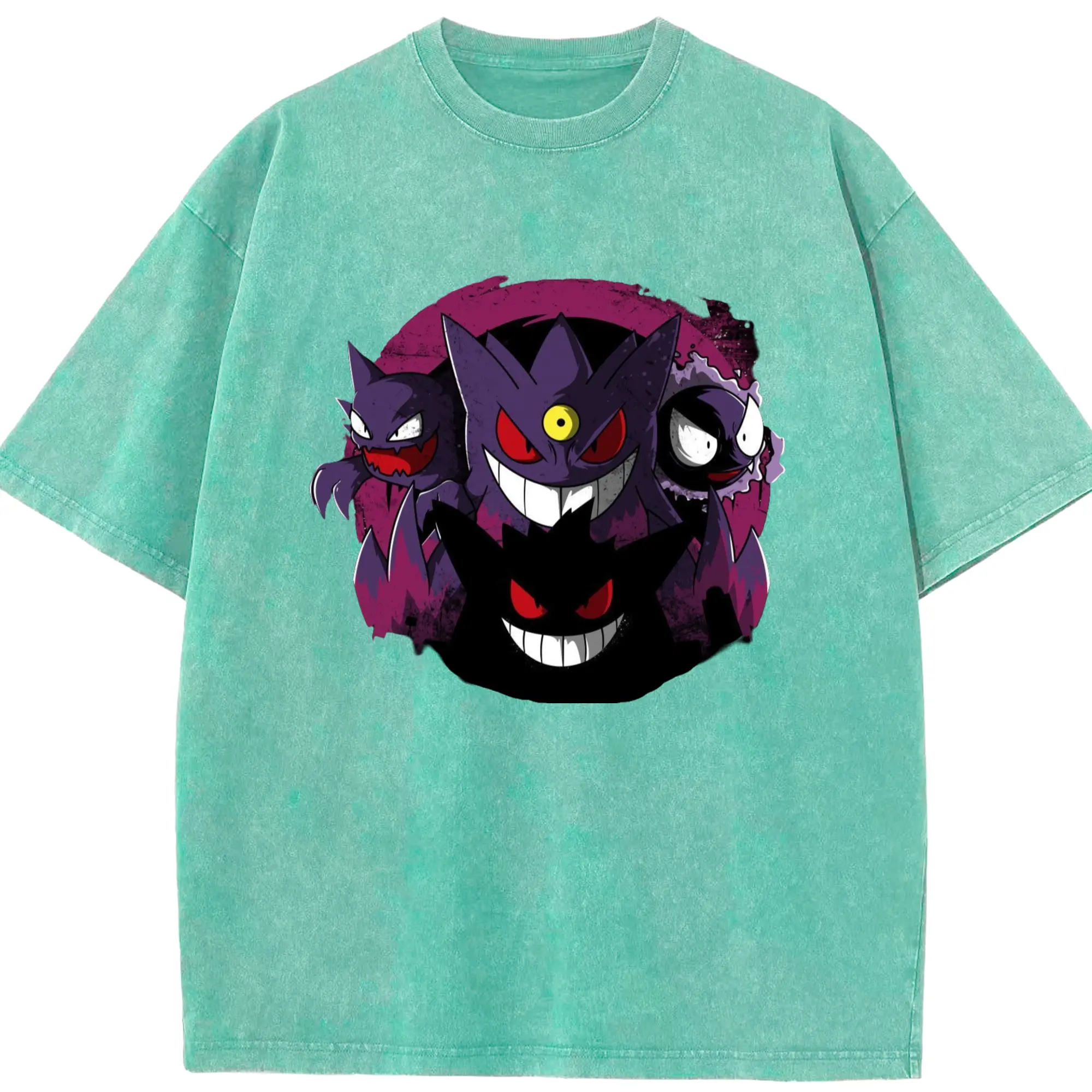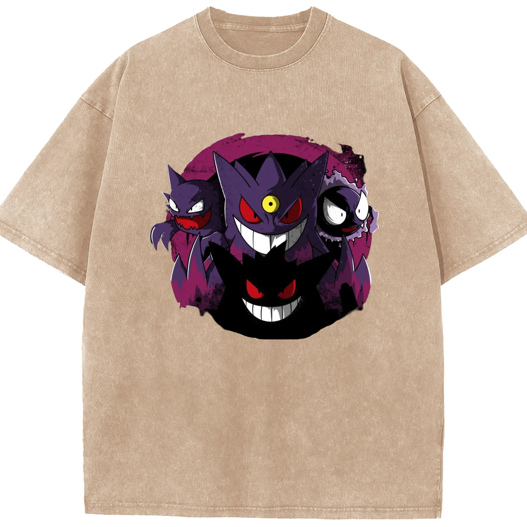 Gengar face collage t shirt​ - Washed Vintage Look 230g Cotton Oversized T-Shirt With Front Heat Transfer Print – Soft, Lightweight, Stylish Fit – Comfortable Casual Wear For Sports & Everyday Use