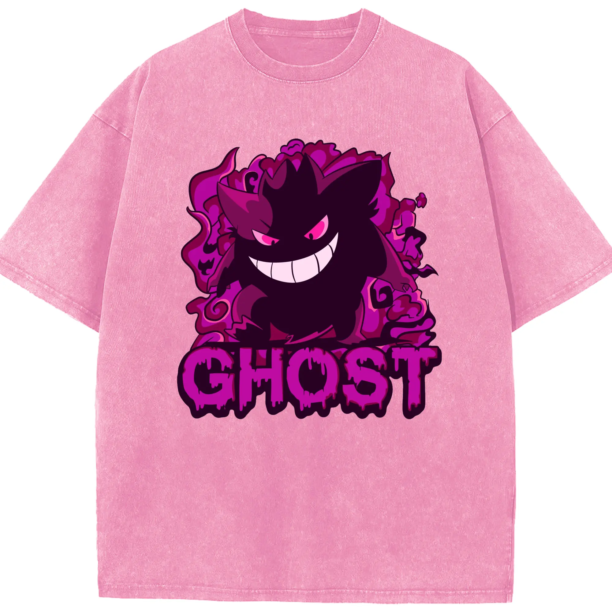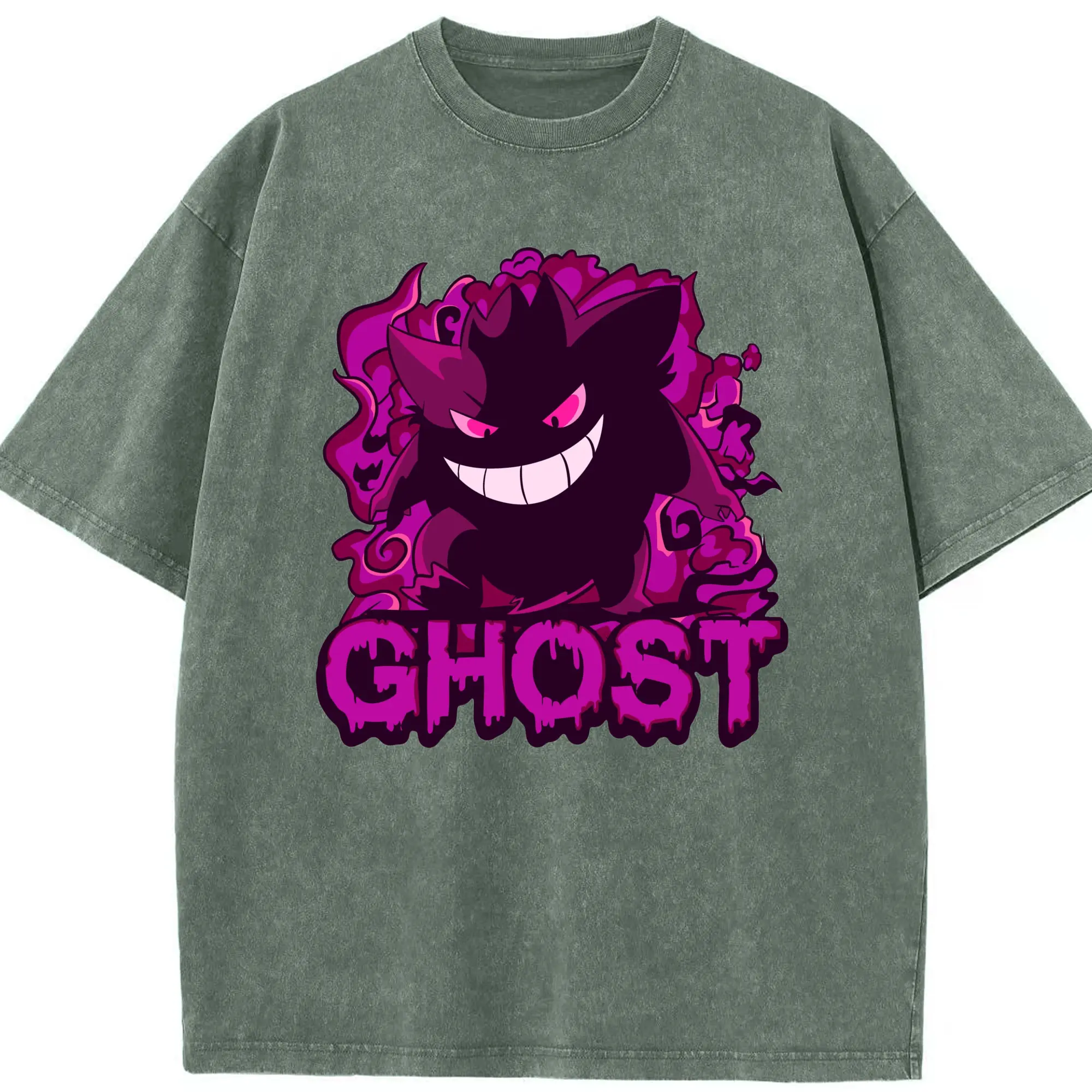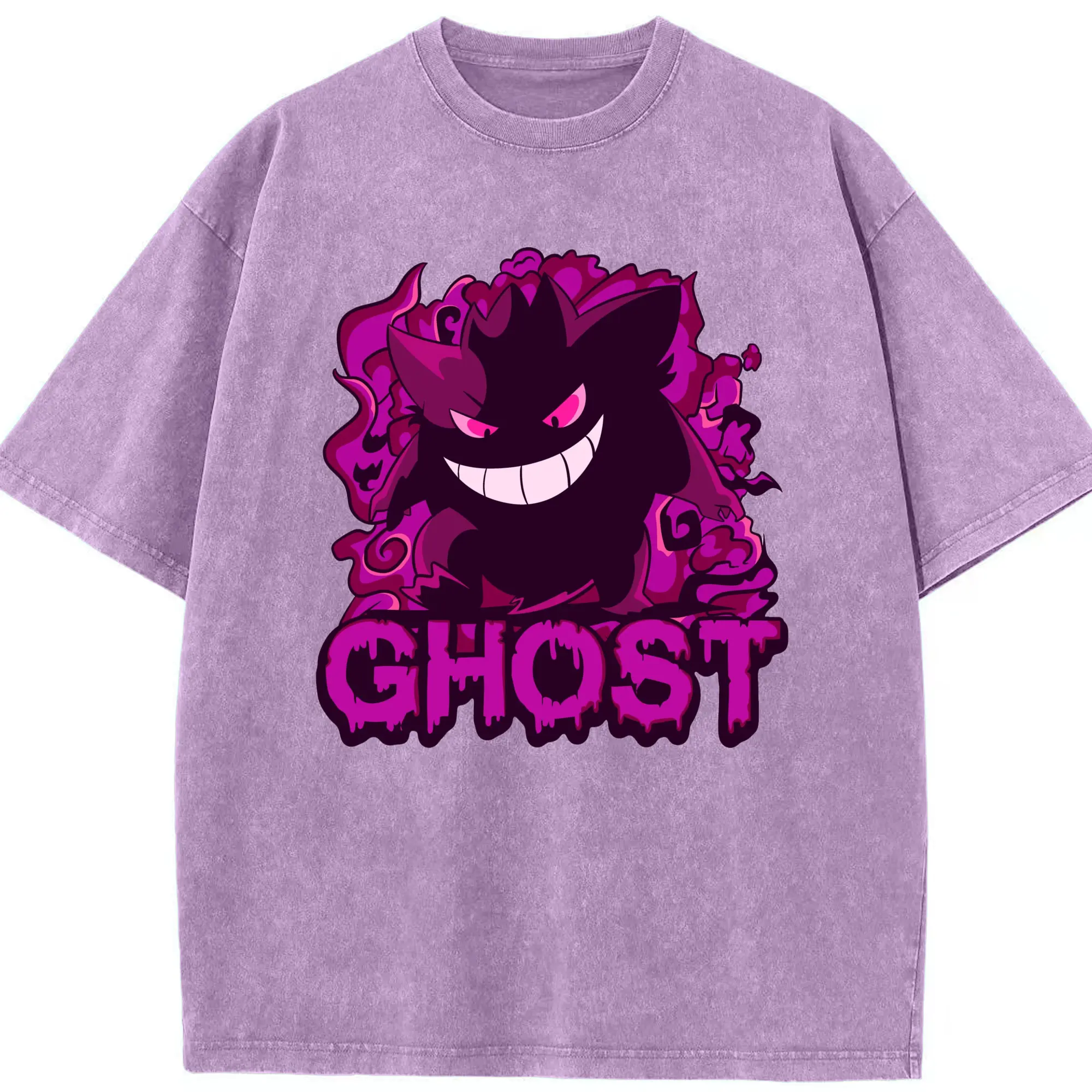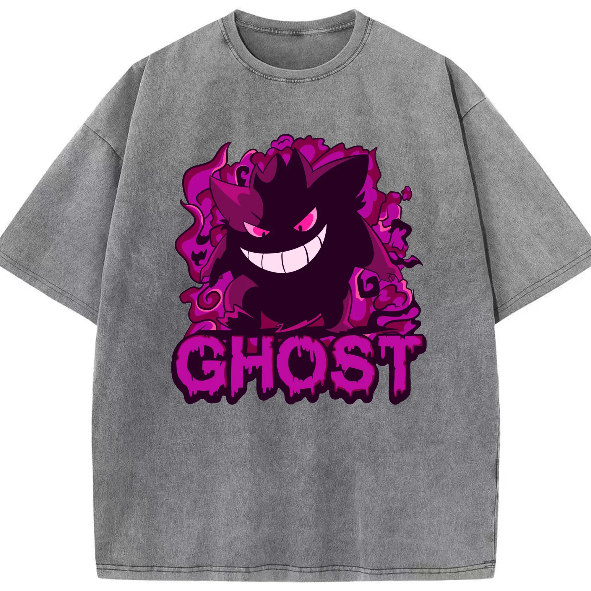 Gengar ghost t shirt - Washed Vintage Look 230g Cotton Oversized T-Shirt With Front Heat Transfer Print – Soft, Lightweight, Stylish Fit – Comfortable Casual Wear For Sports & Everyday Use