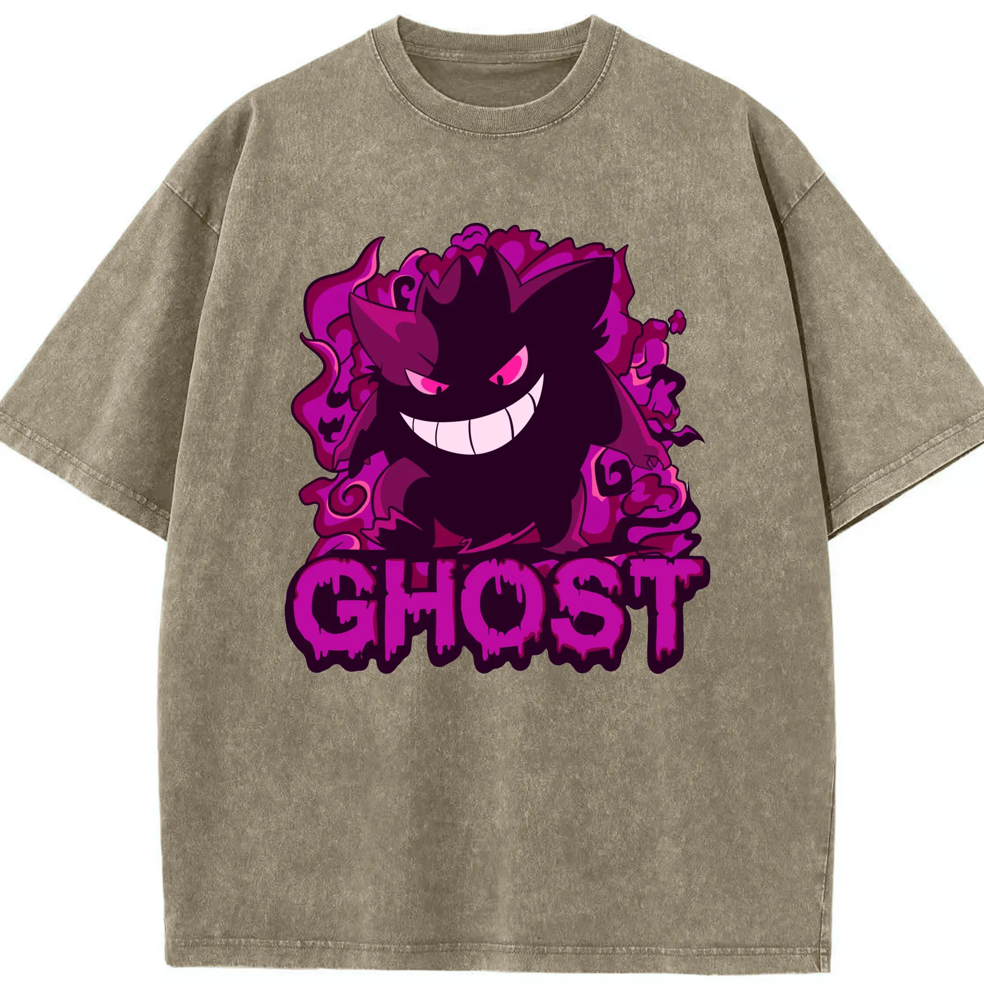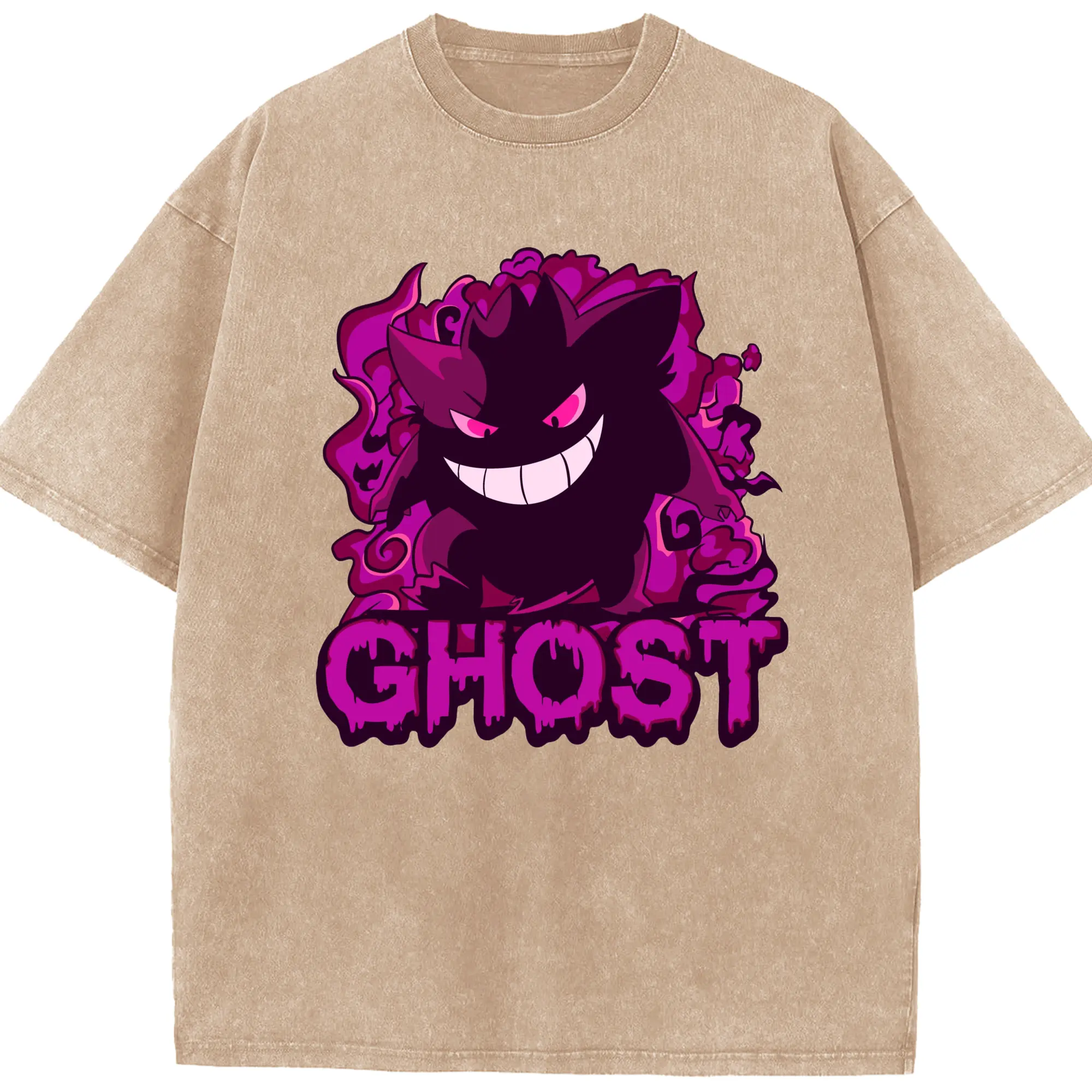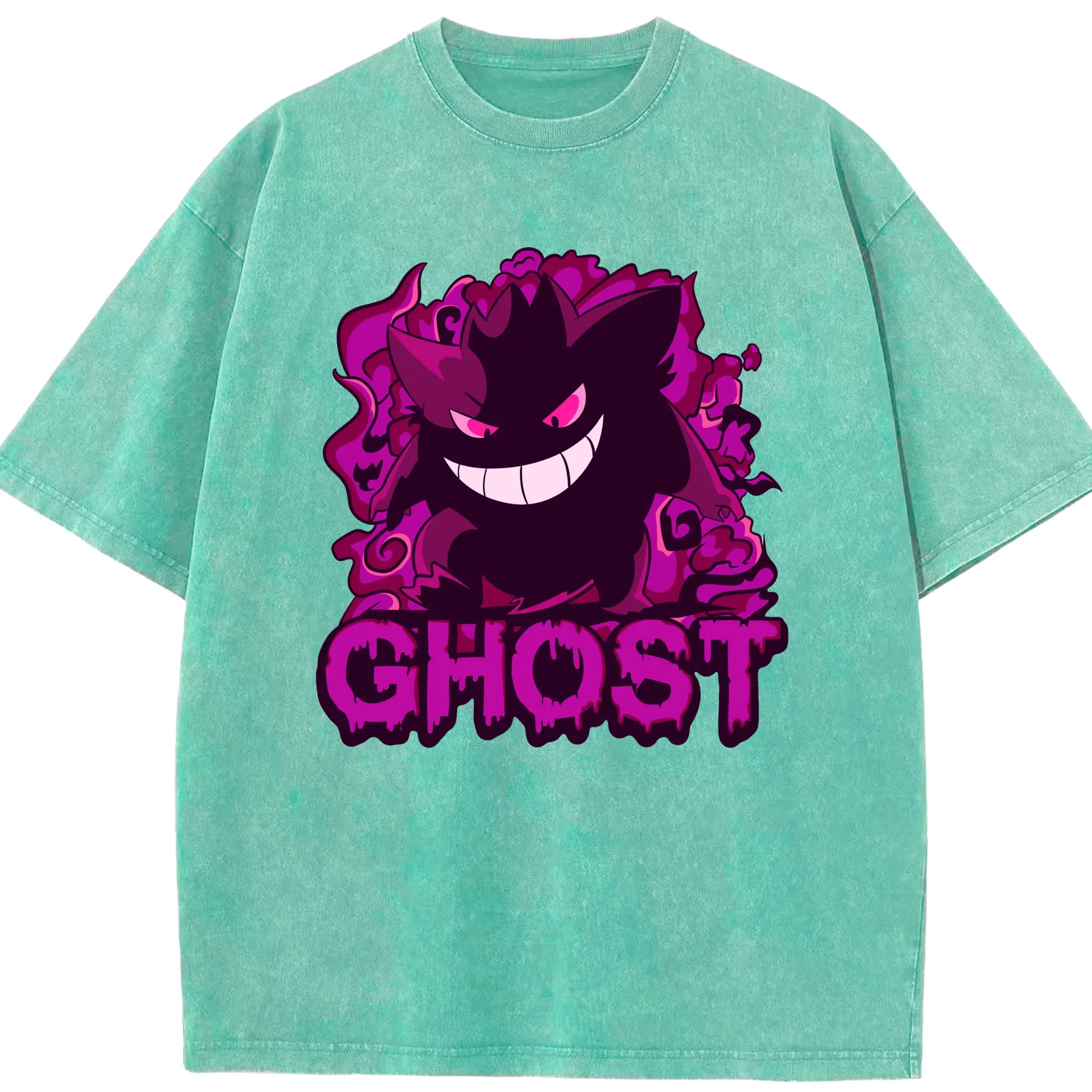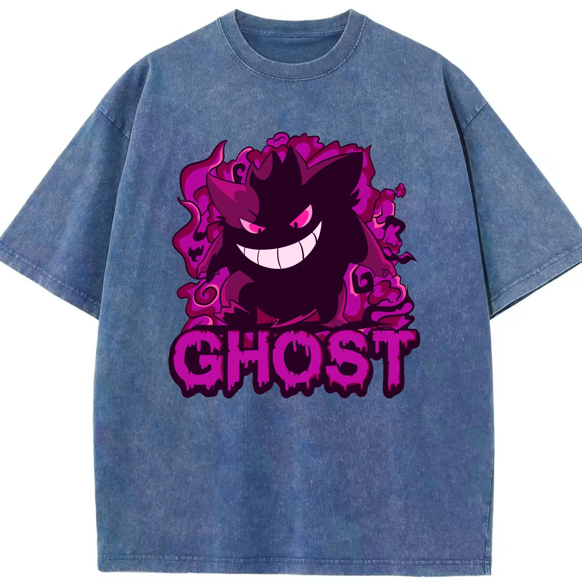 Gengar ghost t shirt - Washed Vintage Look 230g Cotton Oversized T-Shirt With Front Heat Transfer Print – Soft, Lightweight, Stylish Fit – Comfortable Casual Wear For Sports & Everyday Use
