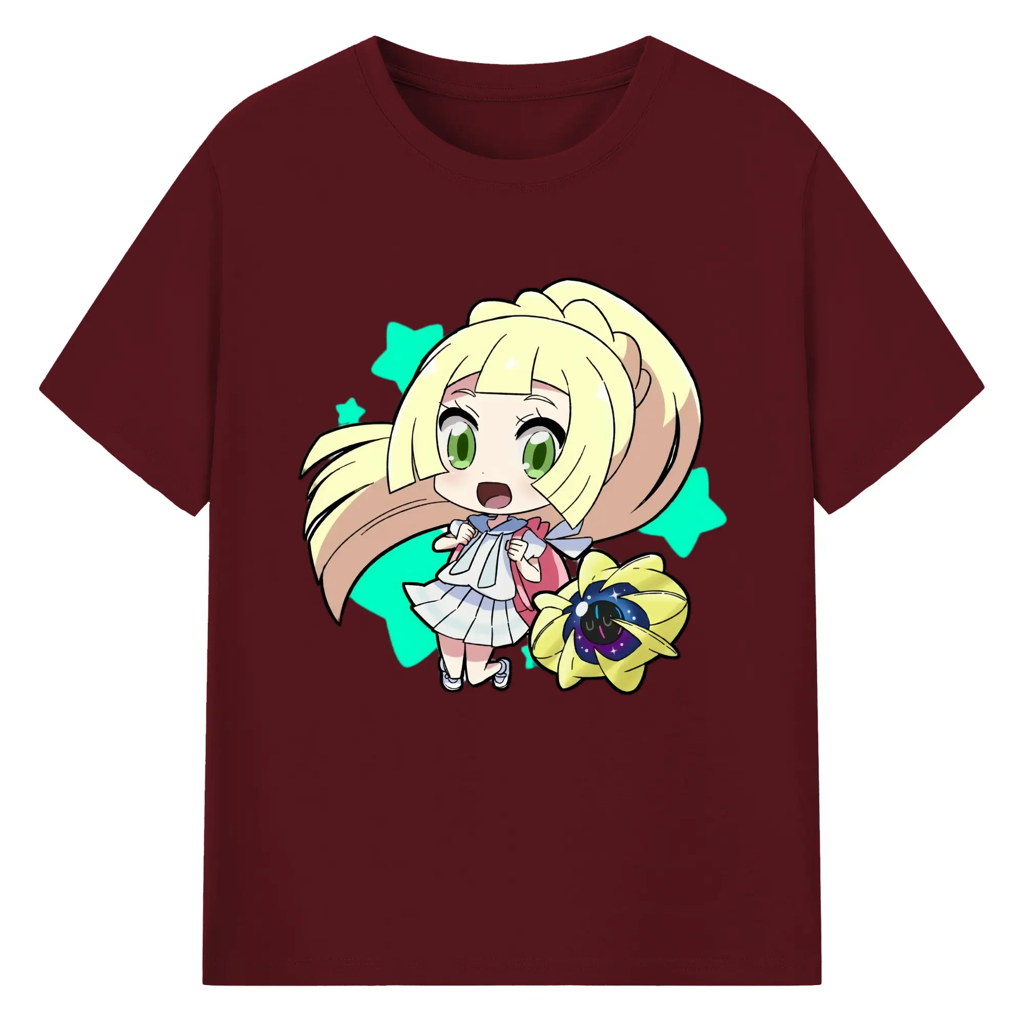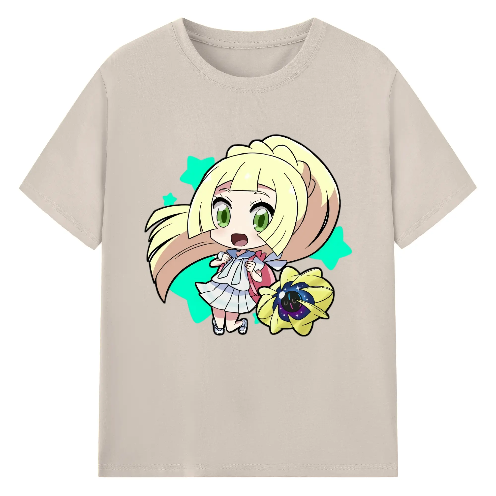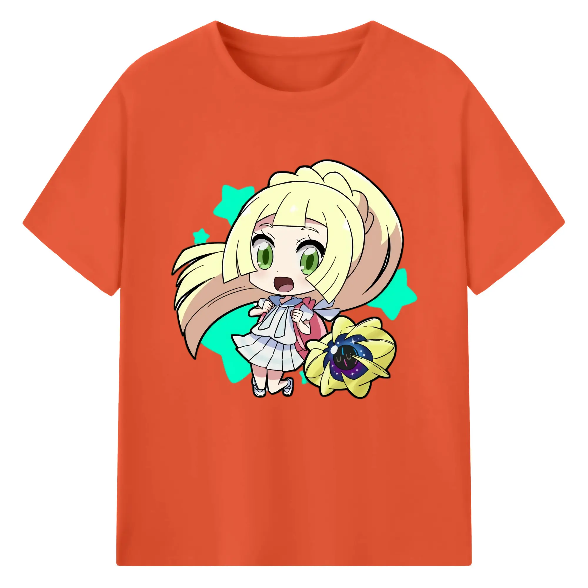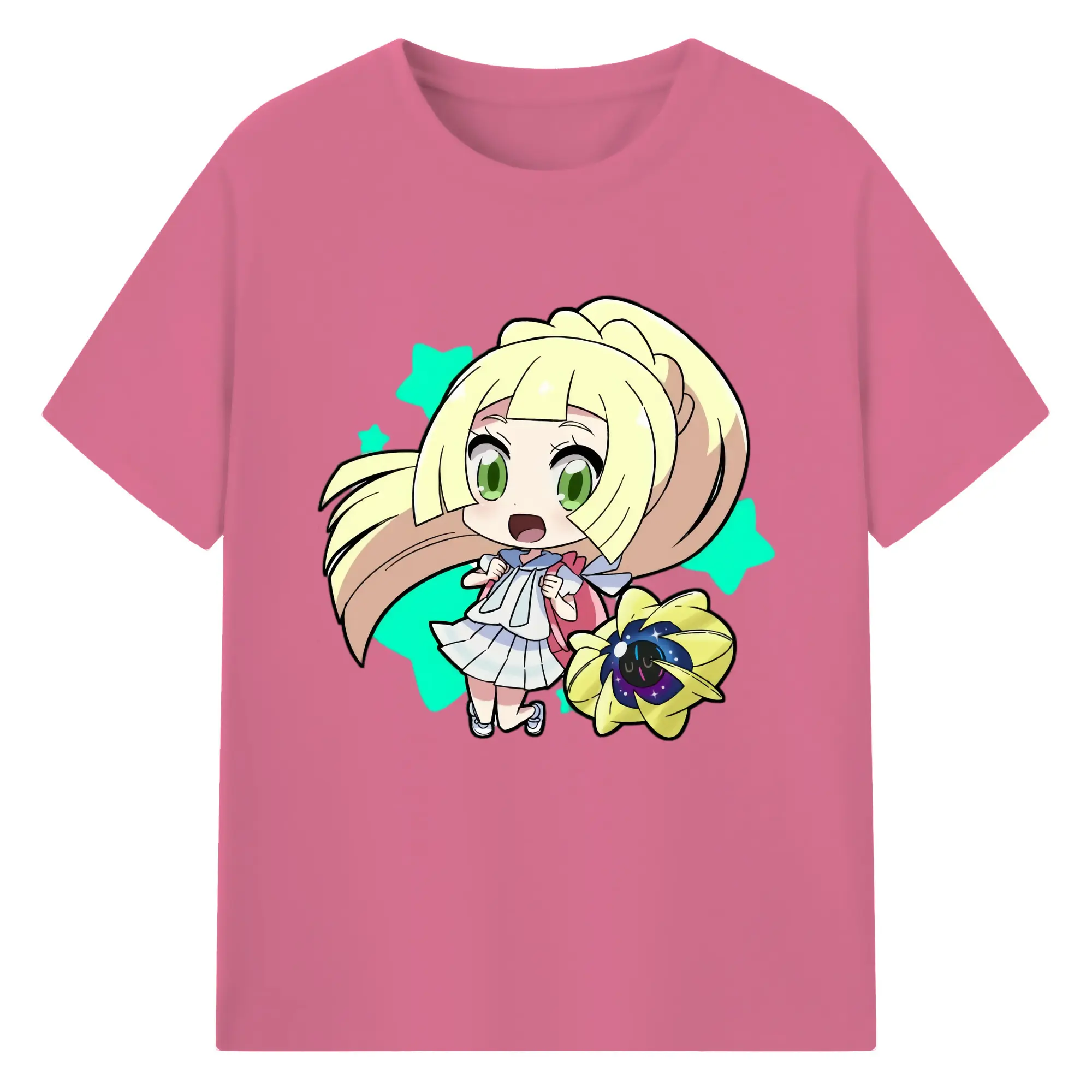 Girl Lillie Pokemon T-Shirts - 180g Cotton T-Shirt With Front Heat Transfer Print – Soft, Lightweight, Fitted Design – Comfortable Casual Wear For Sports & Everyday Use
