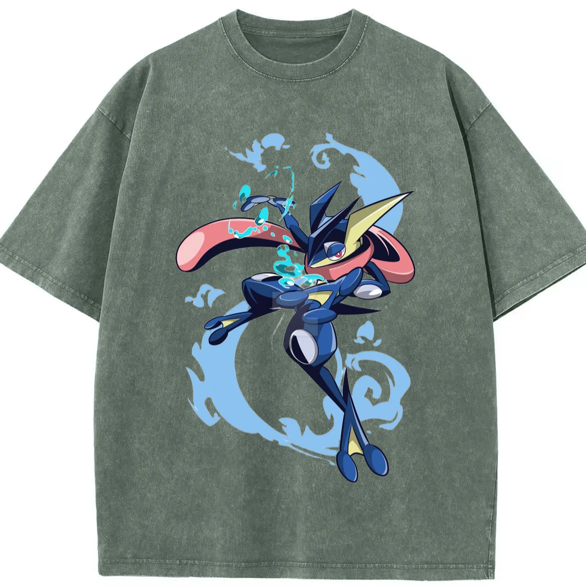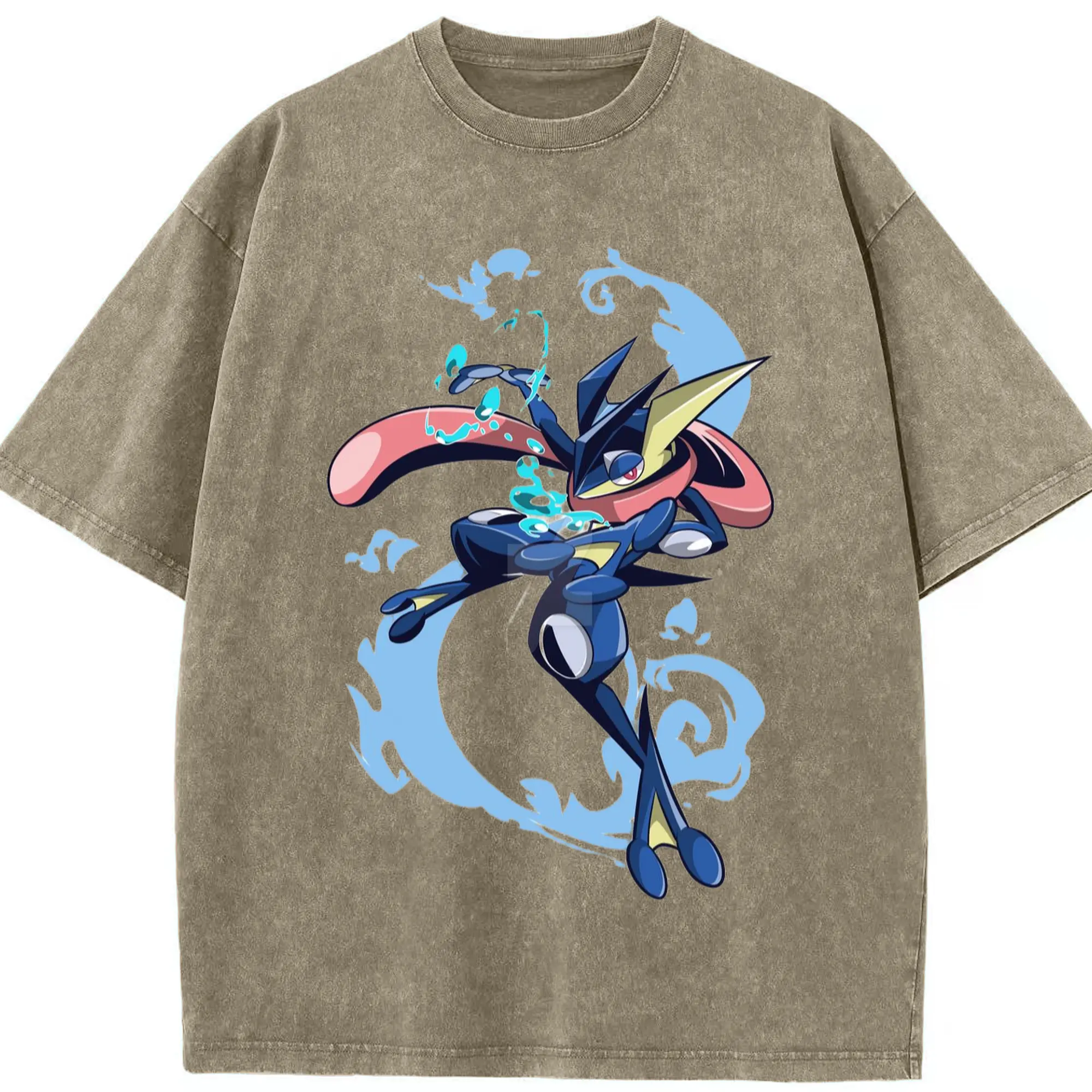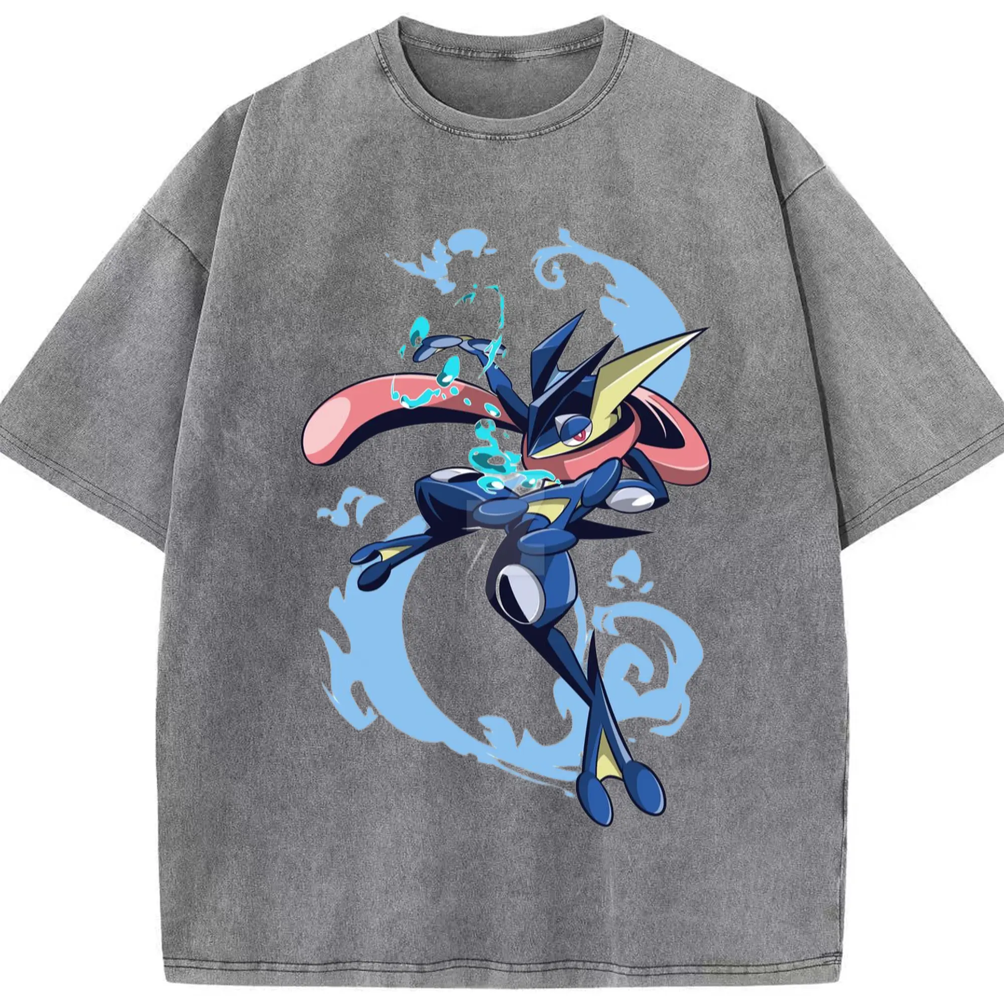 Greninja graphic t-shirt - Washed Vintage Look 230g Cotton Oversized T-Shirt With Front Heat Transfer Print – Soft, Lightweight, Stylish Fit – Comfortable Casual Wear For Sports & Everyday Use
