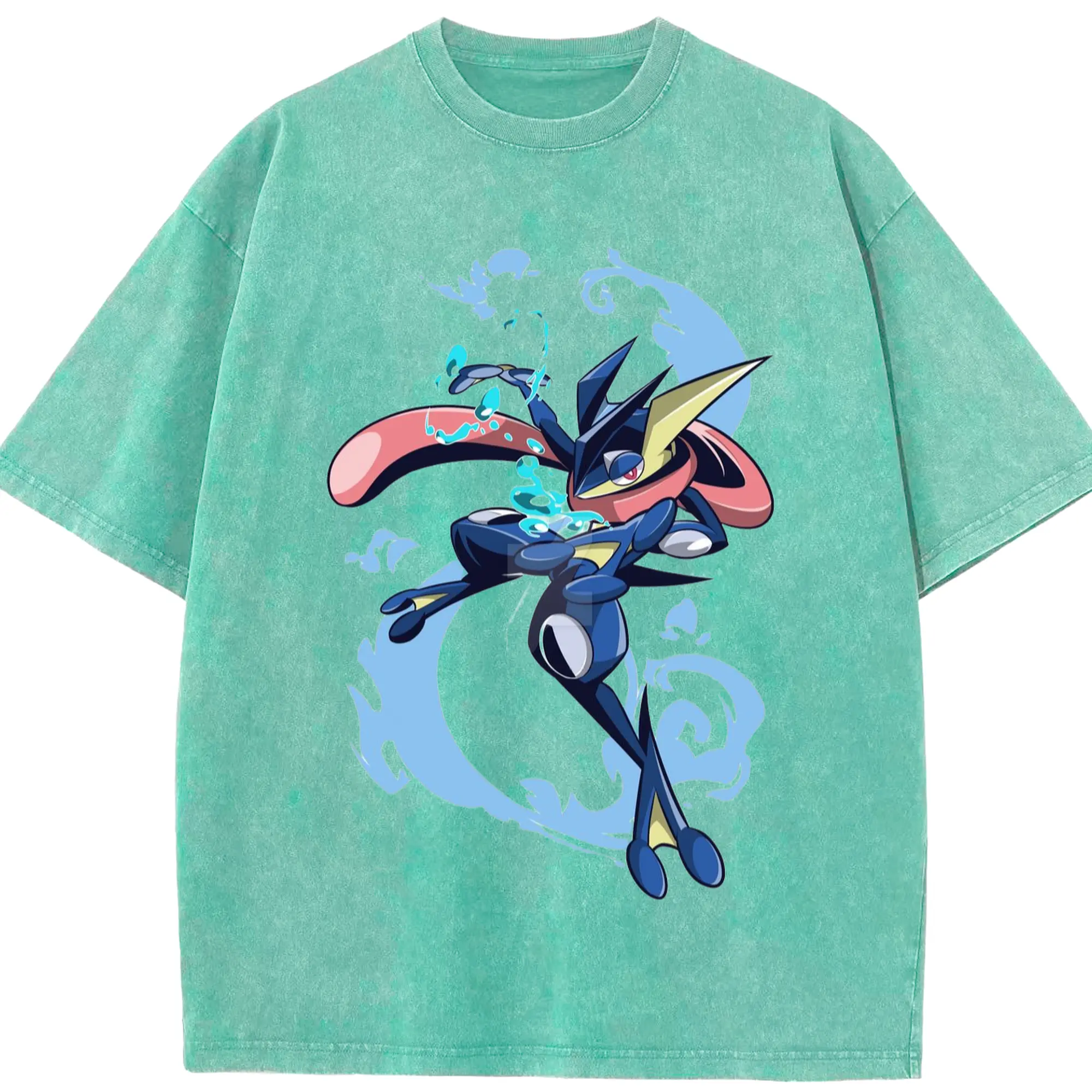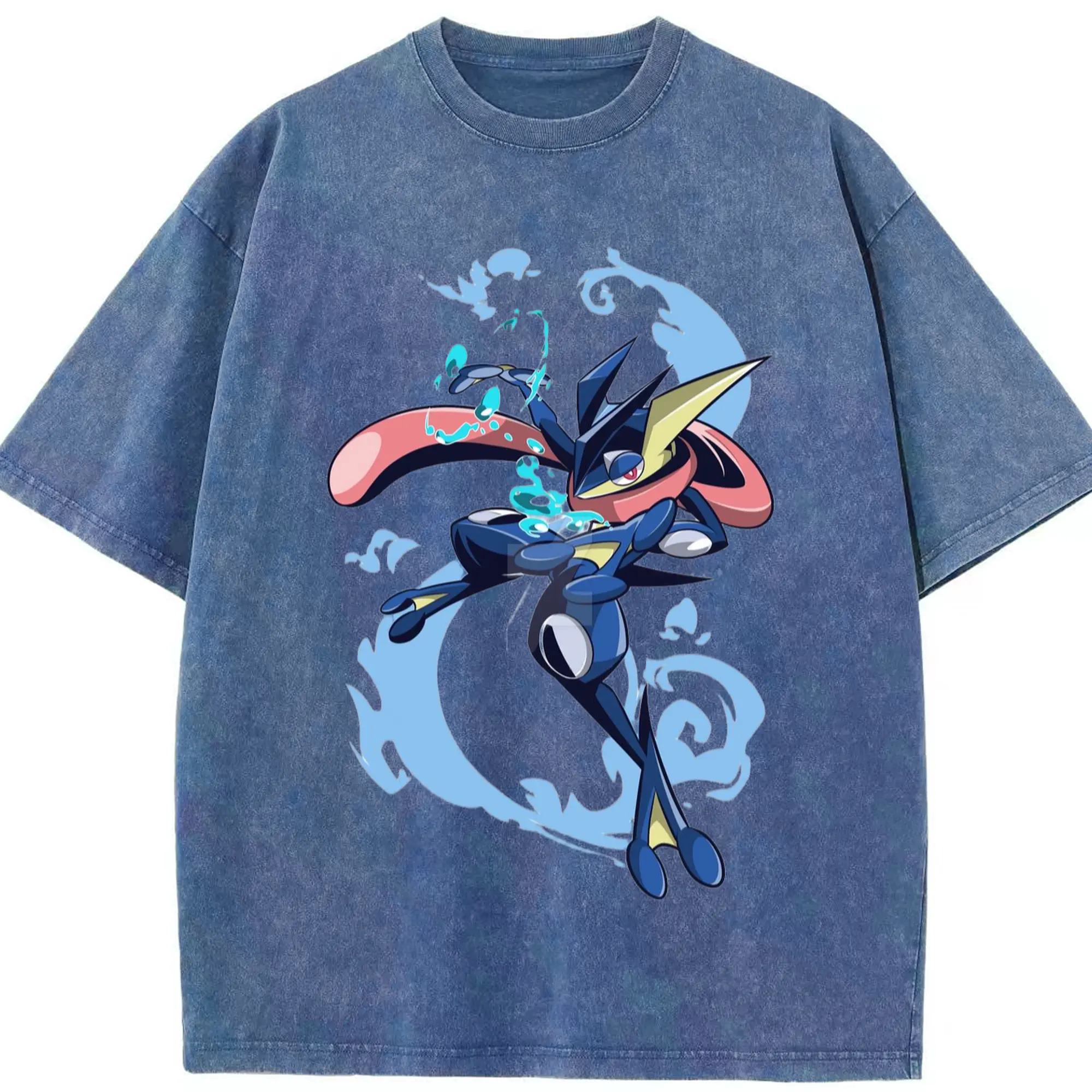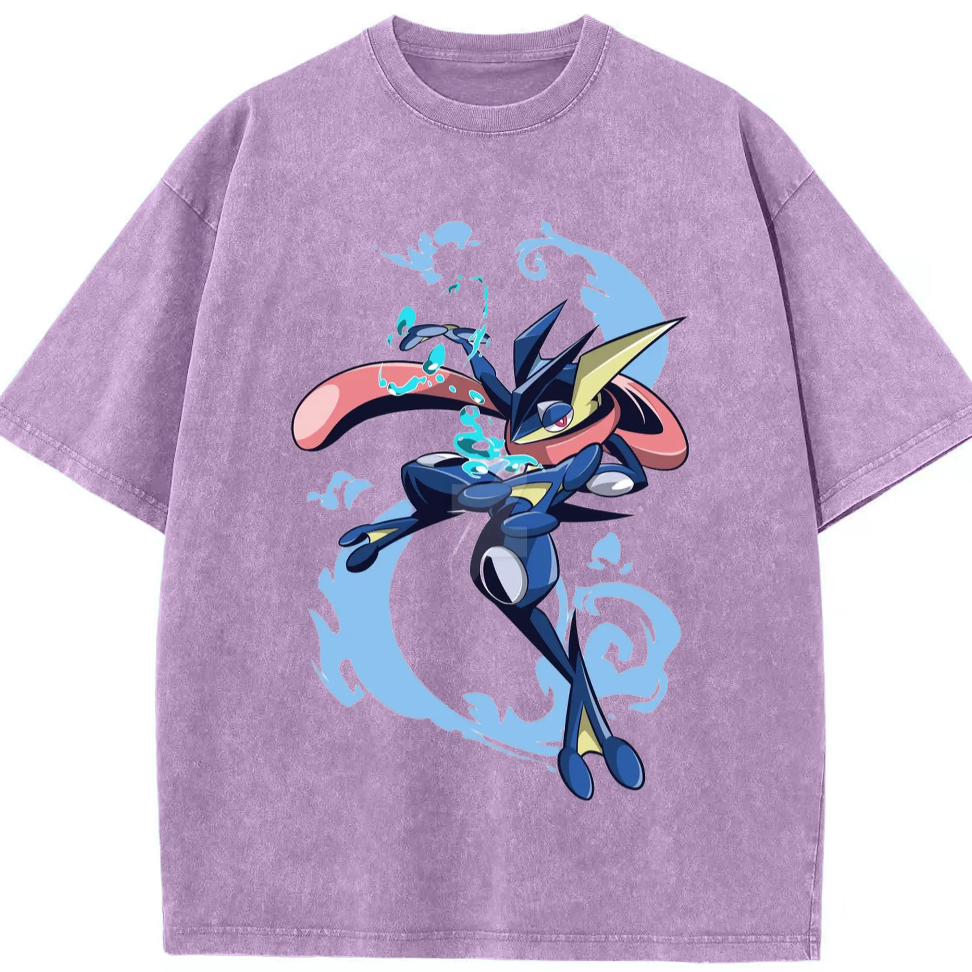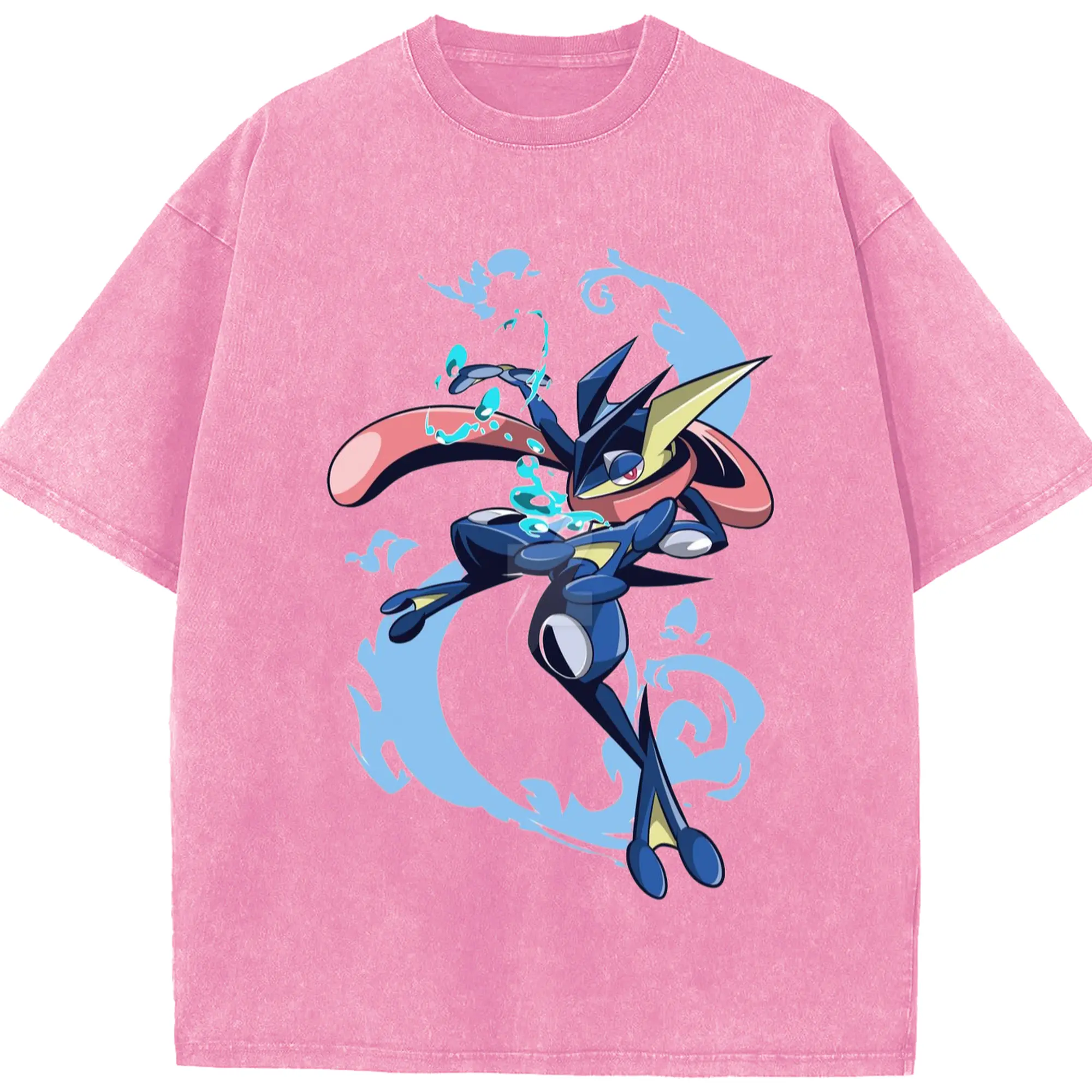 Greninja graphic t-shirt - Washed Vintage Look 230g Cotton Oversized T-Shirt With Front Heat Transfer Print – Soft, Lightweight, Stylish Fit – Comfortable Casual Wear For Sports & Everyday Use